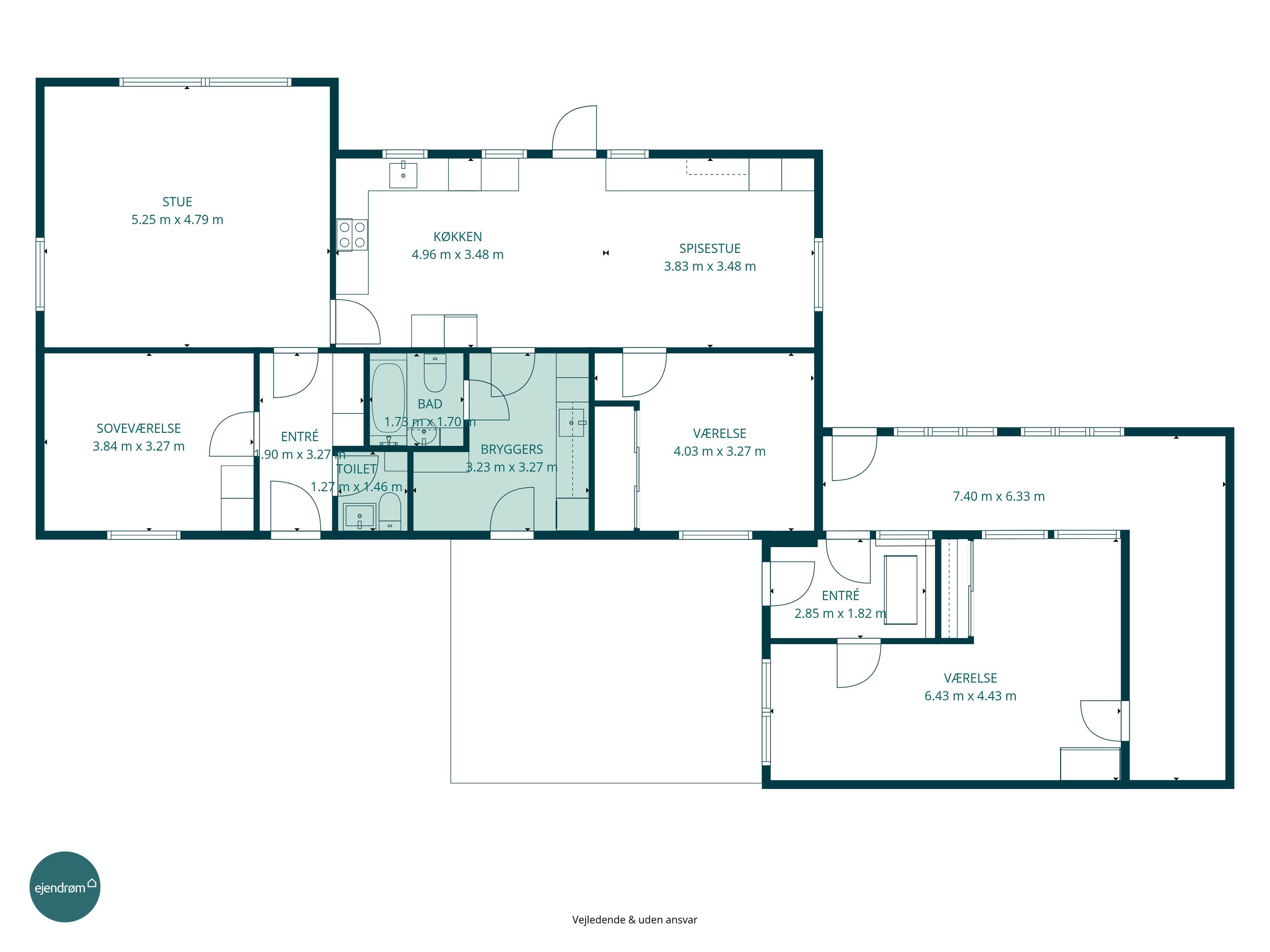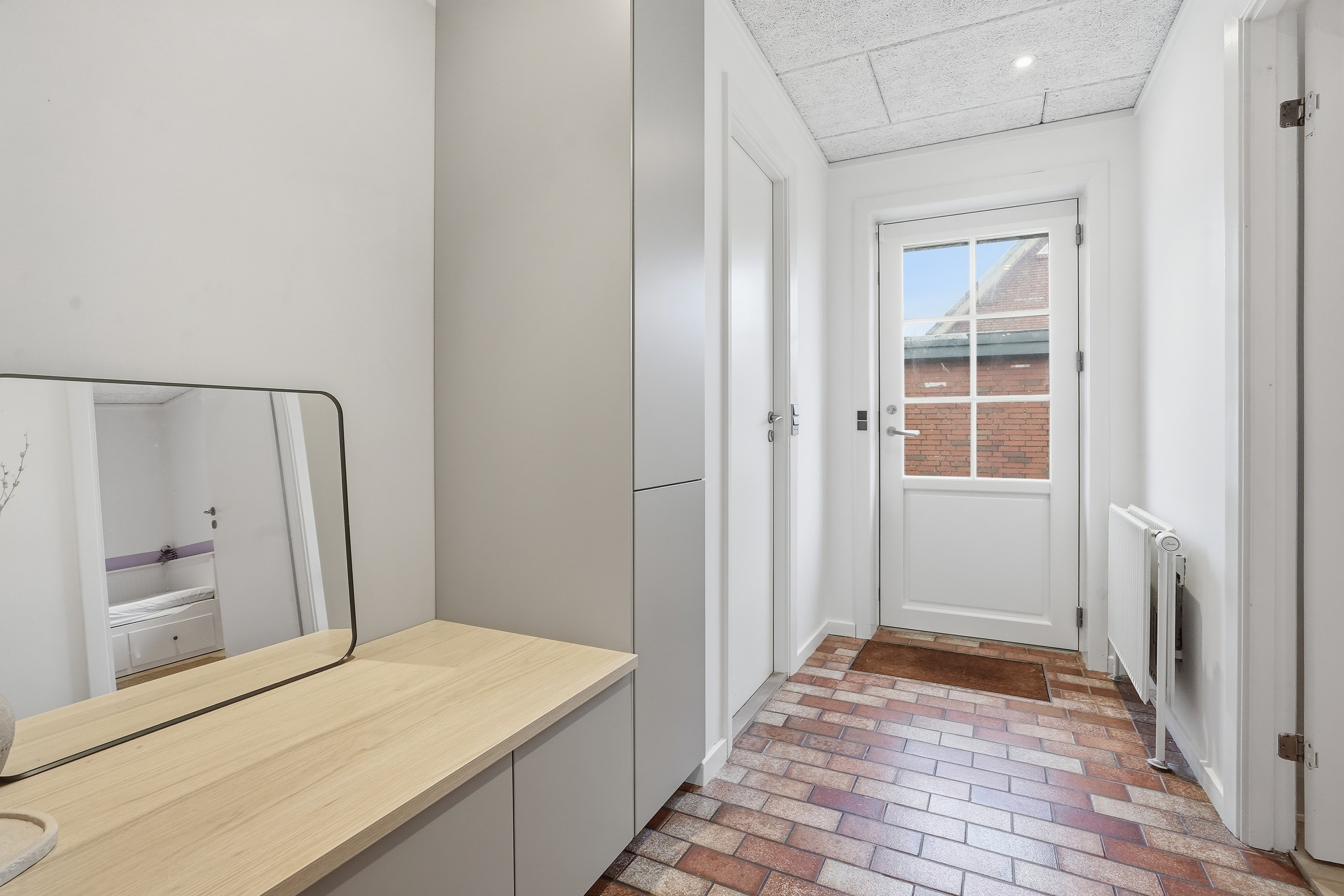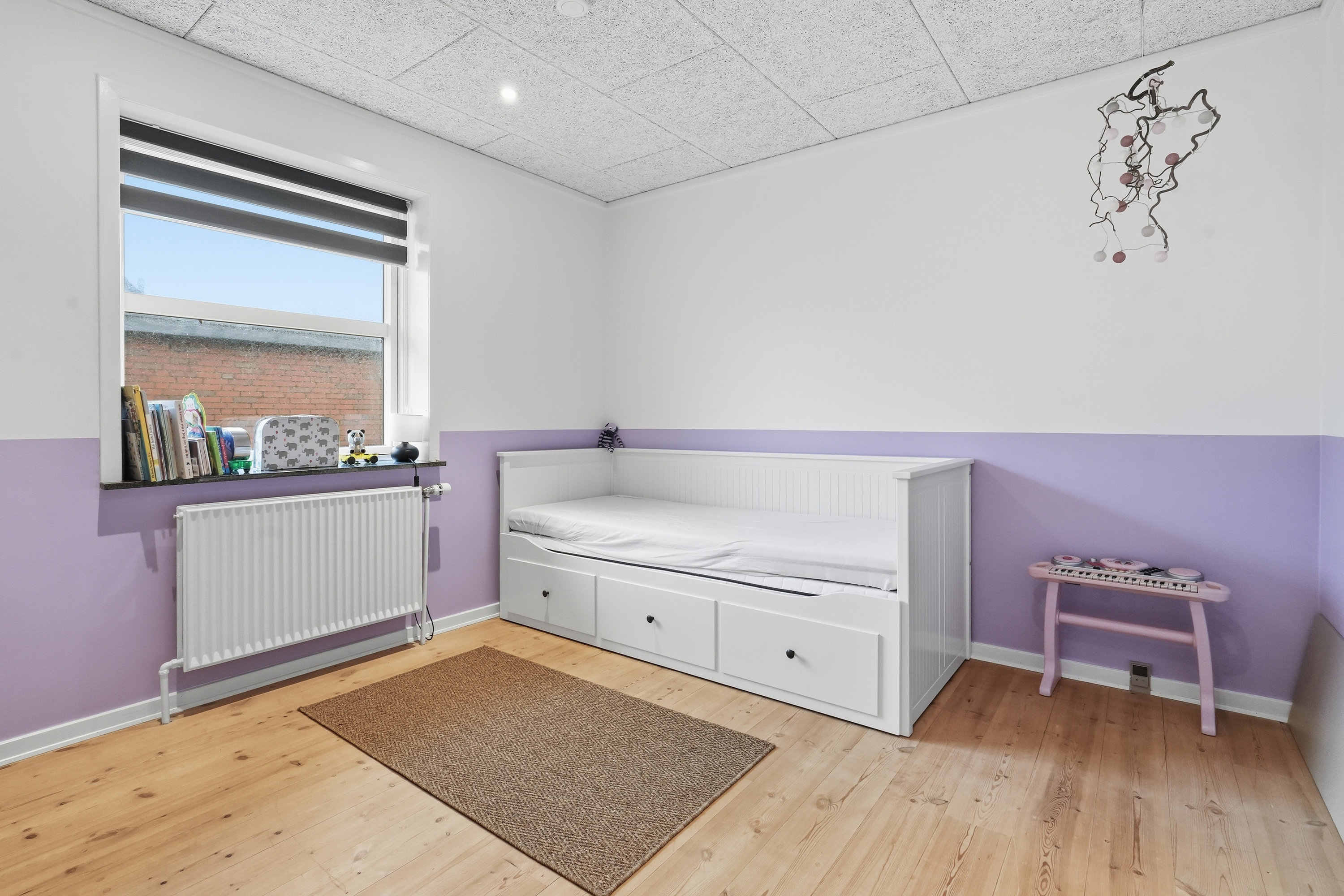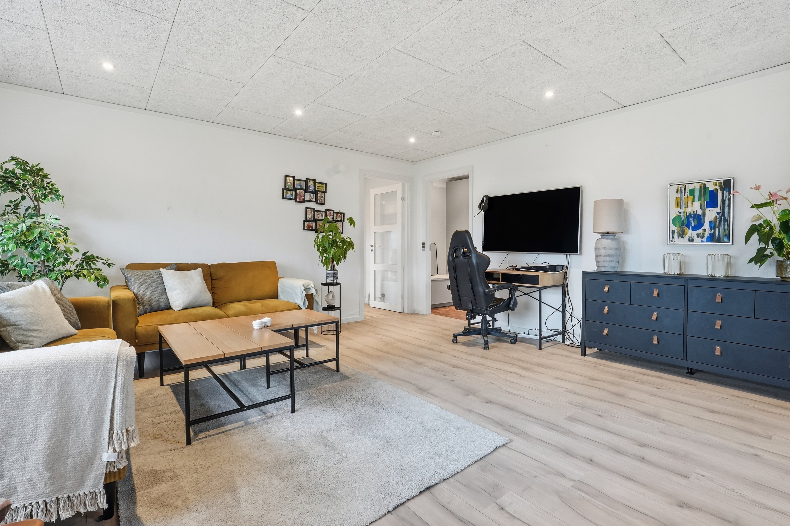 Den oprindelige garage er i dag indrettet som en funktionel “teenageafdeling”, der giver ekstra plads, men uden at være registreret til beboelse. Rummet egner sig oplagt til hobby, hjemmekontor, erhverv eller som et separat frirum til familiens unge – mulighederne er mange.