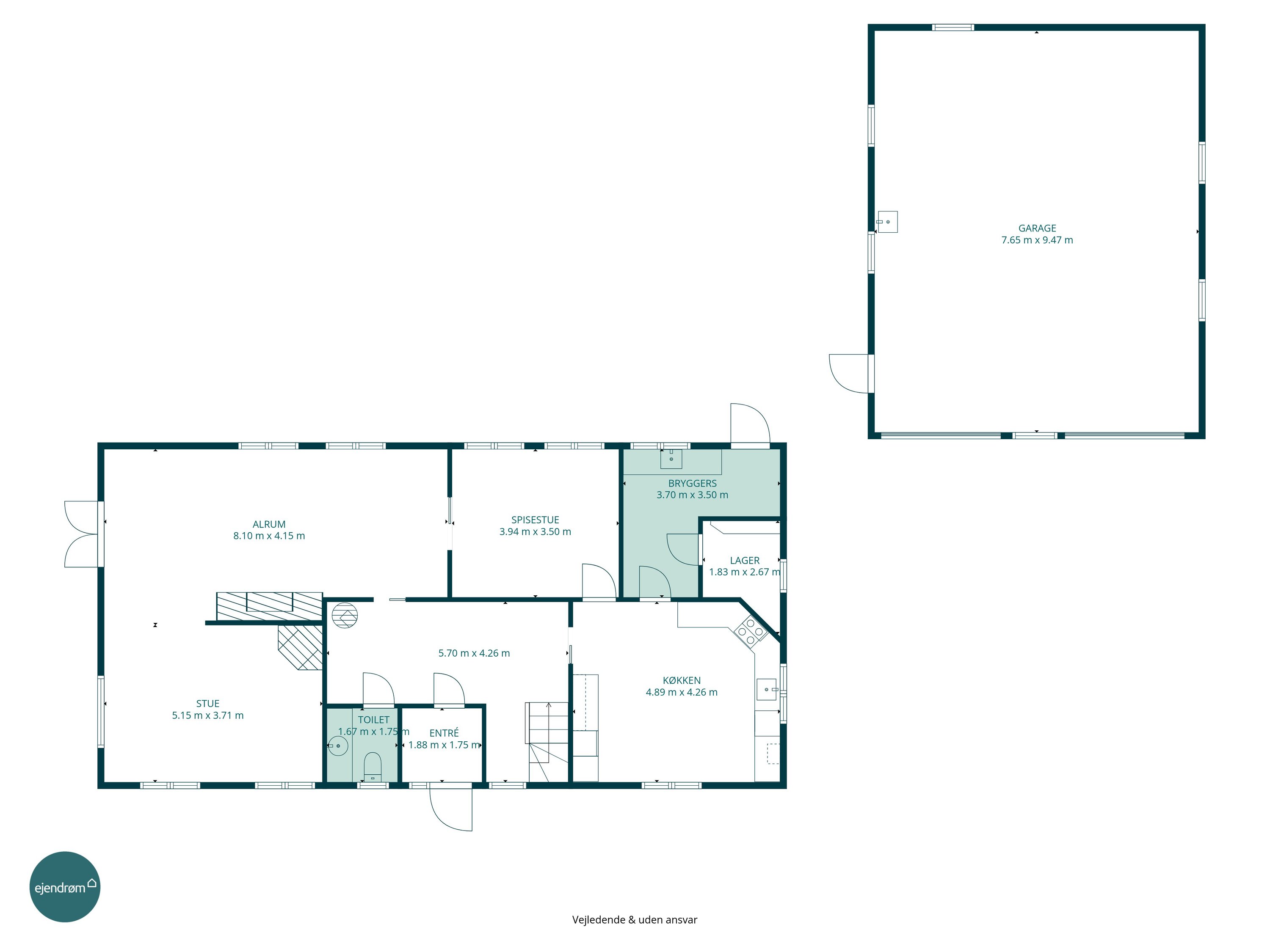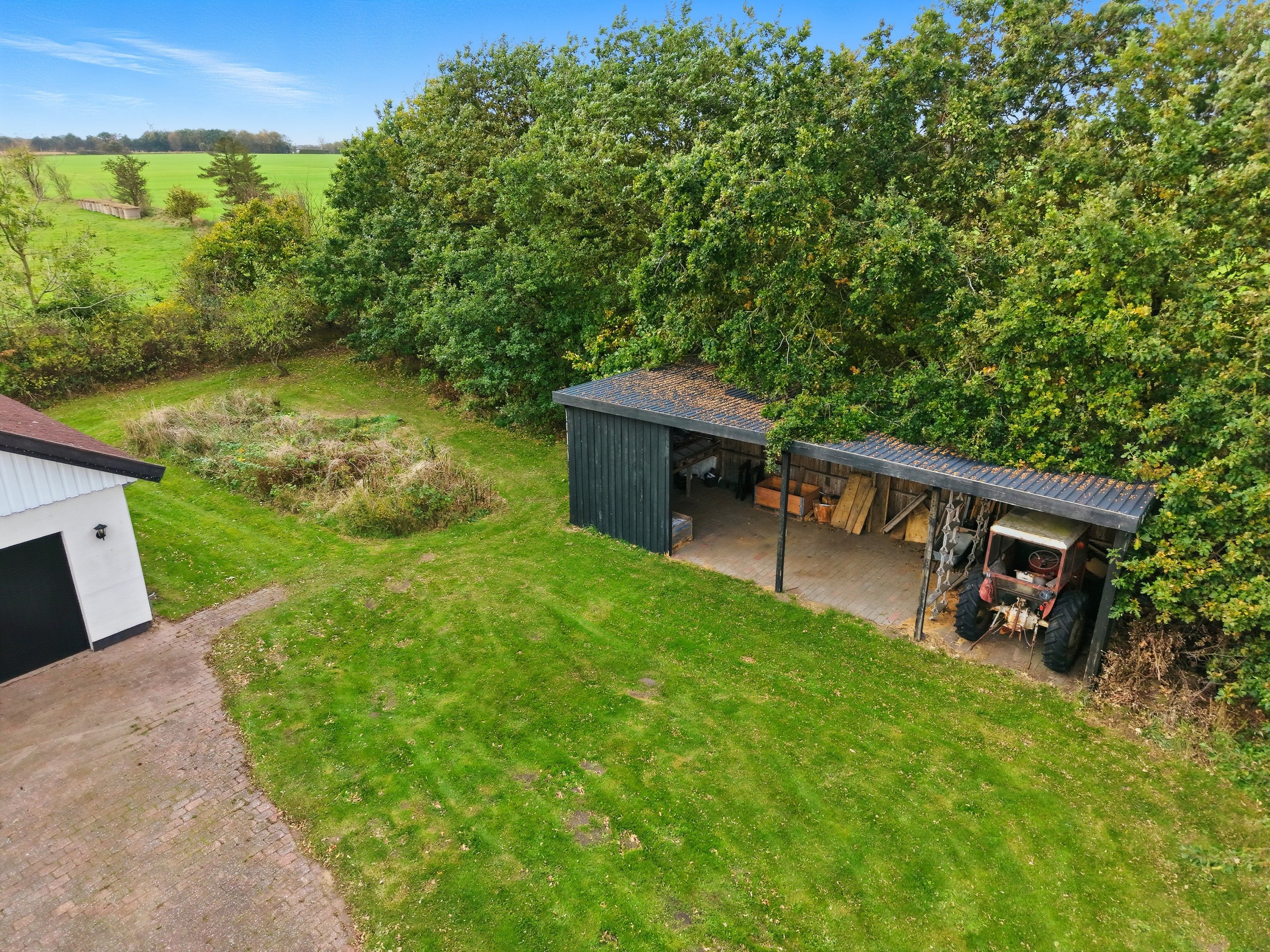 Til ejendommen hører 2,7 hektar jord samt et rummeligt værksted på 80 m² med dobbelte porte – perfekt til bilentusiasten, håndværkeren eller dig med en pladskrævende hobby. Her er masser af plads til både arbejde og fritid.