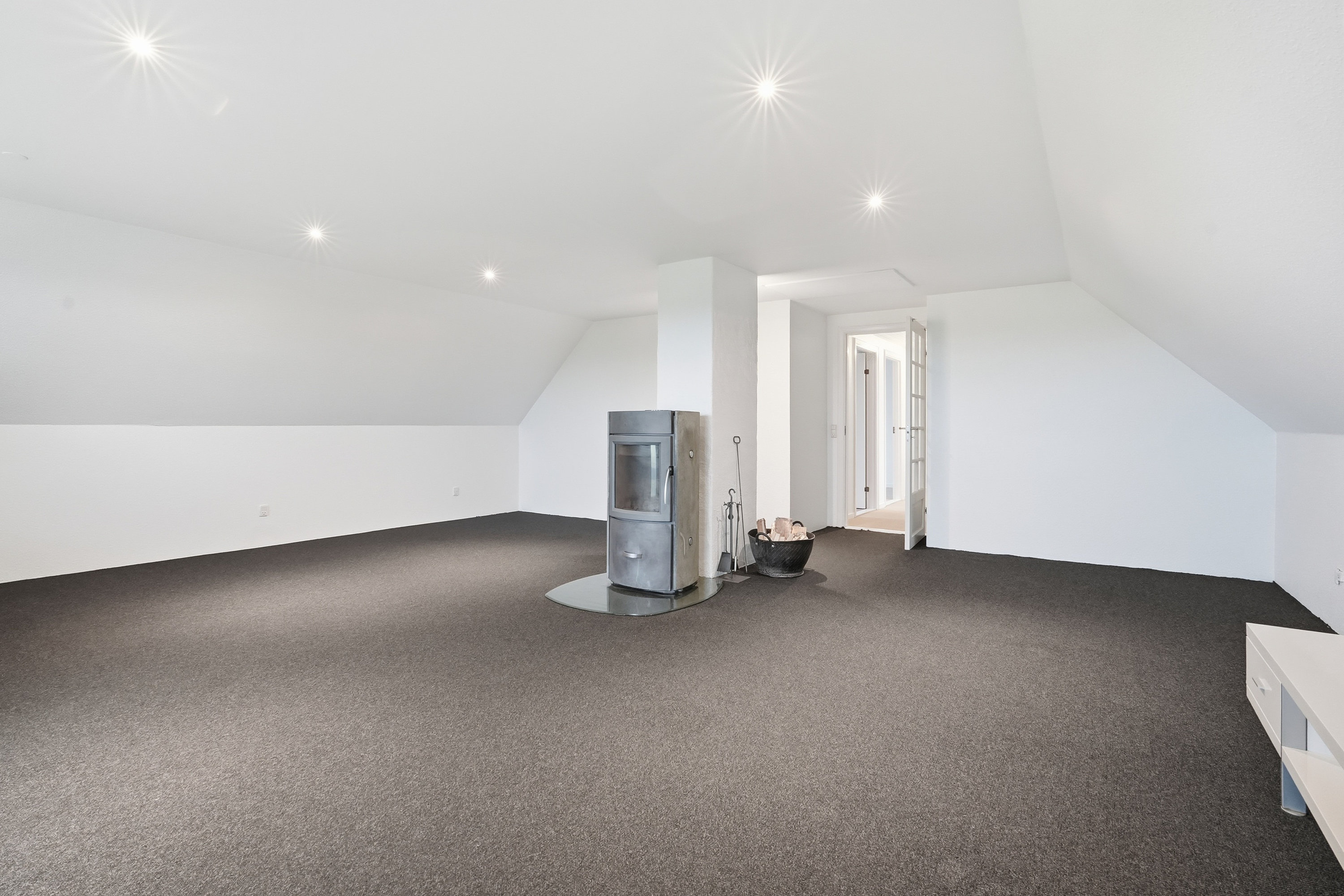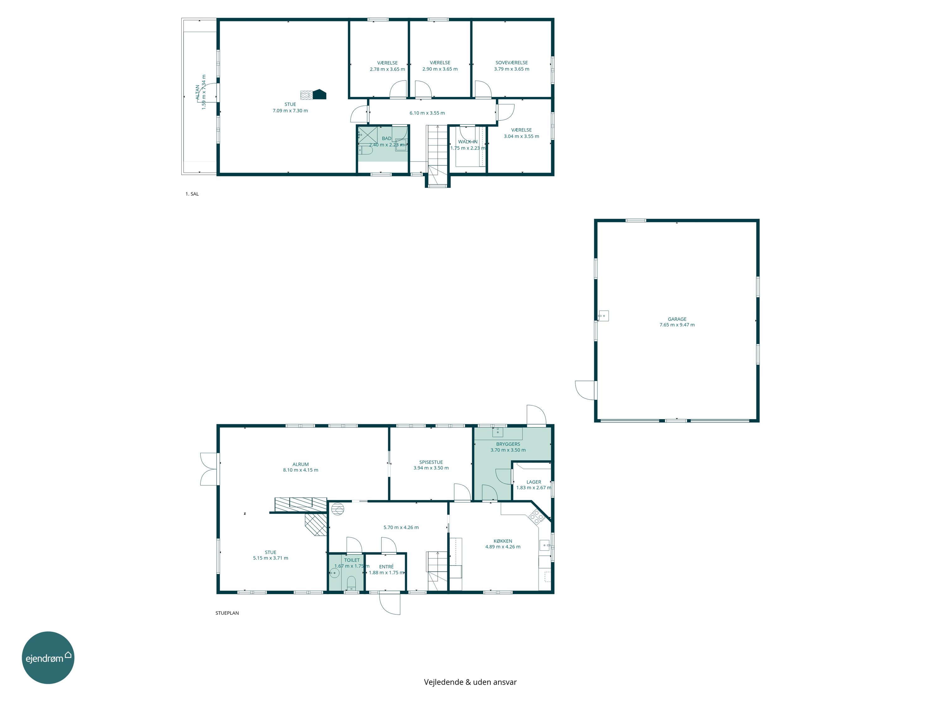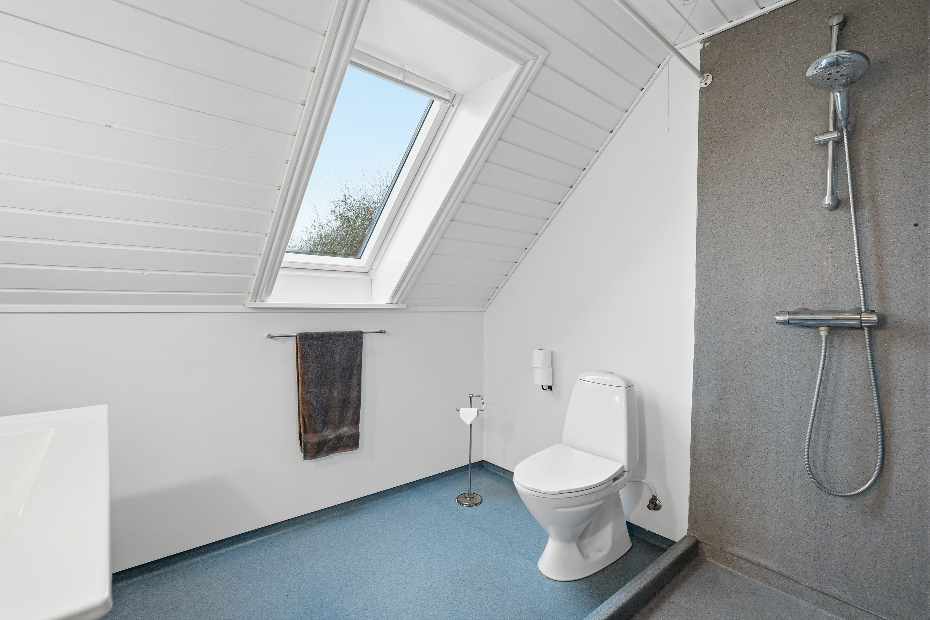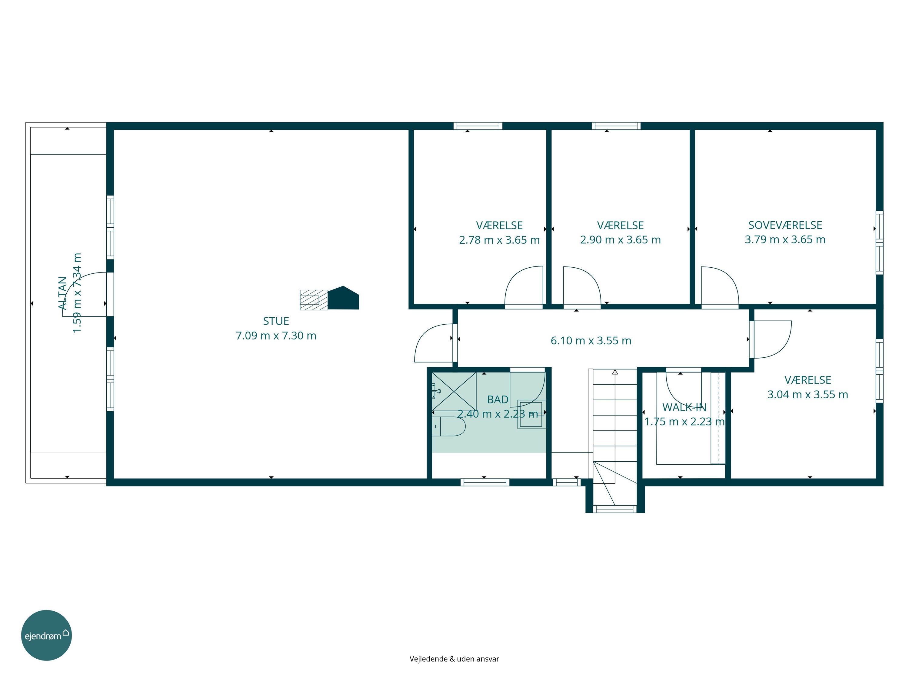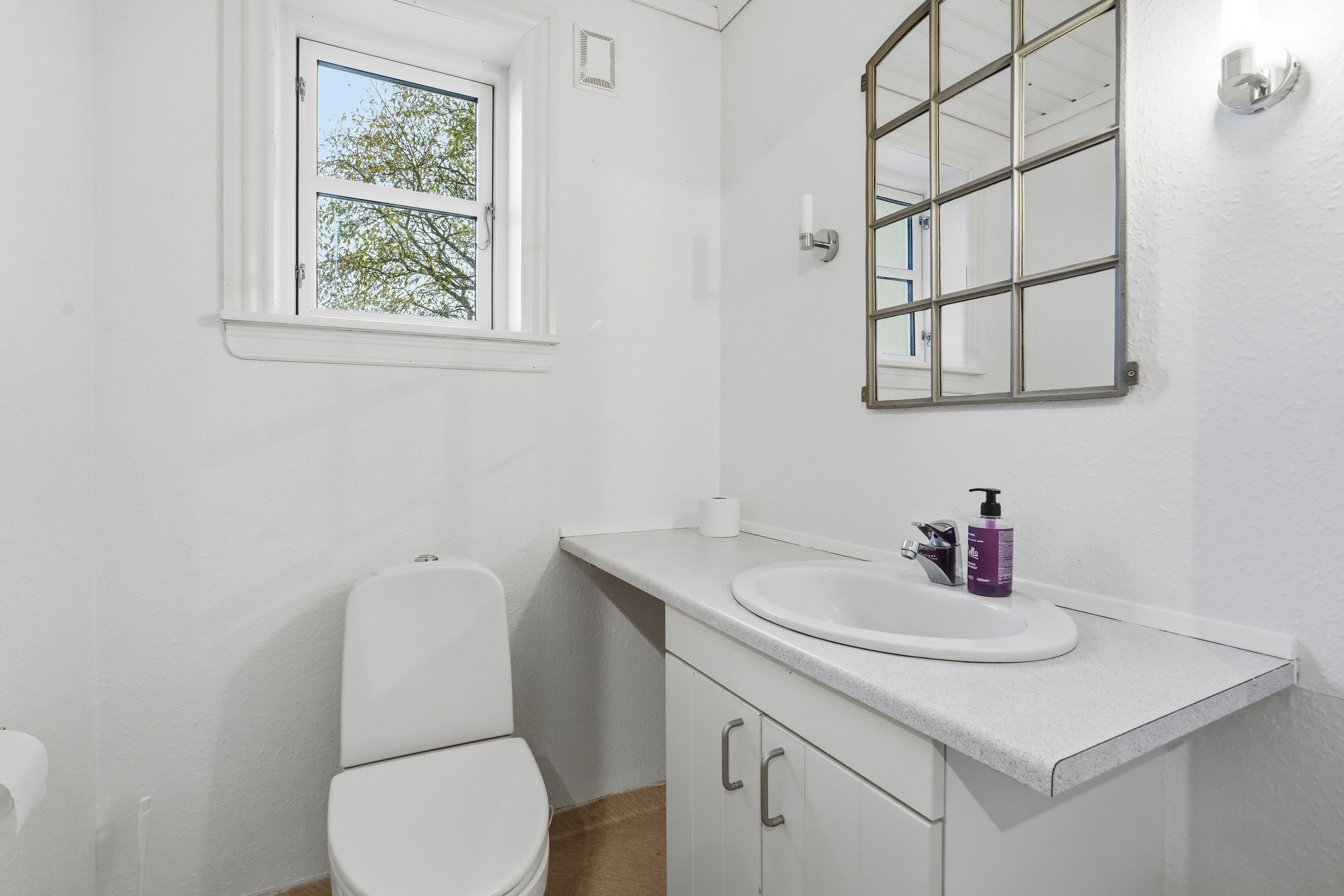 På førstesalen finder man hele fire værelser – tre børneværelser og et soveværelse – samt et lyst badeværelse med bruseniche. Dertil kommer en stor opholdsstue eller aktivitetsrum, der giver plads til leg, lektier eller afslapning – oplagt som teenagerafdeling eller til festlige sammenkomster.