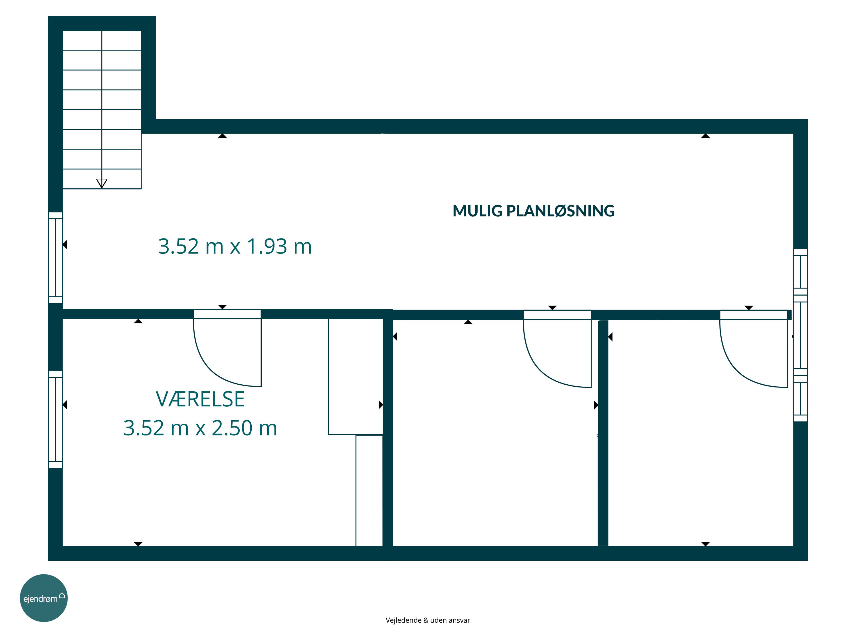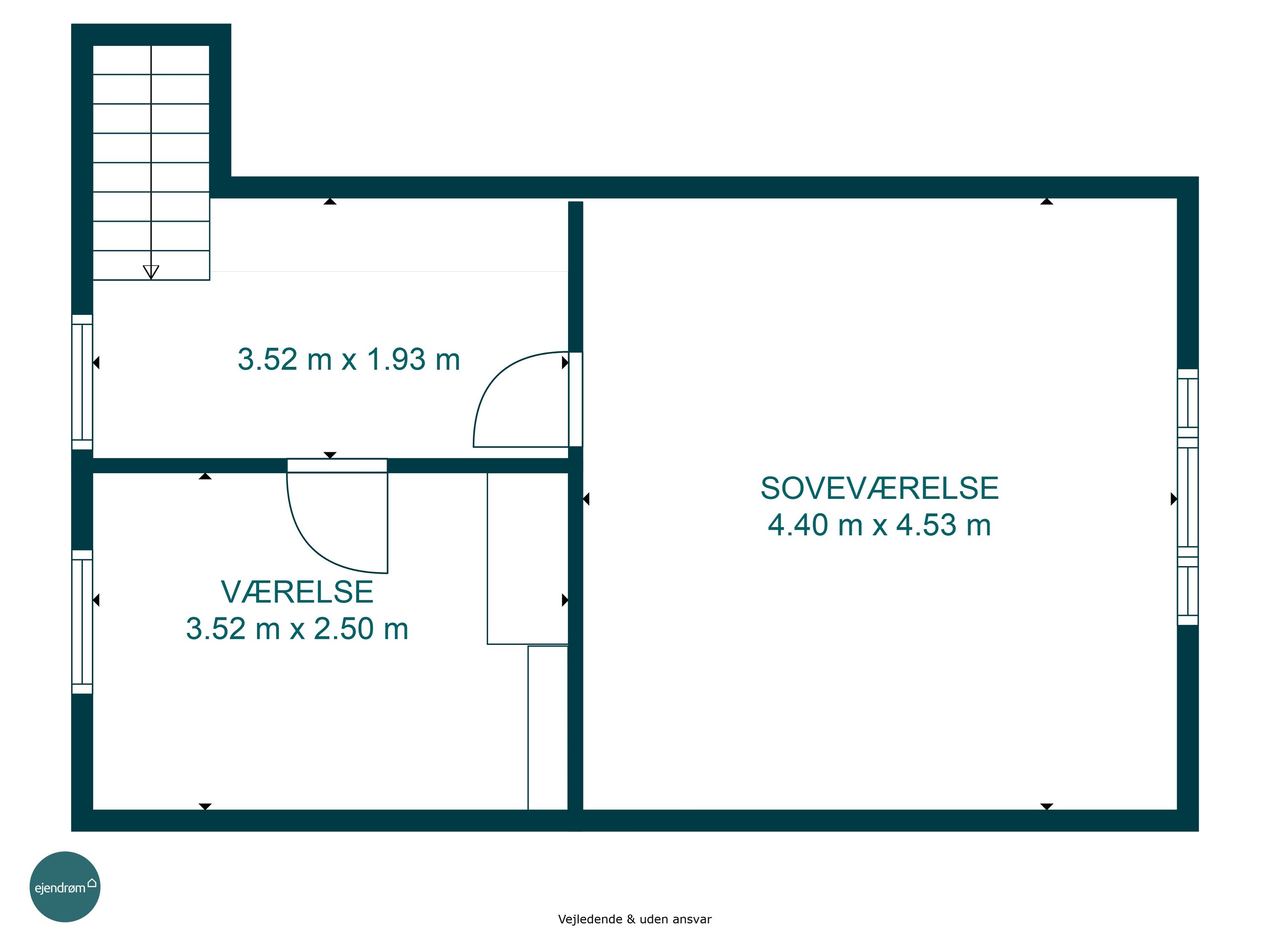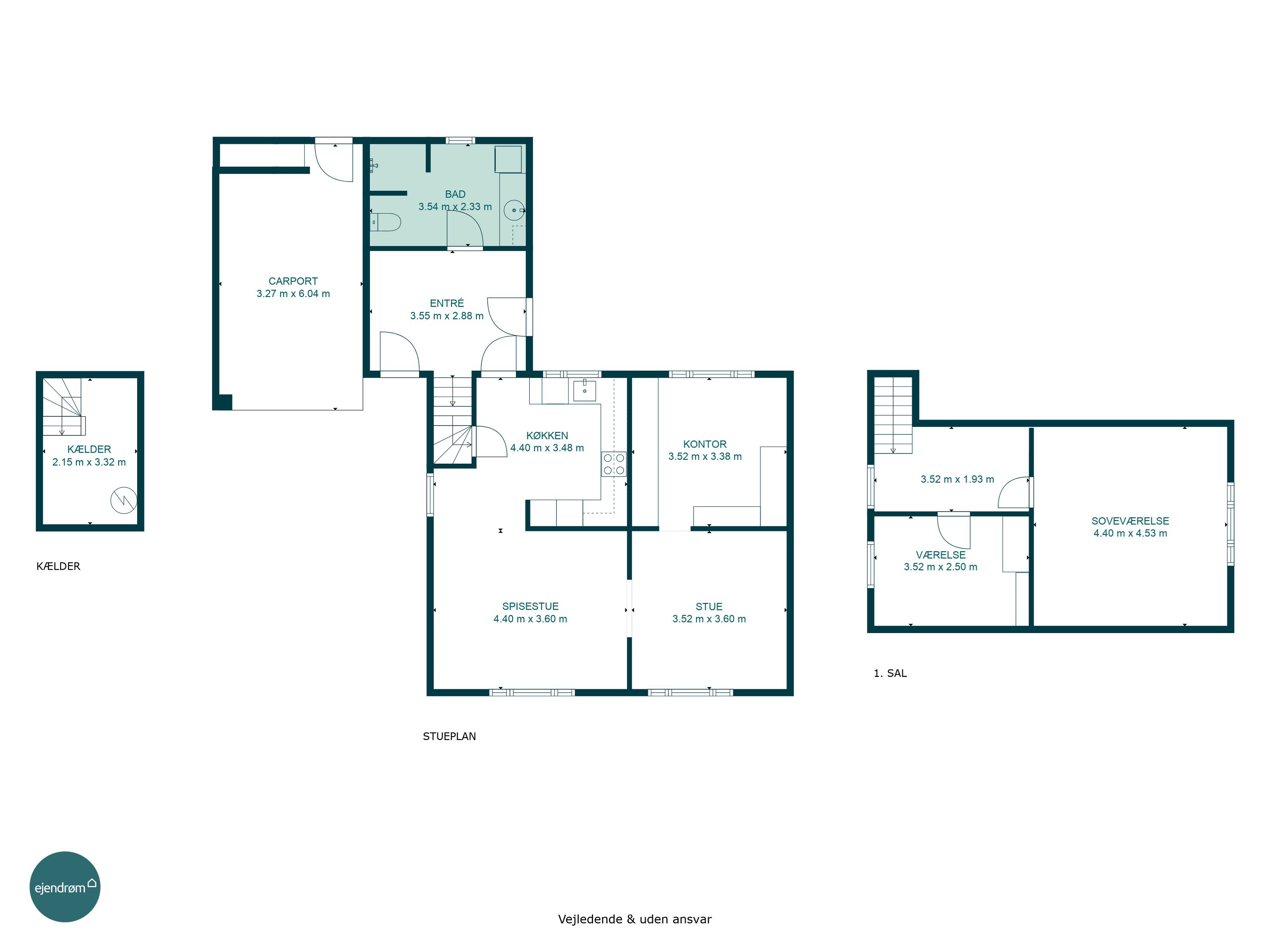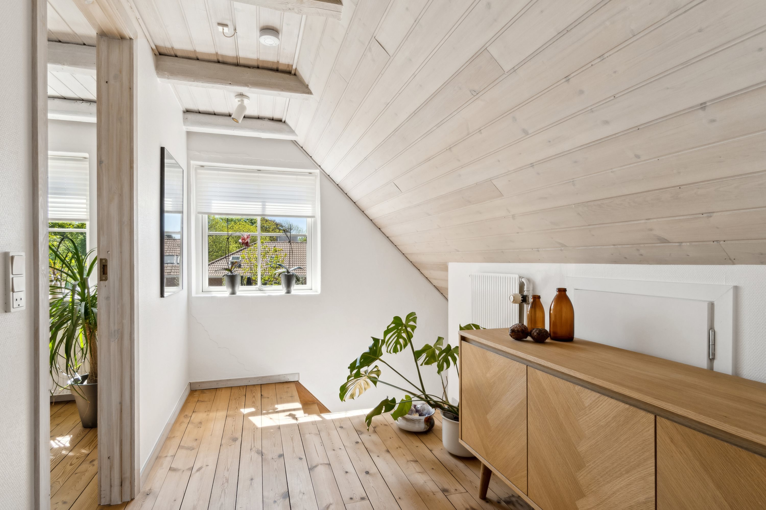 På 1. salen venter to gode værelser, der er ideelle som soveværelser, børneværelser eller kontor. På 1. salen er der ingen bærende vægge hvilket giver uendelige muligheder hvad angår planløsningen. Dette kunne være til etablering af et ekstra værelse. Kvadratmeterne er der til det. Herudover er der rig mulighed for at etablere loft til kip.