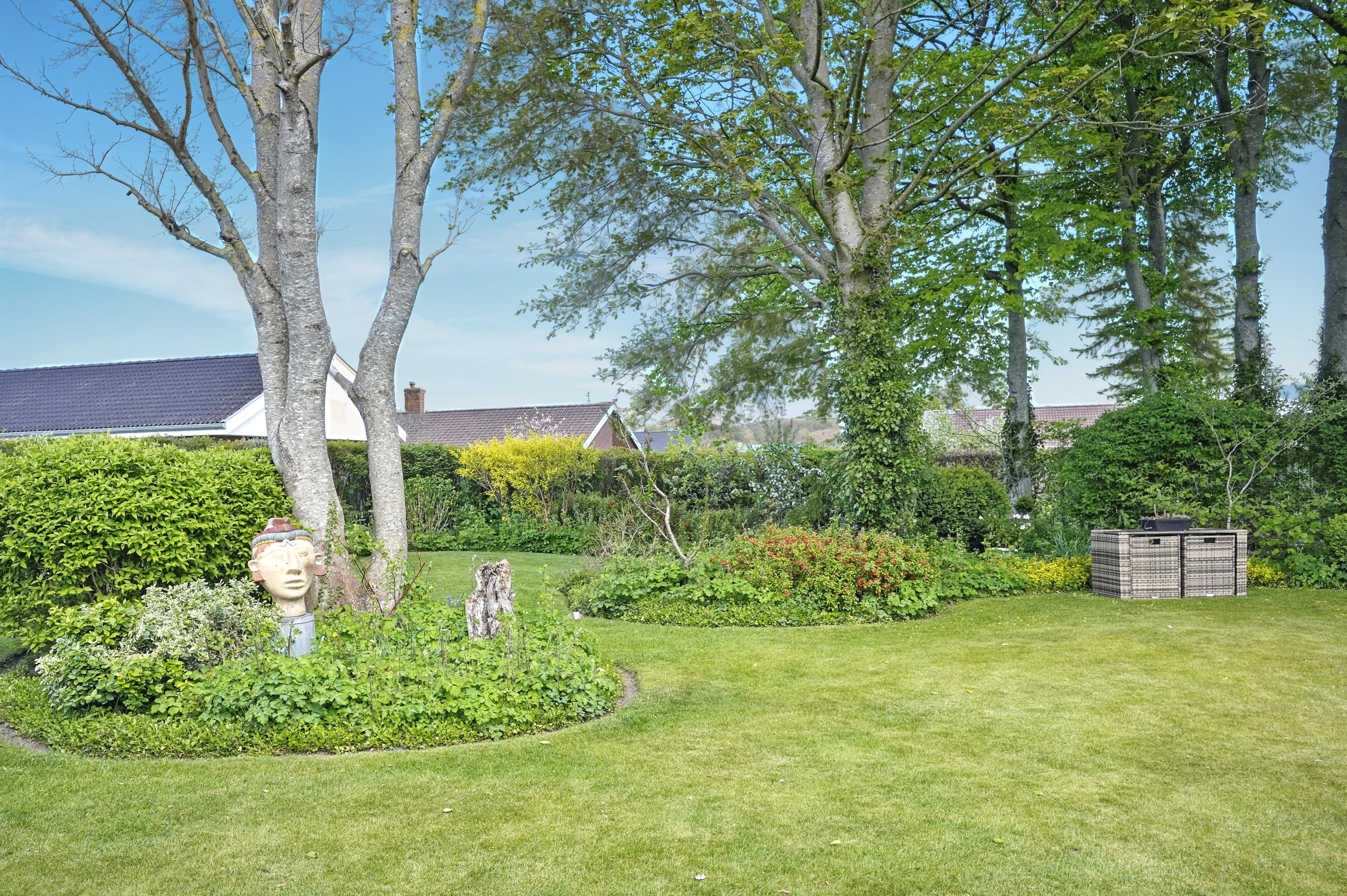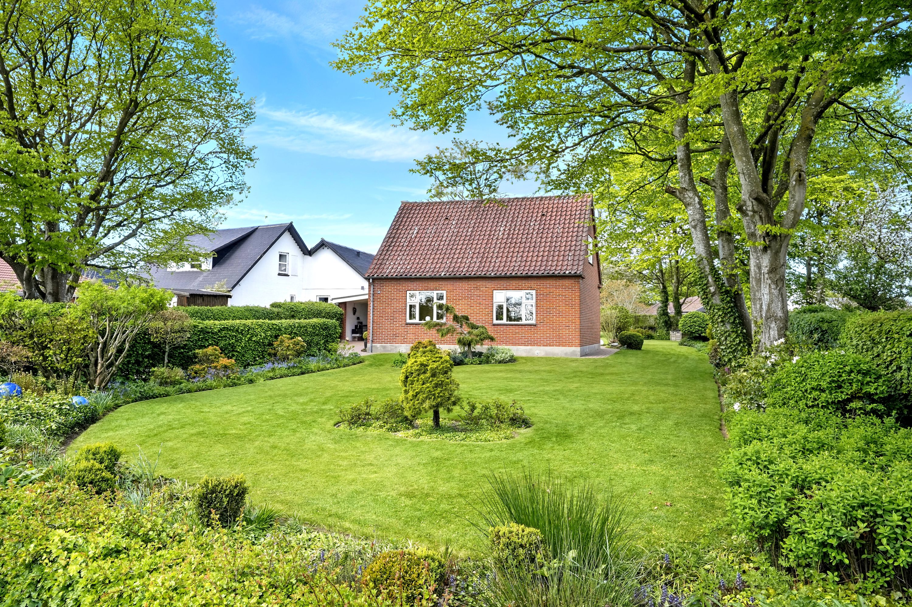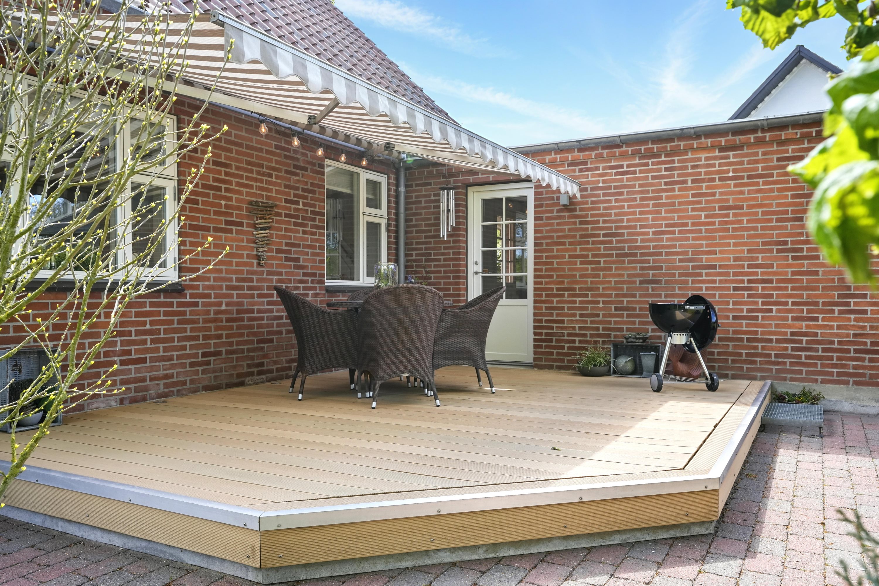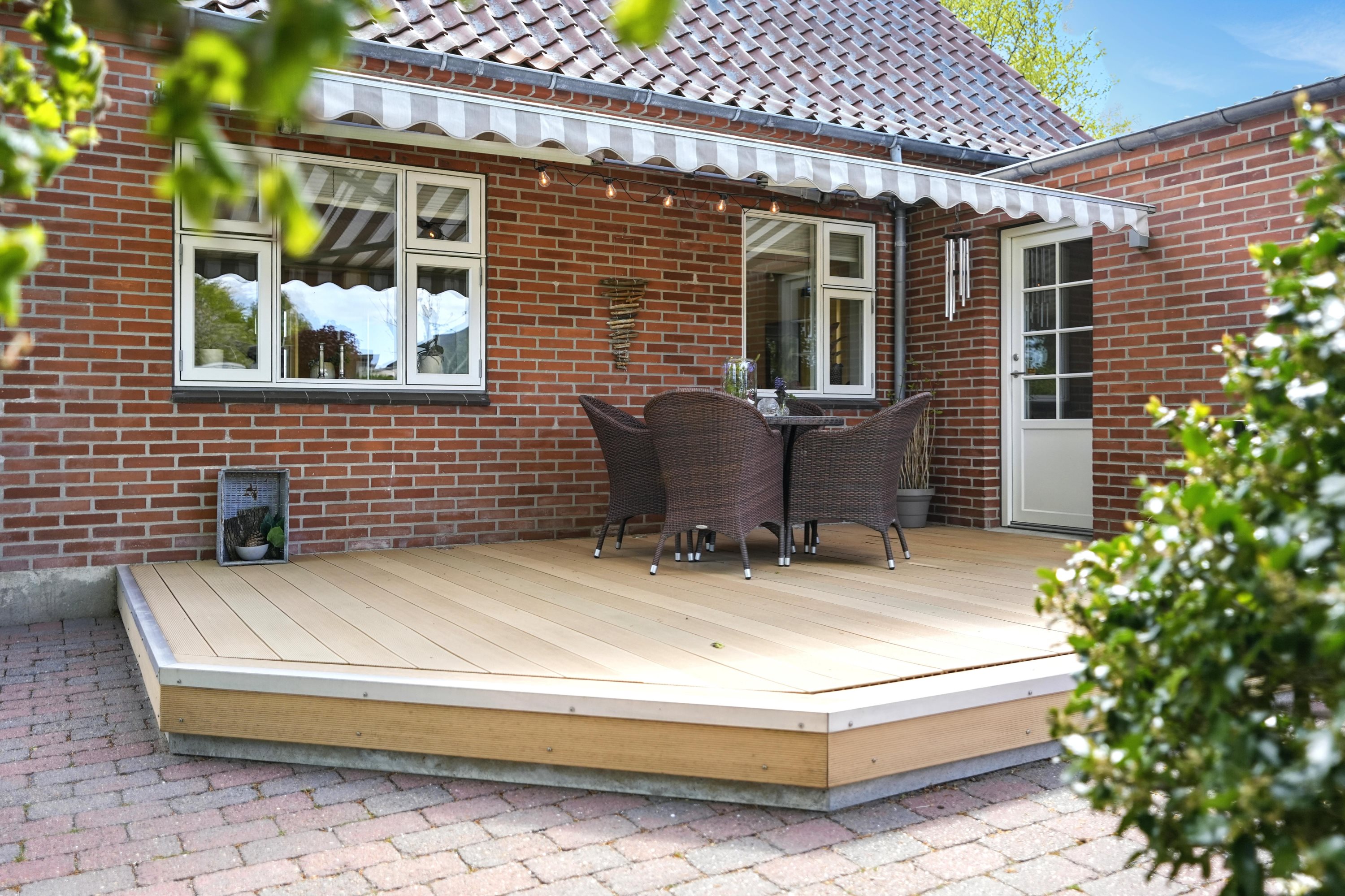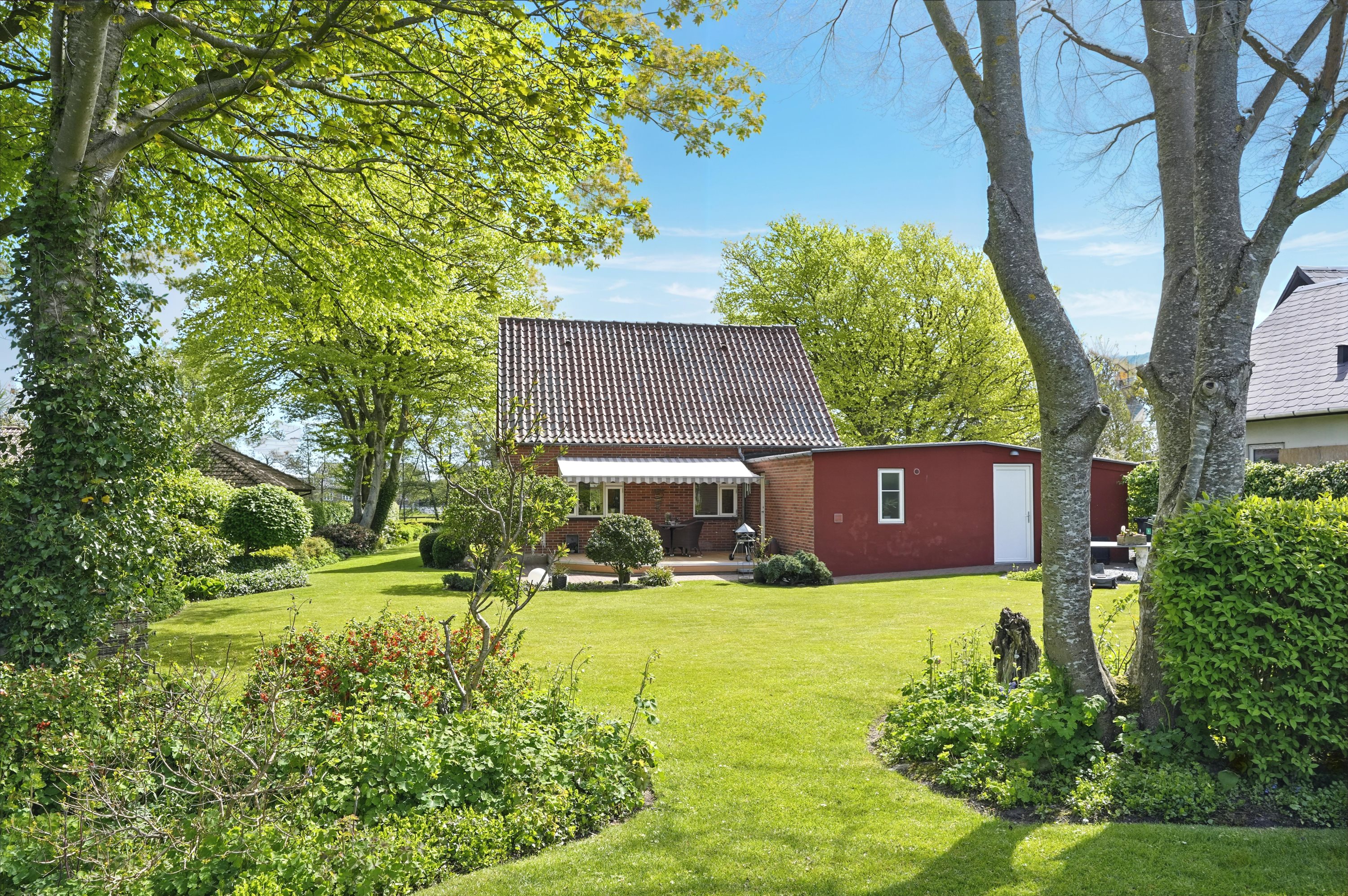 Udendørs bliver du mødt af en stor træterrasse, der er perfekt til sommeraftener og grillhygge. Den 1209 m² store grund giver masser af plads til leg, haveprojekter eller bare at nyde naturen omkring dig.