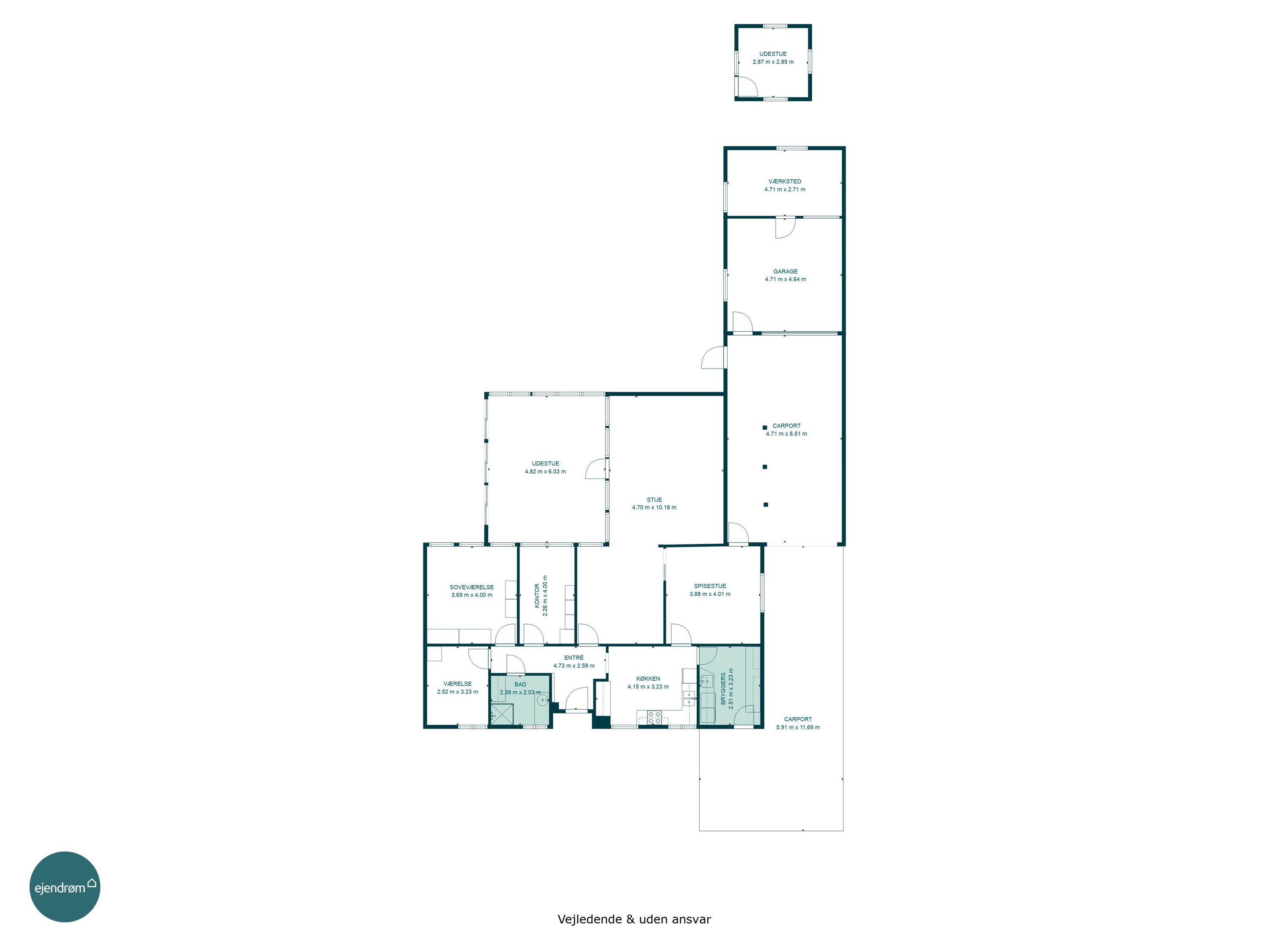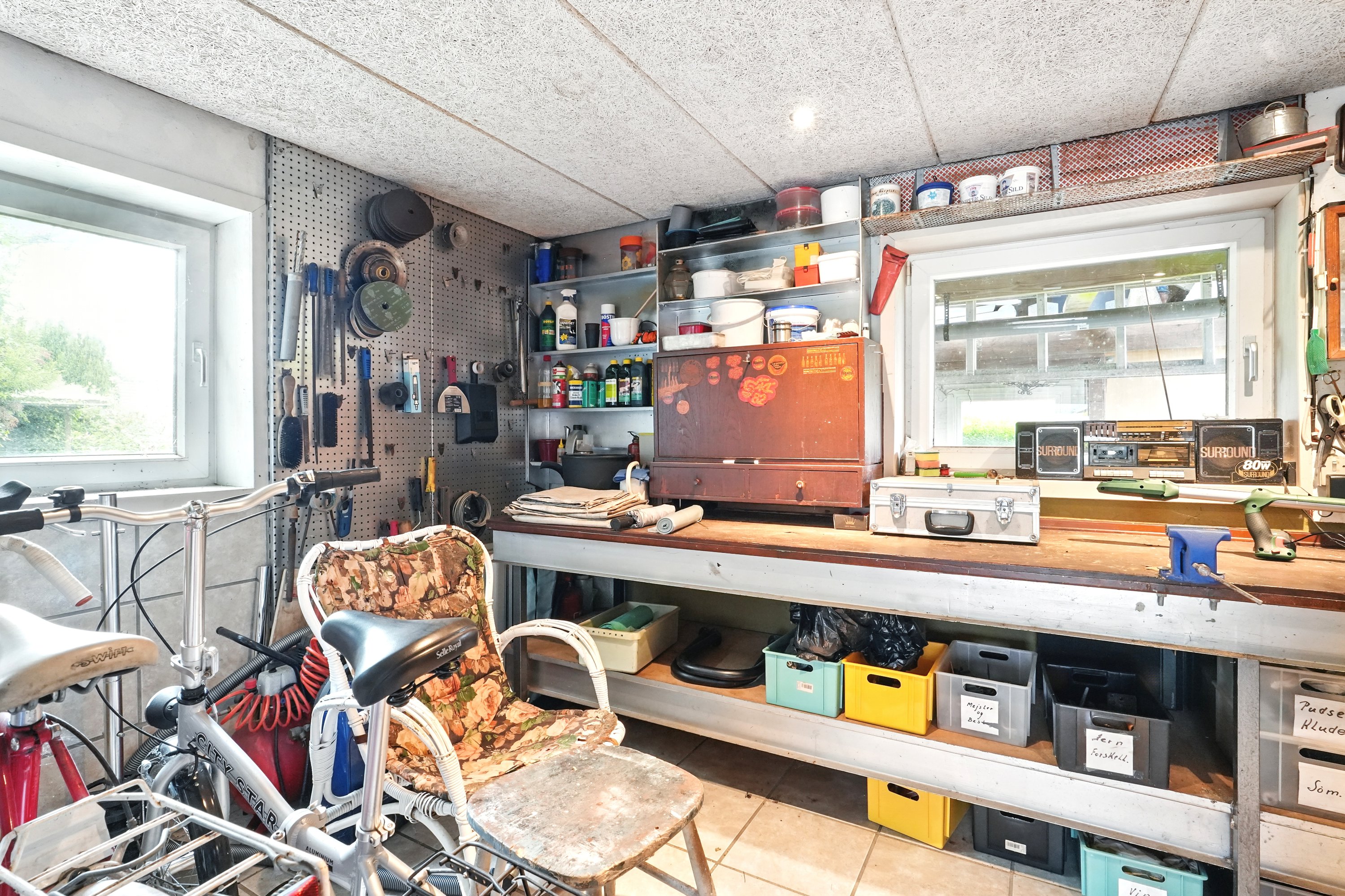 Derudover rummer ejendommen et praktisk og rummeligt værksted – perfekt til gør-det-selv-projekter, opbevaring eller måske et kreativt frirum.