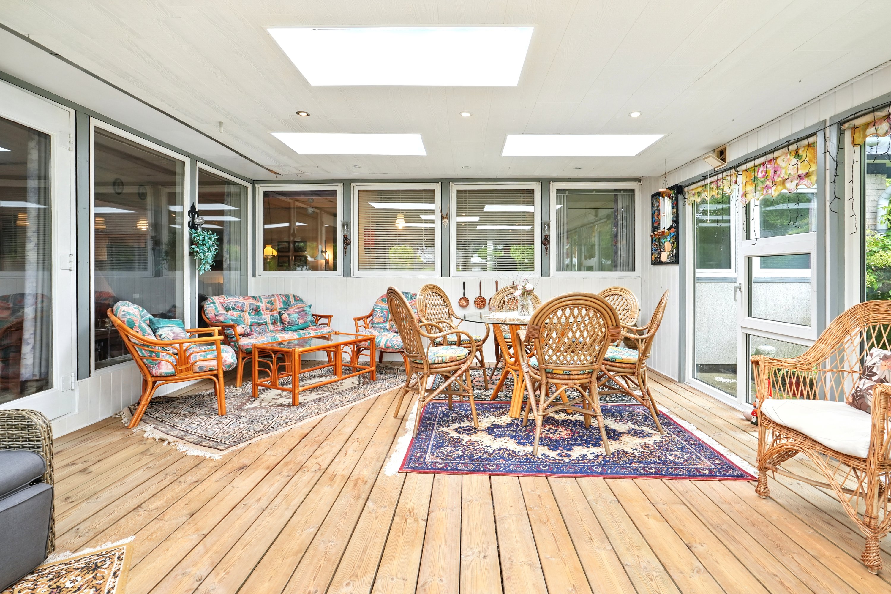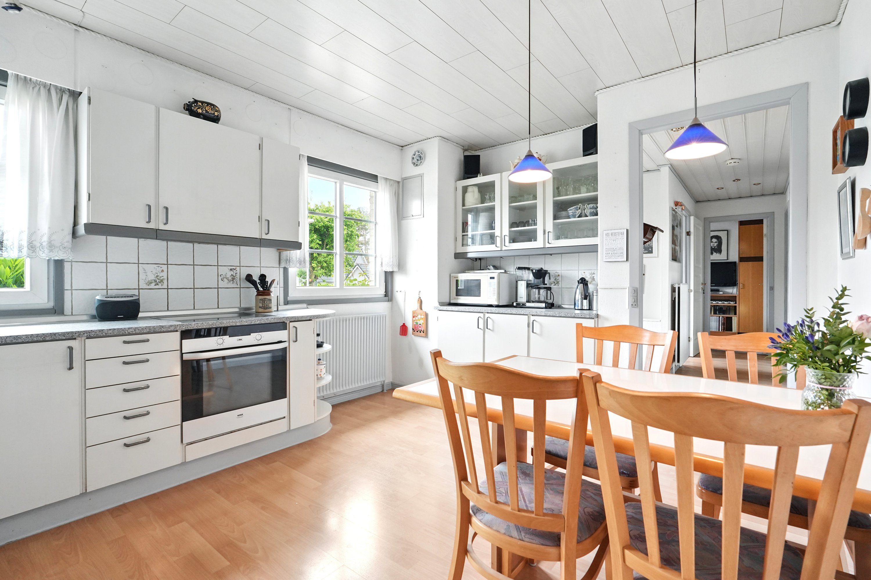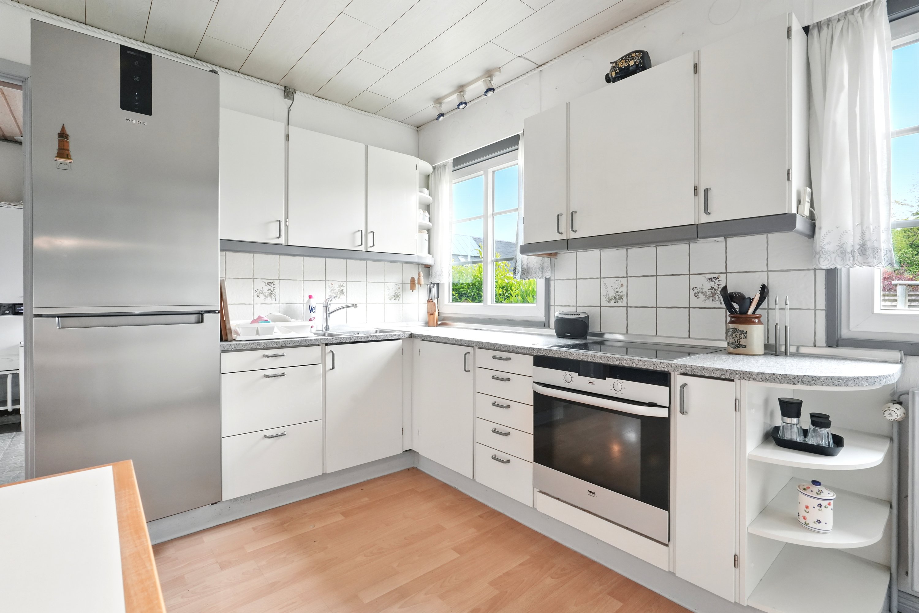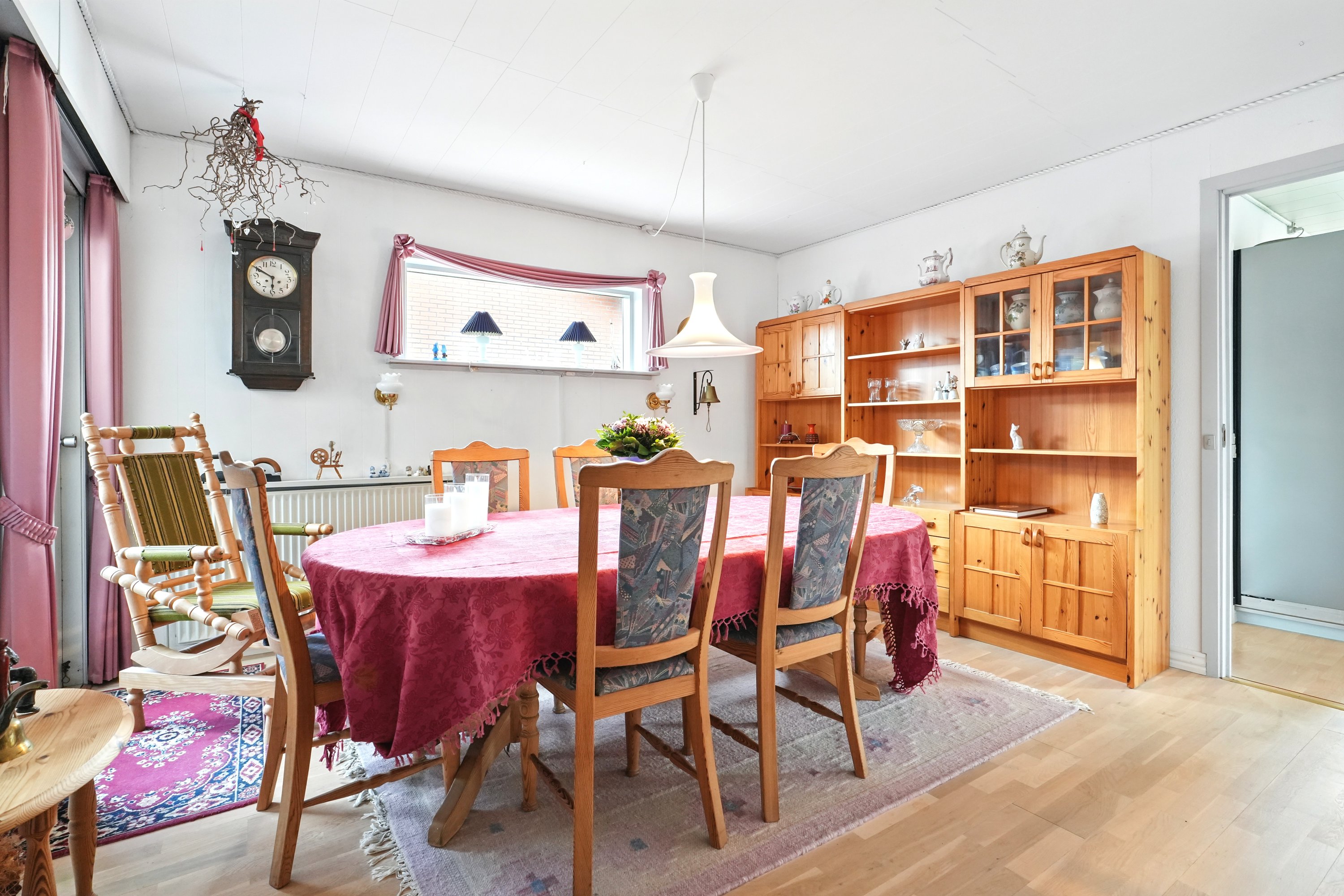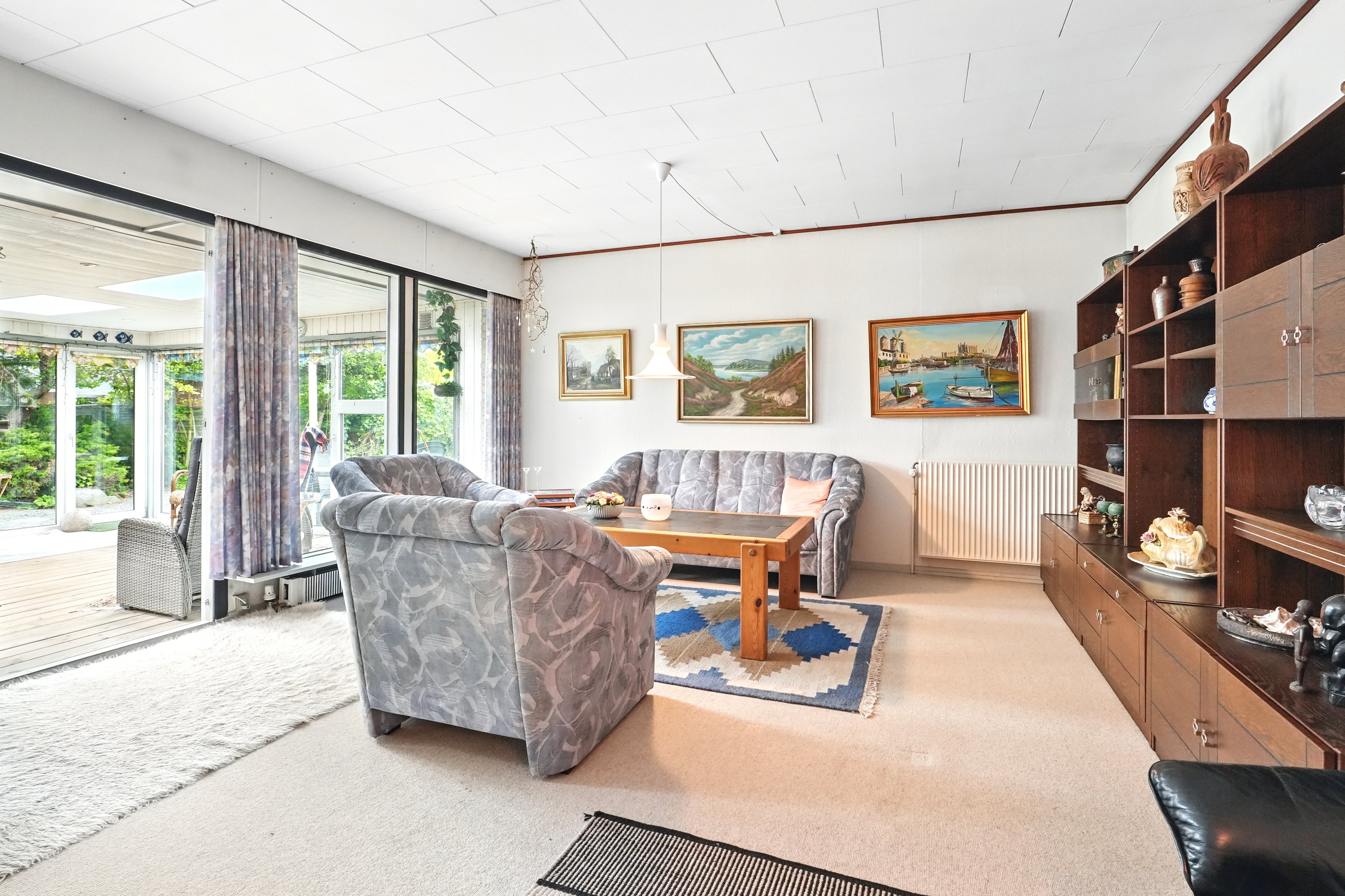 Indenfor mødes du af god plads i alle rum. Her er flere værelser, som giver rig mulighed for både børneværelser, kontor og hobbyrum. Stuen har en god størrelse og fungerer som husets naturlige samlingspunkt. Der er ligeledes en udestue der kan rumme mange gæster. Køkkenet indbyder til at blive tænkt videre – her er der plads til at skabe sit eget udtryk.