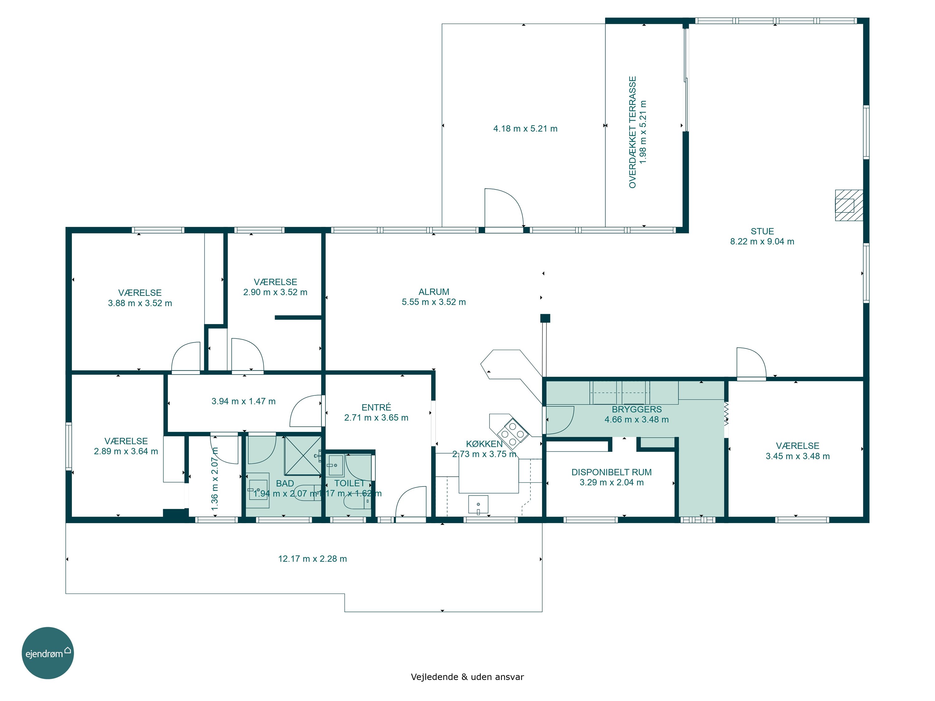 Bryggerset har plads til de praktiske gøremål. Hertil har man yderligere et disponibelt rum, som kan bruges specifikt til vaskerum. Mulighederne er mange, og kun fantasien sætter grænser.