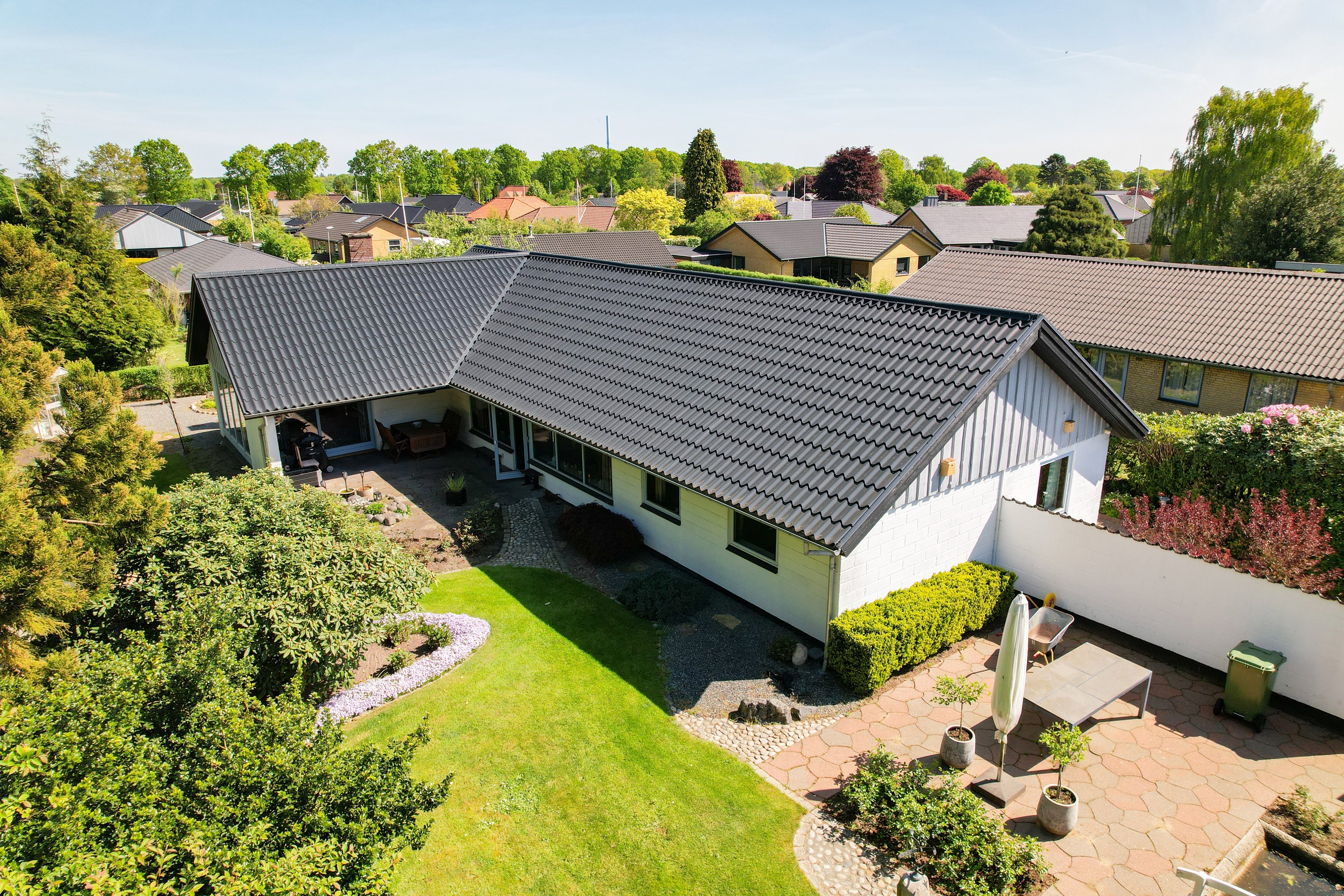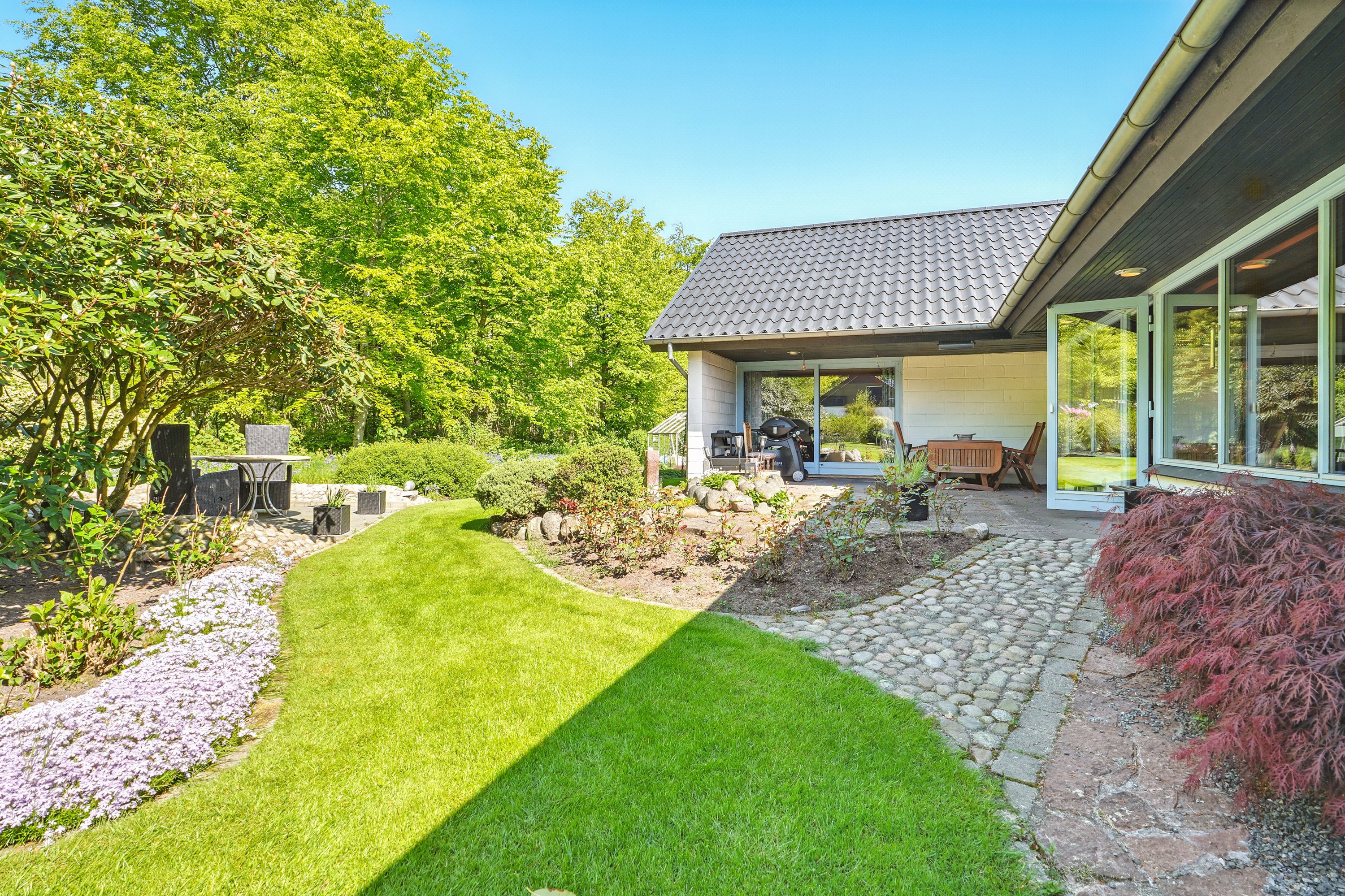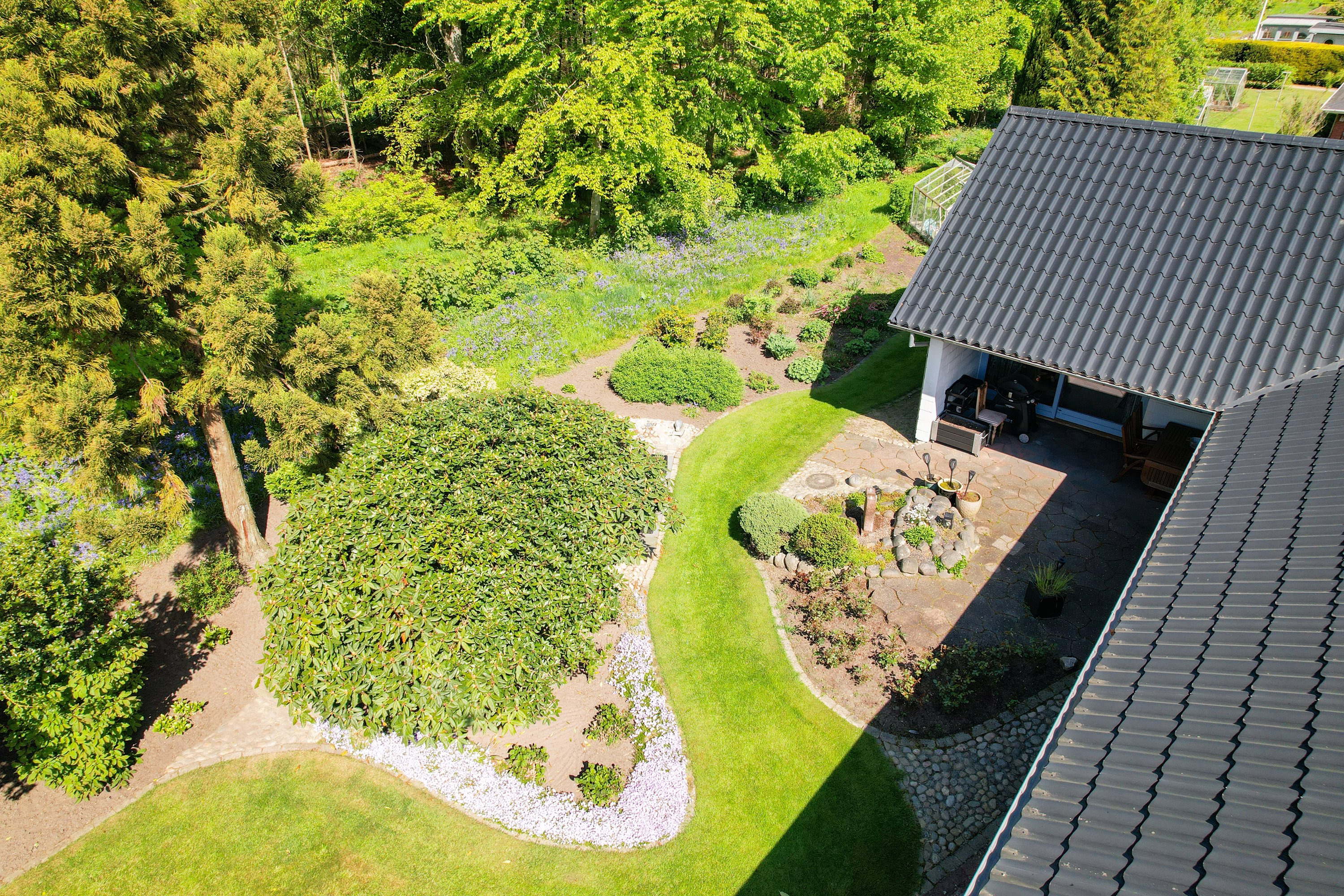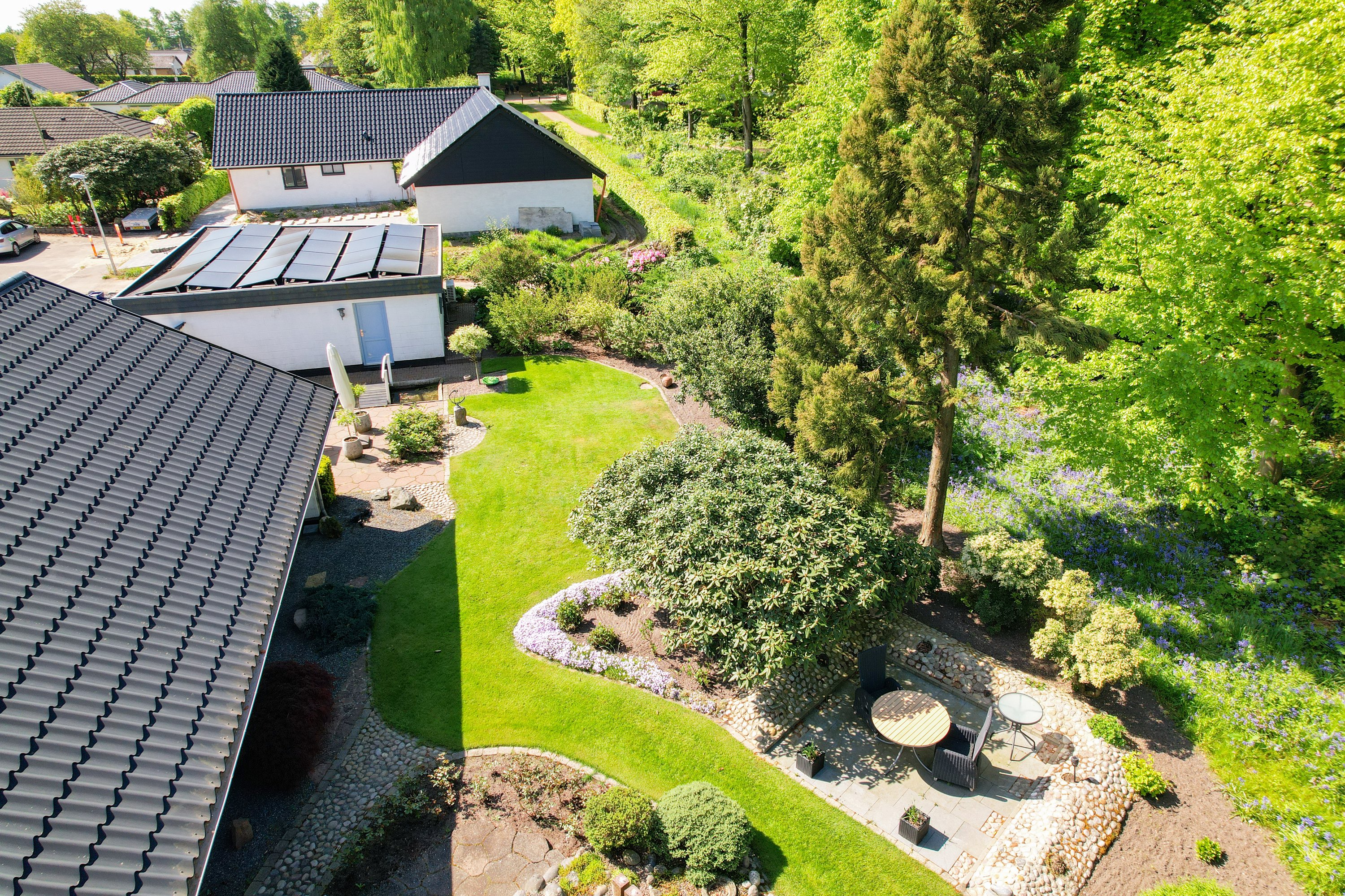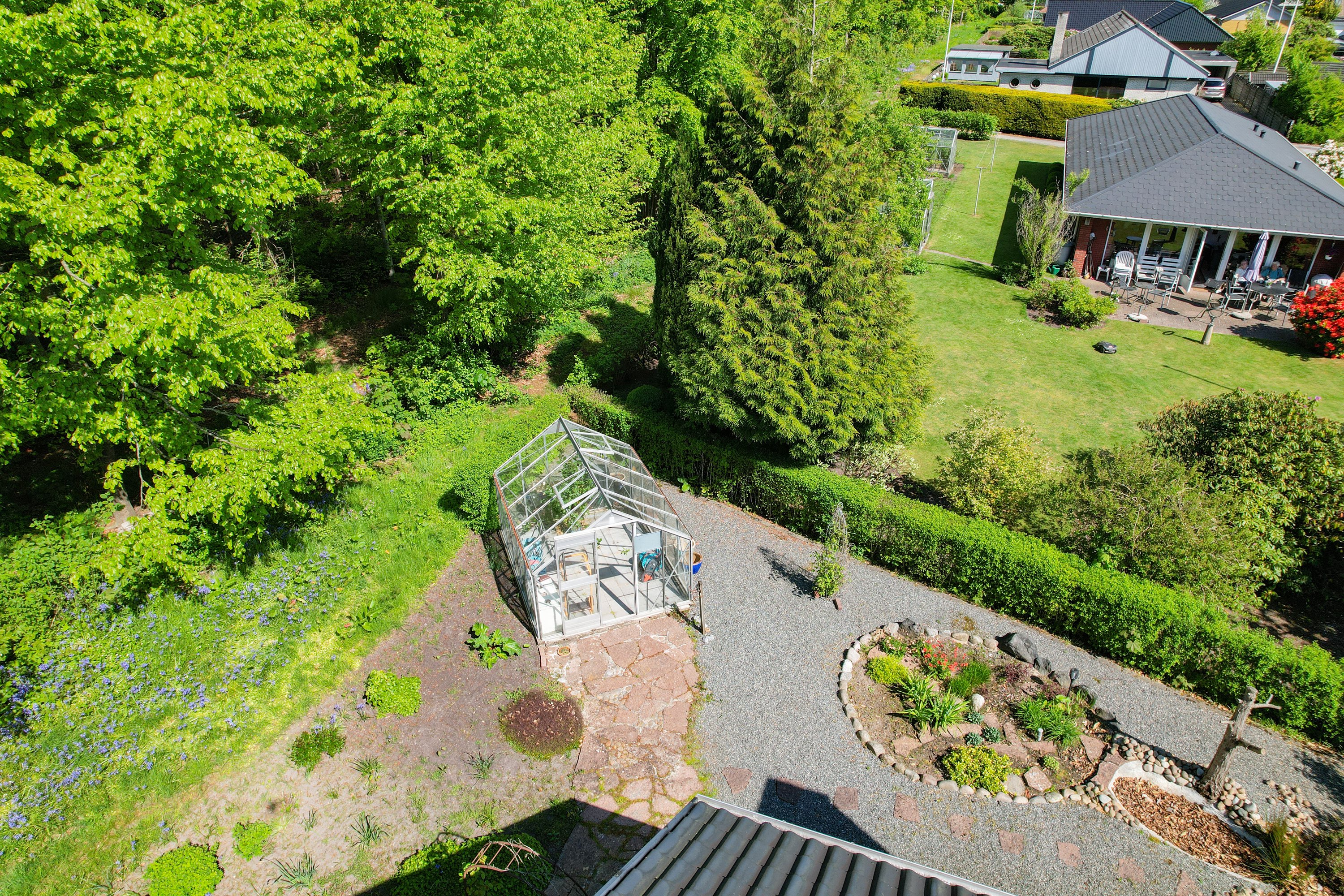 Den smukke og velanlagte have og terrasse, indbyder til mange hyggelige stunder for hele familien. Her er der plads til leg og samvær. Dertil følger en stor dobbelt garage med værksted. En super afdeling, hvor også gør-det-selv-manden kan udleve sin drøm.