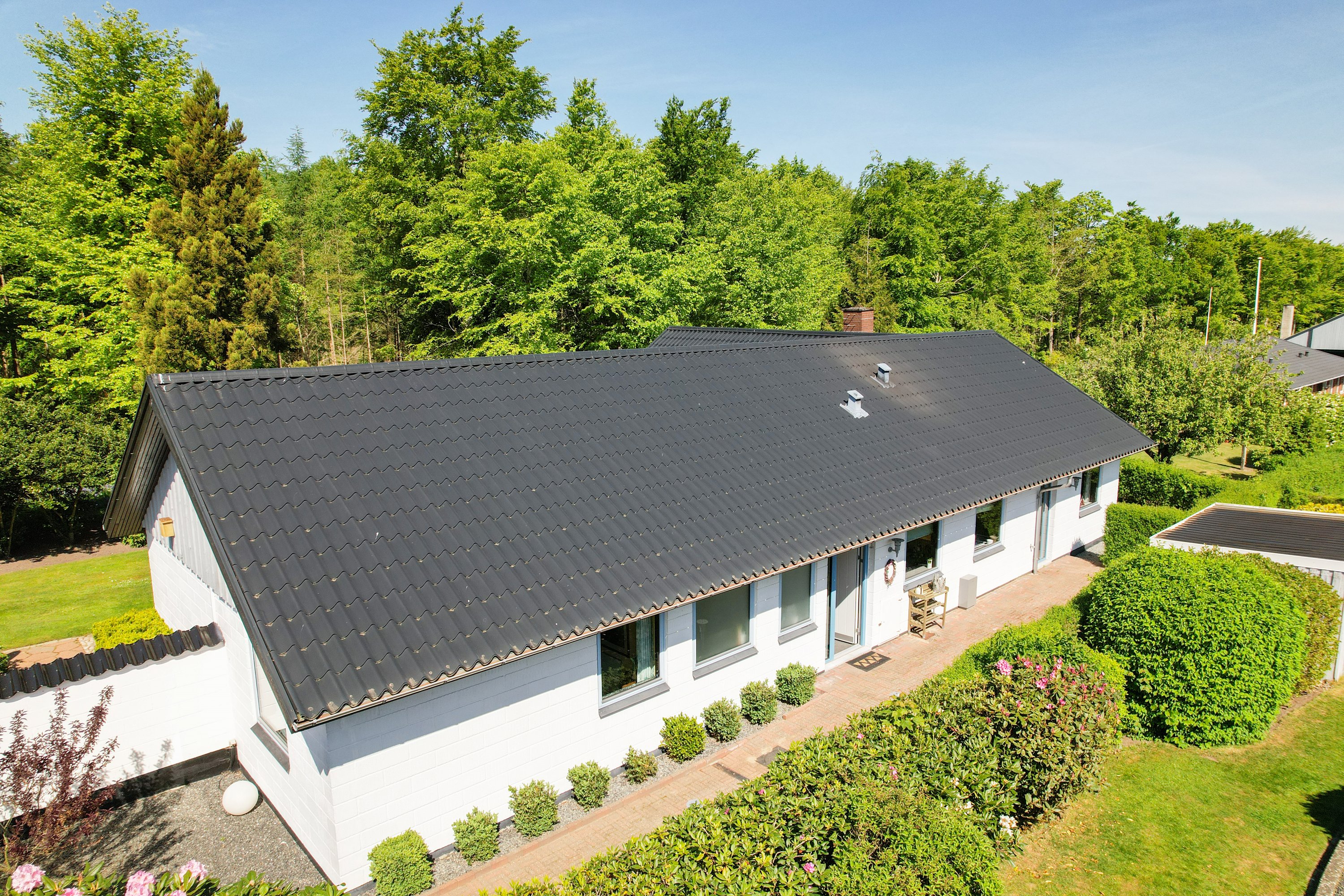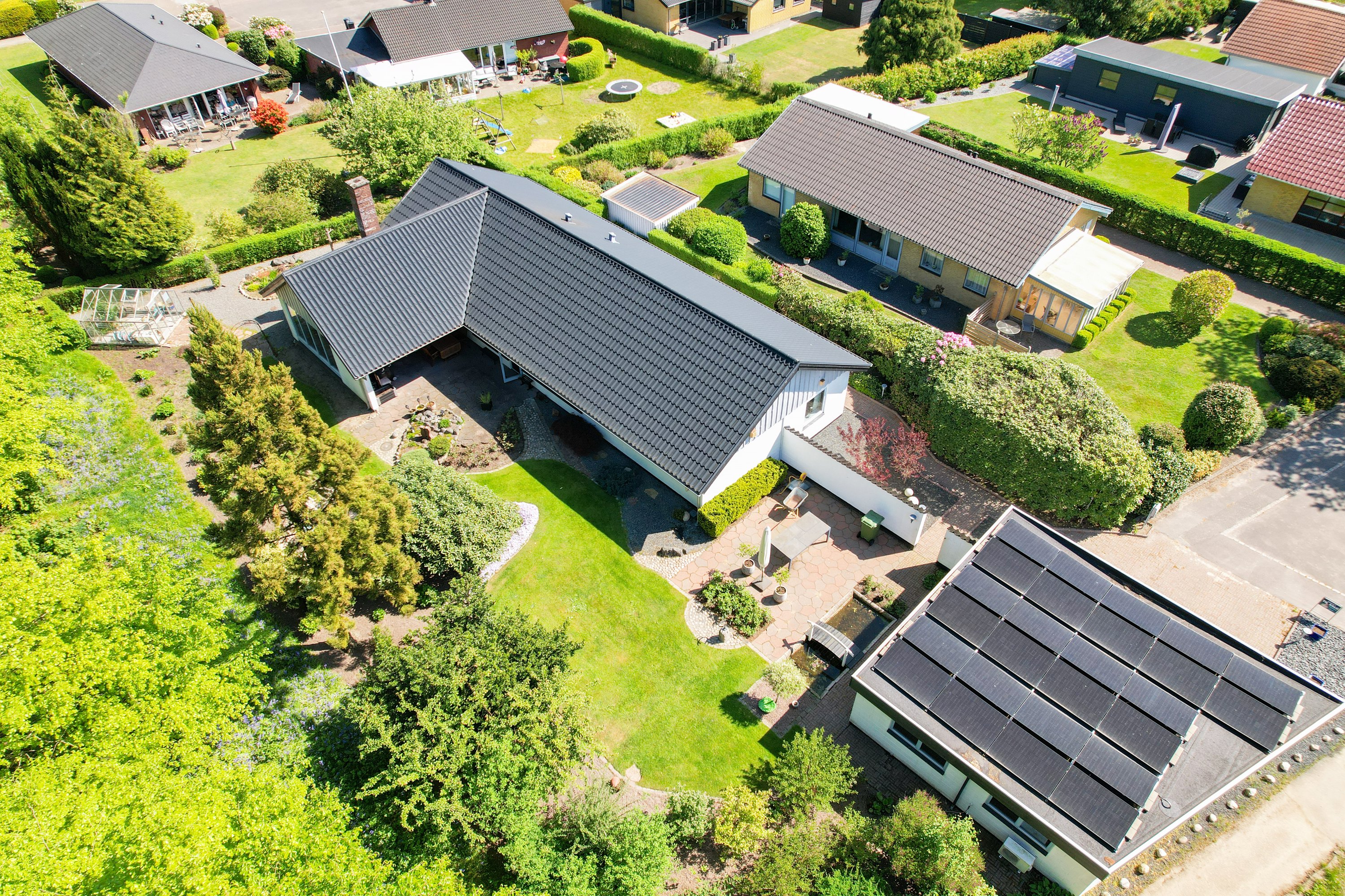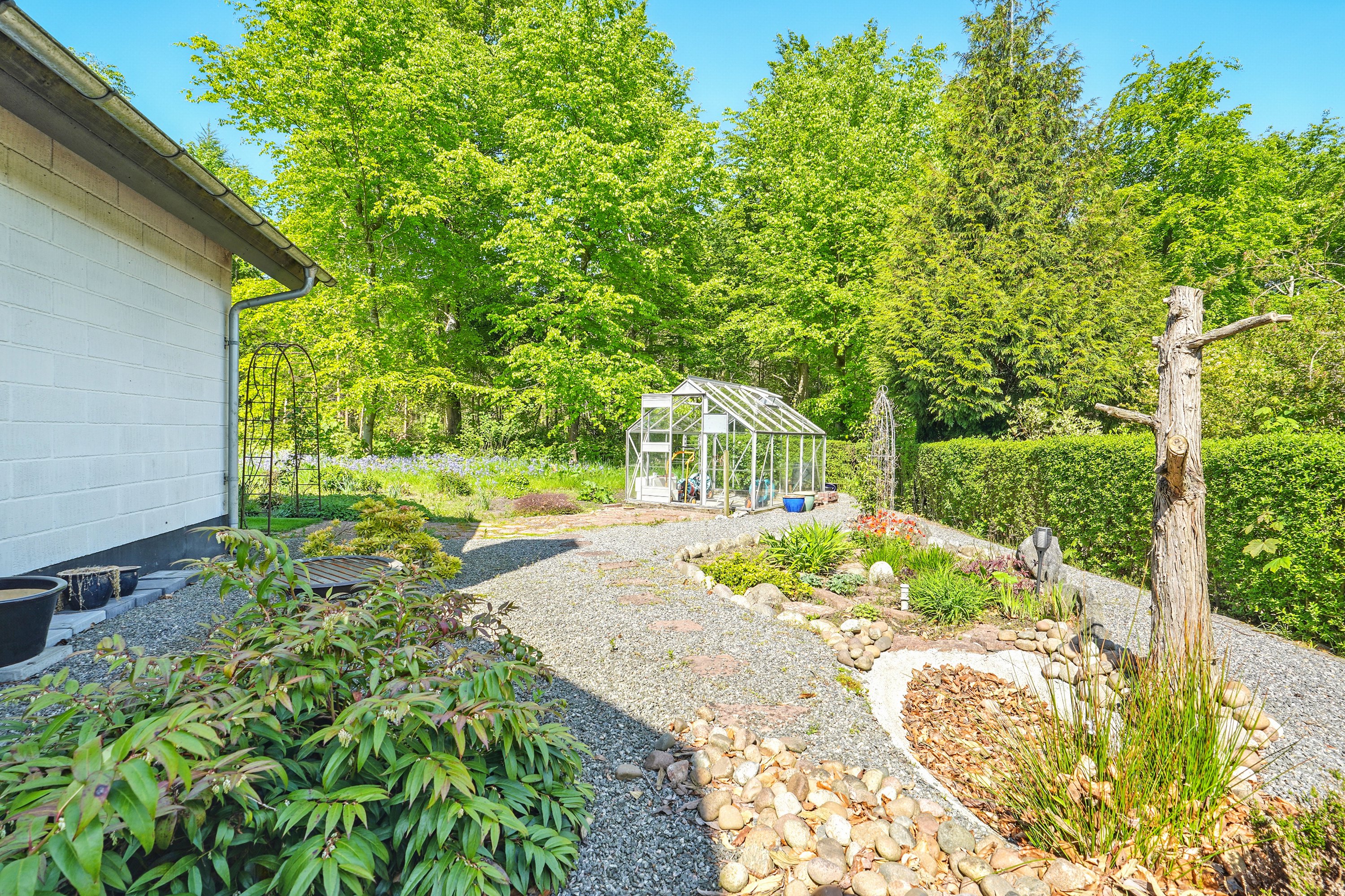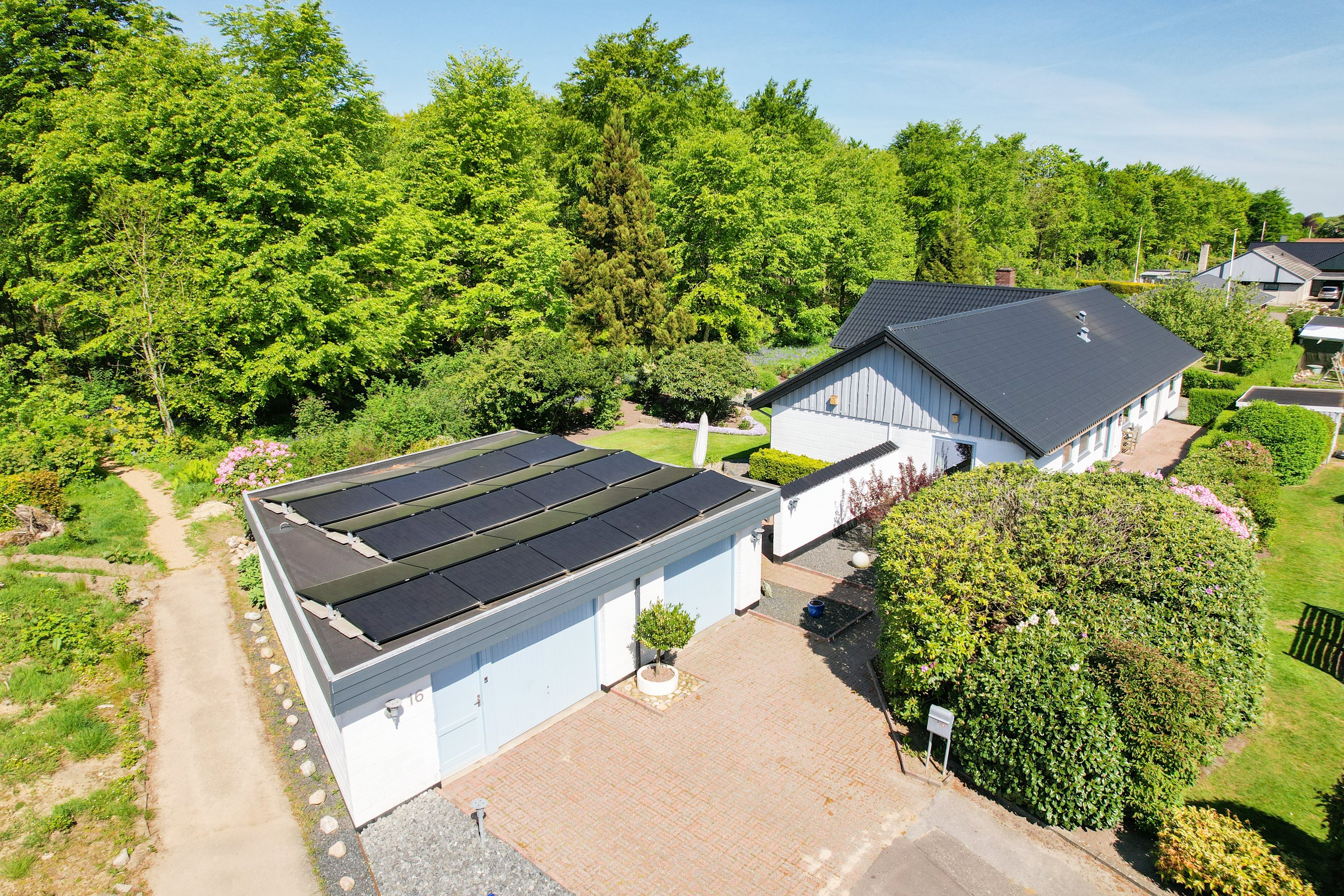 Den smukke og velanlagte have og terrasse, indbyder til mange hyggelige stunder for hele familien. Her er der plads til leg og samvær. Dertil følger en stor dobbelt garage med værksted. En super afdeling, hvor også gør-det-selv-manden kan udleve sin drøm.