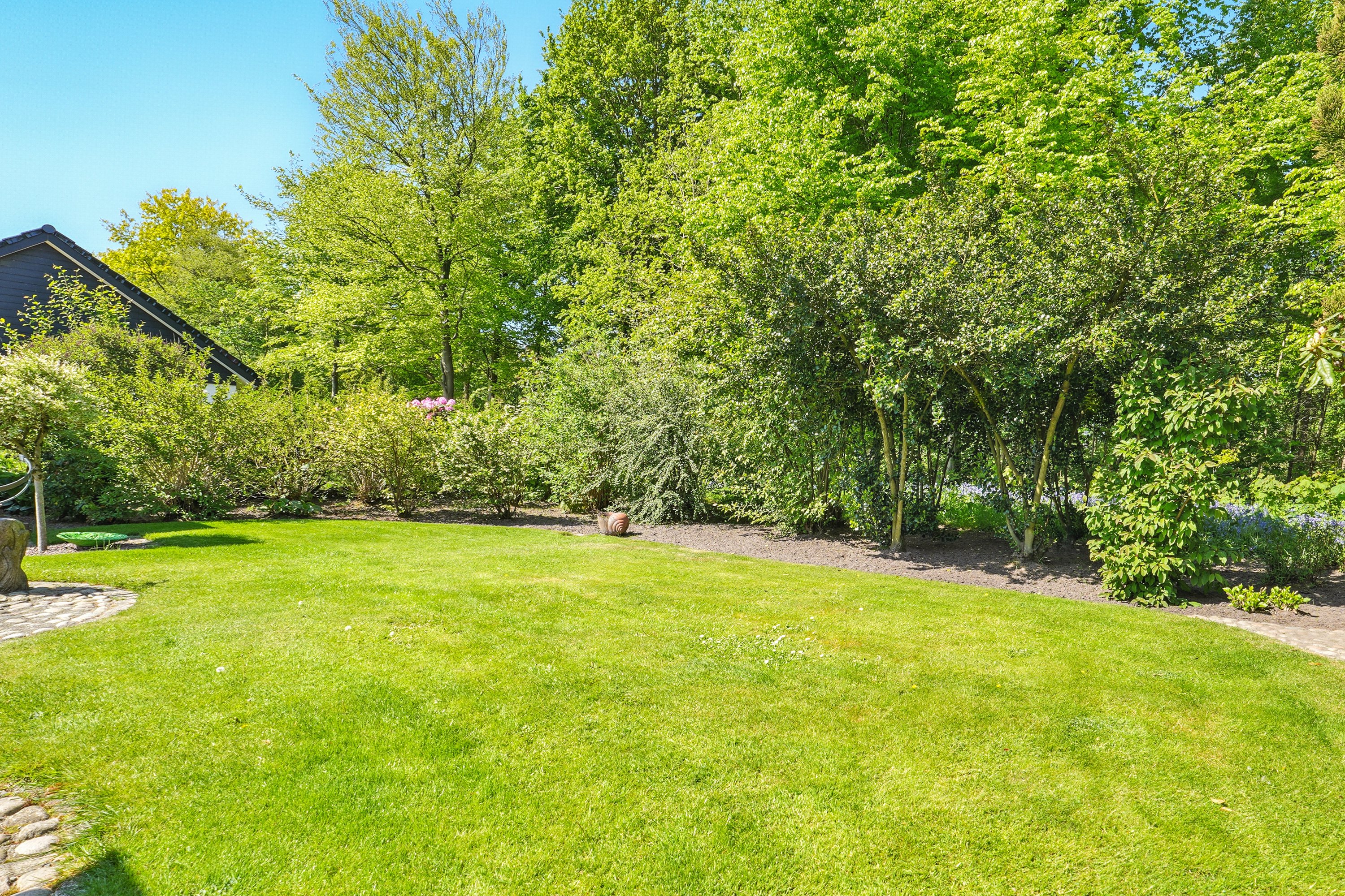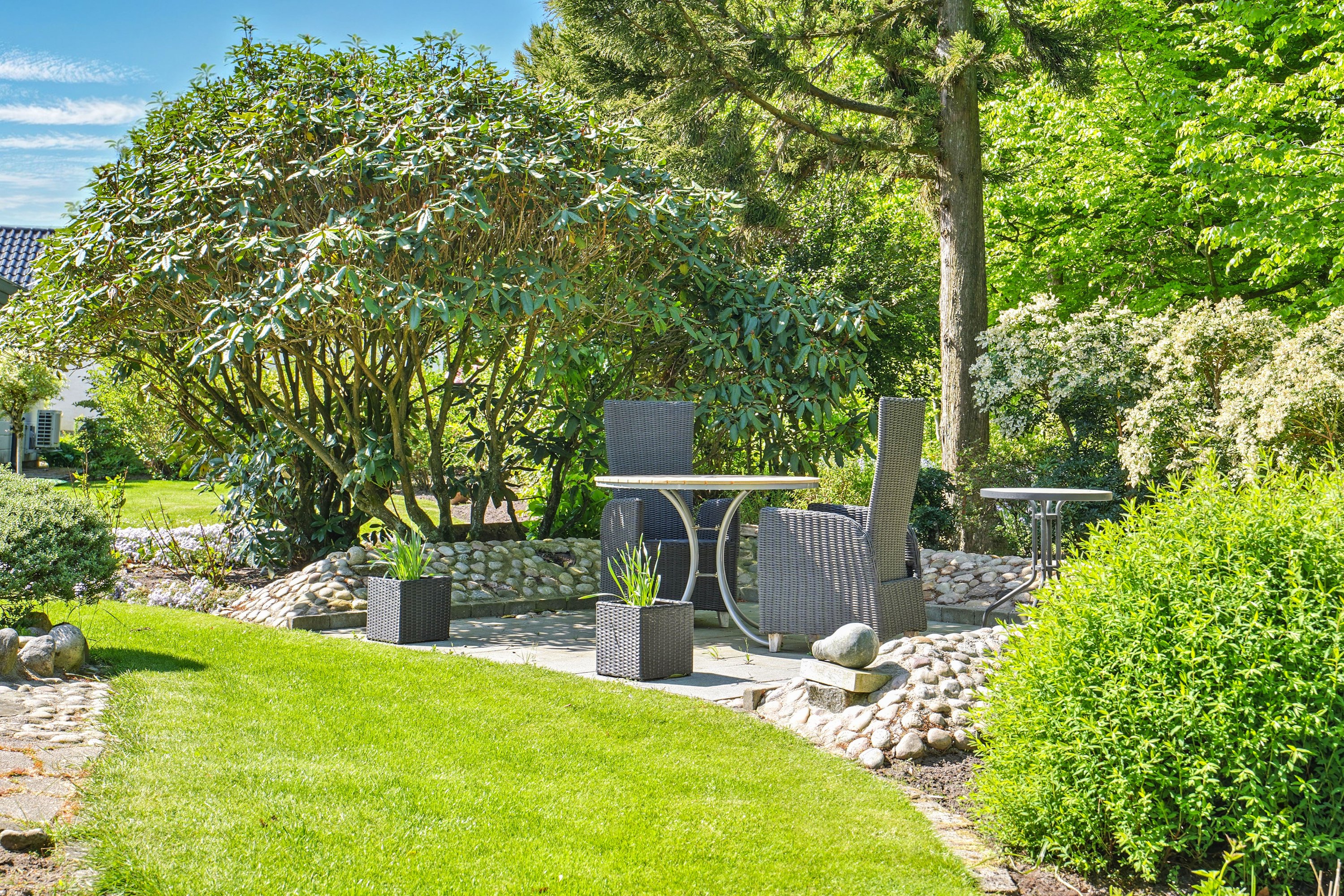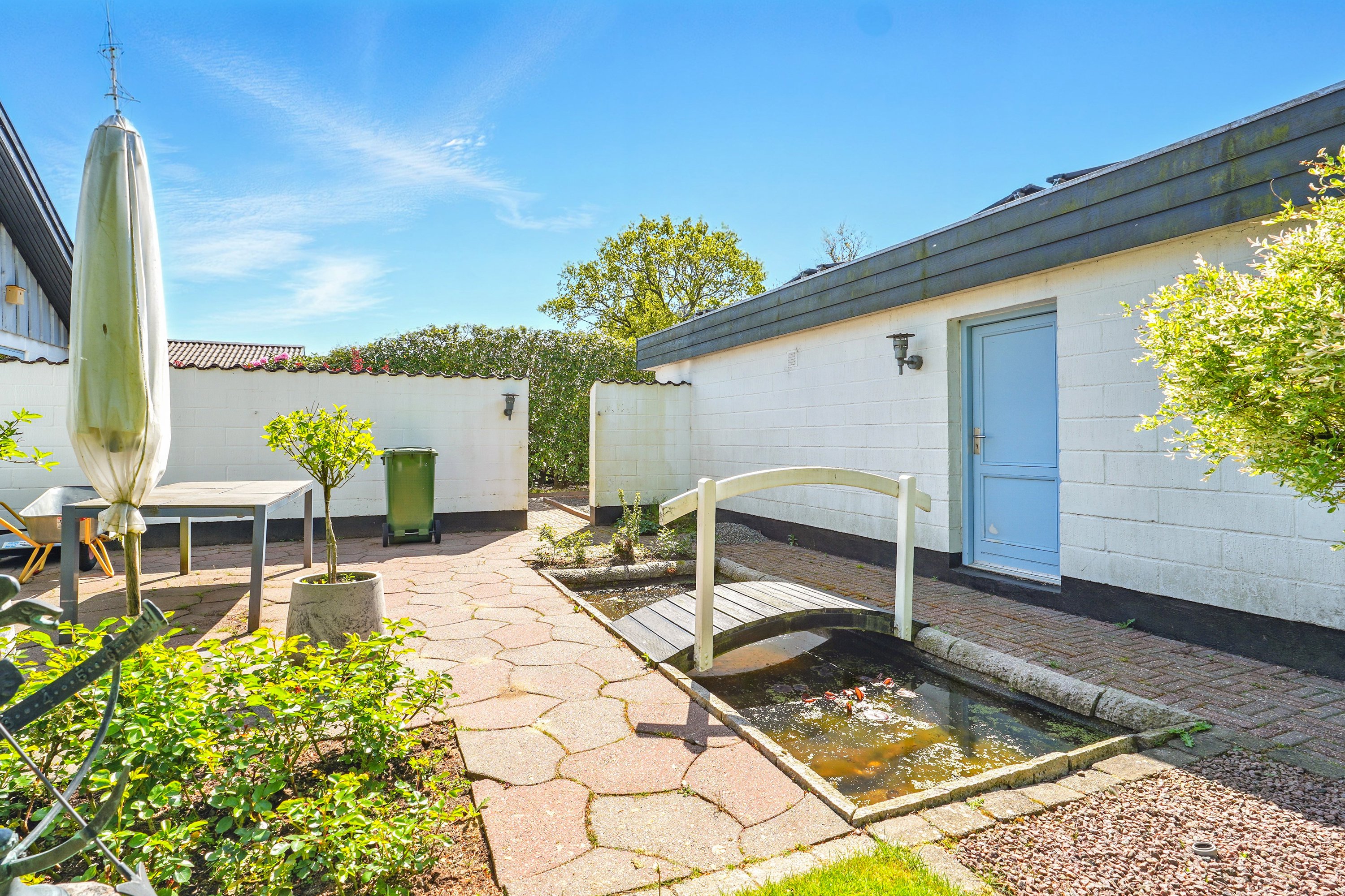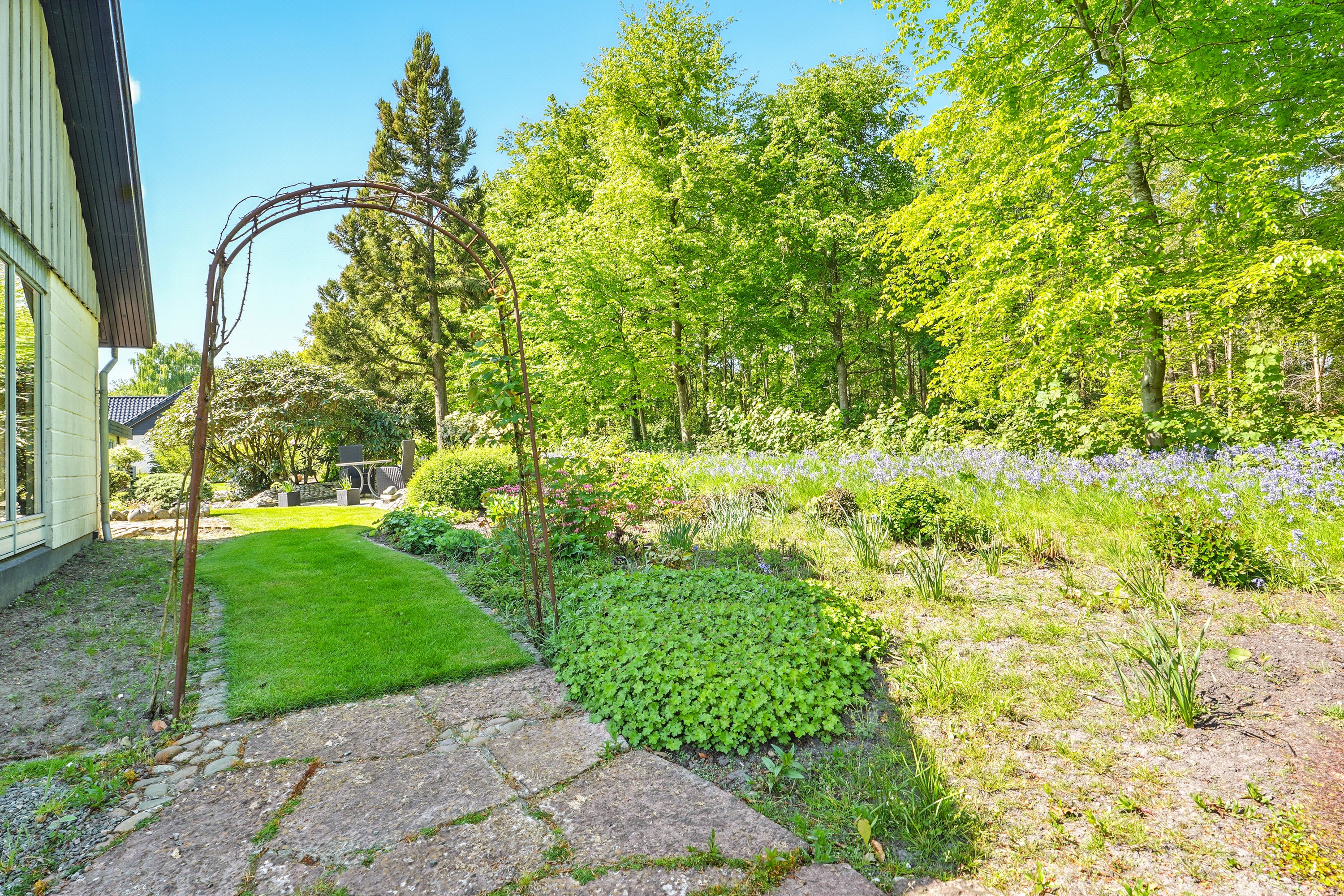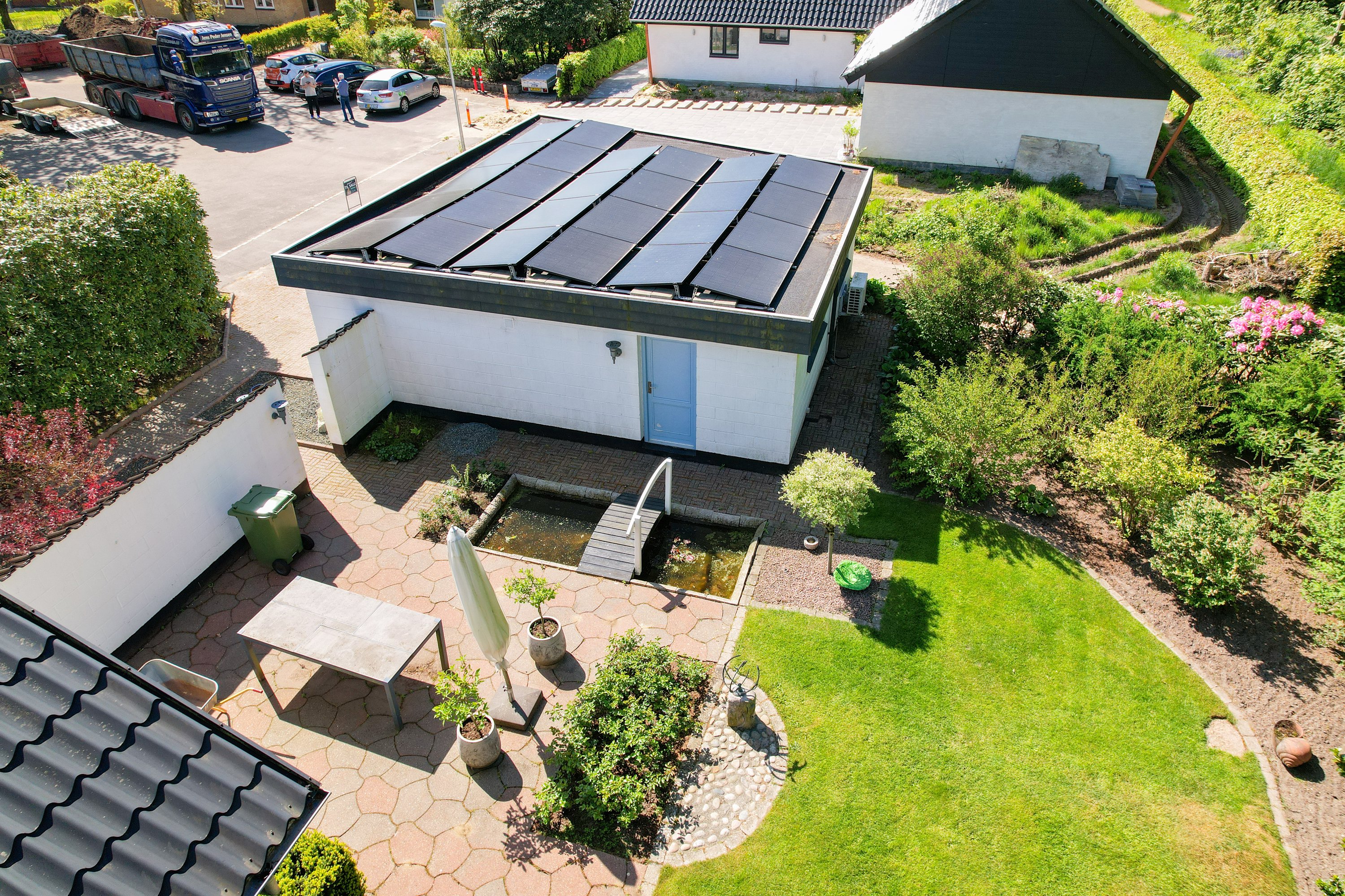 Den smukke og velanlagte have og terrasse, indbyder til mange hyggelige stunder for hele familien. Her er der plads til leg og samvær. Dertil følger en stor dobbelt garage med værksted. En super afdeling, hvor også gør-det-selv-manden kan udleve sin drøm.