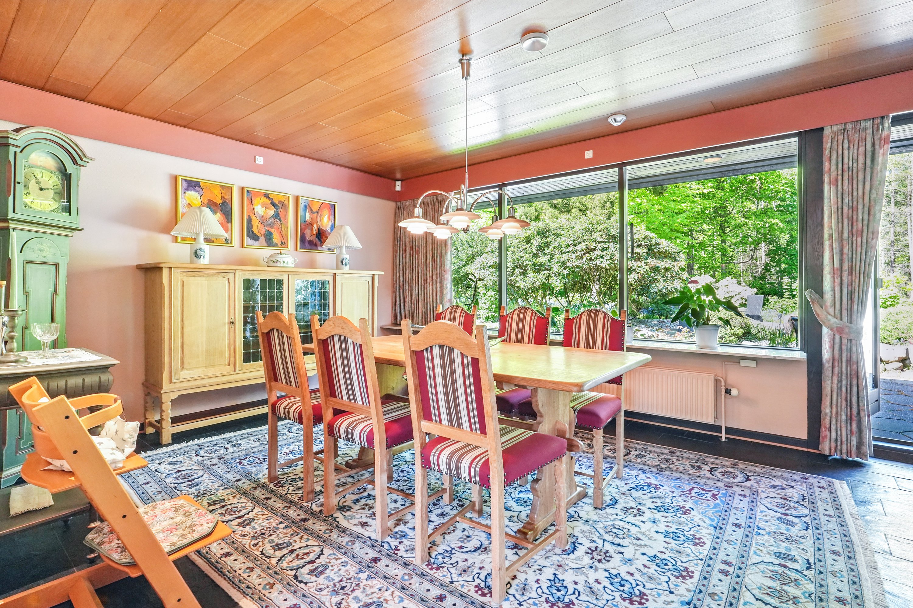 I børneafdelingen er der 3 gode værelser, som er ideel for den pladskrævende familie. I “hjertet” af hjemmet, finder man det åbne køkken/alrum. Her er der gode faciliteter for familien der drømmer om de bedste betingelser, når madlavningen og hverdagen skal klares. I alrummet er der plads til et stort spisebord – herfra har man direkte udgang til den overdækkede terrasse.