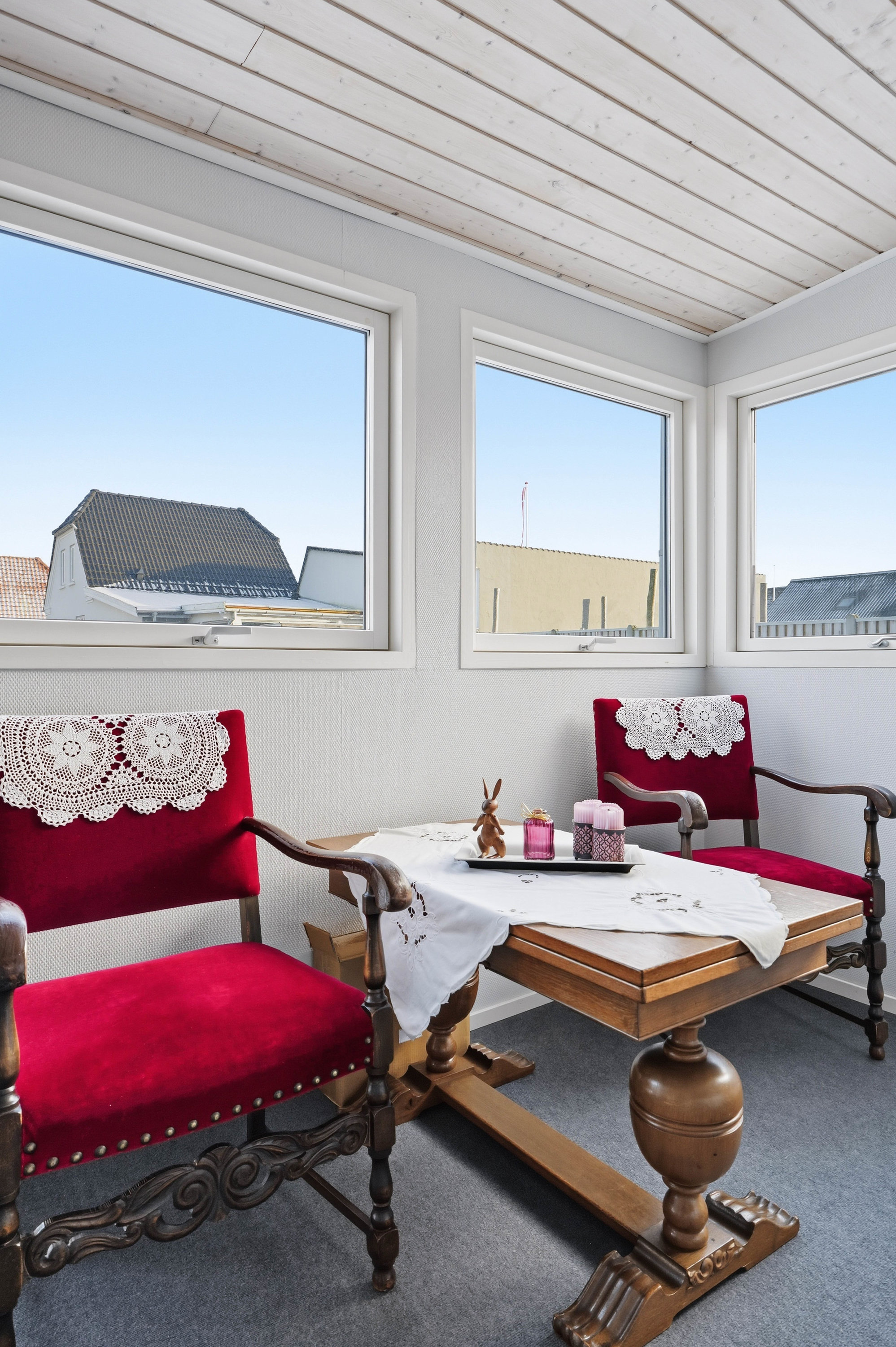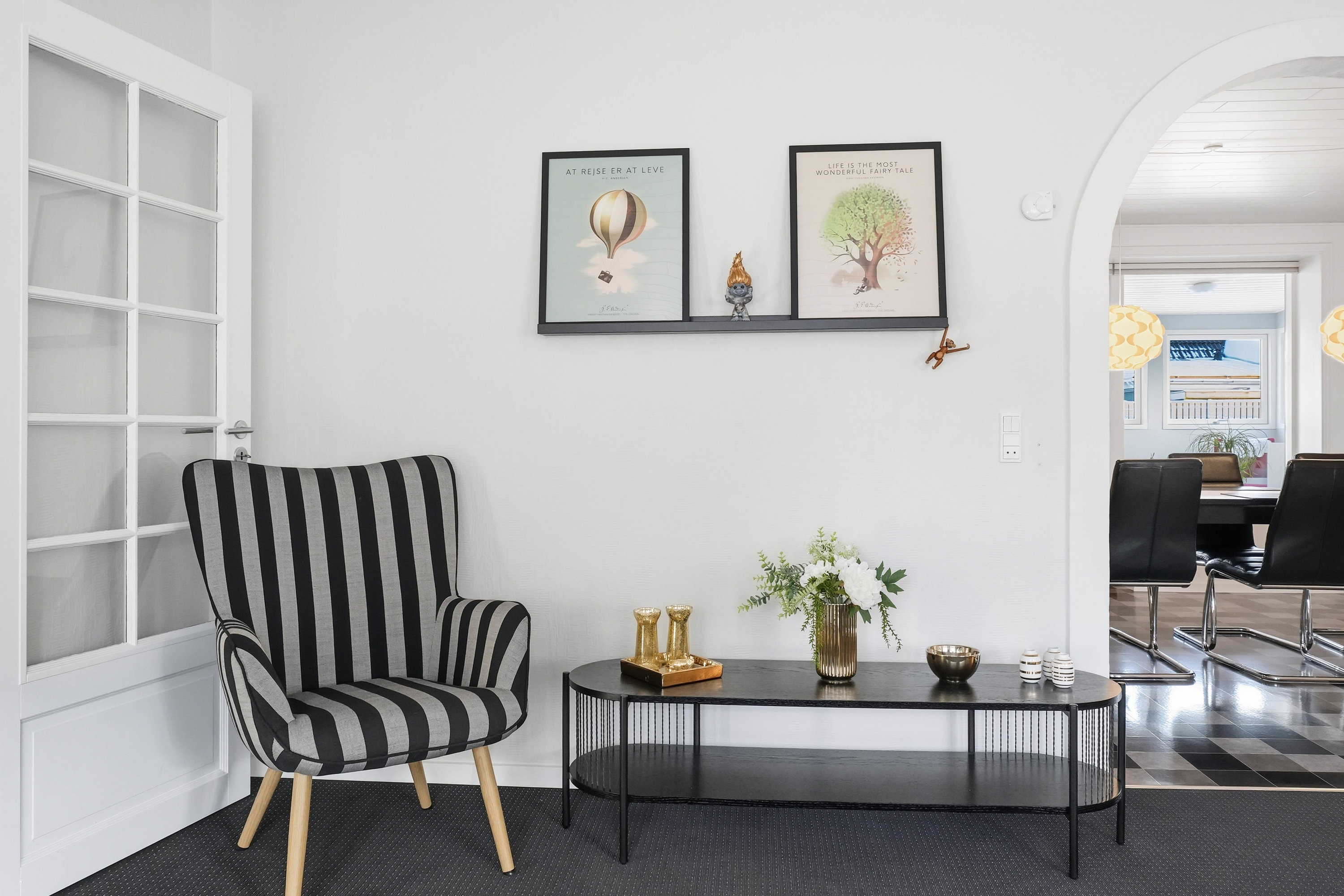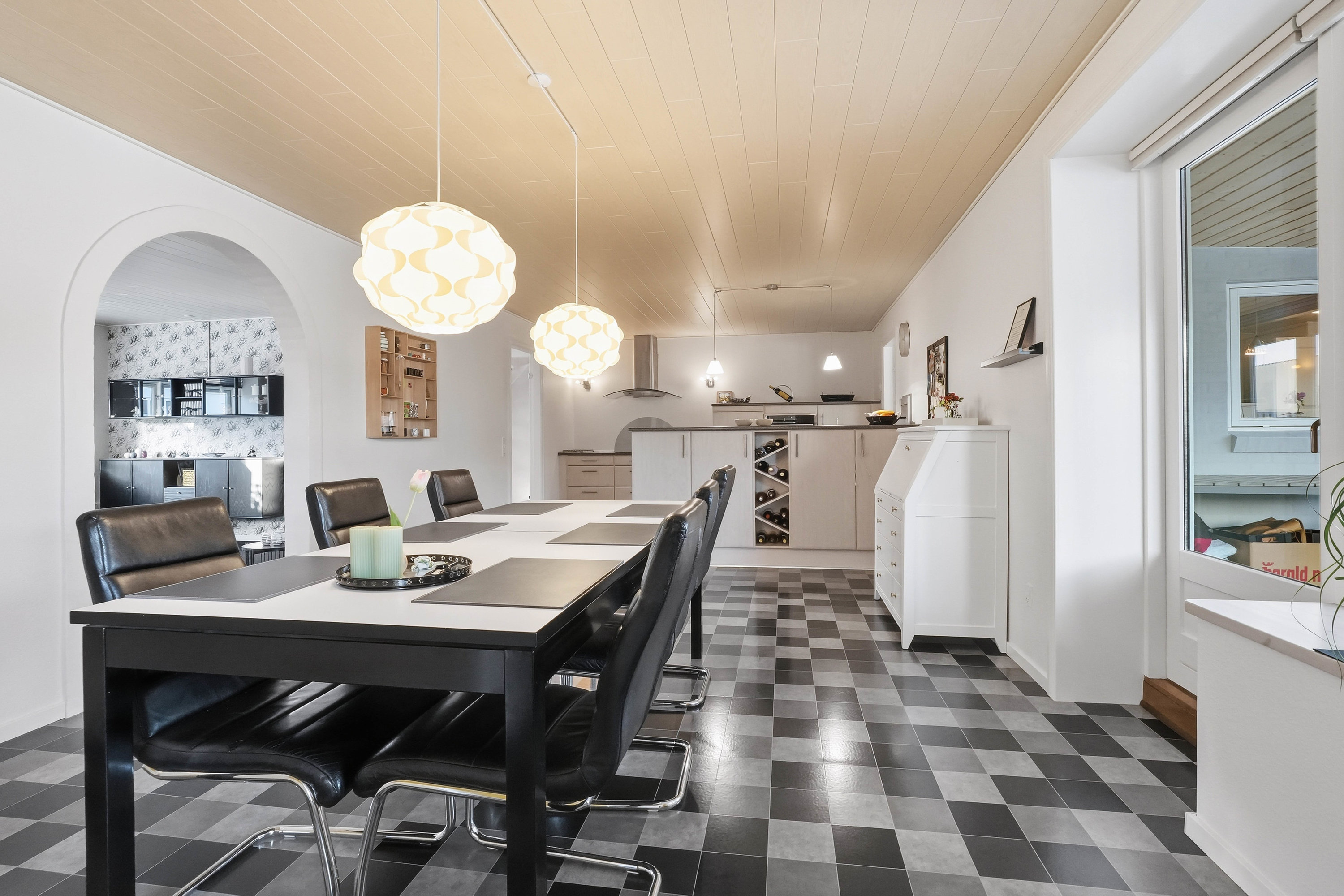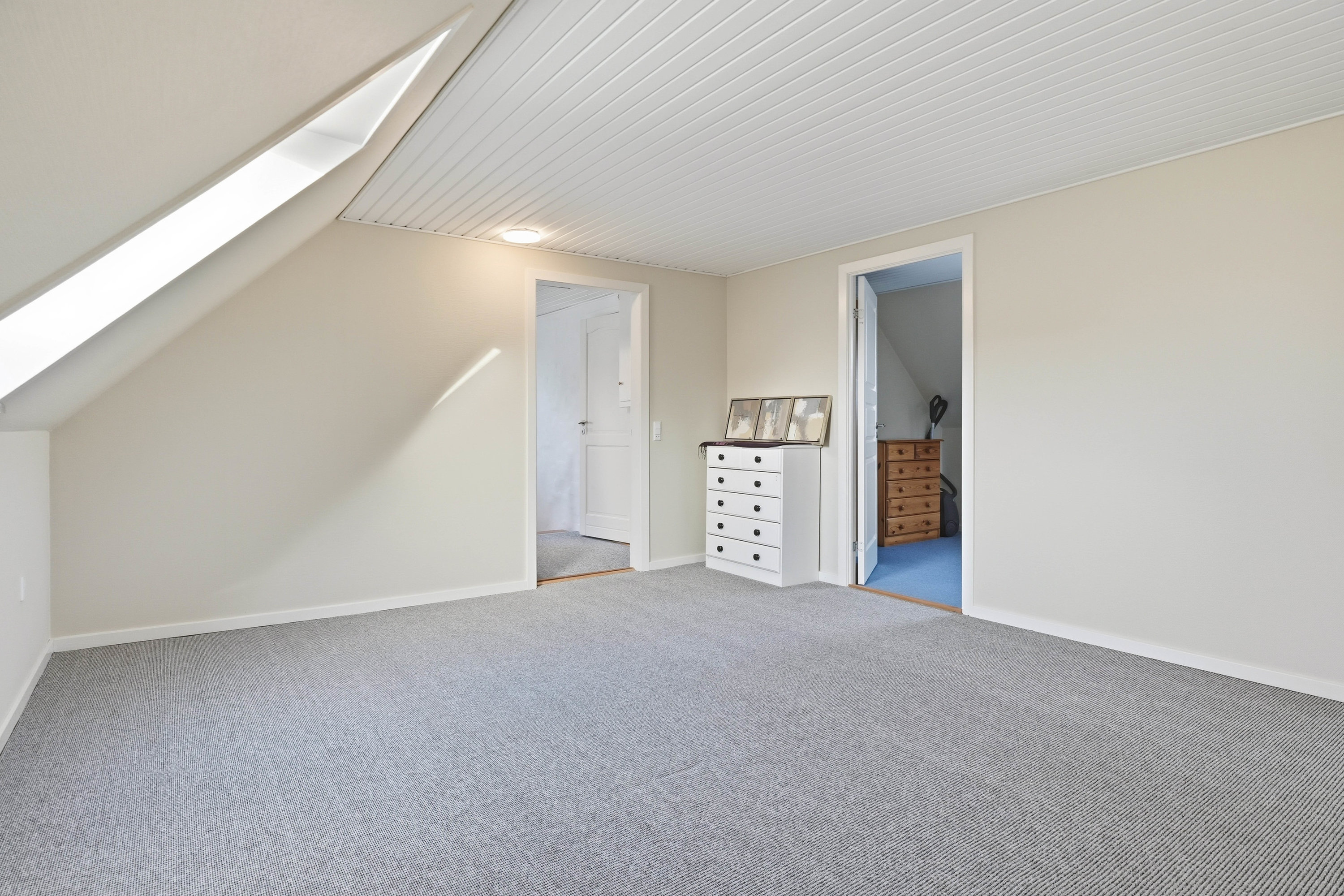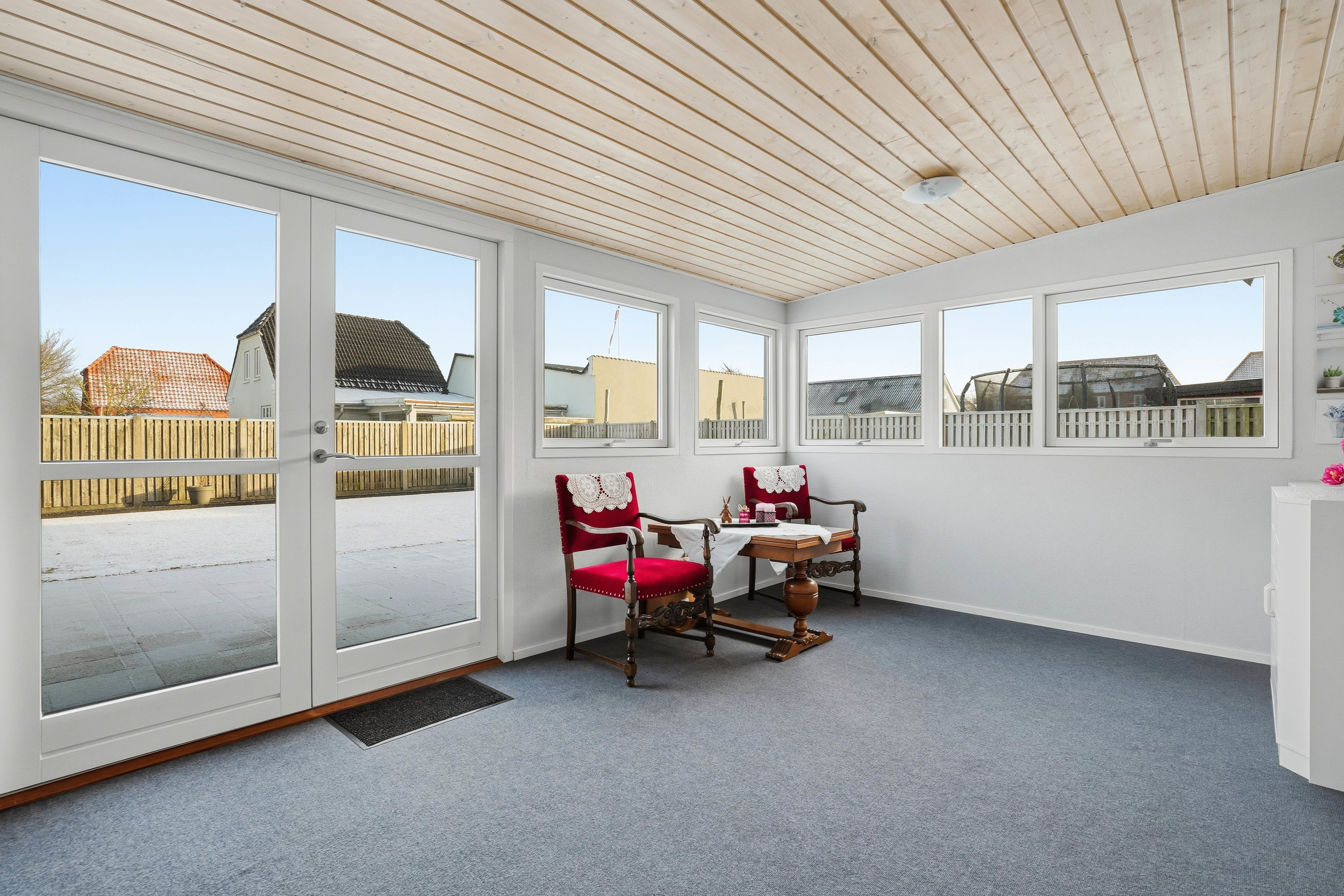 Opholdsstuen er rummelig og indbyder til hyggelige stunder med gode indretningsmuligheder til både sofa- og tv-afdeling. Den naturlige sammenhæng mellem rummene skaber en behagelig atmosfære, som fungerer perfekt til både hverdag og gæstebesøg.