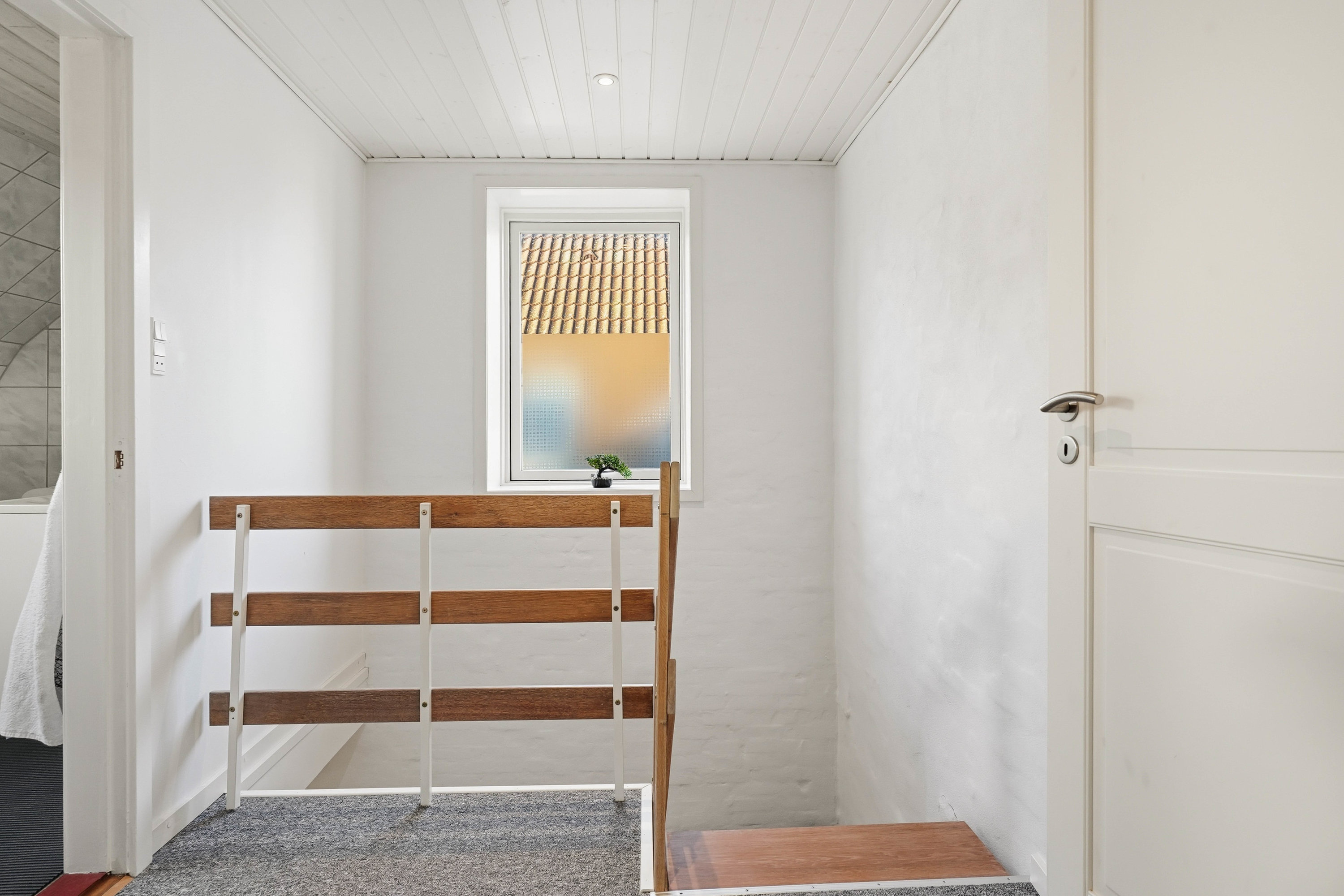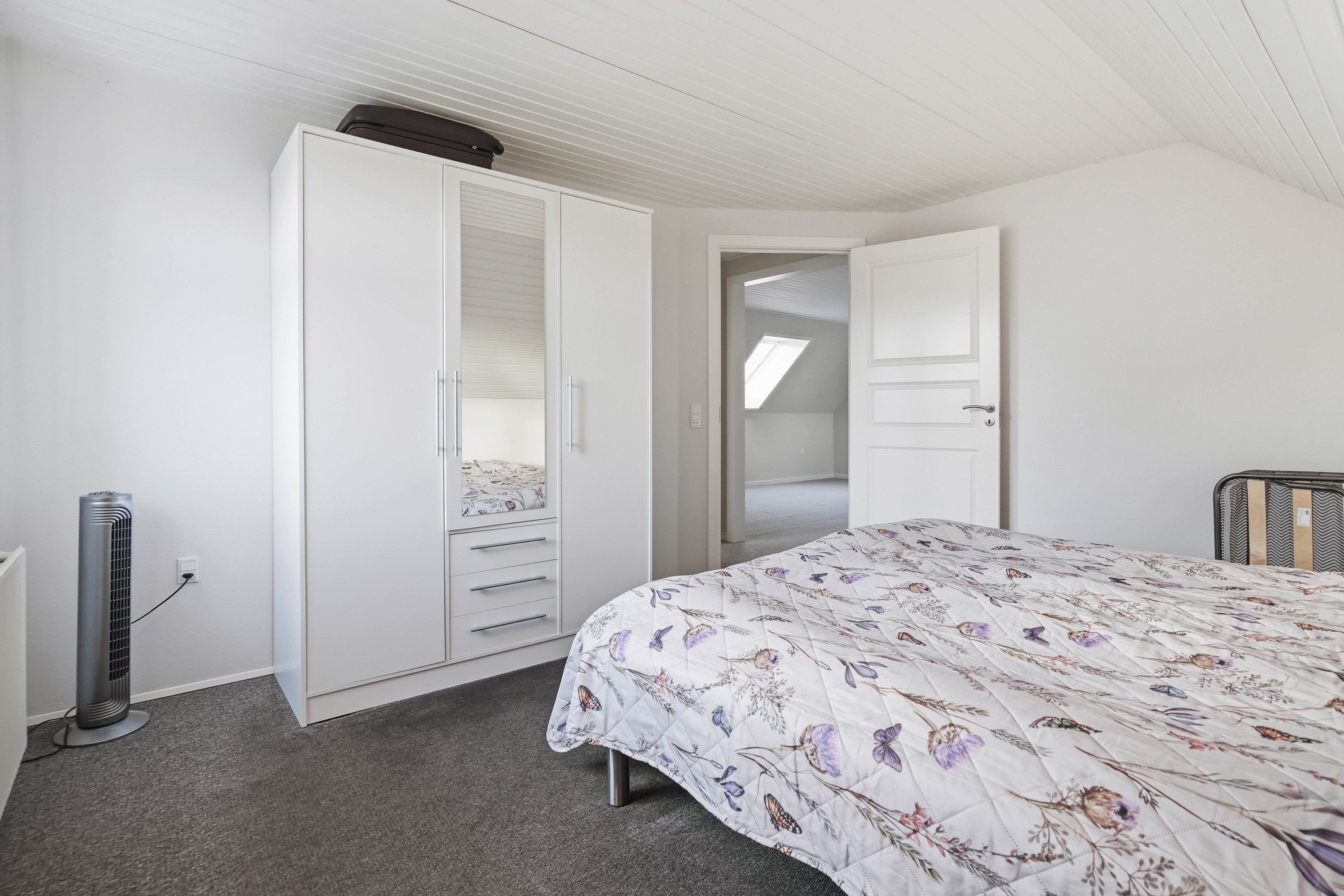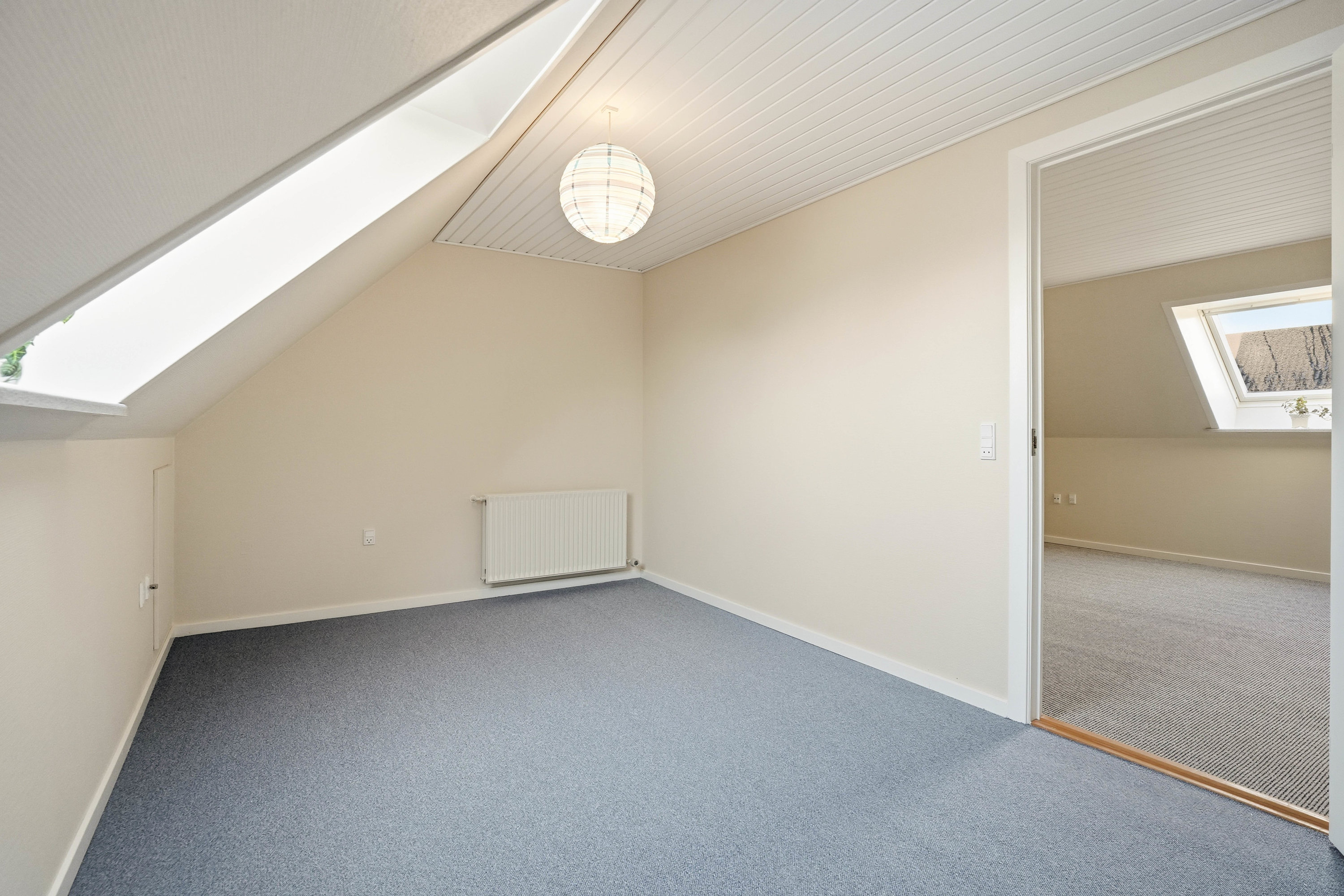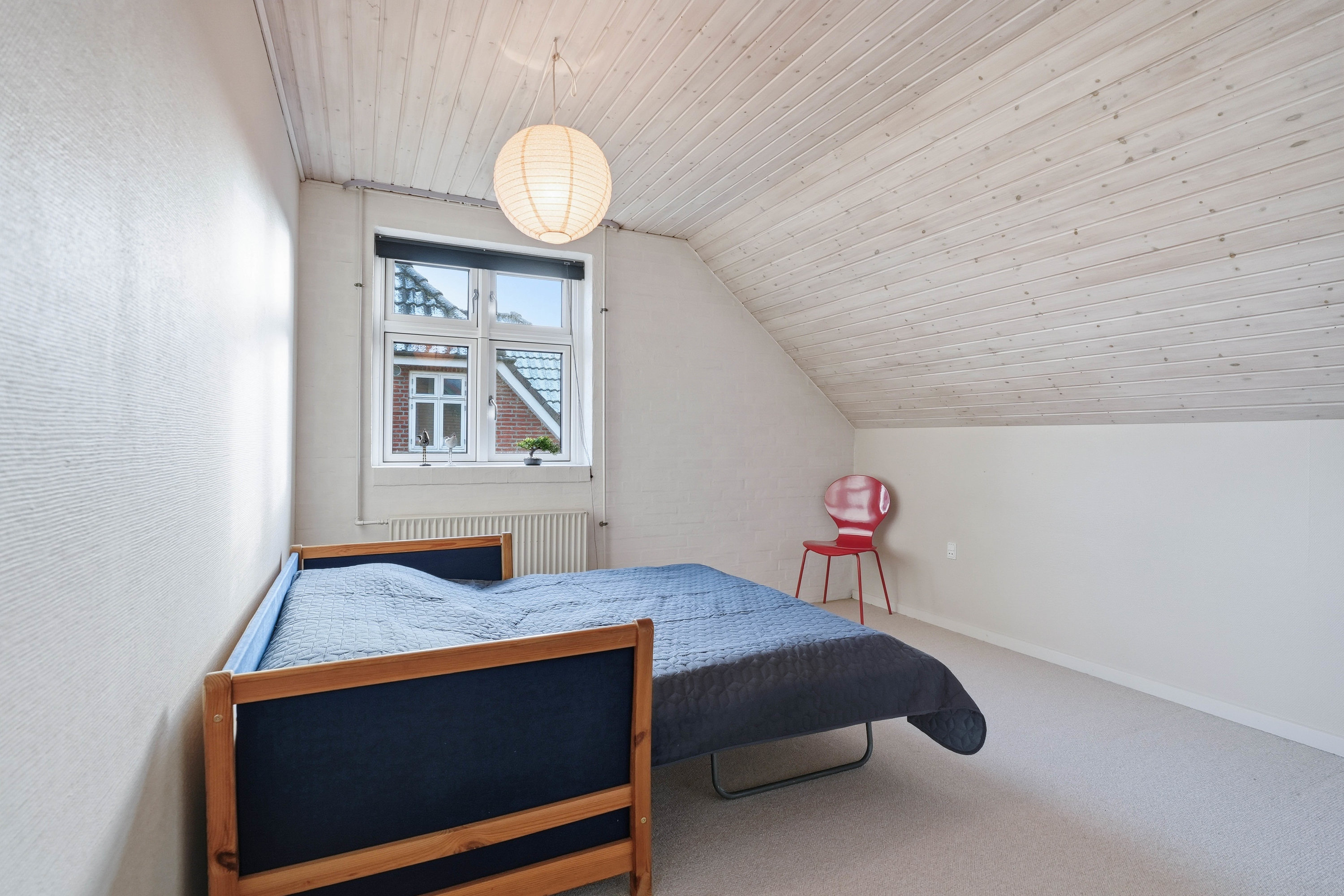 På førstesalen findes en veldisponeret værelsesafdeling med hele fire gode værelser. Her får man et soveværelse samt tre regulære værelser, der nemt kan anvendes til børn, kontor eller hobby. Centralt på etagen ligger et hyggeligt alrum, som giver ekstra opholdsplads og kan indrettes som legeområde, tv-stue, hjemmekontor eller teenageafdeling. Heroppe findes også husets andet badeværelse, hvilket giver ekstra komfort for hele familien.