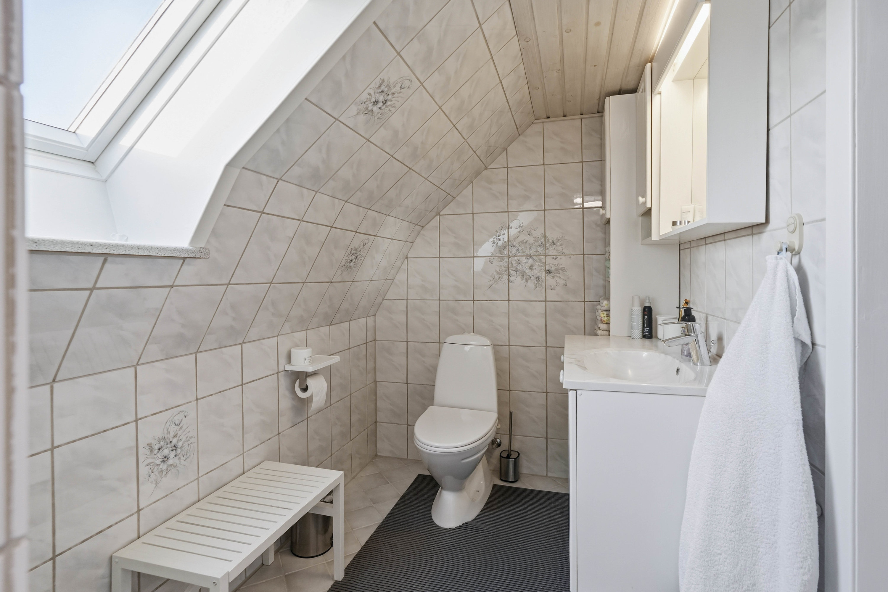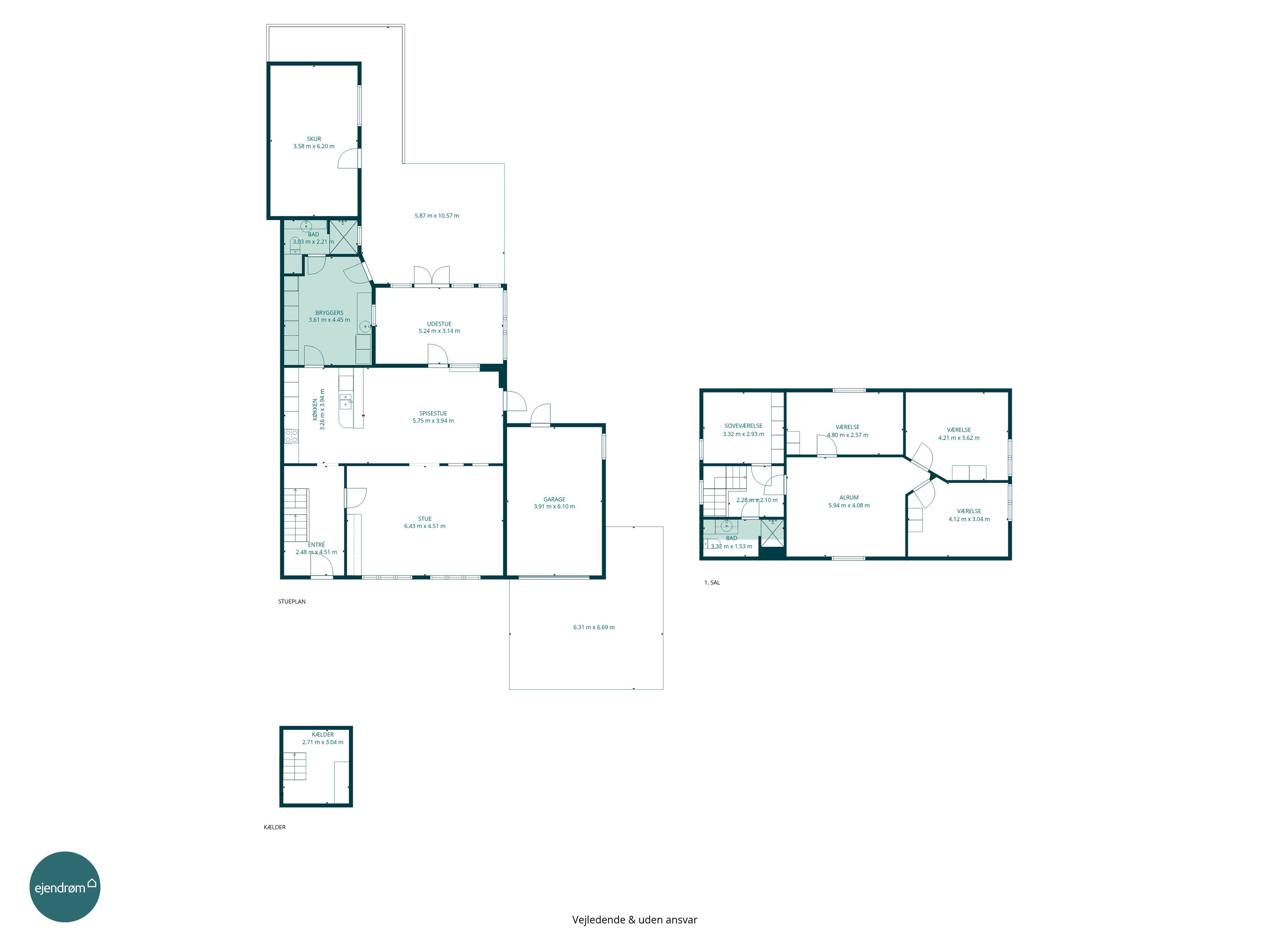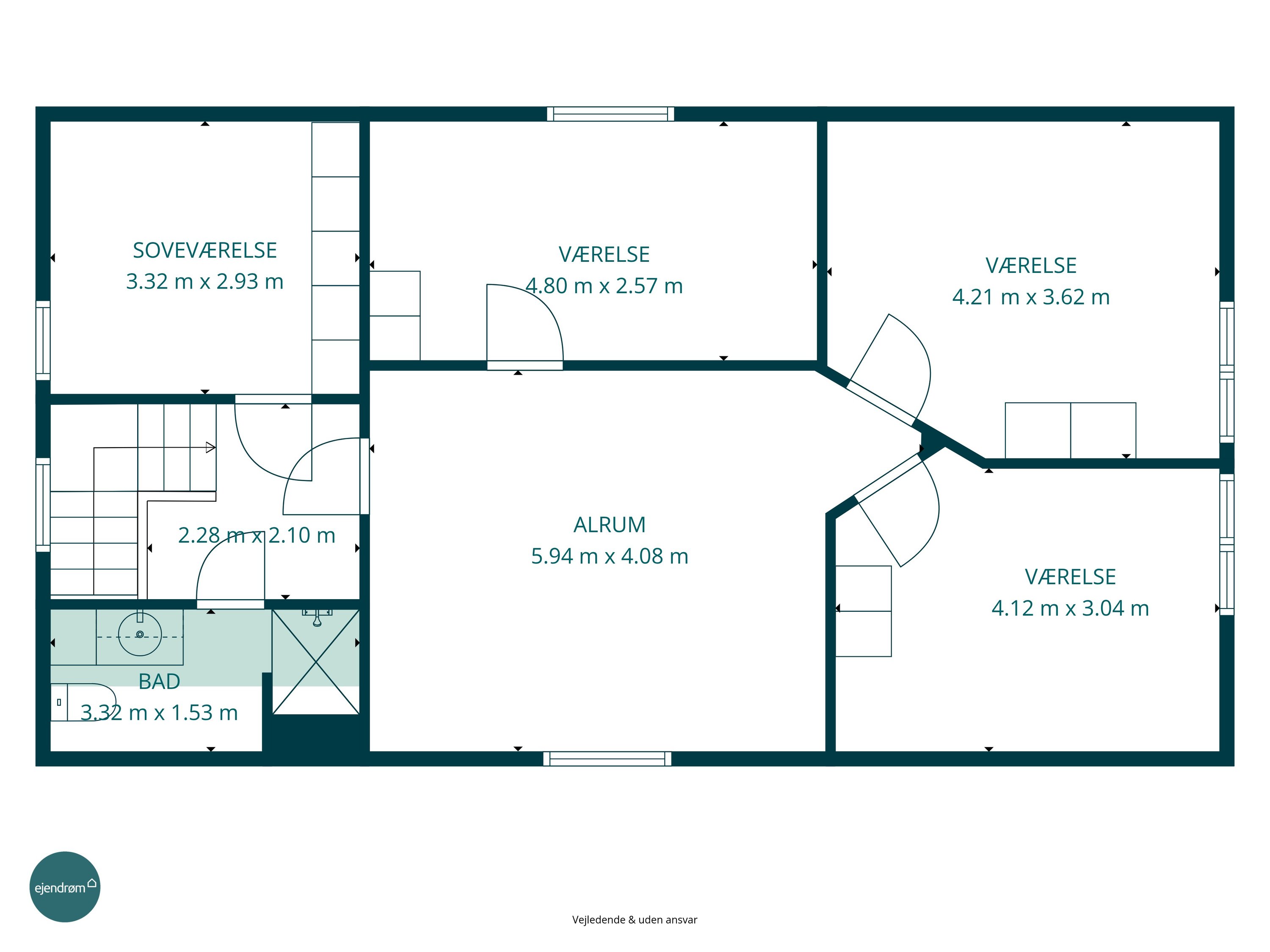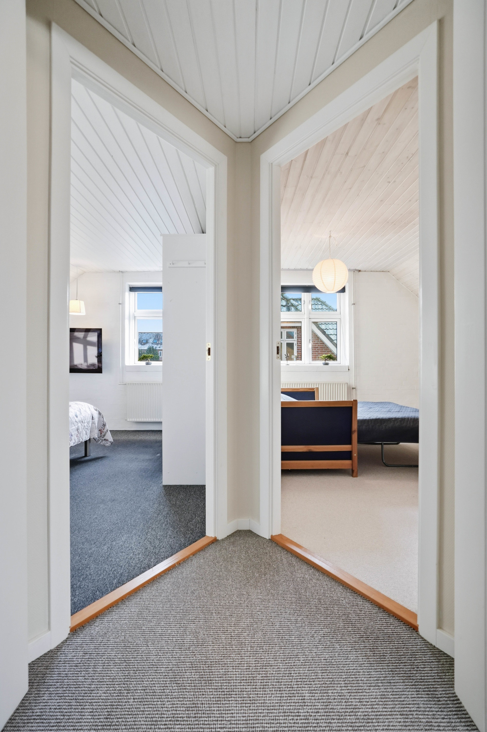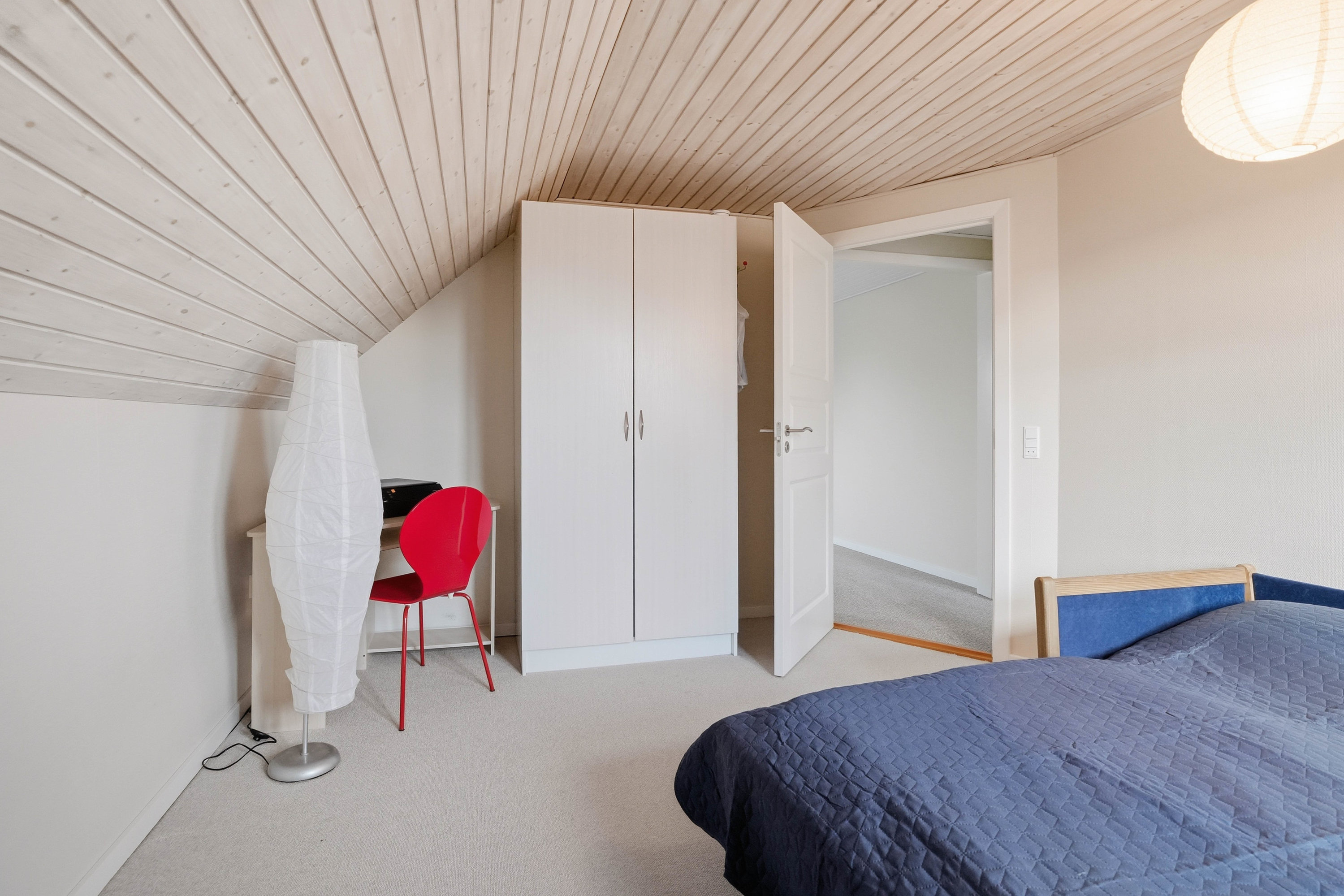 På førstesalen findes en veldisponeret værelsesafdeling med hele fire gode værelser. Her får man et soveværelse samt tre regulære værelser, der nemt kan anvendes til børn, kontor eller hobby. Centralt på etagen ligger et hyggeligt alrum, som giver ekstra opholdsplads og kan indrettes som legeområde, tv-stue, hjemmekontor eller teenageafdeling. Heroppe findes også husets andet badeværelse, hvilket giver ekstra komfort for hele familien.