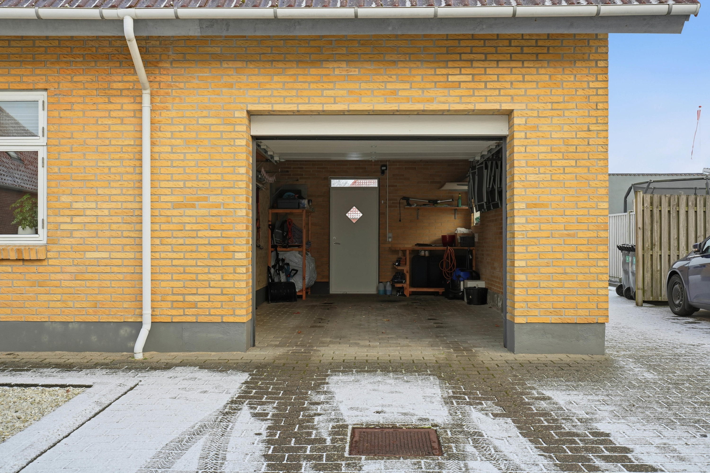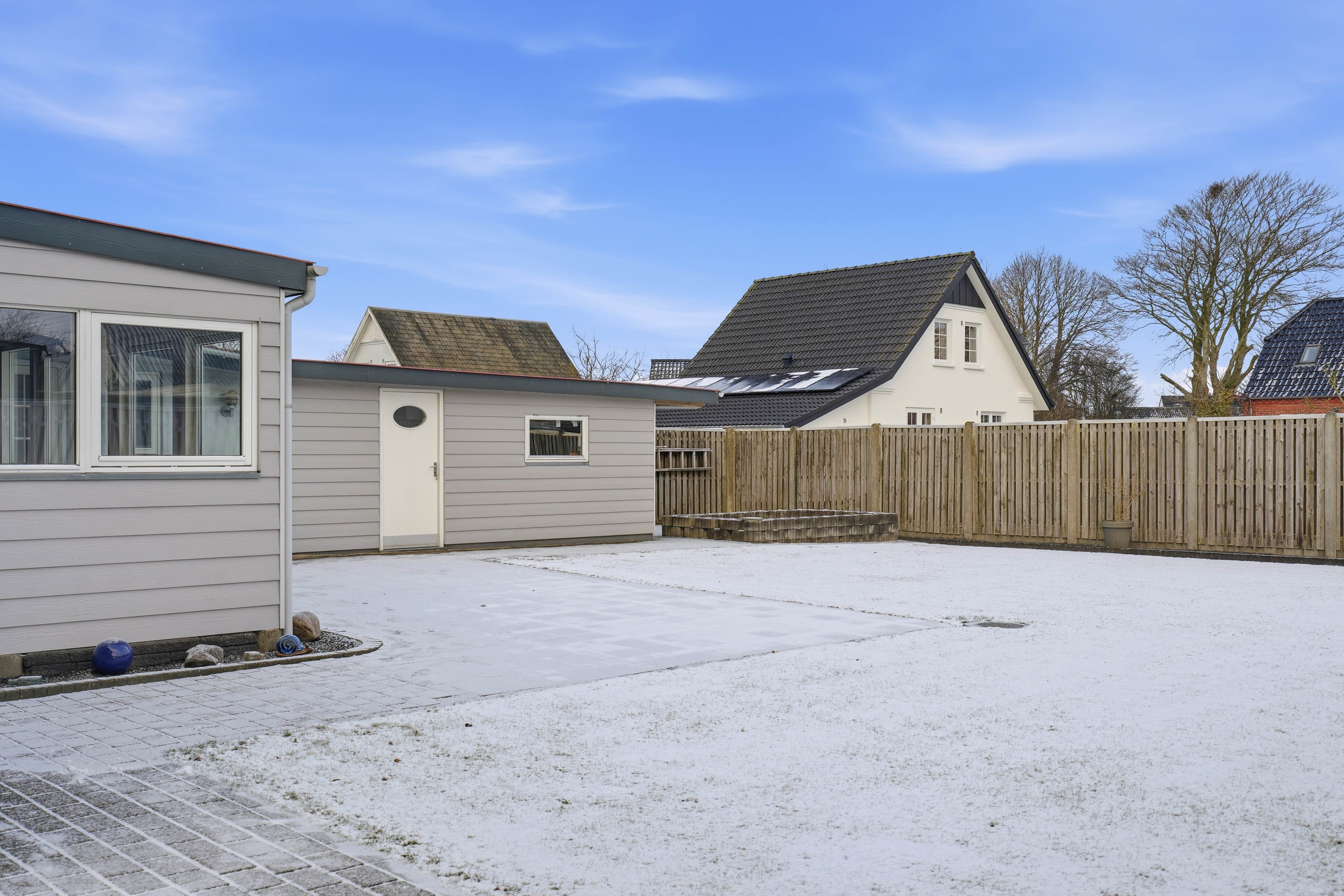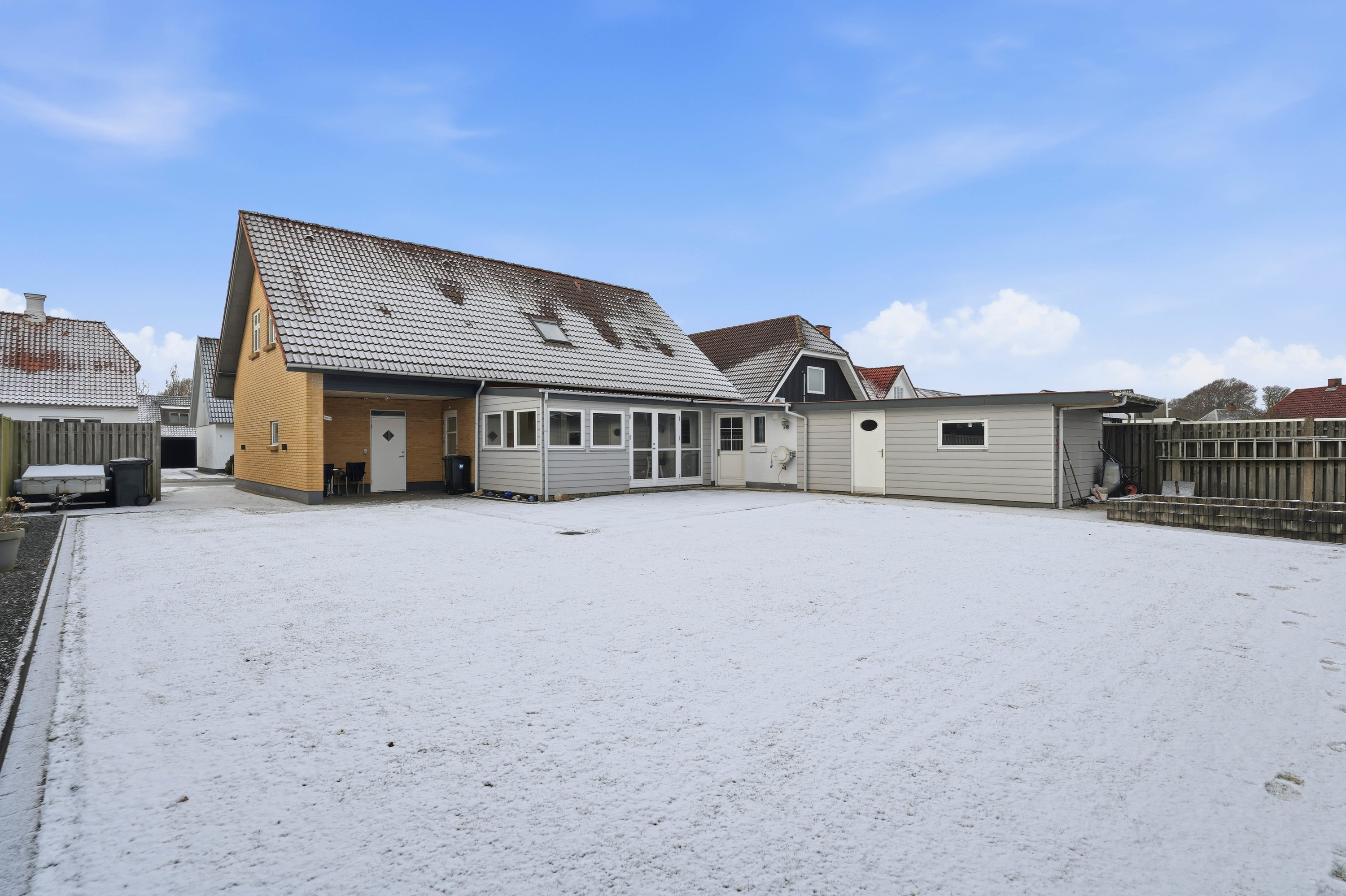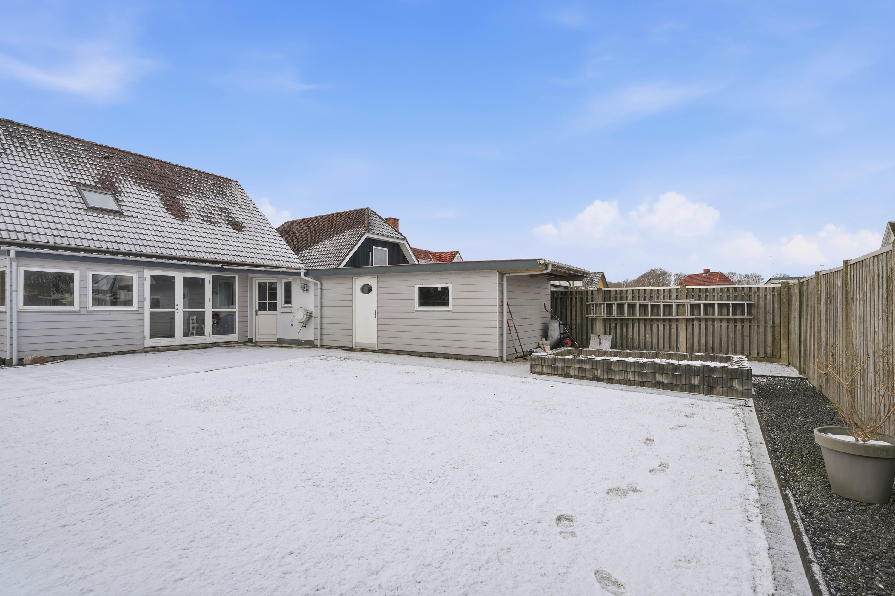 Udvendigt får man en overskuelig og lukket have med god plads til både leg, afslapning og hyggelige stunder. Til ejendommen hører et isoleret skur, som giver ekstra opbevaringsmuligheder til haveredskaber, cykler og hobbybrug.