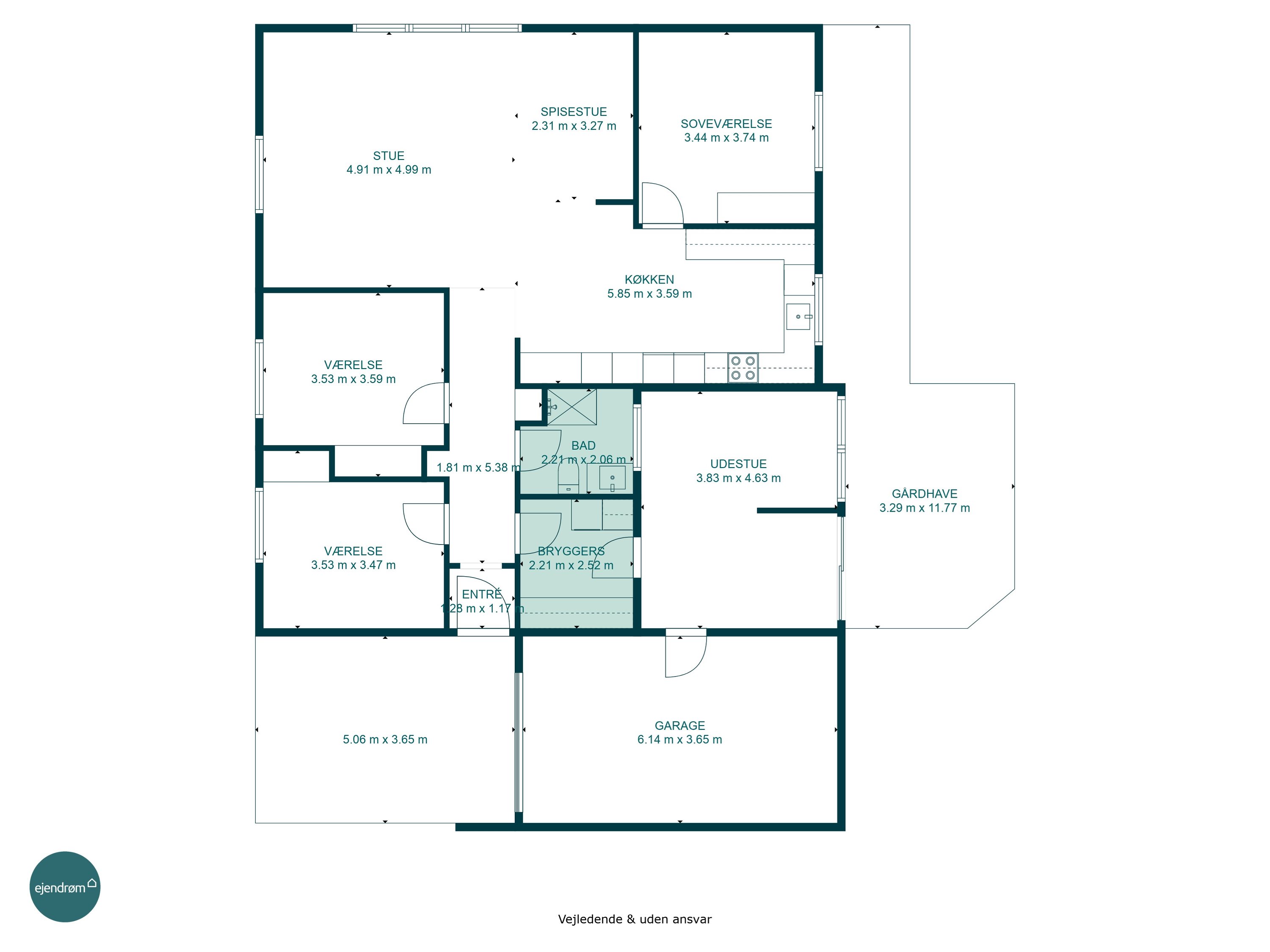 I forbindelse til køkkenet, er der et stort soveværelse, hvorfor der er rig mulighed for at lave forældre- og børneafdeling.