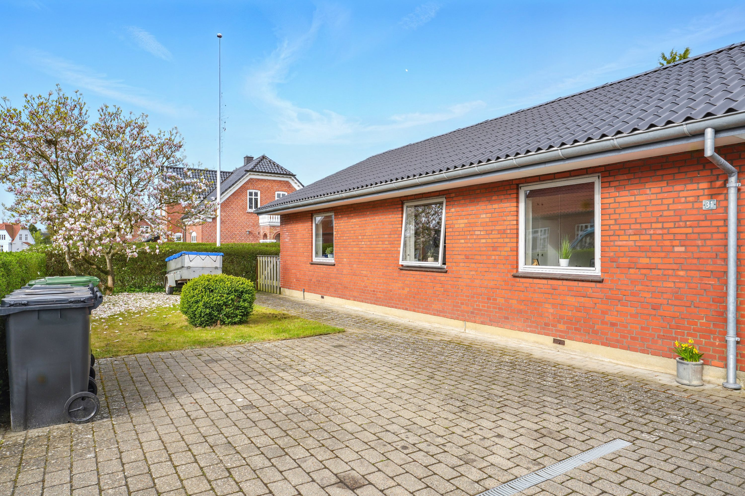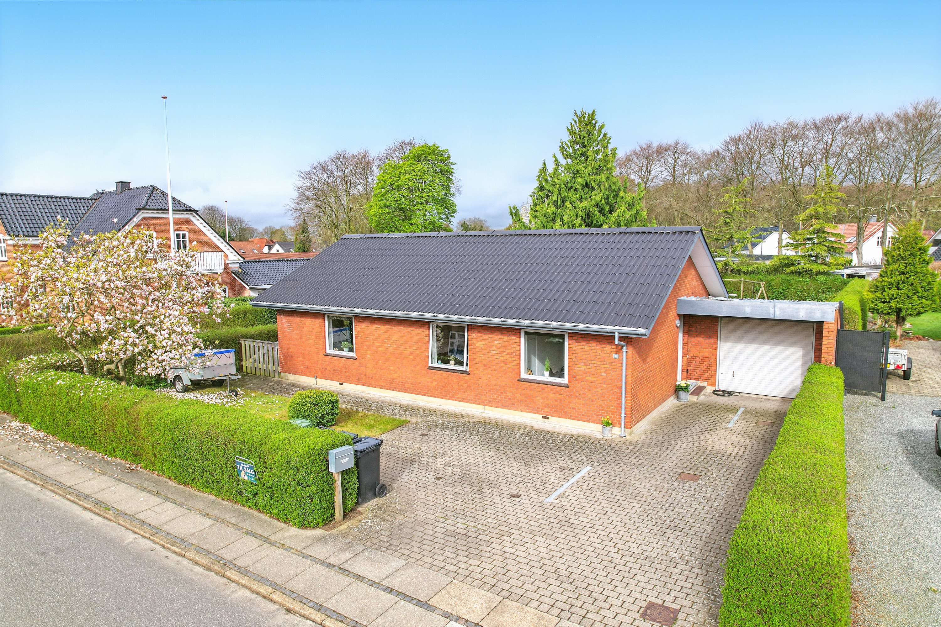 I hjertet af Bramming, finder man dette overkommelige og dejlige hjem. Her er man i gåafstand til alle byens faciliteter, såsom banegård, indkøb og skole. En overkommelig og skøne villa, som gør tilværelsen til en leg. Samtlige vinduer er løbende skiftet, mens taget ligeledes er udskiftet. Haven er nem og overkommelig, hvortil der er plads til børnenes leg. Tilhørende er der udestue og garage m. elport.
