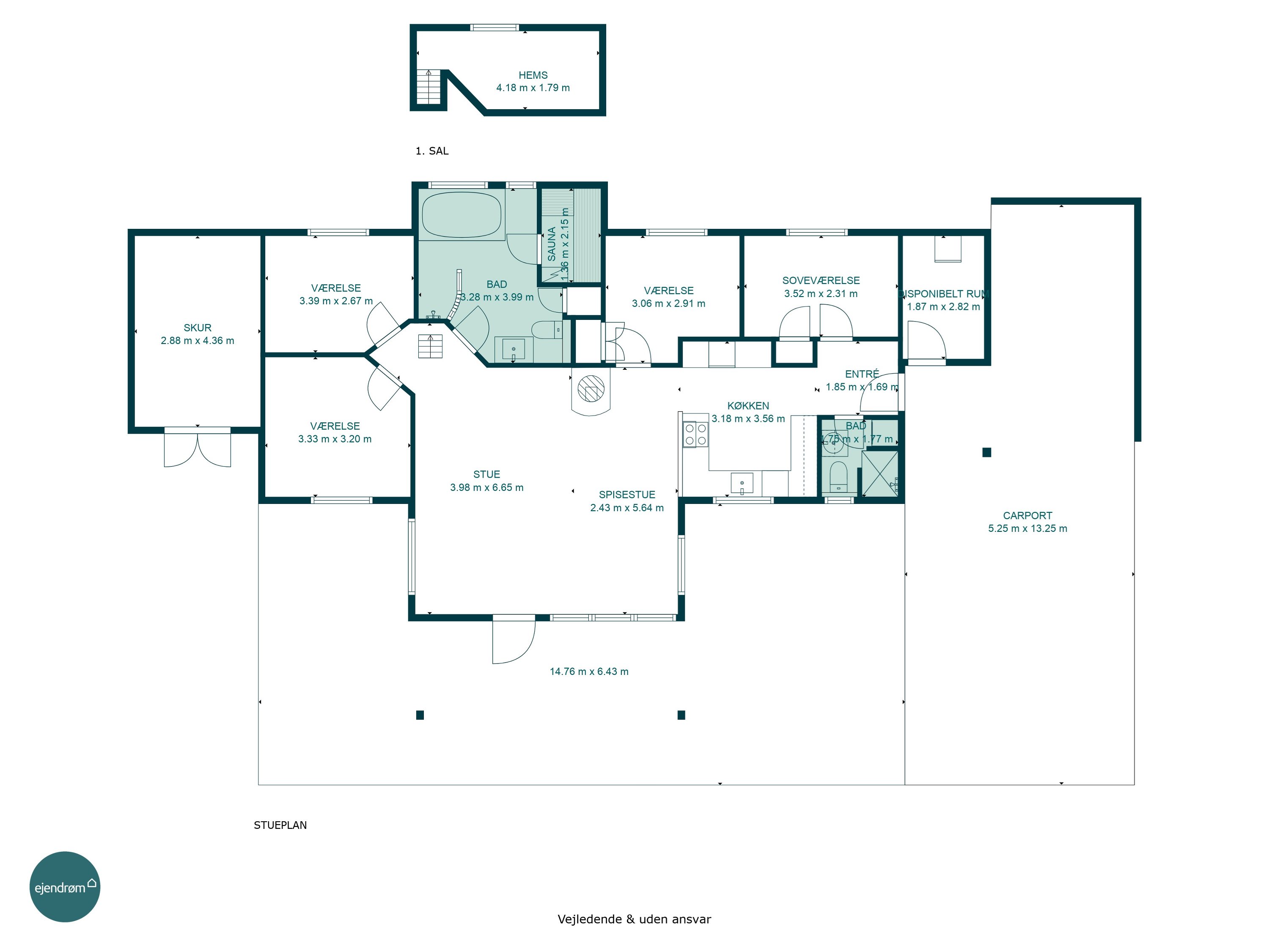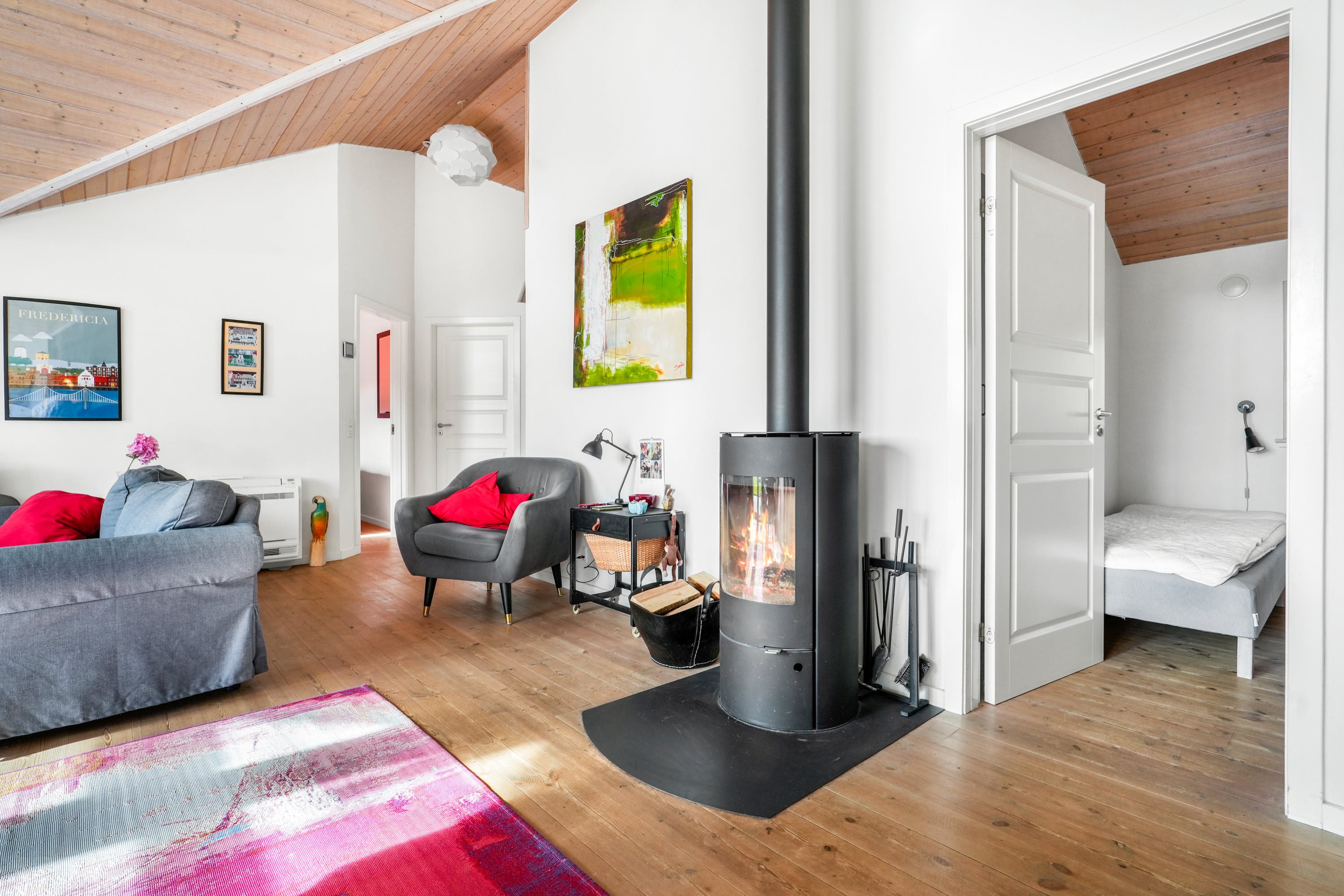 Huset er yderst energivenligt og opvarmes effektivt via en luft-til-luft varmepumpe. Dette er med til at sikre det bedste indeklima og behagelige temperaturer året rundt – dette gør huset både økonomisk og miljøvenligt at opvarme.