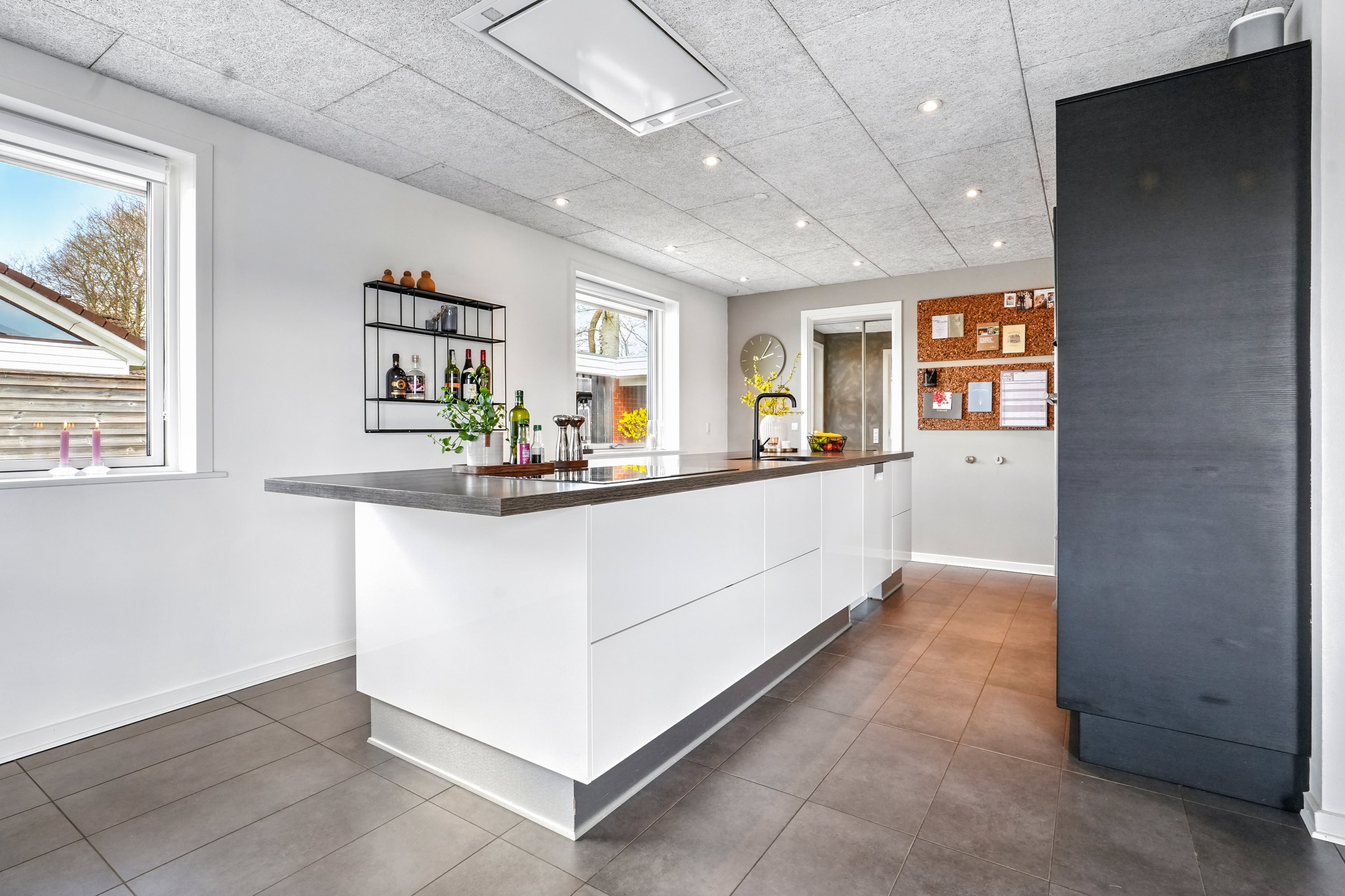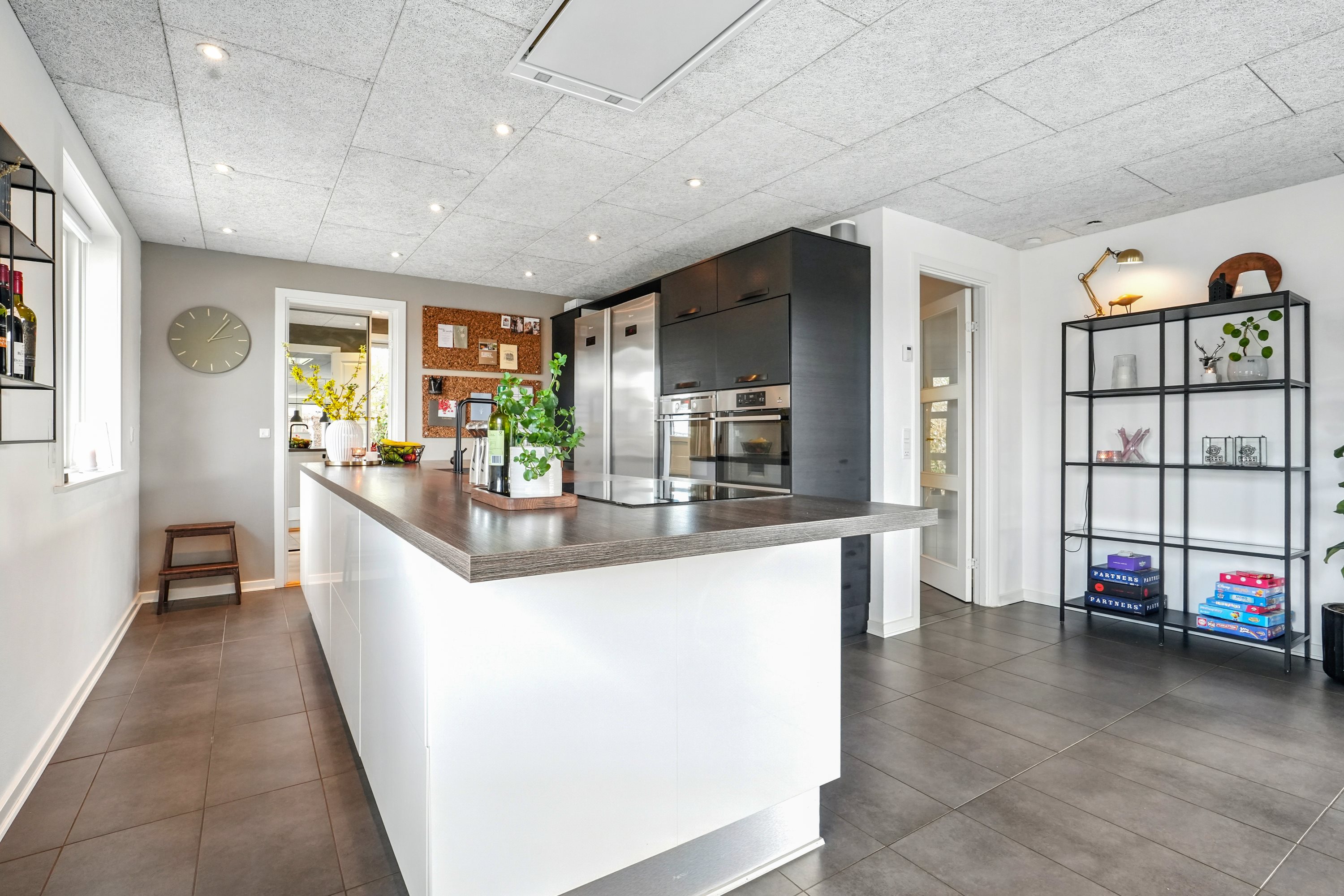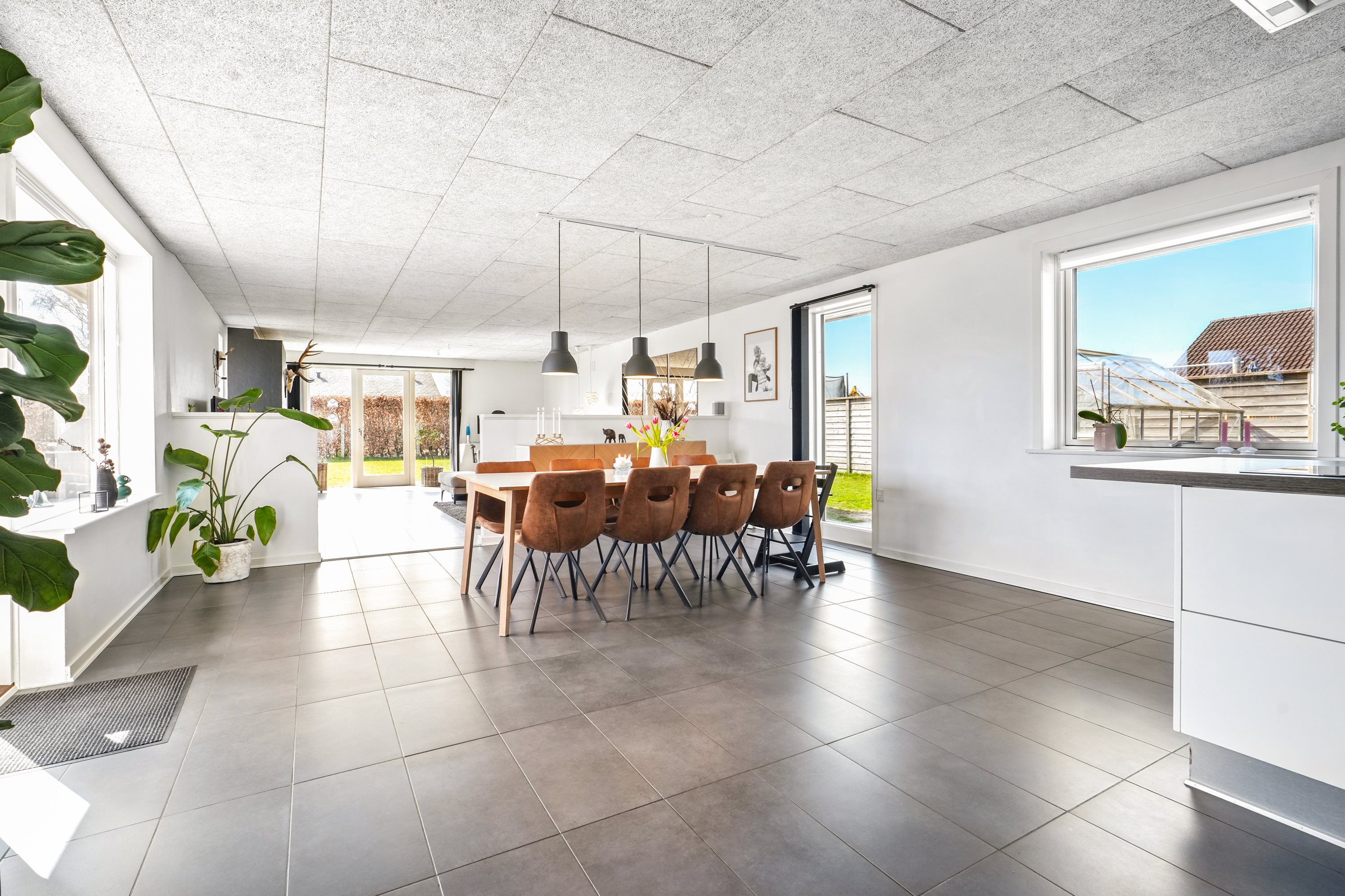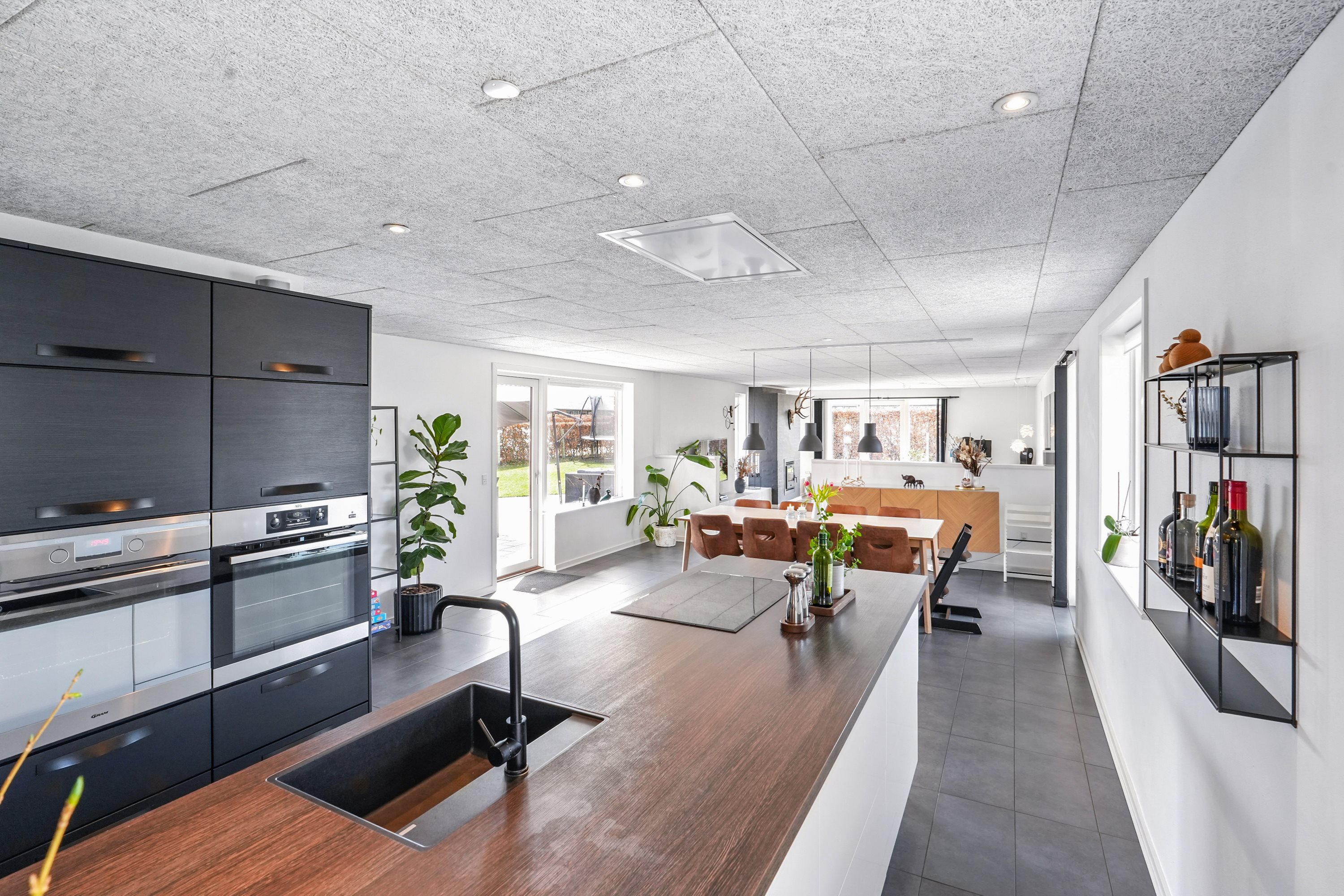 “Hjertet” er det åbne køkken/alrum. Her er masser af plads til den store familie. Køkkenet er opført i bedste materialer og byder på god bord- og skabsplads. I alrummet har man masser af plads til langbordet, når hele familien samles om madlavningen. Dertil er der direkte udgang til den velanlagte terrasse.