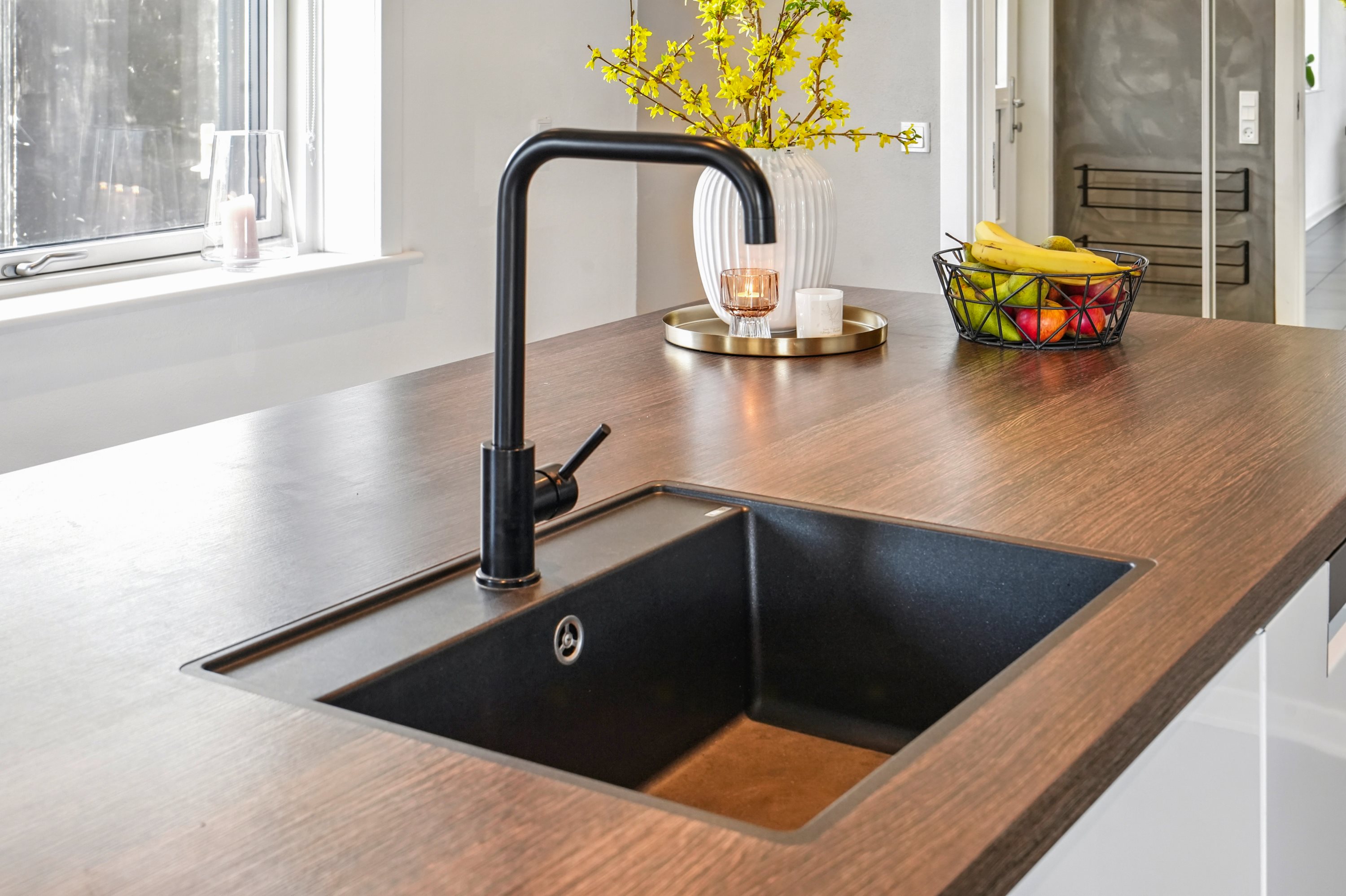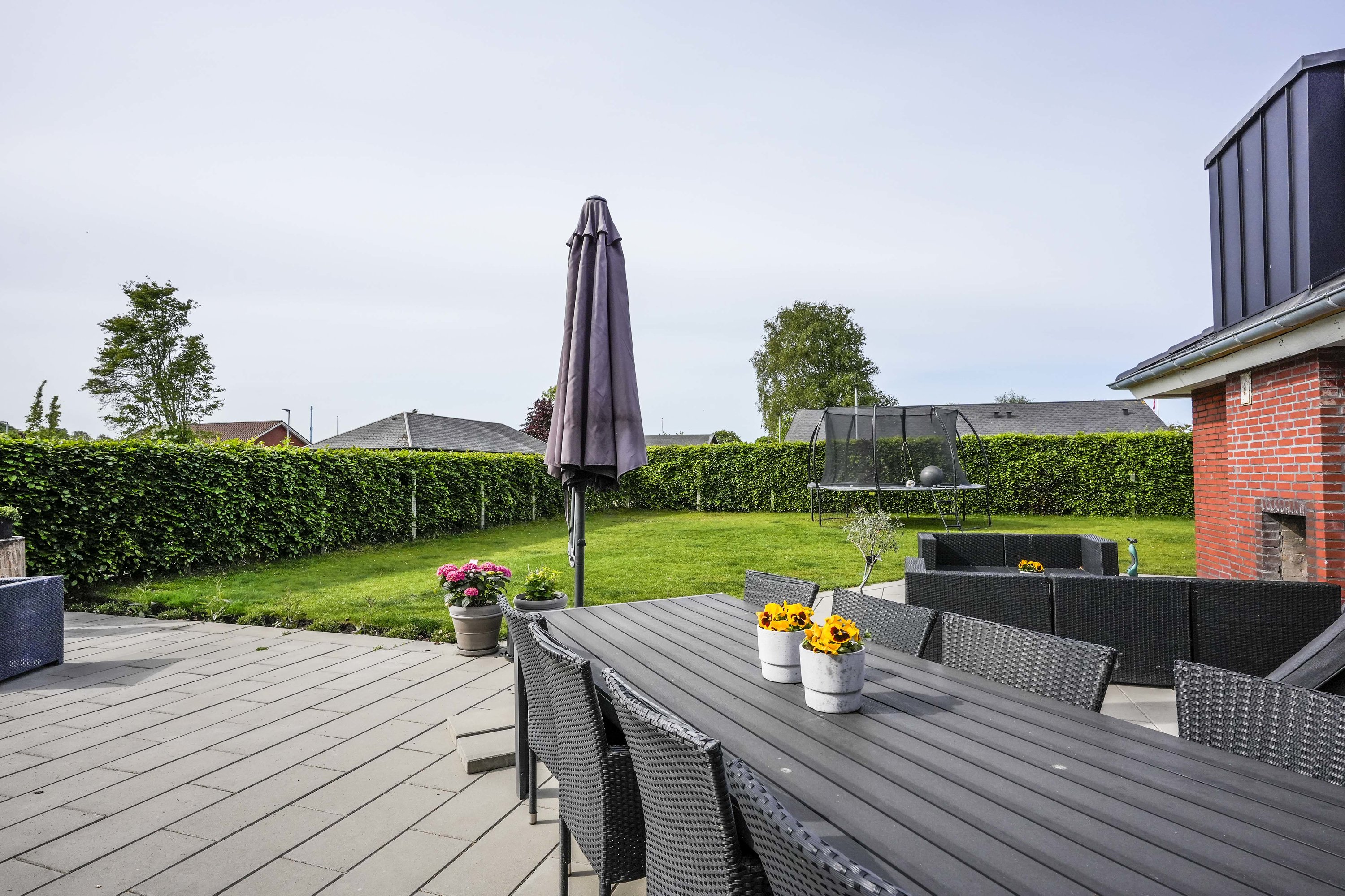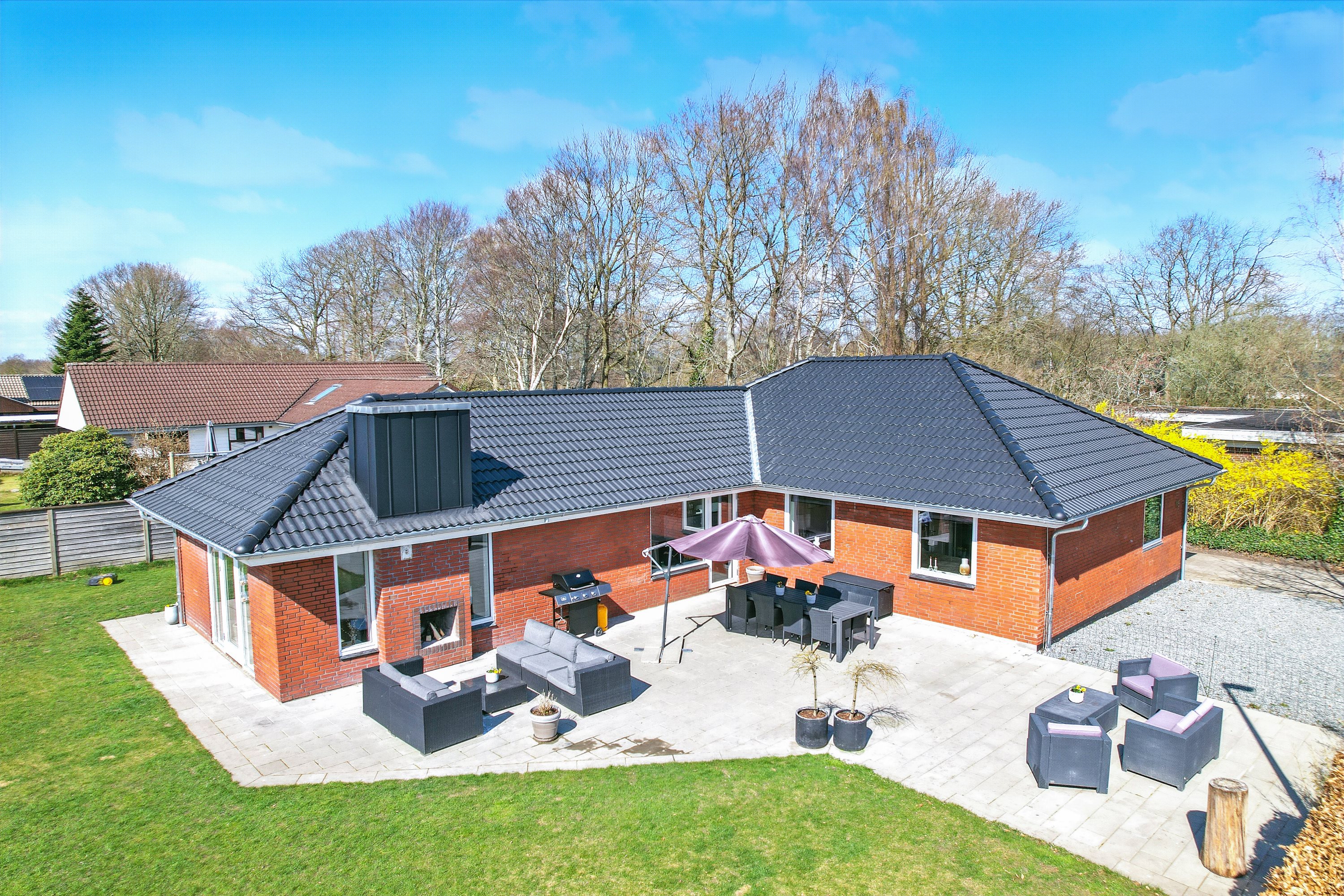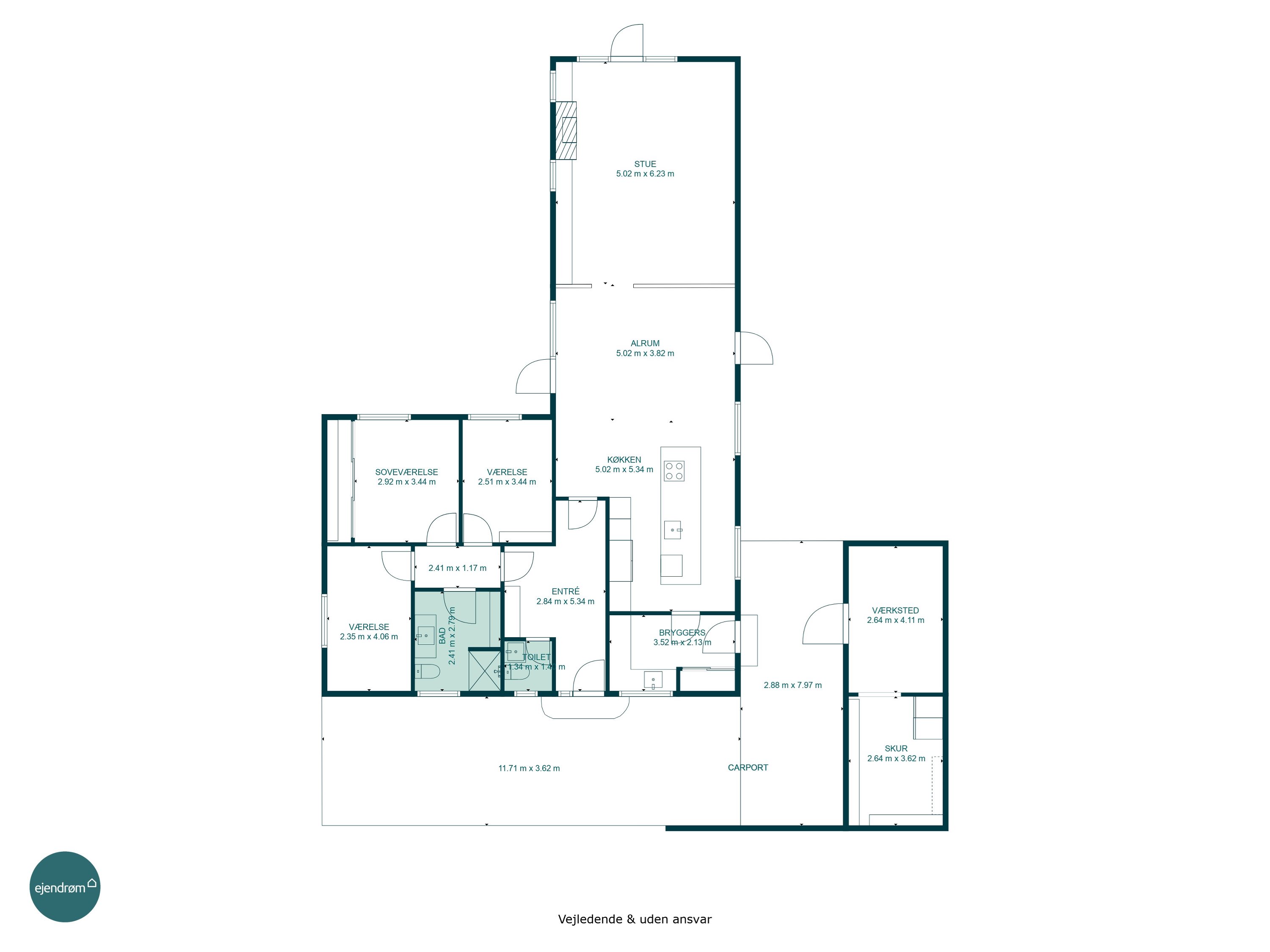 “Hjertet” er det åbne køkken/alrum. Her er masser af plads til den store familie. Køkkenet er opført i bedste materialer og byder på god bord- og skabsplads. I alrummet har man masser af plads til langbordet, når hele familien samles om madlavningen. Dertil er der direkte udgang til den velanlagte terrasse.