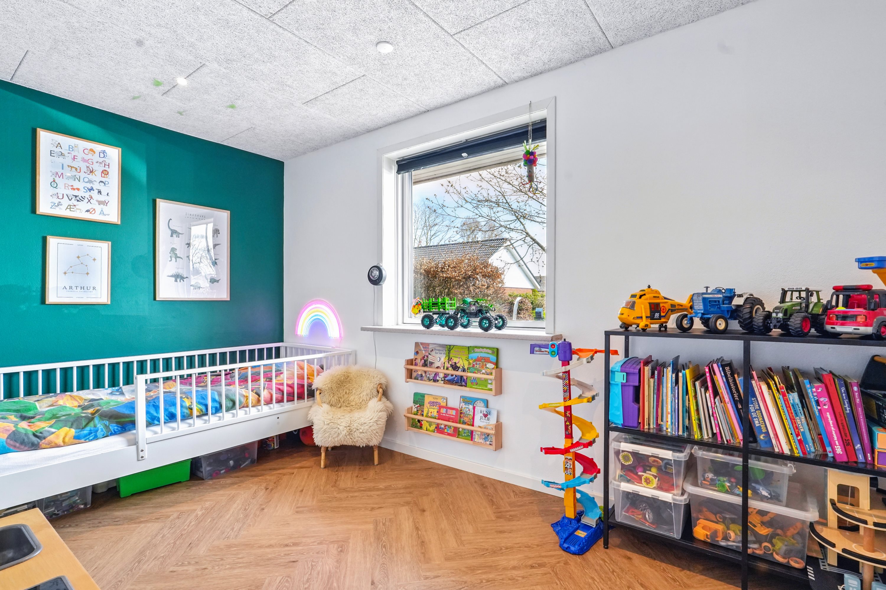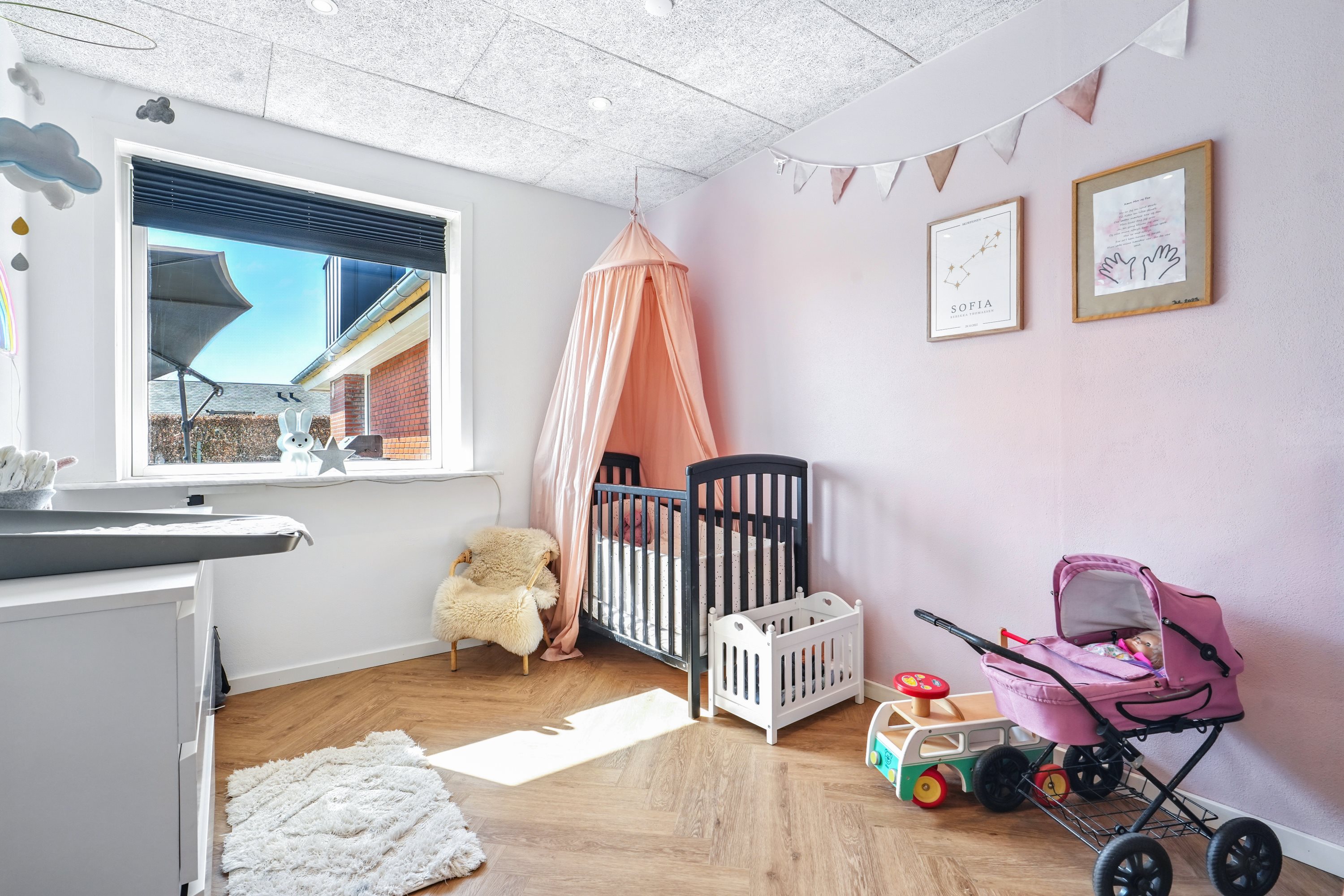 Fra fordelingsgangen er der 2 gode børneværelser samt soveværelse, alle med gulvvarme – også lavet i 2025. I naturlig forbindelse hertil, er der et lyst og lækkert badeværelse. Lige som resten af hjemmet, er der en god rød tråd, og alting fremtræder lyst og indbydende. Her vil selv den moderne familie behages. Alle værelser har gode størrelser, så børn i alle aldre kan finde sig til rette. Badeværelset har bruseniche – et tidssvarende rum der lever op til nutidens standarder.