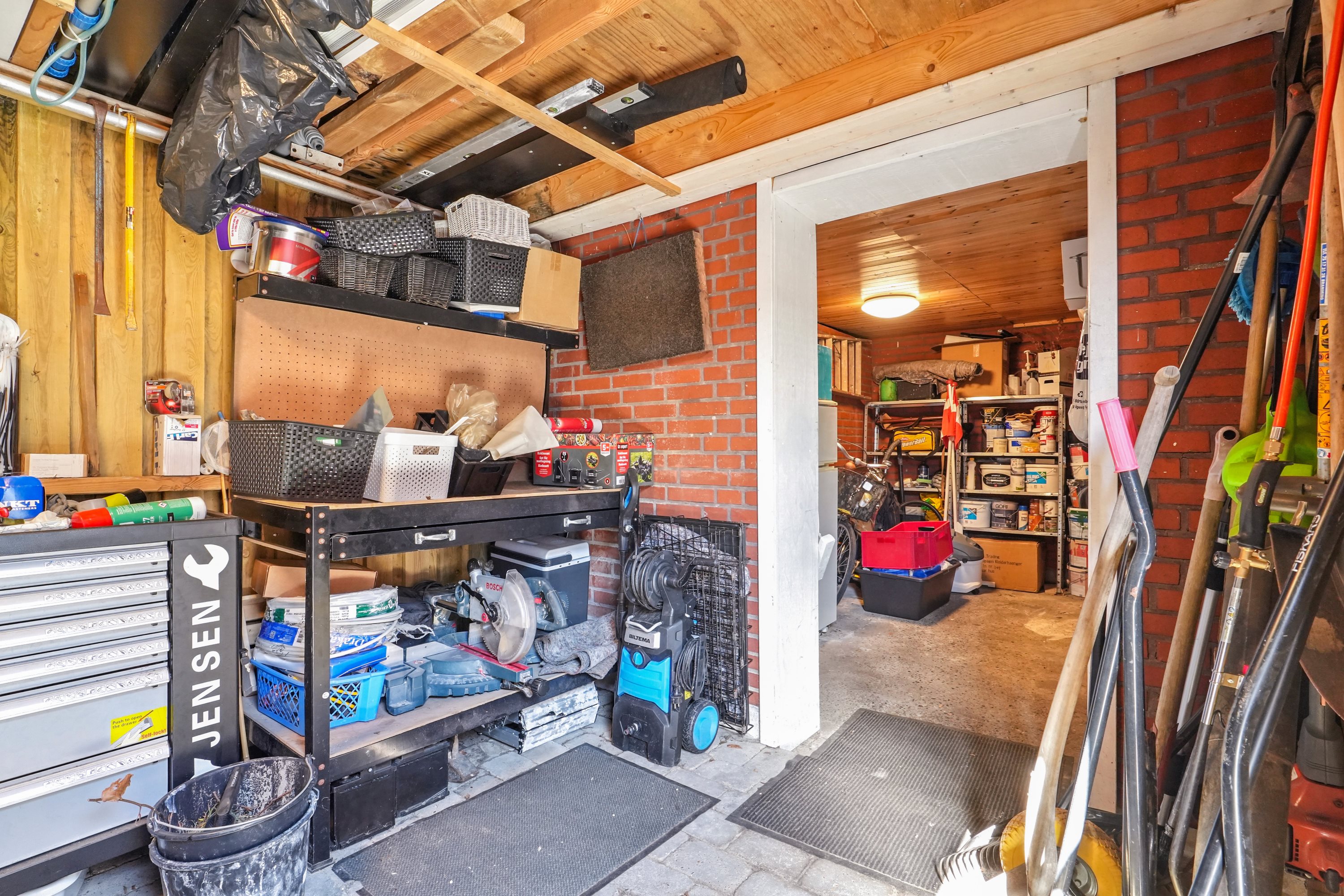 Fra køkkenet finder man en velrenoveret bryggers i samme røde tråd som køkkenet. Bryggerset er familiens primære indgang, og fungerer ideelt for den pladskrævende familie. Lyder dette som noget for dig? Så kontakt ejendrøm i dag! Vi ses!