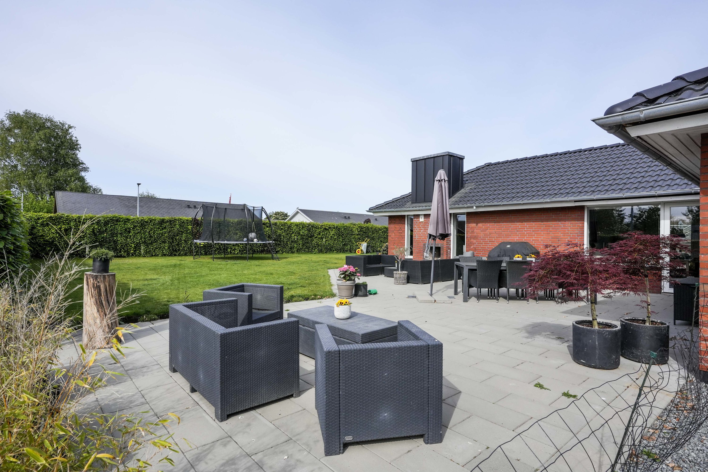 Villaen er med løbende moderniseringer, hvor nuværende ejer siden 2019 har lavet mange større moderniseringer. Taget er bl.a. skiftet i 2025. Derudover har nuværende ejer også anlagt have og terrasse. Her er der god plads til boldspil og ungernes leg, mens tilværelsen kan nydes på terrassen. Tilhørende villaen er der carport og redskabsrum.
