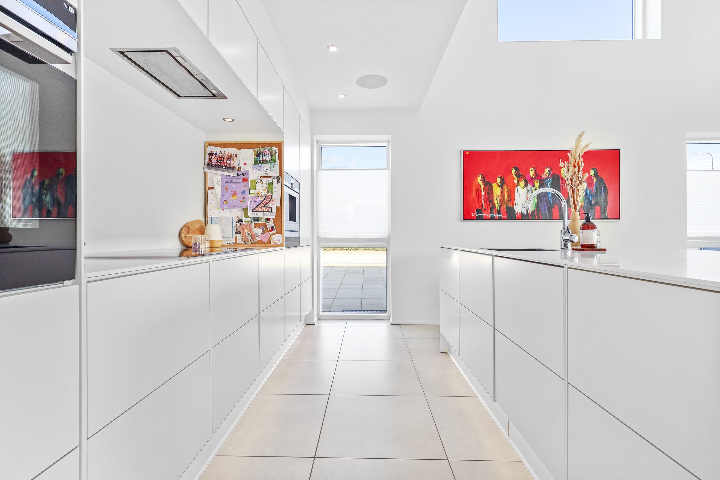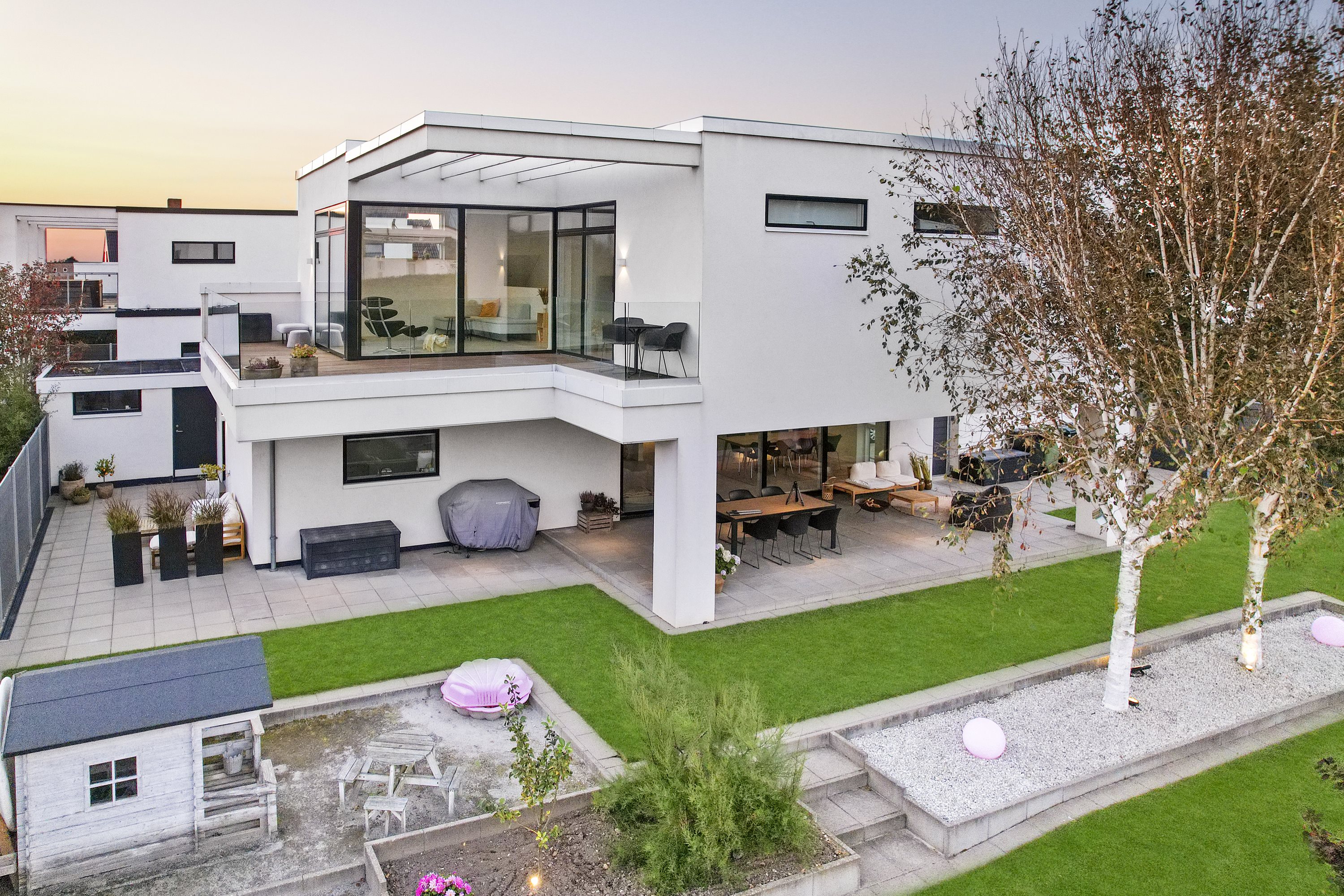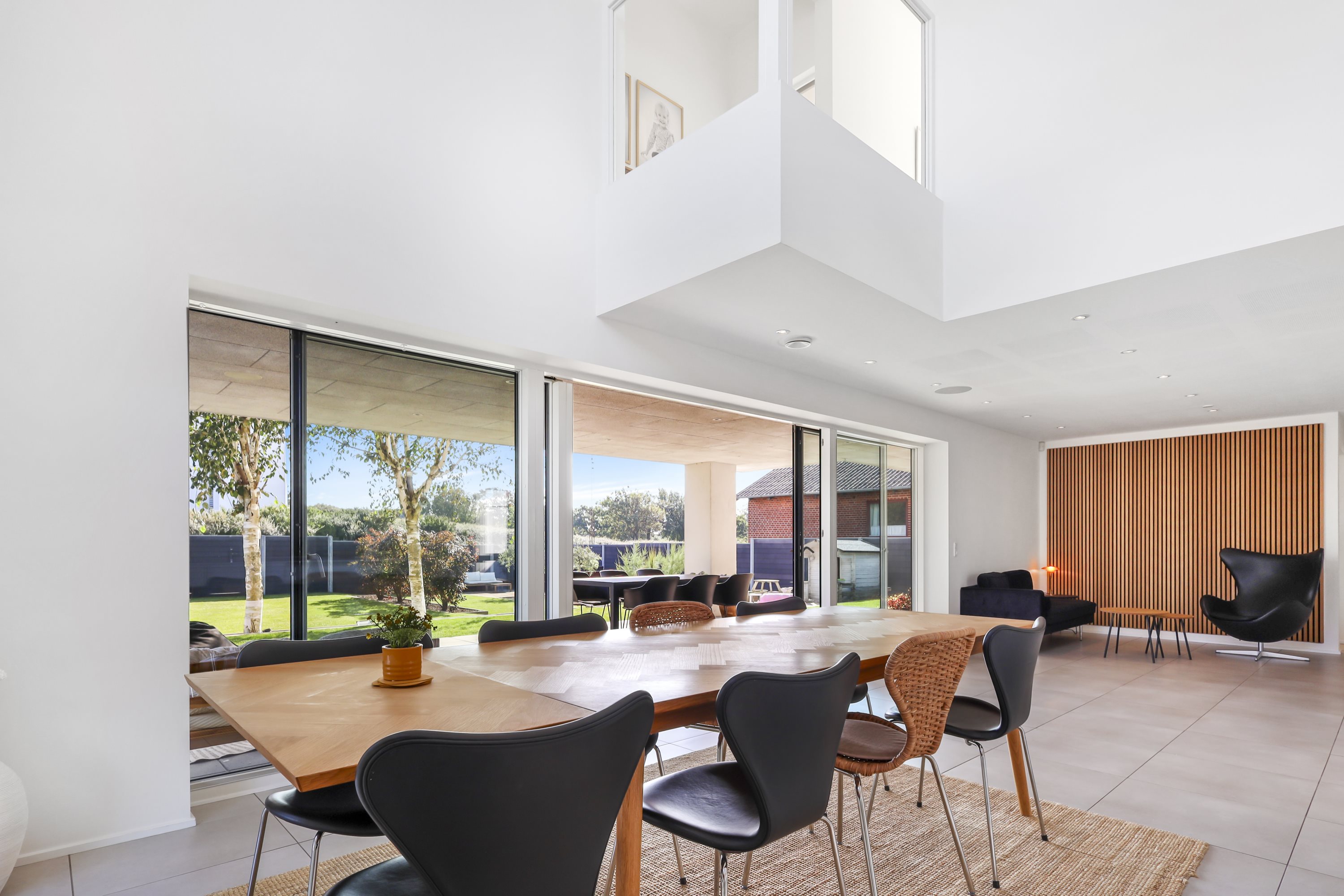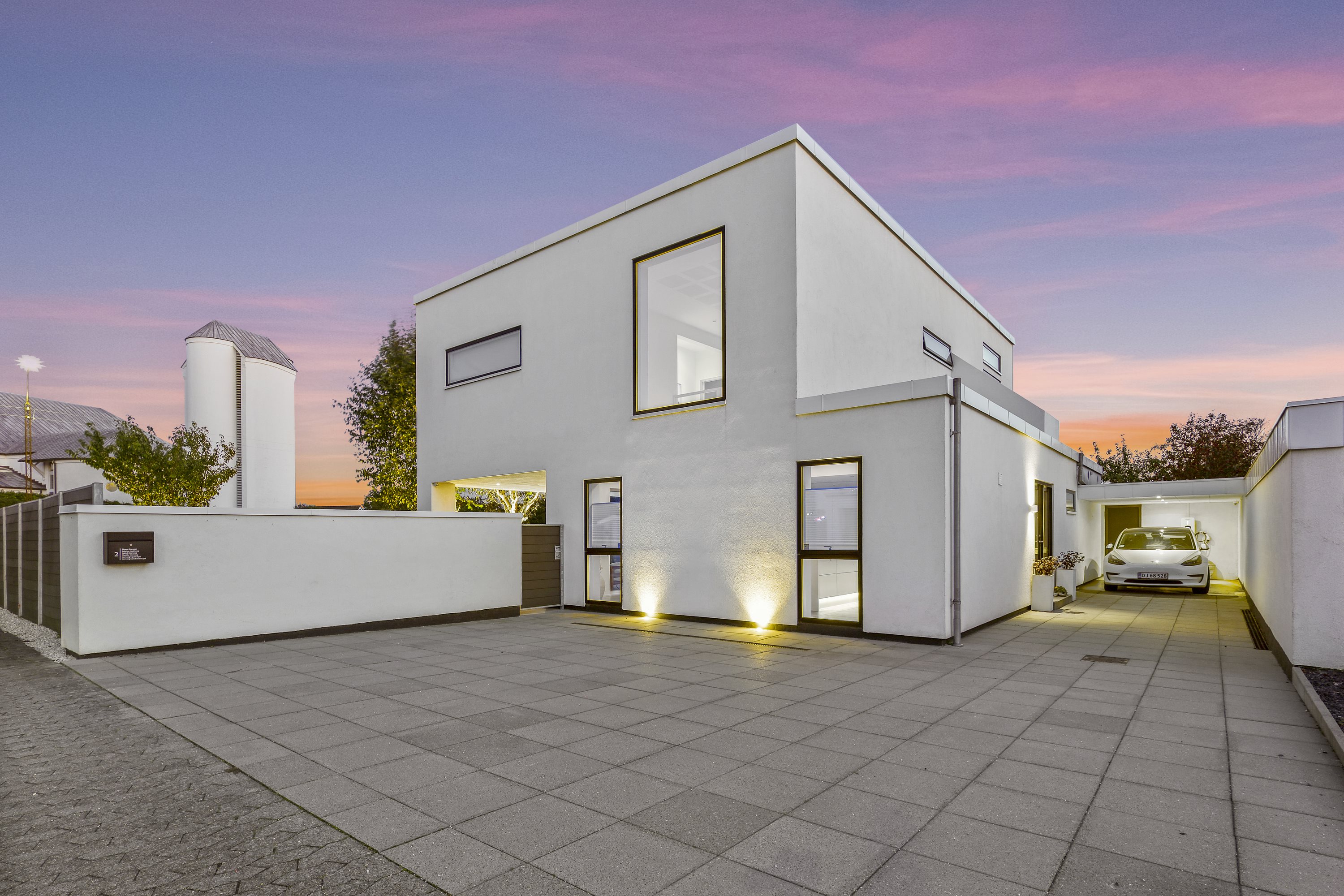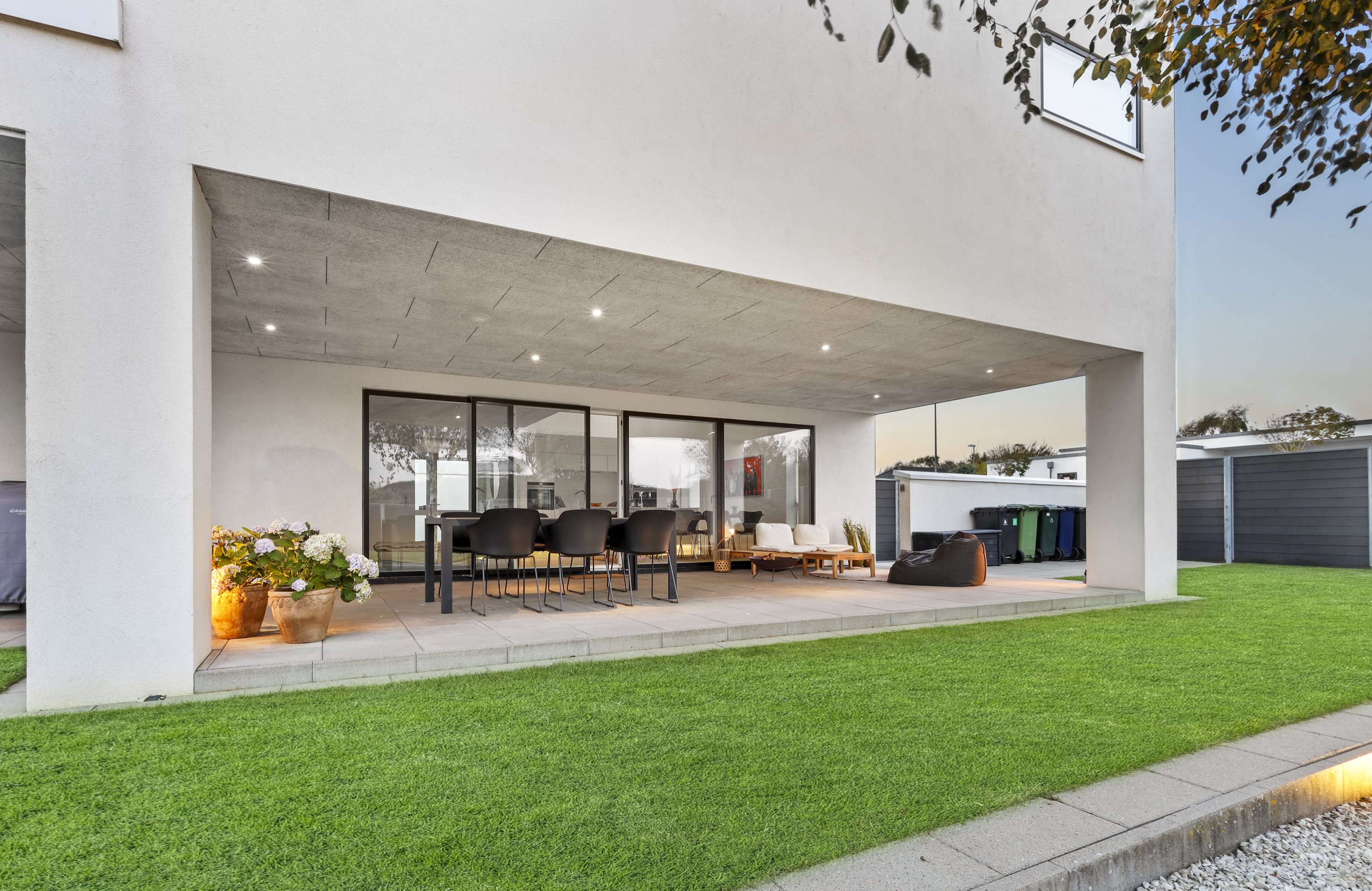 Med sine 194 m² bolig og en grund på 714 m² byder hjemmet på en indbydende kombination af rummelighed og arkitektonisk finesse. Her er højt til loftet – både fysisk og æstetisk. De elegante løsninger, de rene linjer og den lyse, luftige indretning skaber et hjem i absolut særklasse.