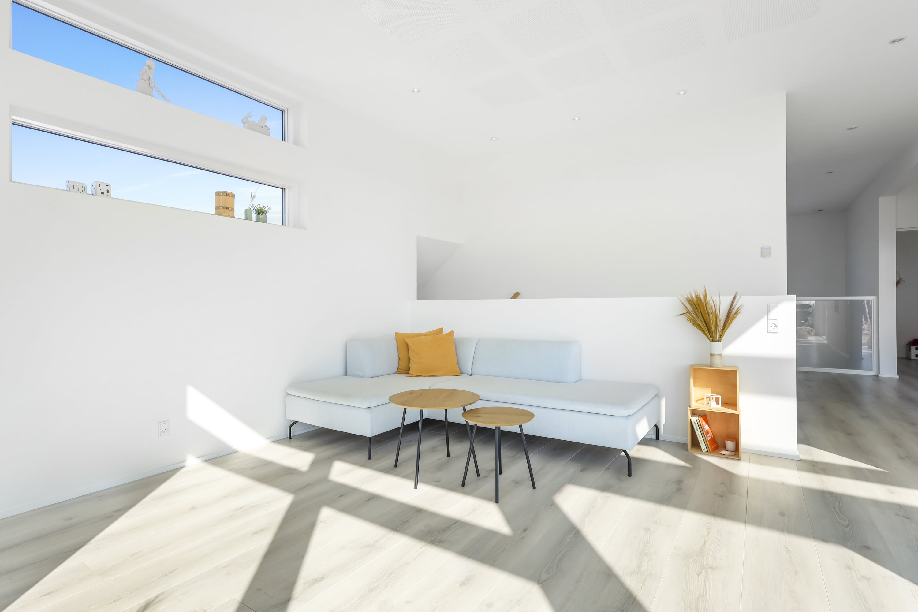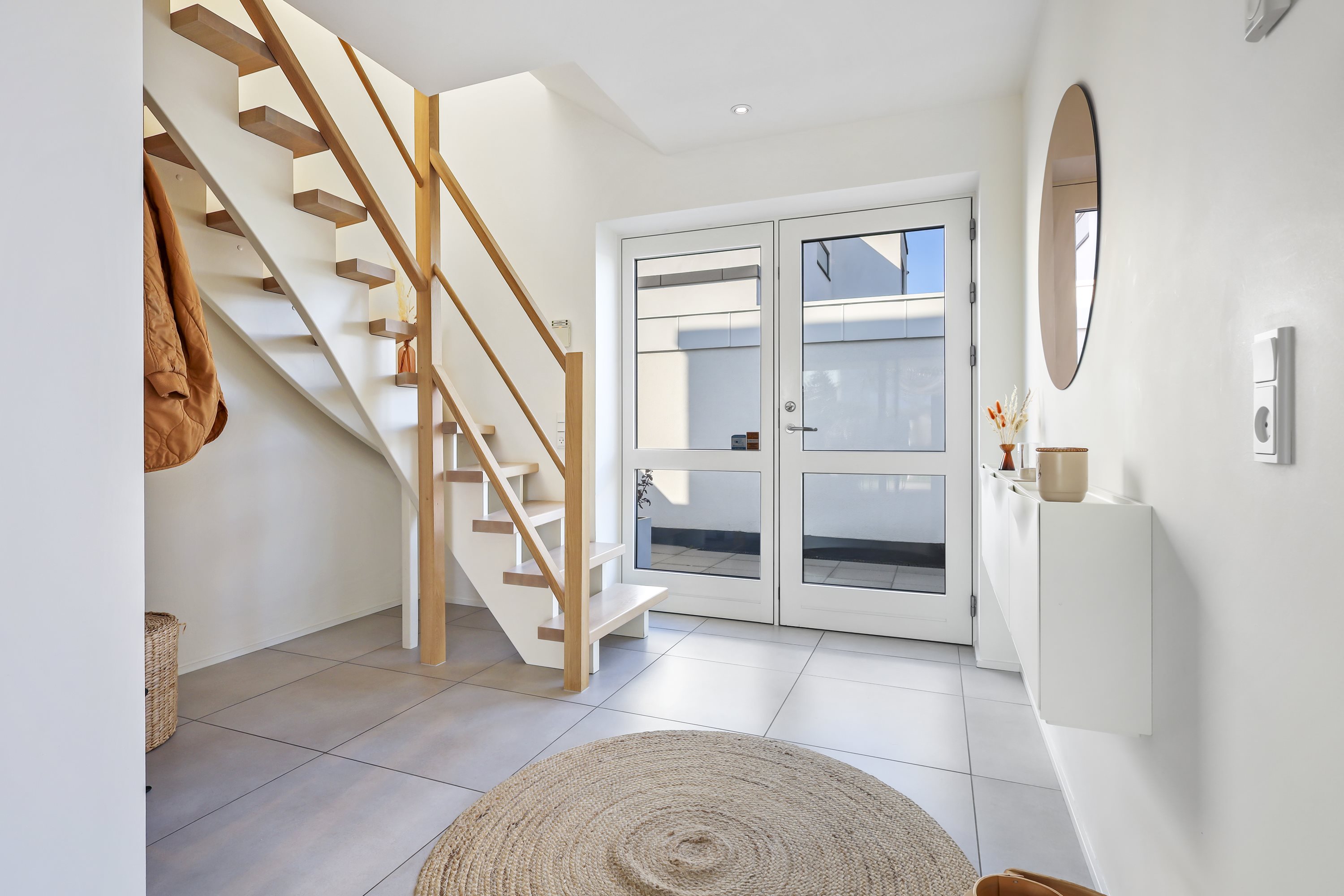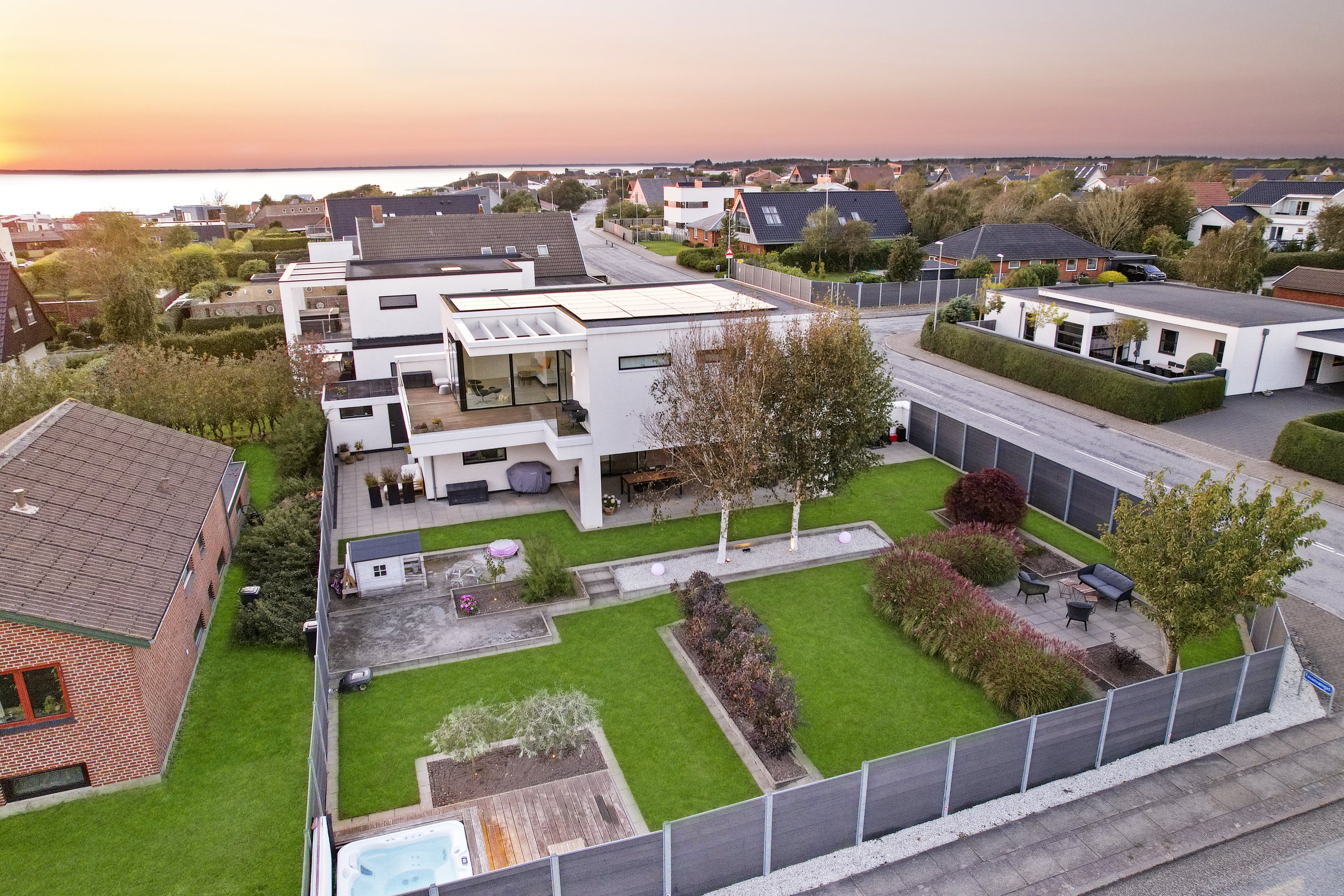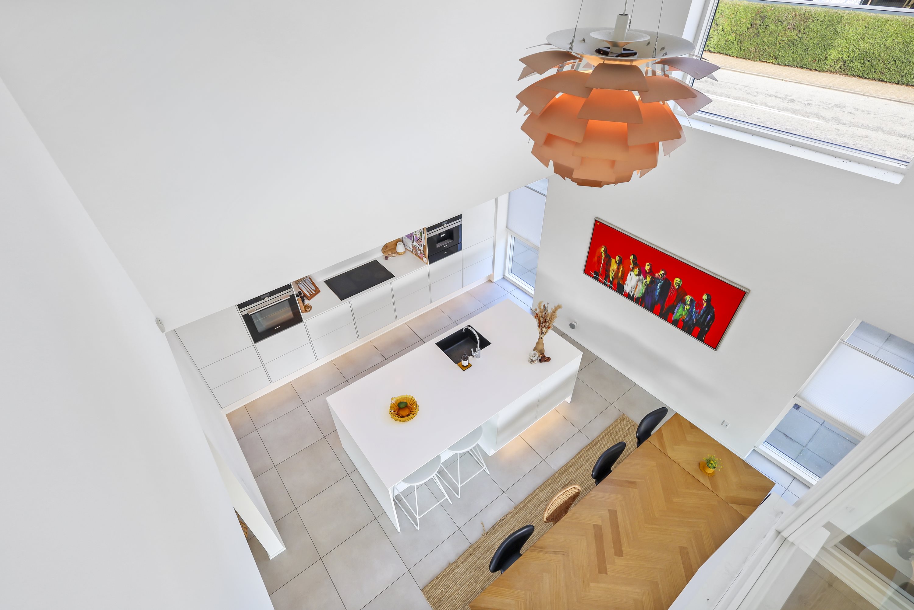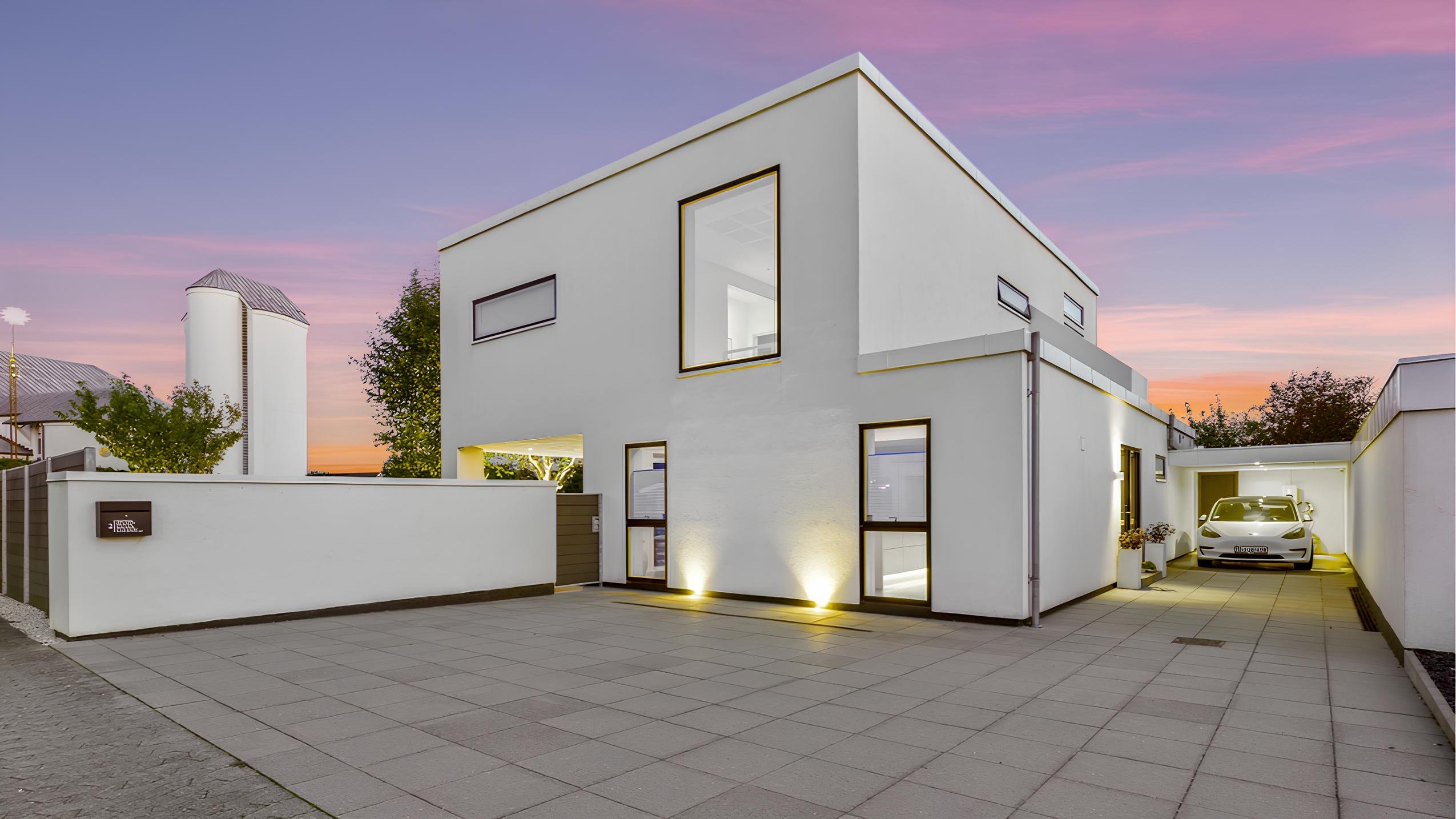 Med sine 194 m² bolig og en grund på 714 m² byder hjemmet på en indbydende kombination af rummelighed og arkitektonisk finesse. Her er højt til loftet – både fysisk og æstetisk. De elegante løsninger, de rene linjer og den lyse, luftige indretning skaber et hjem i absolut særklasse.