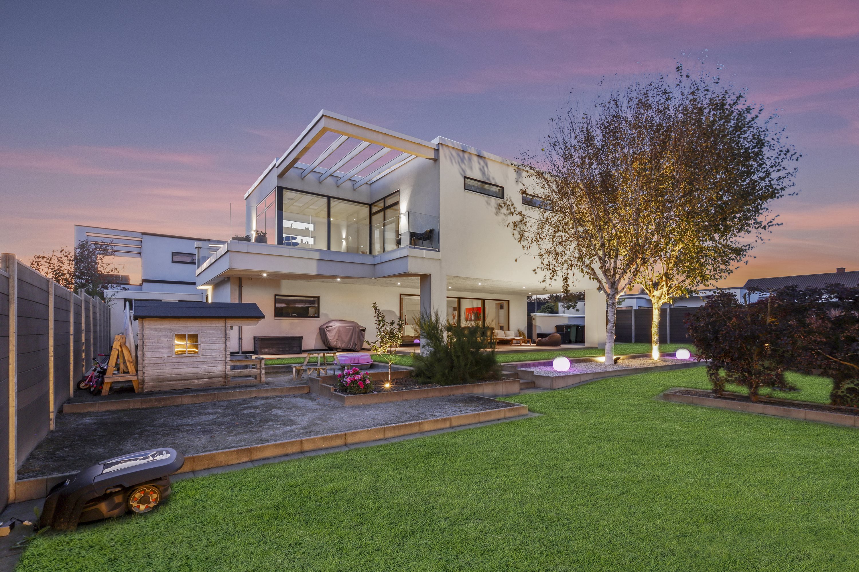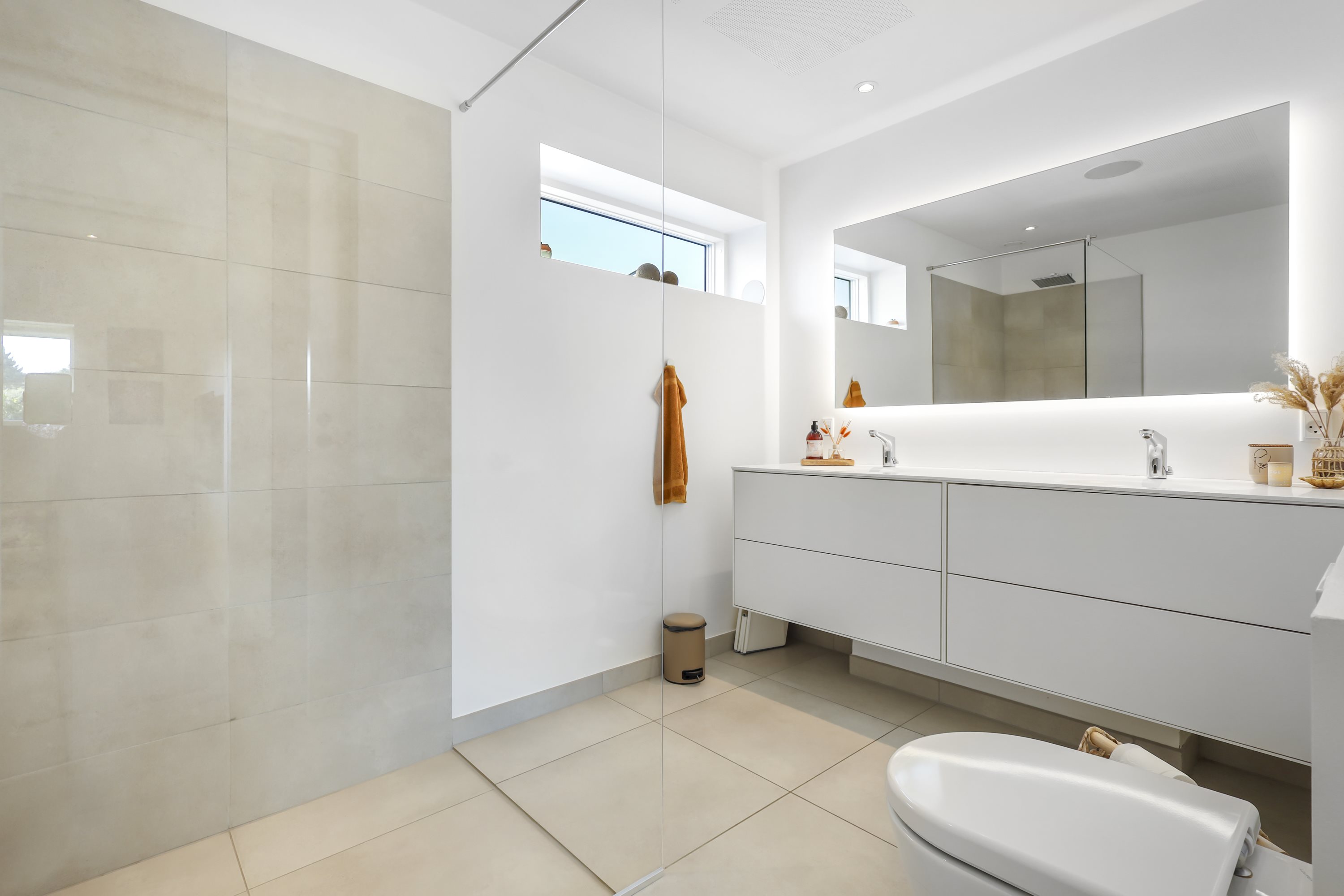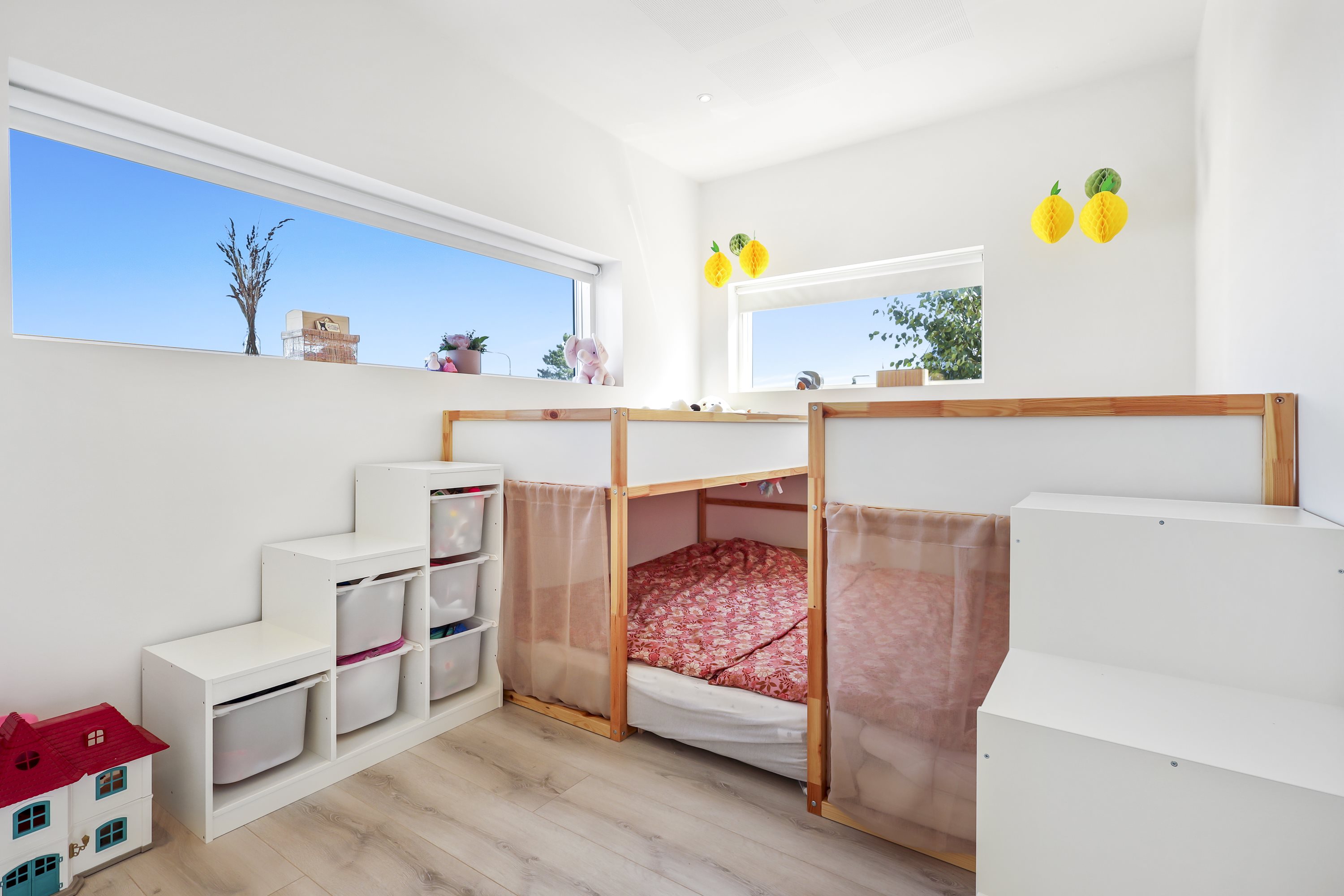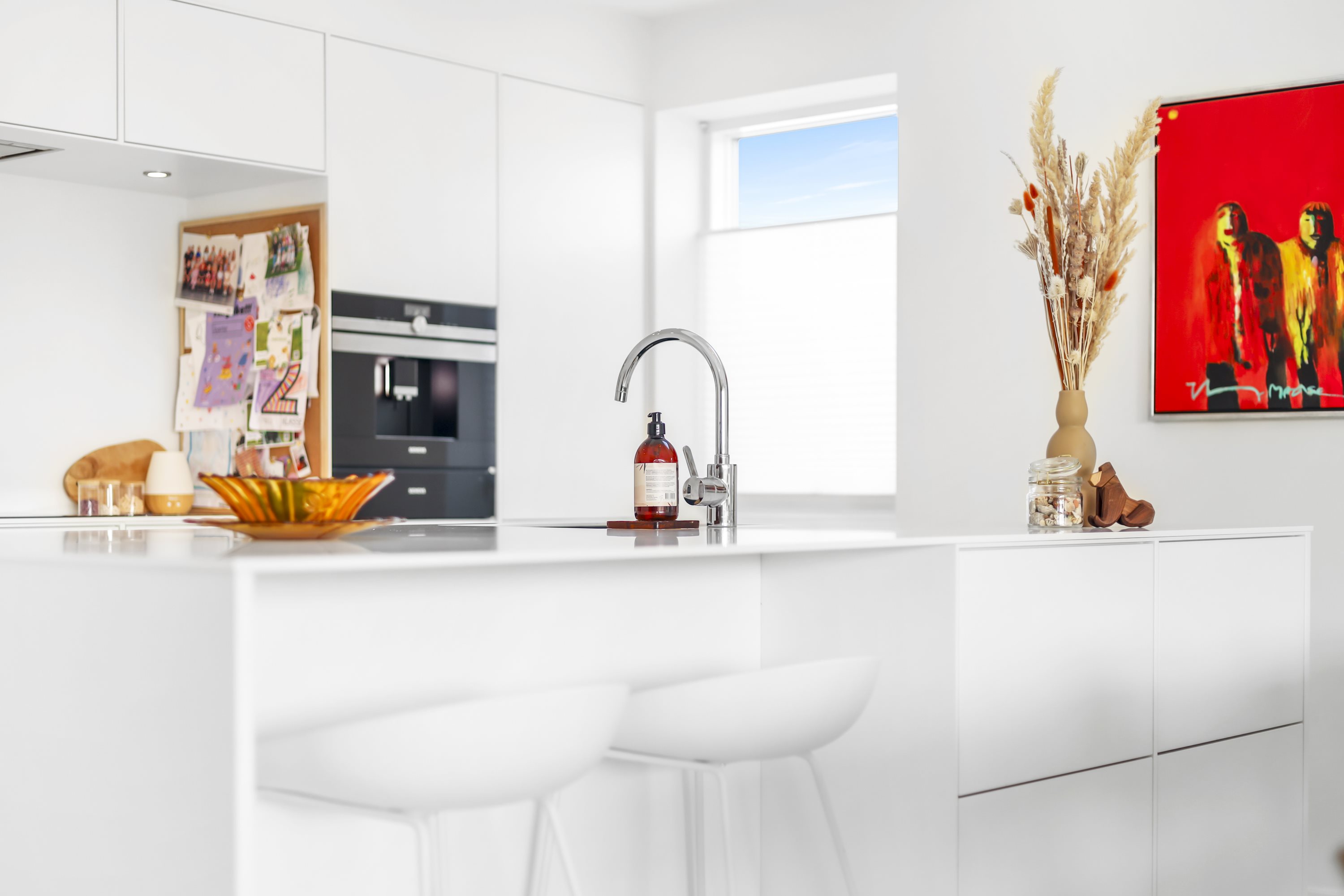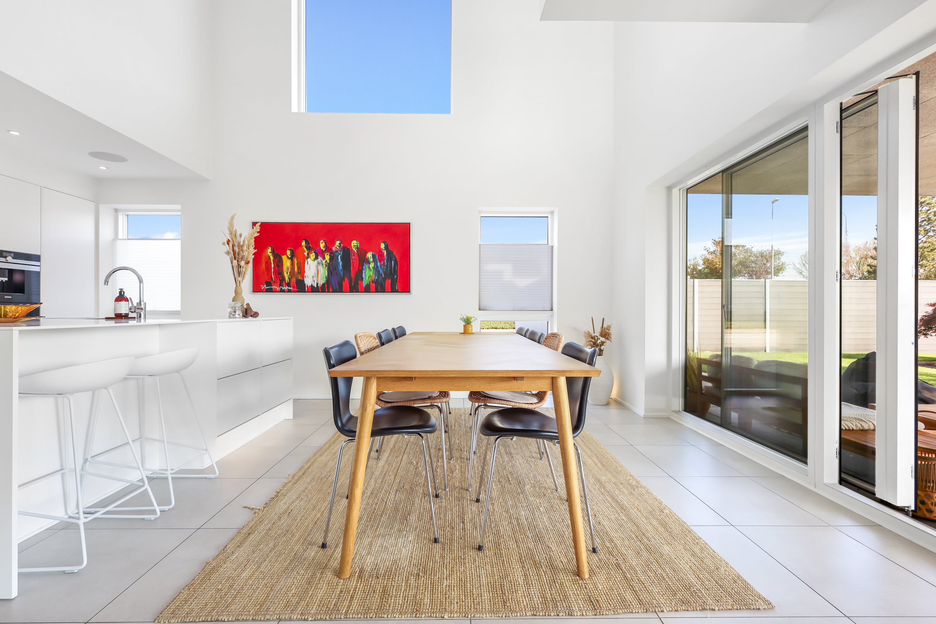 Med sine 194 m² bolig og en grund på 714 m² byder hjemmet på en indbydende kombination af rummelighed og arkitektonisk finesse. Her er højt til loftet – både fysisk og æstetisk. De elegante løsninger, de rene linjer og den lyse, luftige indretning skaber et hjem i absolut særklasse.