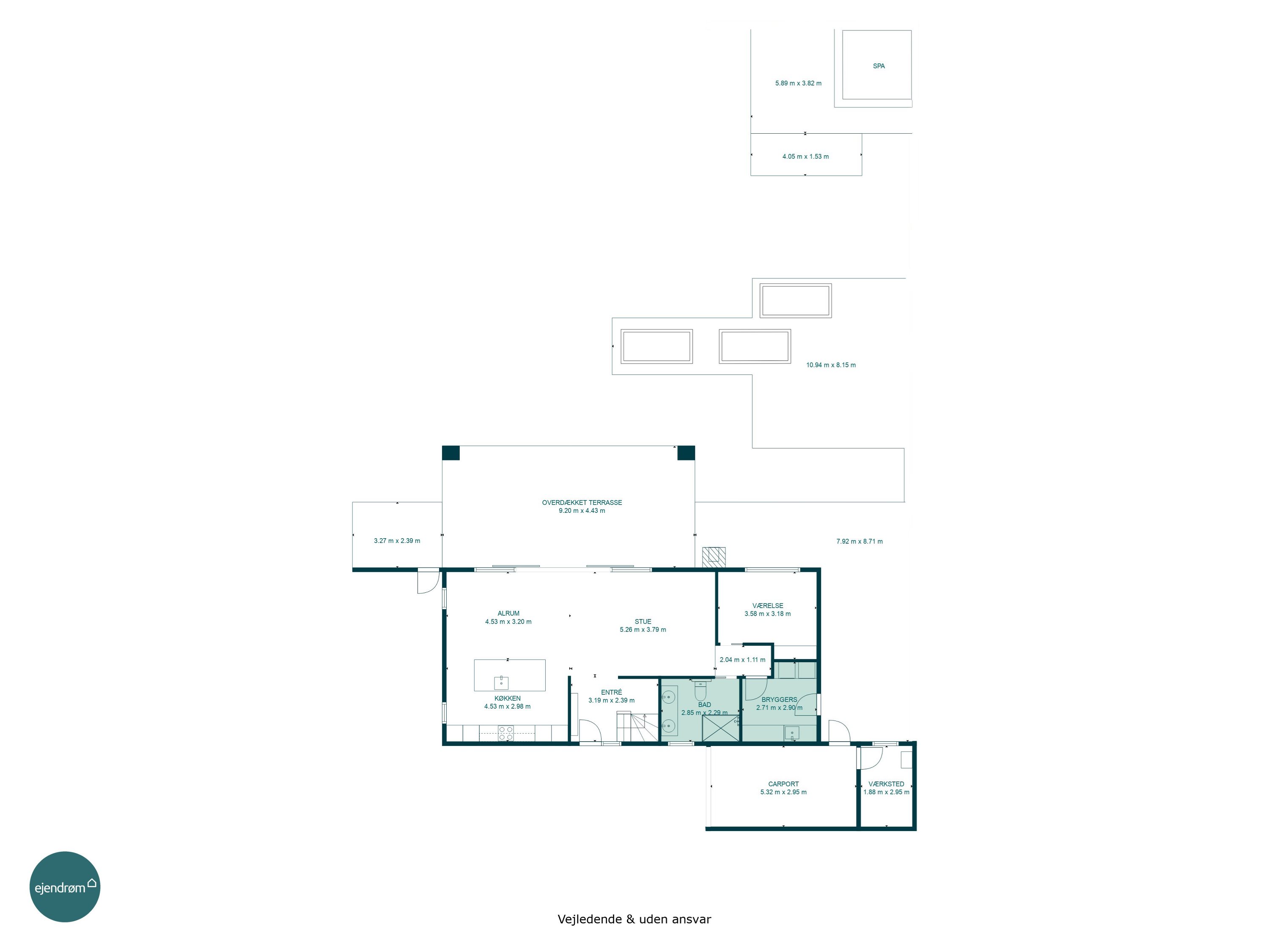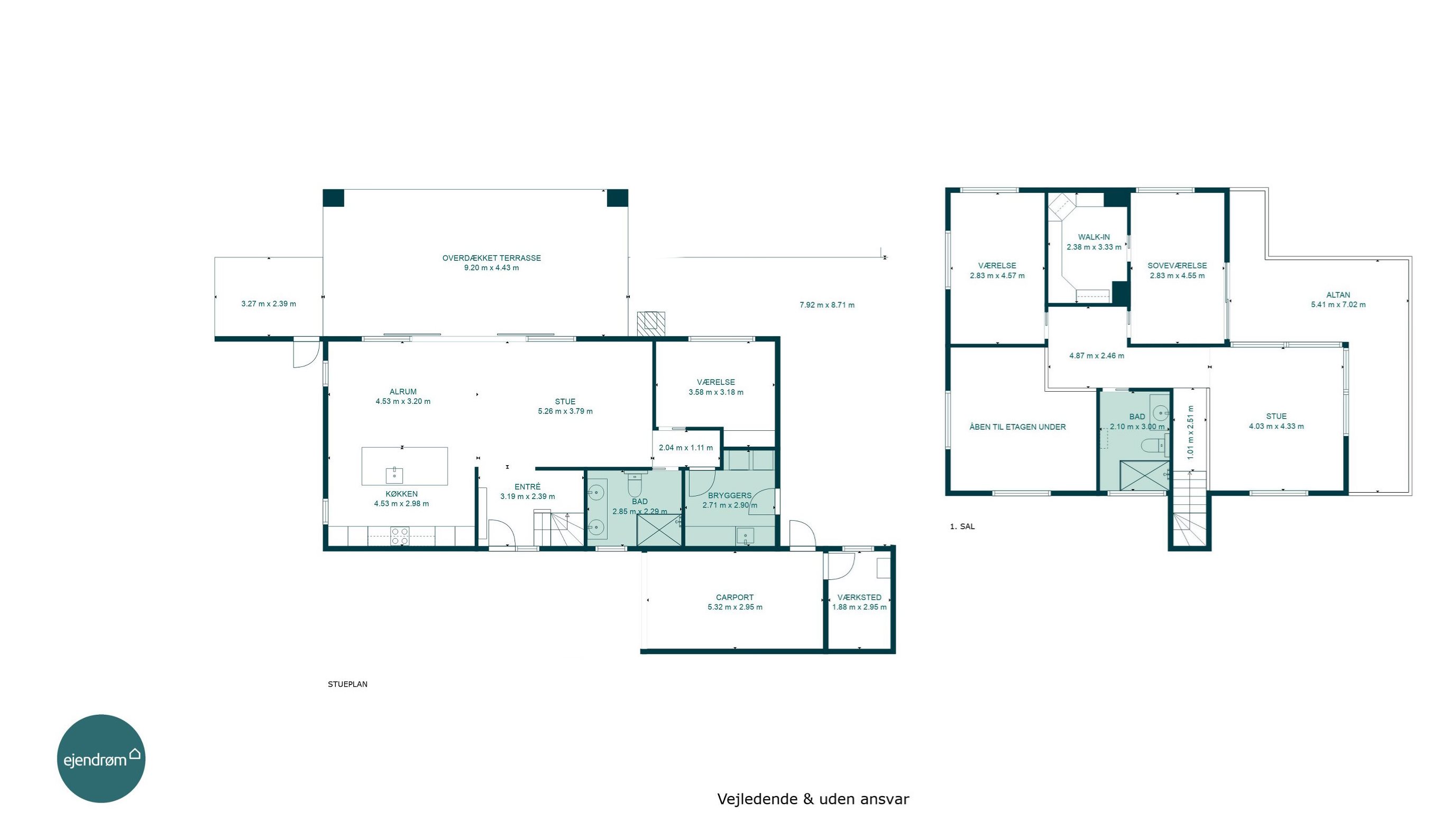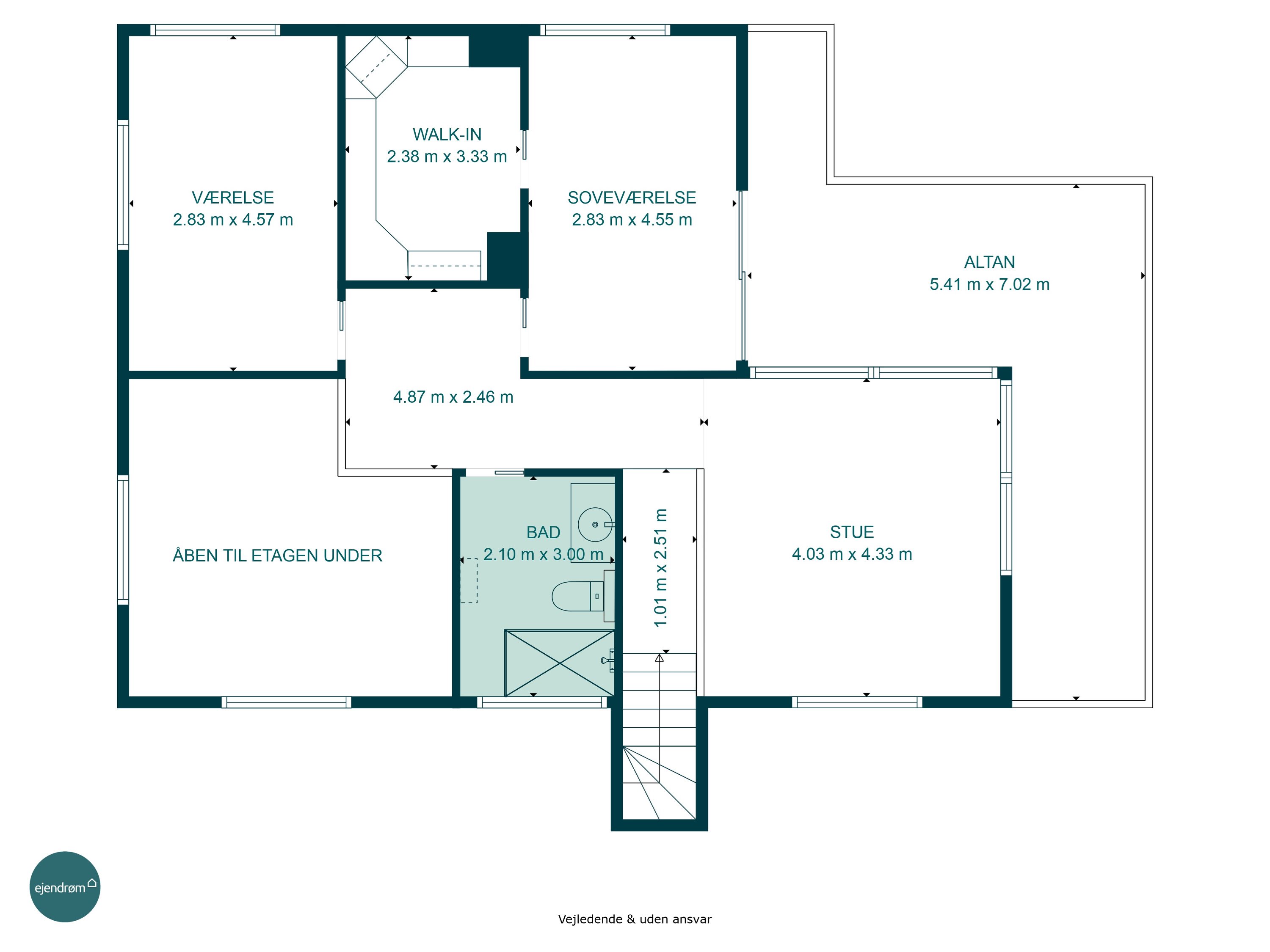 Planløsningen er ideel for den pladskrævende familie. I stueplanen finder man det åbne køkken/alrum, hvor de mange vinduespartier og panorama-loftet skaber et imponerende lysindfald. Ydermere er der bryggers, badeværelse og et godt værelse i stueplanen.