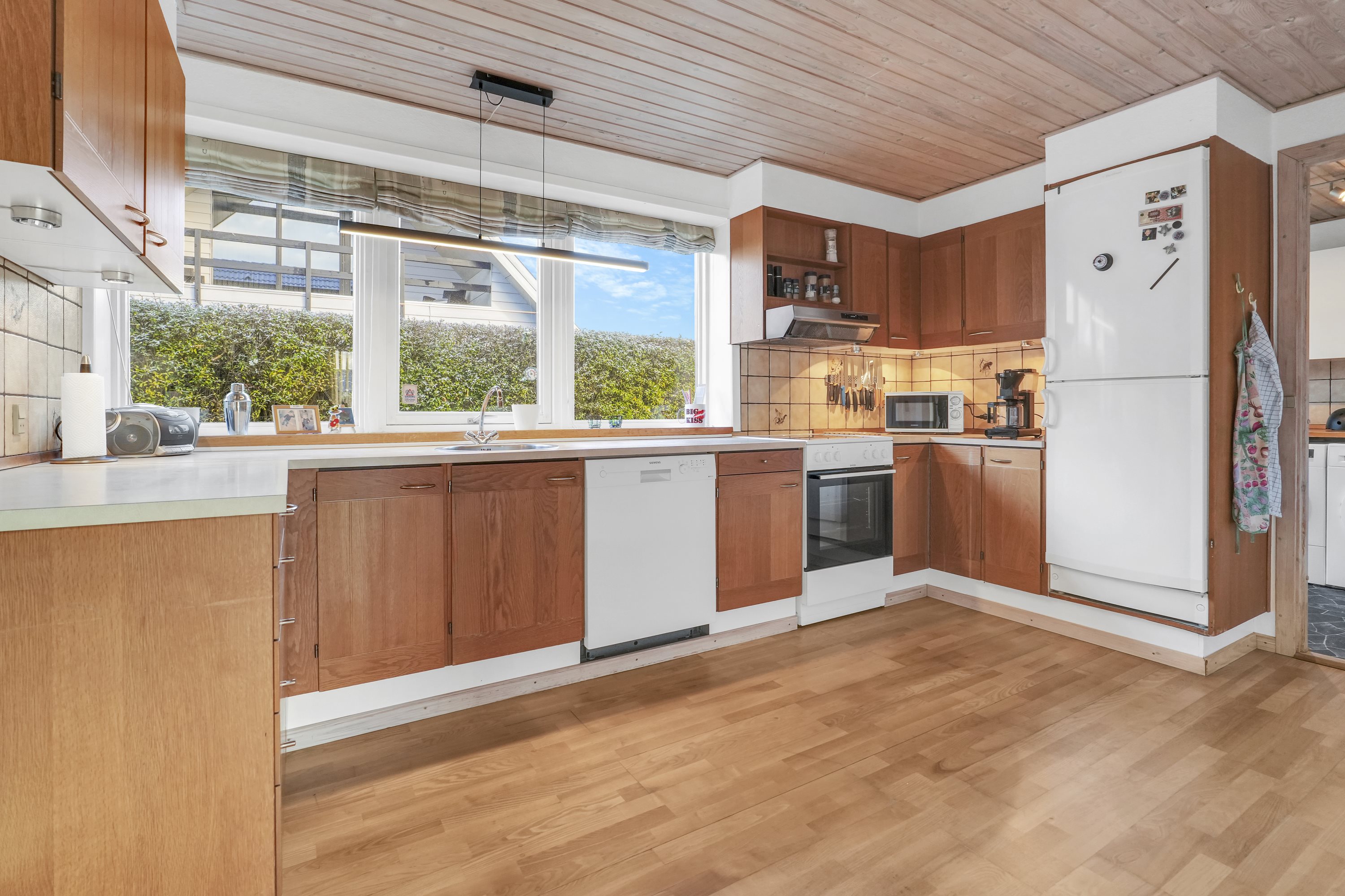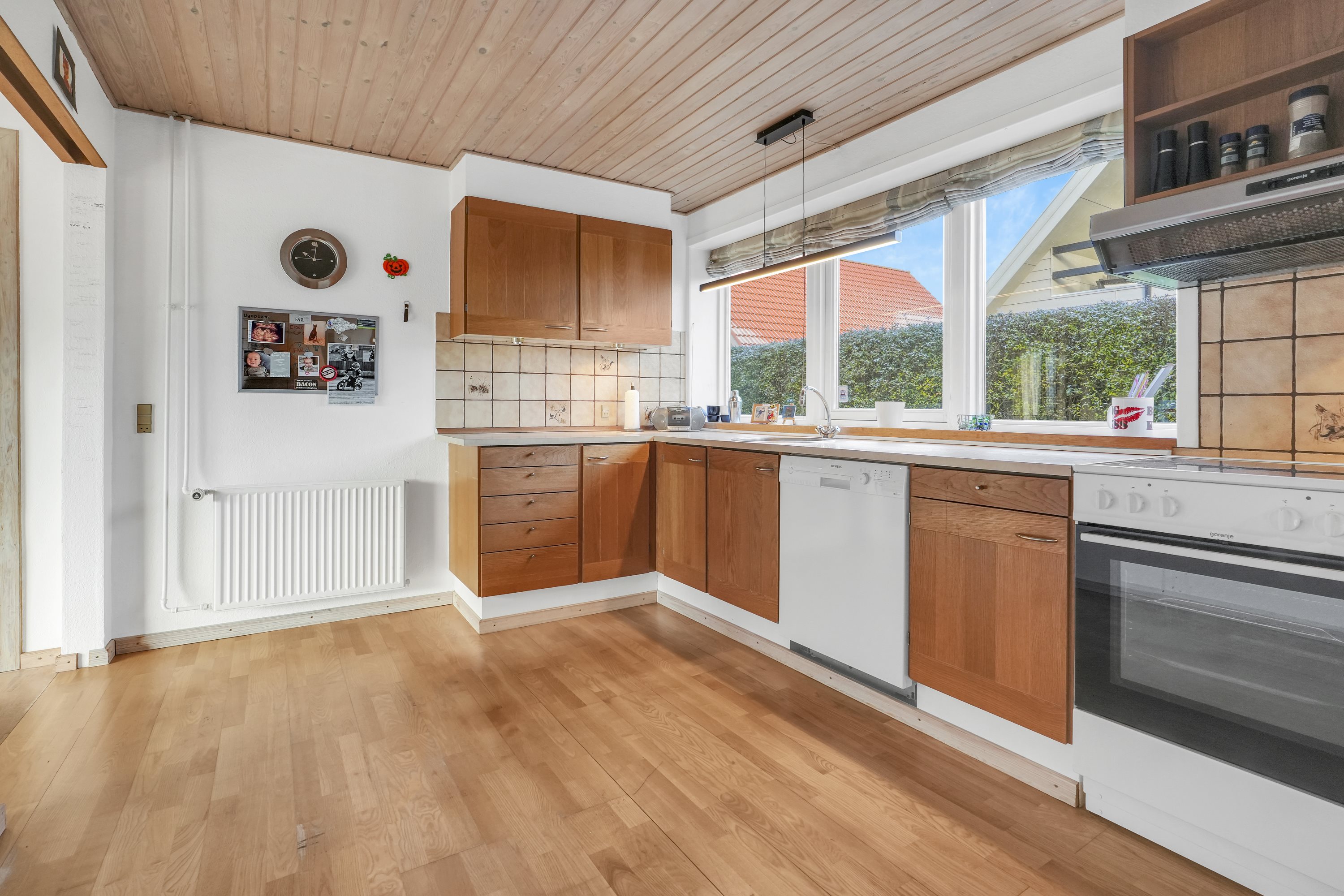 Køkkenet og stuen er hjertet i dette hjem, og det forlænger sig elegante, hvilket skaber en åben og indbydende atmosfære. Uanset om det er hyggelige middage med familien eller afslappede sammenkomster med venner, vil dette område være det ideelle sted at samles.