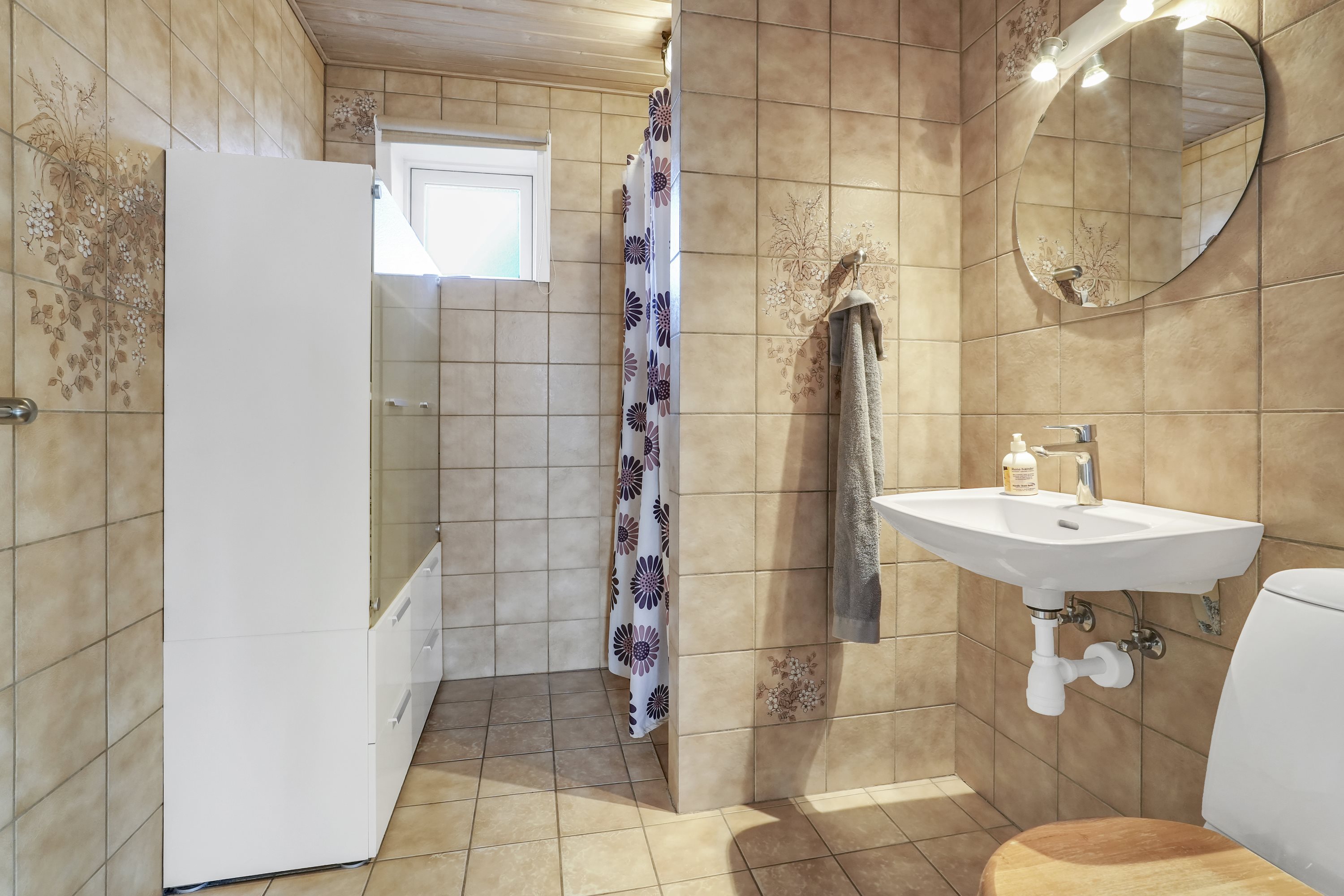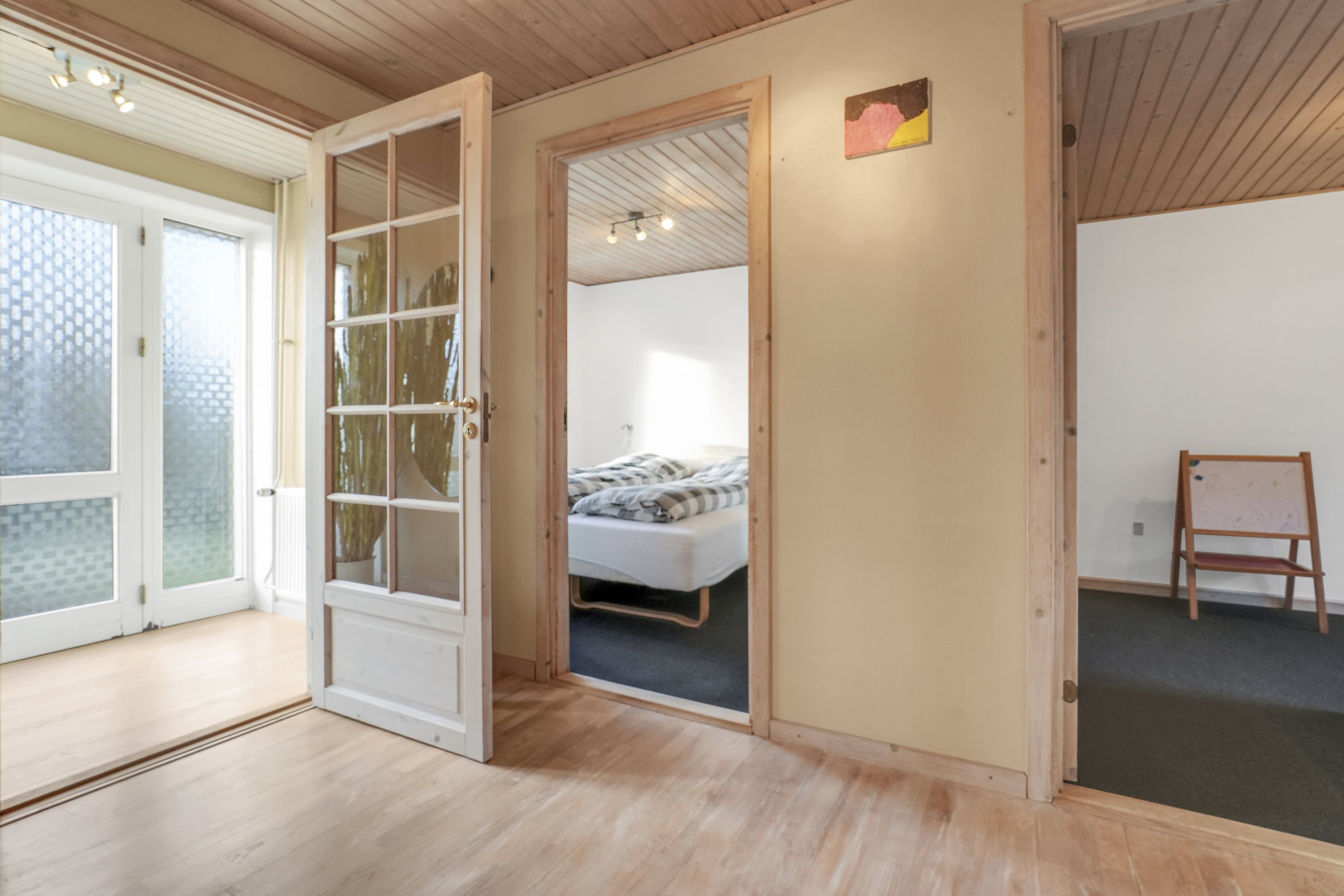 Udover entre, køkken og stue, finder du i stueplan to gedigne værelser samt et badeværelse med god plads. Det er praktisk og det er gennemtænkt.
