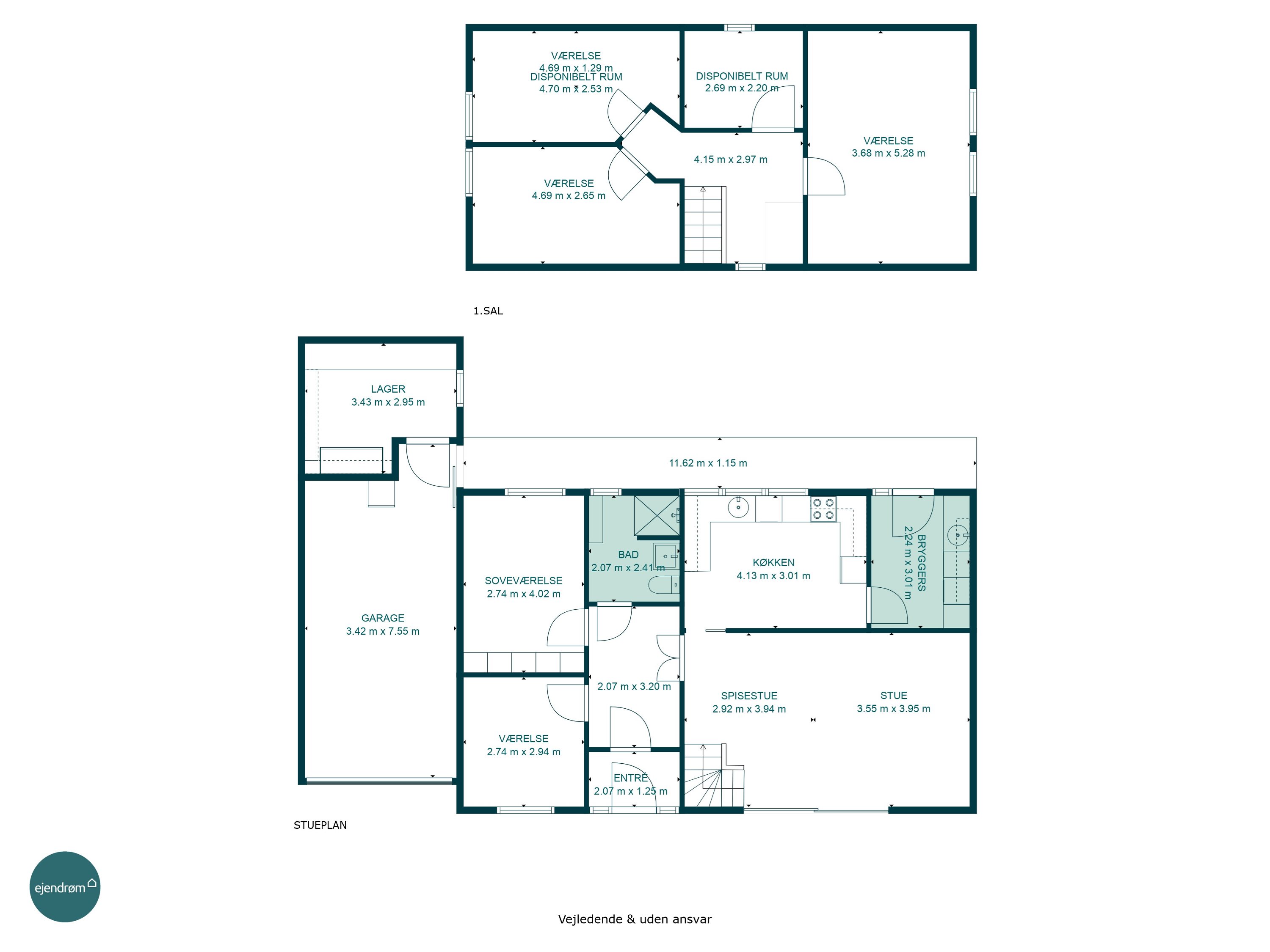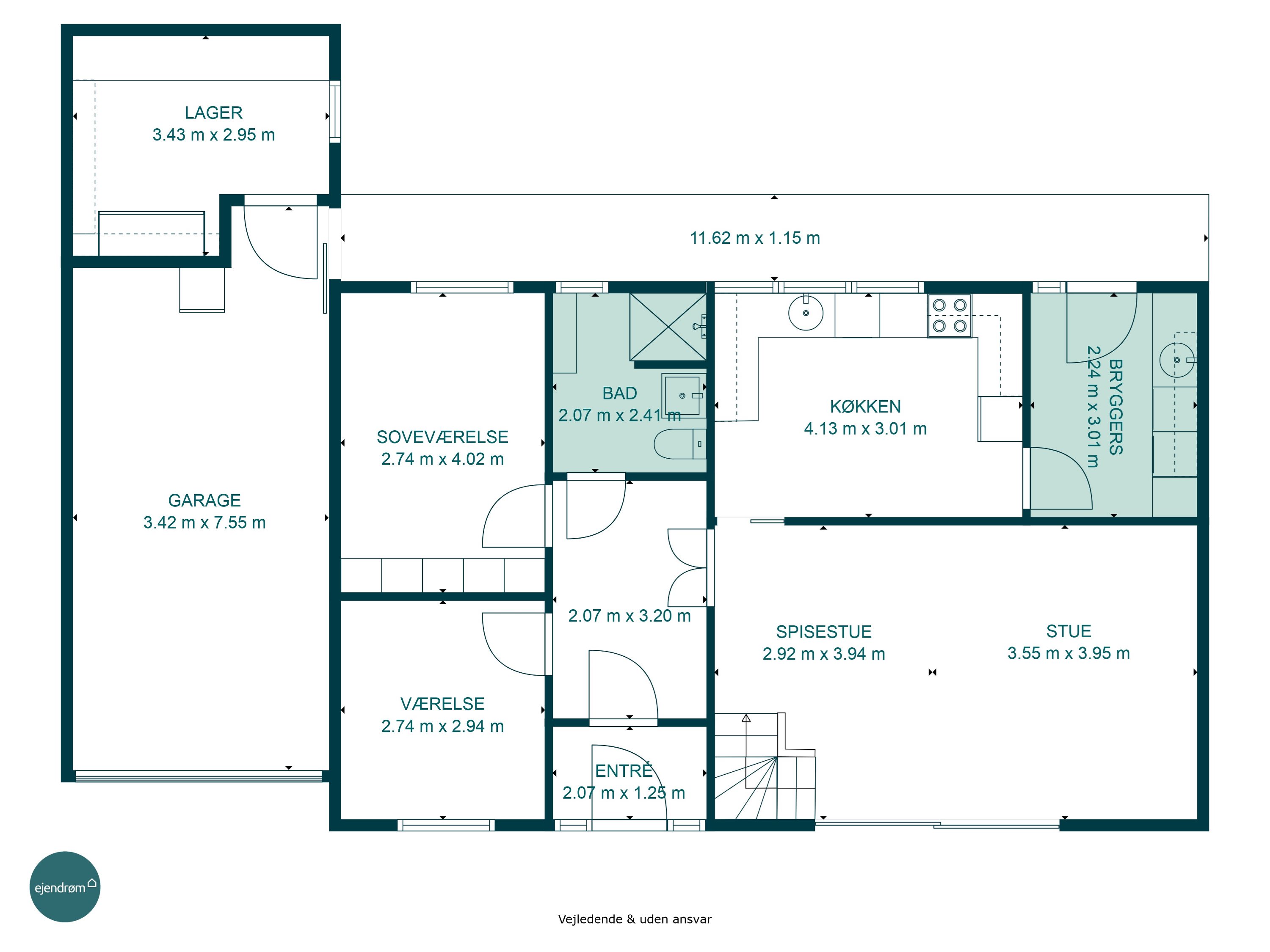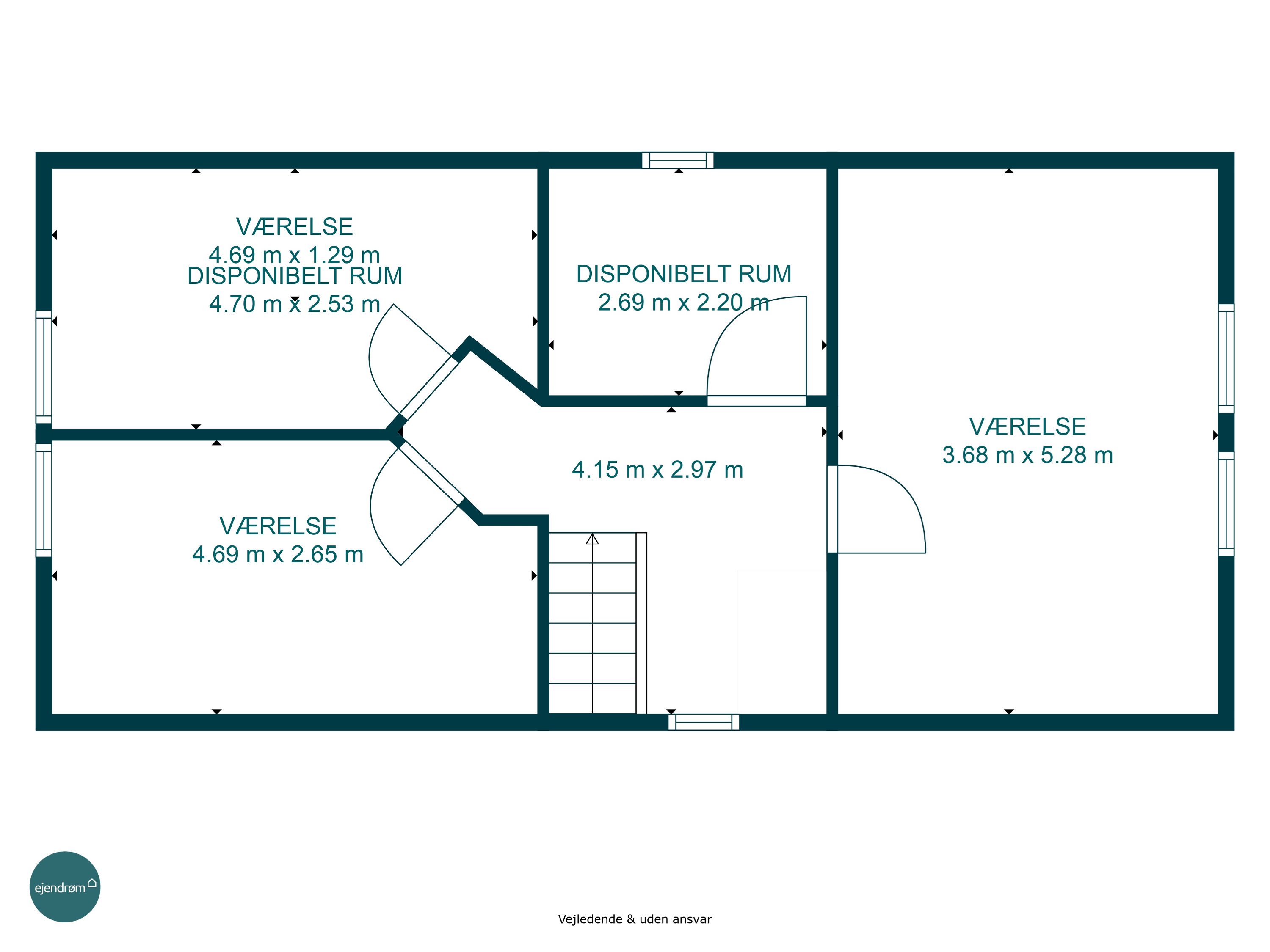 Tæller vi overetagen med finder du masser af gode værelser med rigelig plads til hele familien eller mulighed for at have et hjemmekontor, legerum eller gæsteværelse. Kun fantasien sætter grænser.