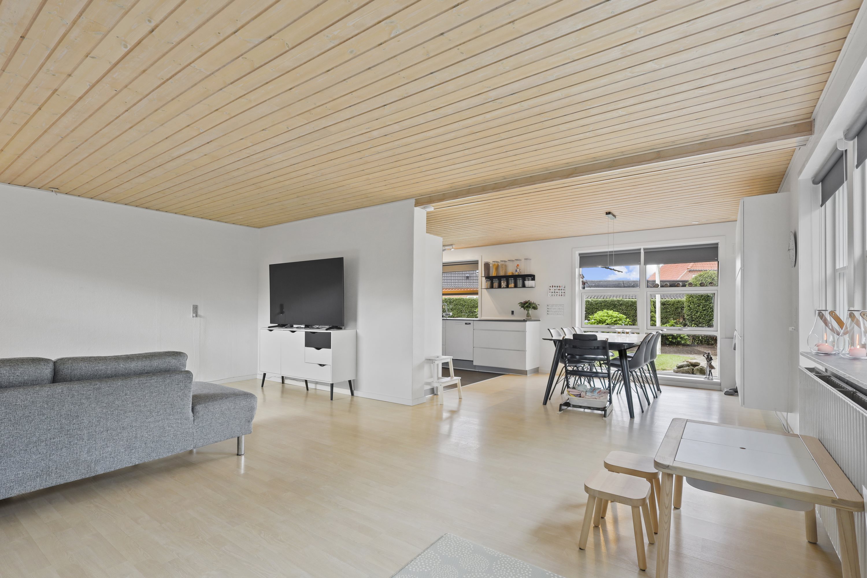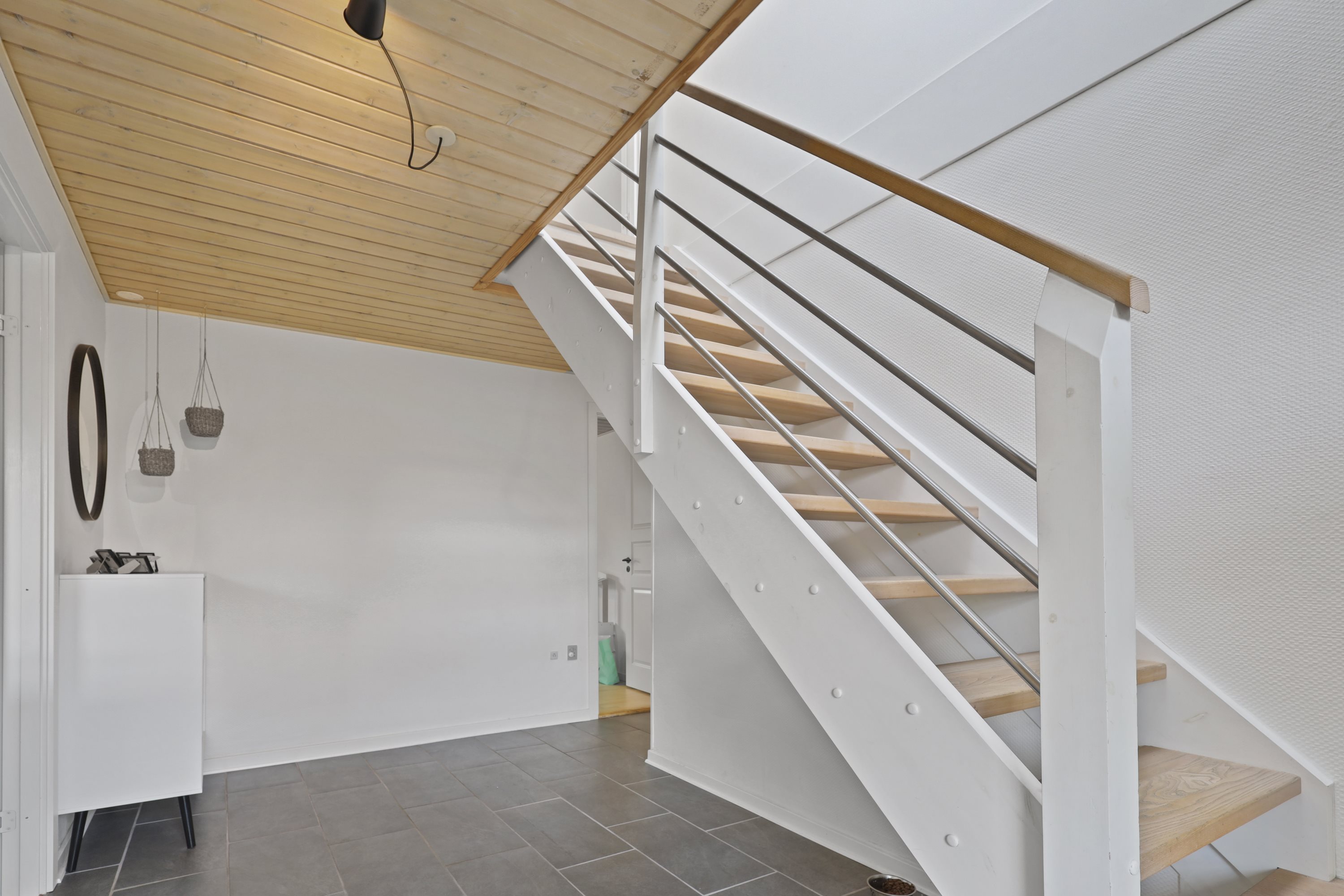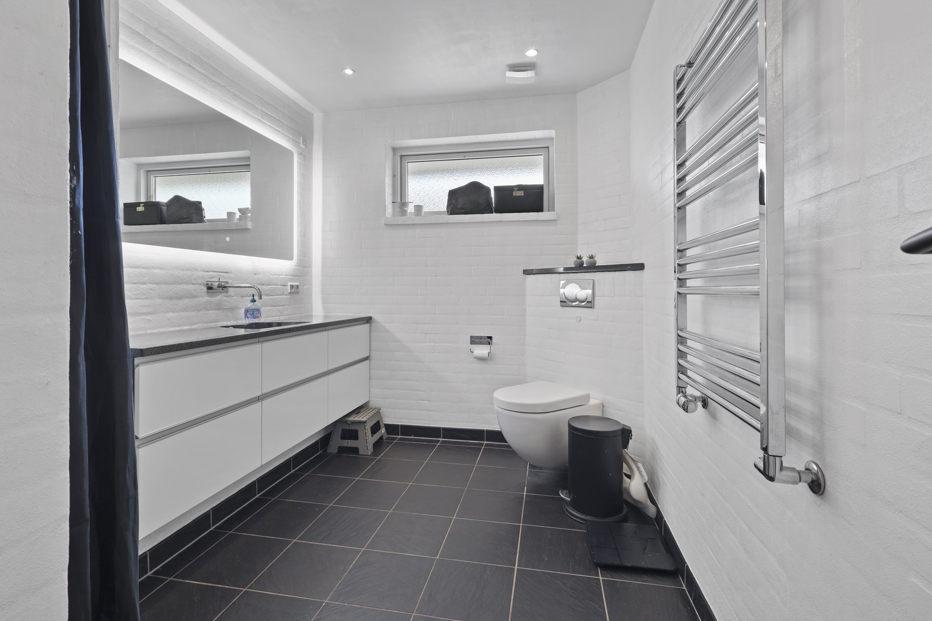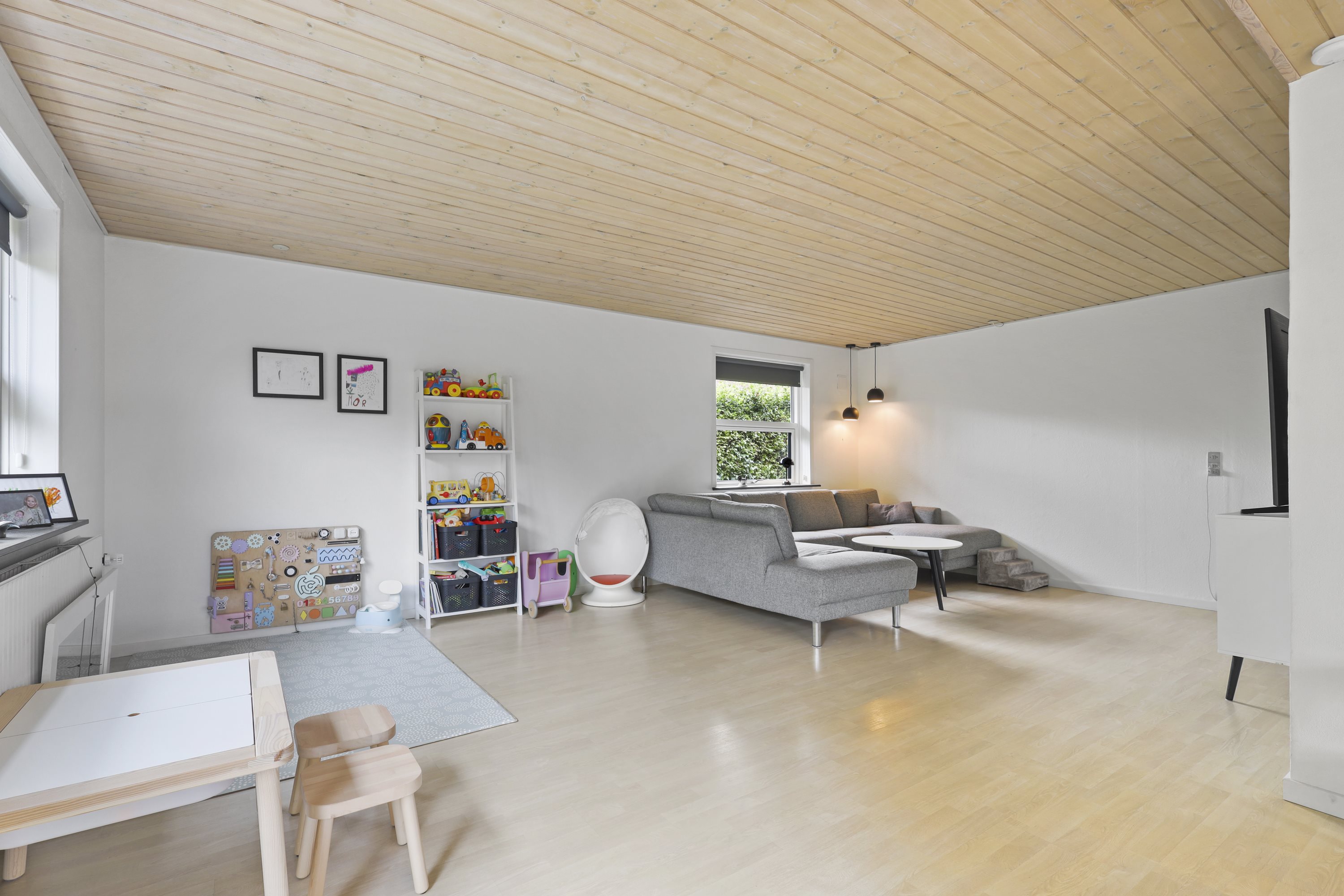 Villaen byder på i alt 202 veludnyttede kvardratmeter. I stueplanen bliver man mødt af et lyst og praktisk bryggers. Her er der god plads til ungernes overtøj, samt mange af de praktiske gøremål i hverdagen. I forlængelse heraf er der en klassisk fordelingsgang, som forbinder stueplanen på en harmonisk og god måde. Her er der 2 store værelser, hvoraf det ene i dag bruges til soveværelse. I naturlig forbindelse hertil, er der et lækkert badeværelse med bruseniche.