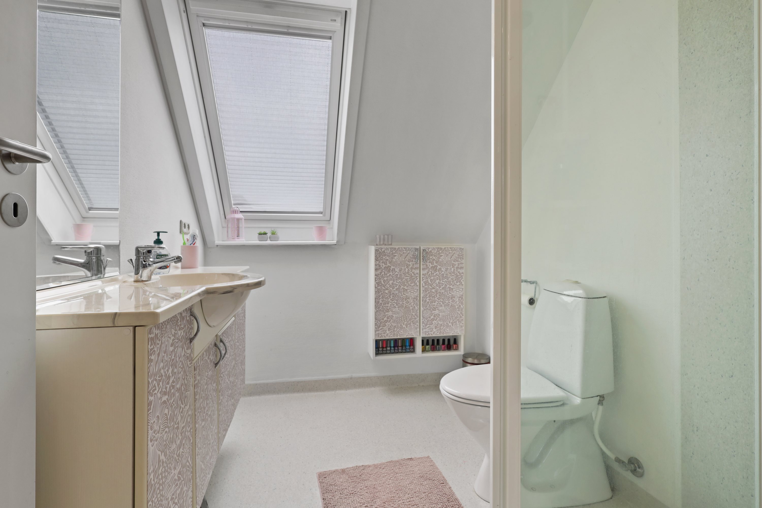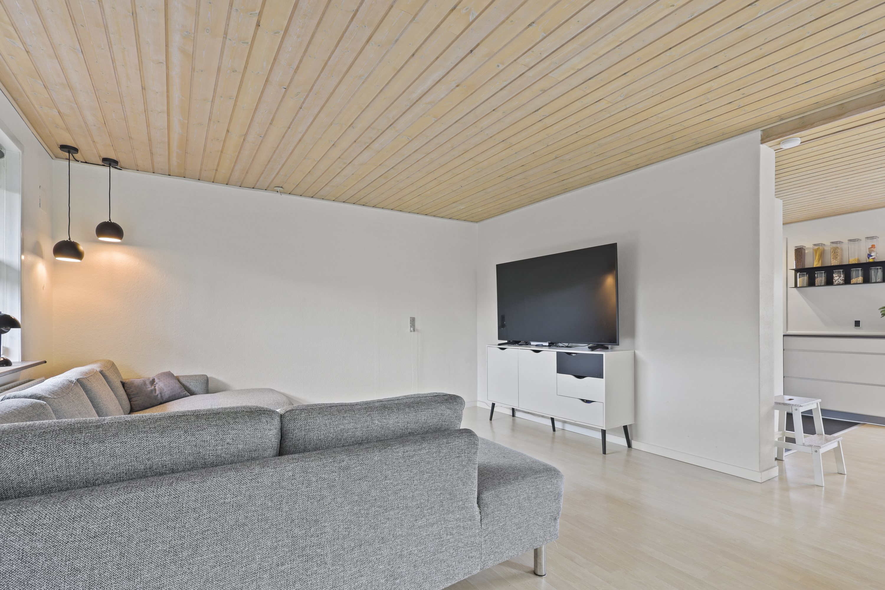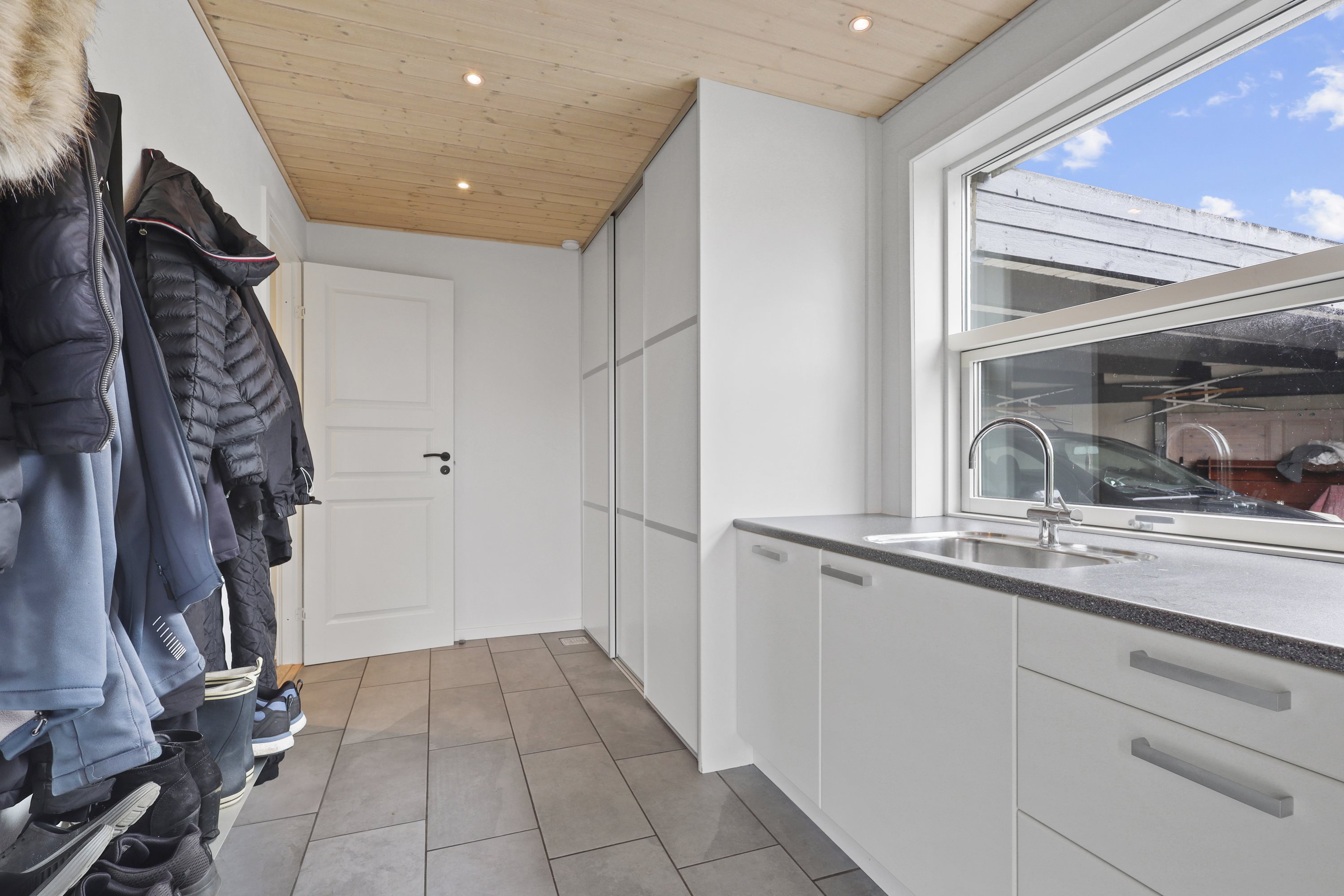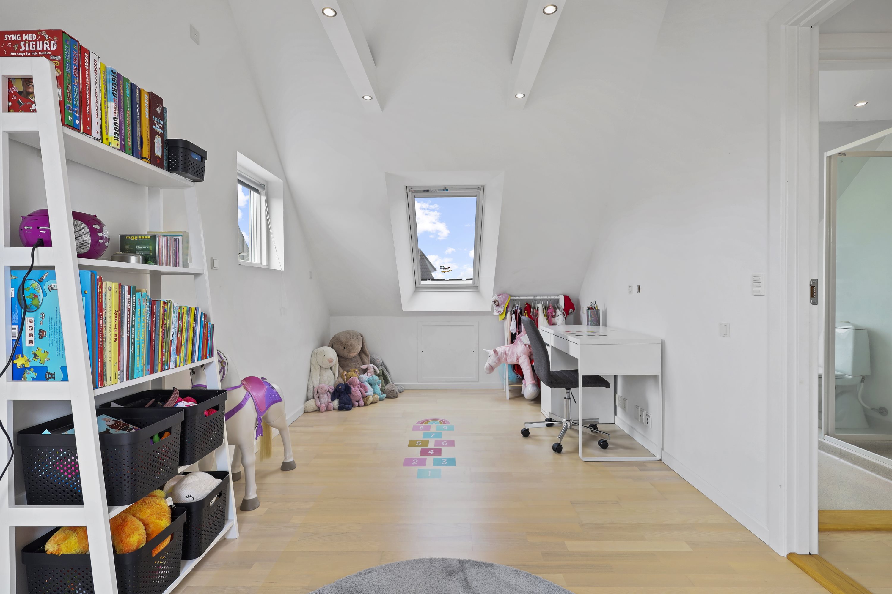 Villaen byder på i alt 202 veludnyttede kvardratmeter. I stueplanen bliver man mødt af et lyst og praktisk bryggers. Her er der god plads til ungernes overtøj, samt mange af de praktiske gøremål i hverdagen. I forlængelse heraf er der en klassisk fordelingsgang, som forbinder stueplanen på en harmonisk og god måde. Her er der 2 store værelser, hvoraf det ene i dag bruges til soveværelse. I naturlig forbindelse hertil, er der et lækkert badeværelse med bruseniche.