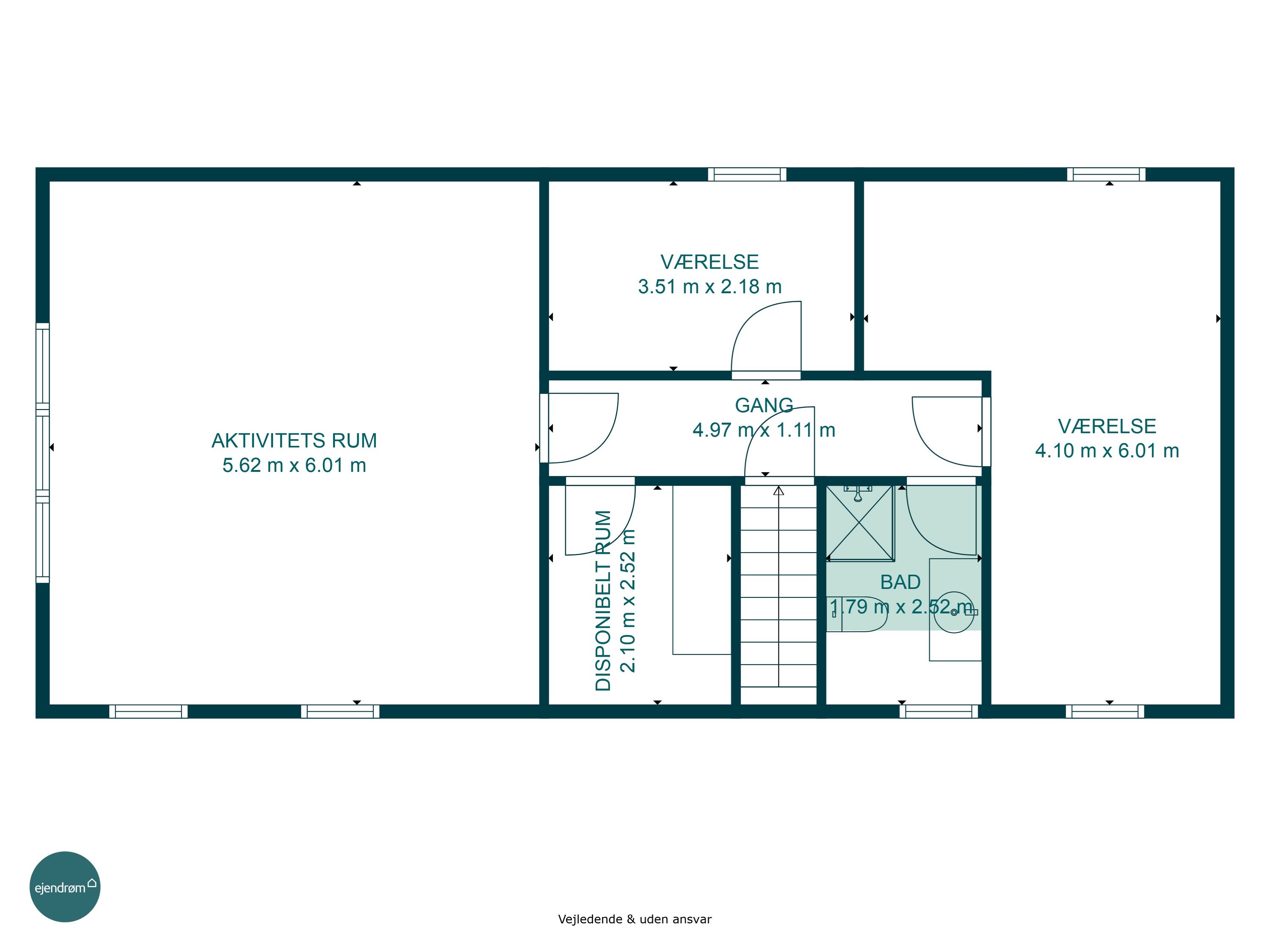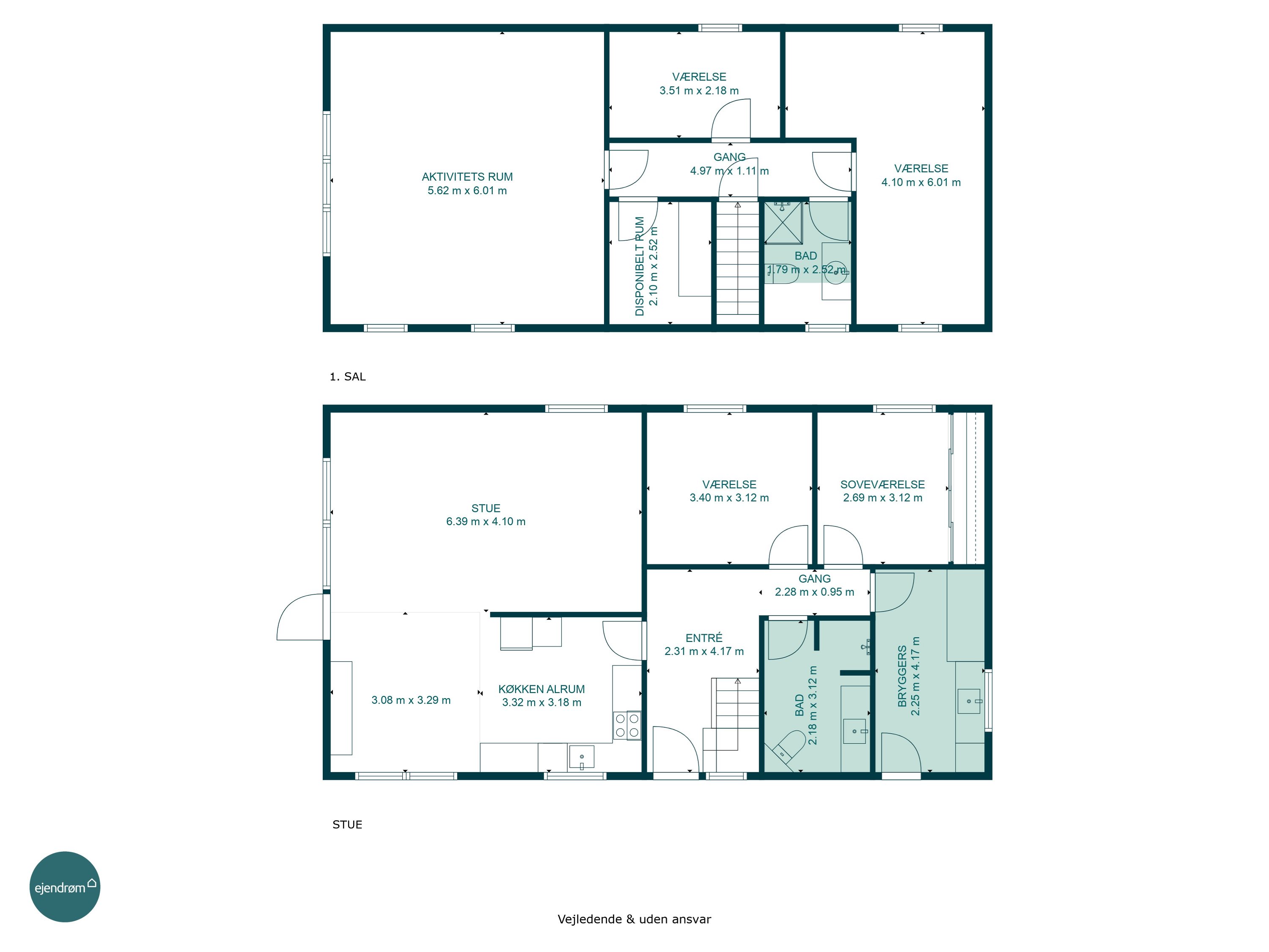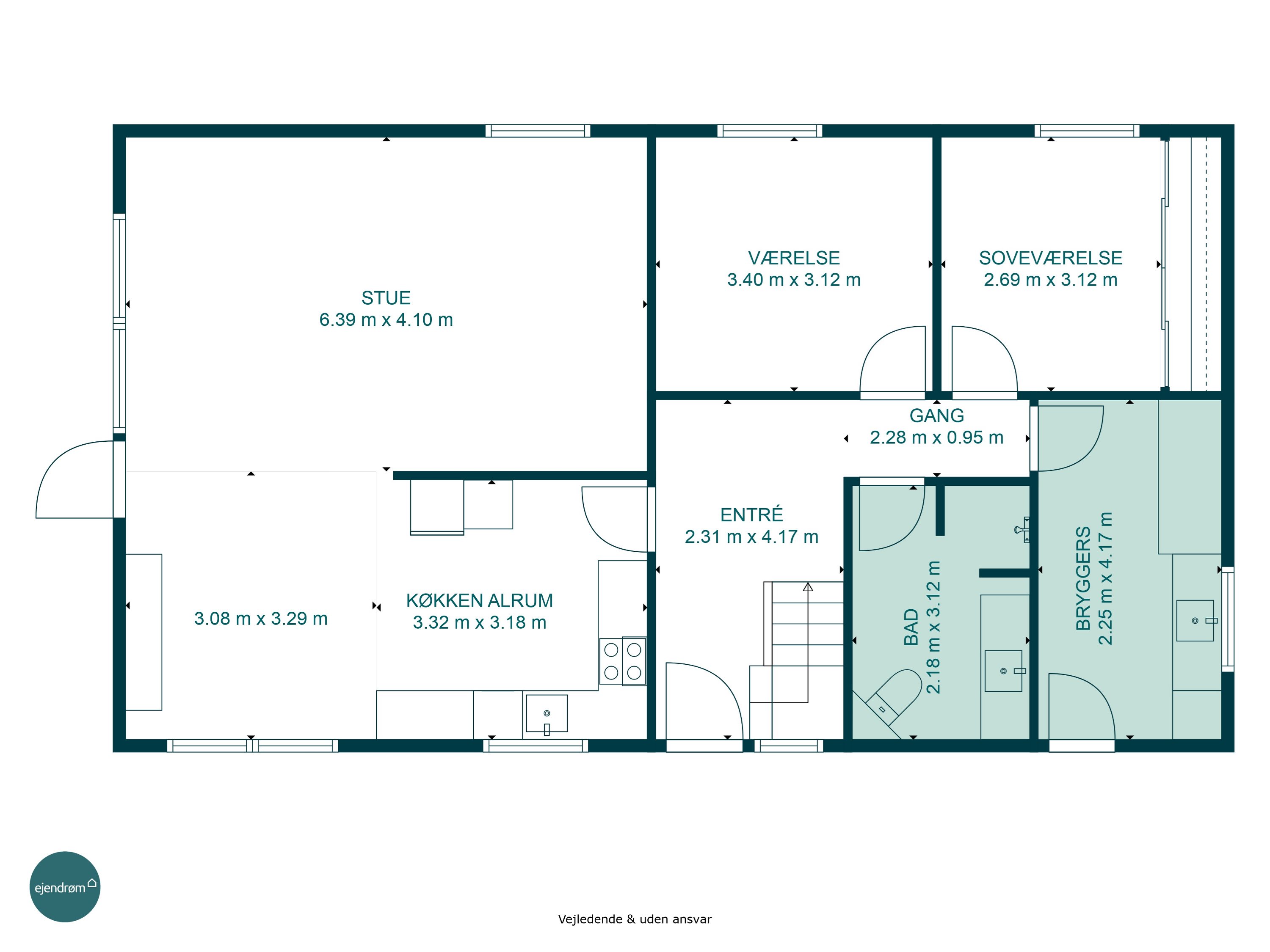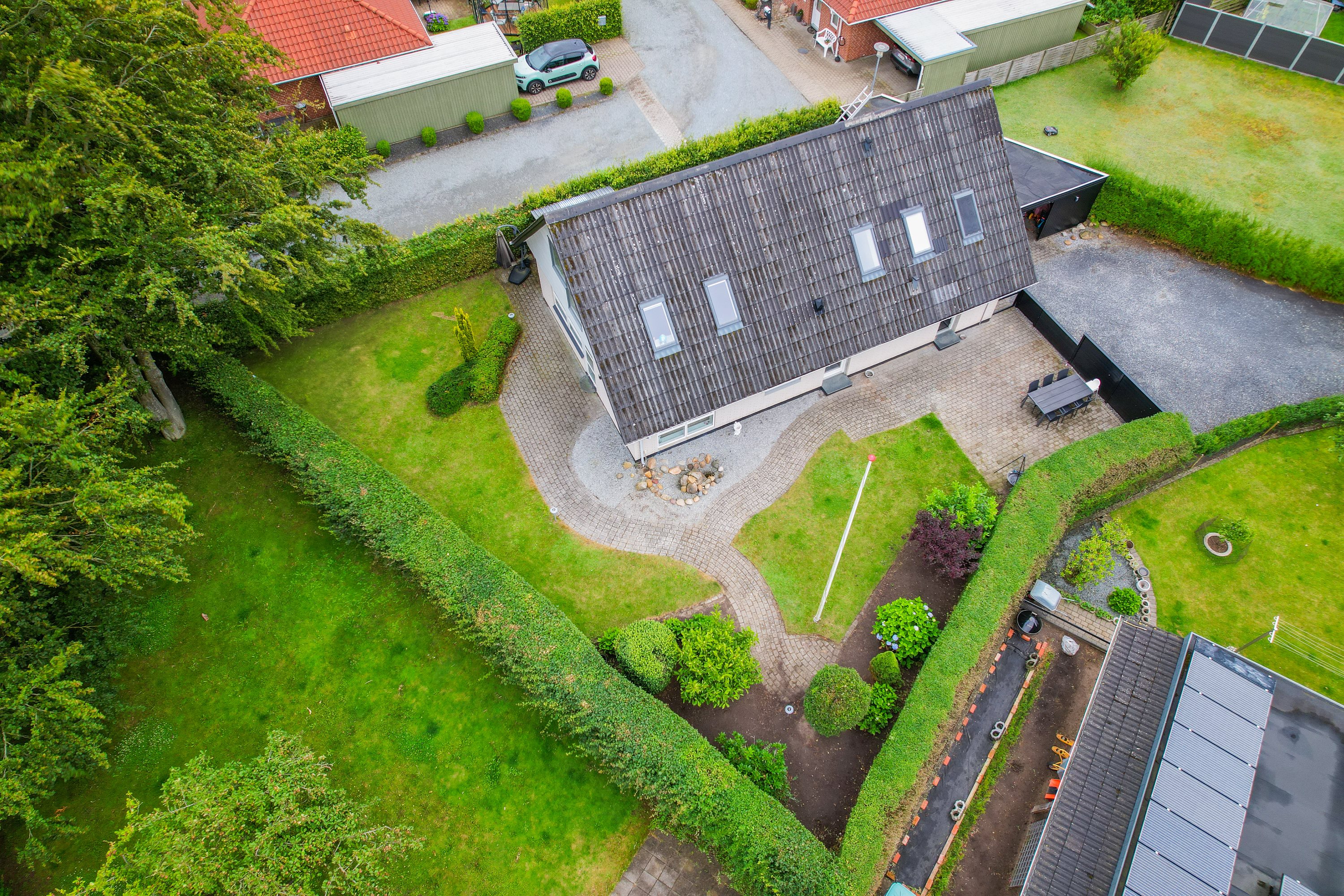 Villaen byder på i alt 202 veludnyttede kvardratmeter. I stueplanen bliver man mødt af et lyst og praktisk bryggers. Her er der god plads til ungernes overtøj, samt mange af de praktiske gøremål i hverdagen. I forlængelse heraf er der en klassisk fordelingsgang, som forbinder stueplanen på en harmonisk og god måde. Her er der 2 store værelser, hvoraf det ene i dag bruges til soveværelse. I naturlig forbindelse hertil, er der et lækkert badeværelse med bruseniche.