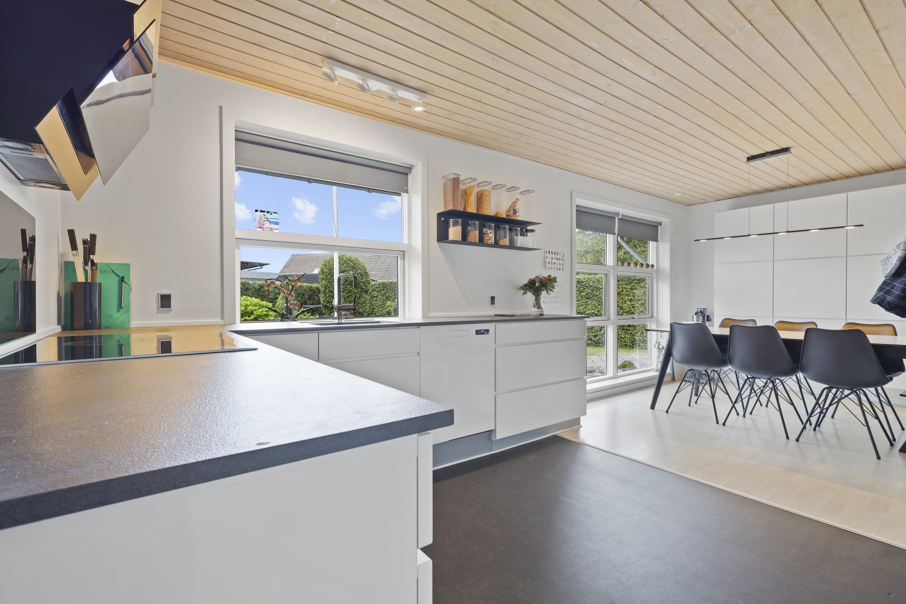 “Hjertet” er det åbne og dejlige køkken/alrum, som ligeledes er gennemrenoveret. Her får man masser af skabs- og bordplads, så der er plads til den store familie, når madlavningen skal klares. I åben forbindelse er der et stort alrum, hvor der er god plads til familiens langbord. De store vinduespartier kaster samtidig et skønt gennemgående lysindfald til rummet. Et unikt rum, som vil behage den kræsne køber. Hertil er der naturligvis også en stor og møbleringsvenlig opholdsstue, som byder på god plads til familiehygge og samvær.