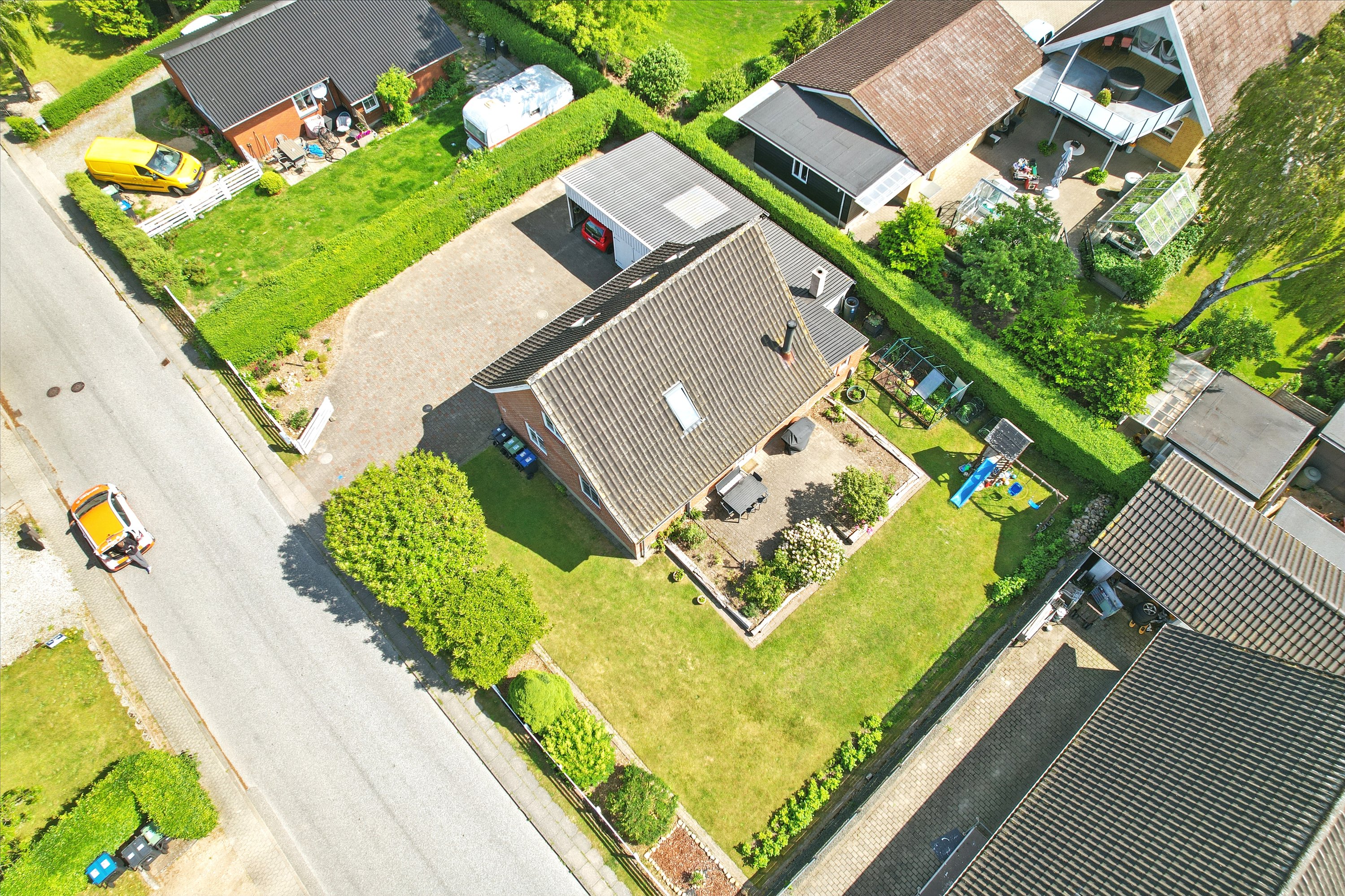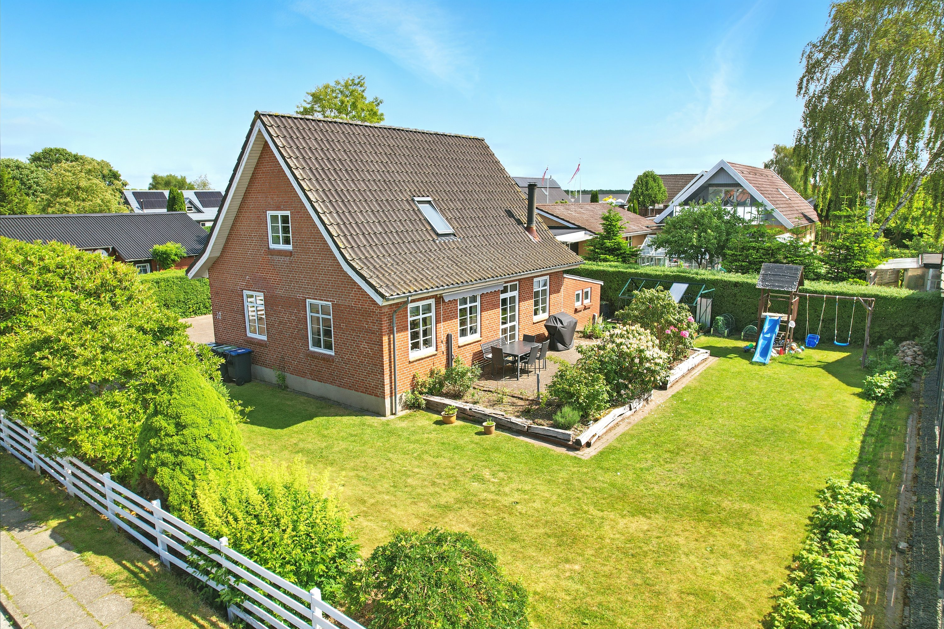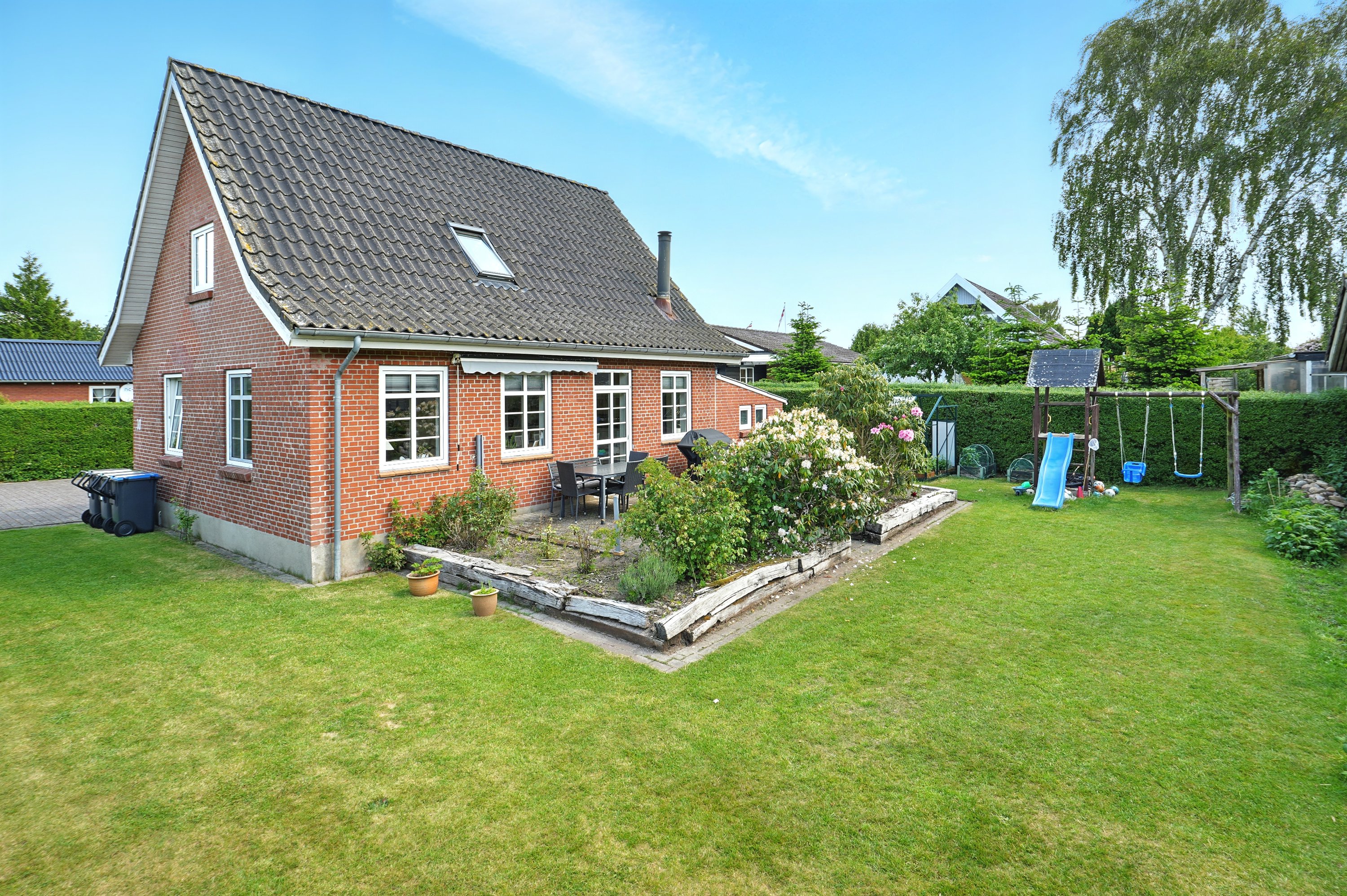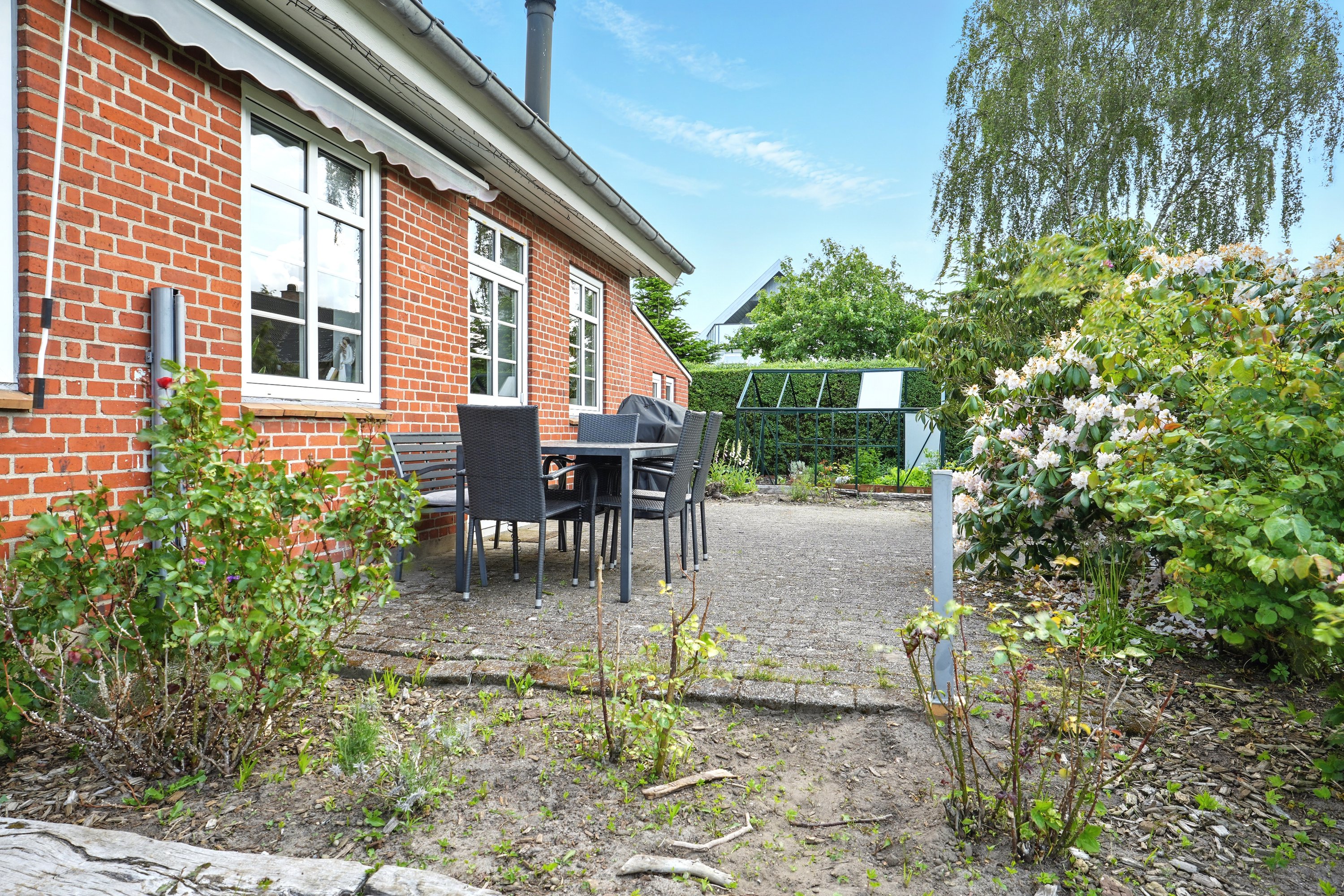 Haven er en lille oase, hvor der er plads til både leg og afslapning. Her er mulighed for boldspil på plænen, grillaftener på terrassen og masser af gode stunder under åben himmel.
