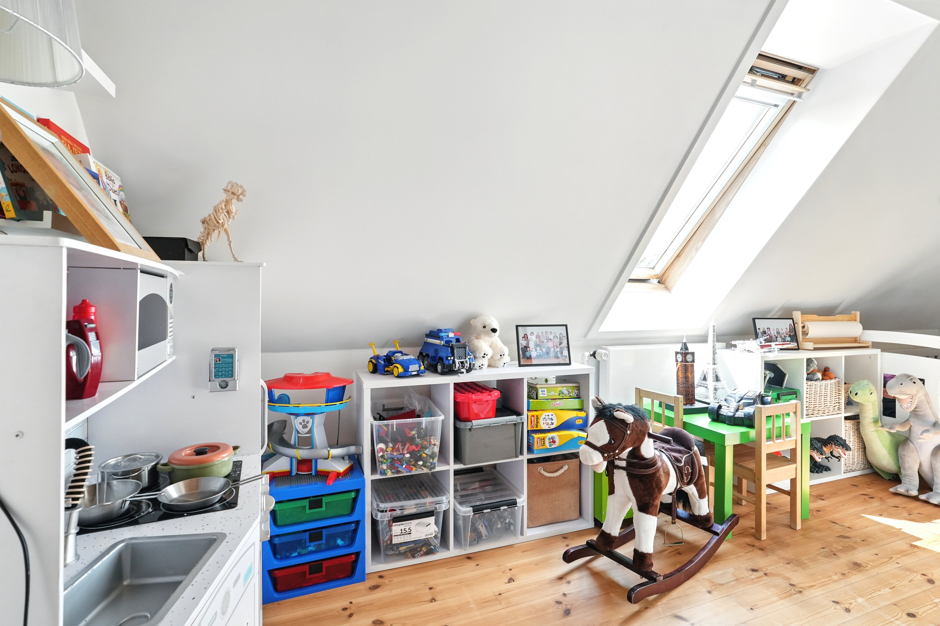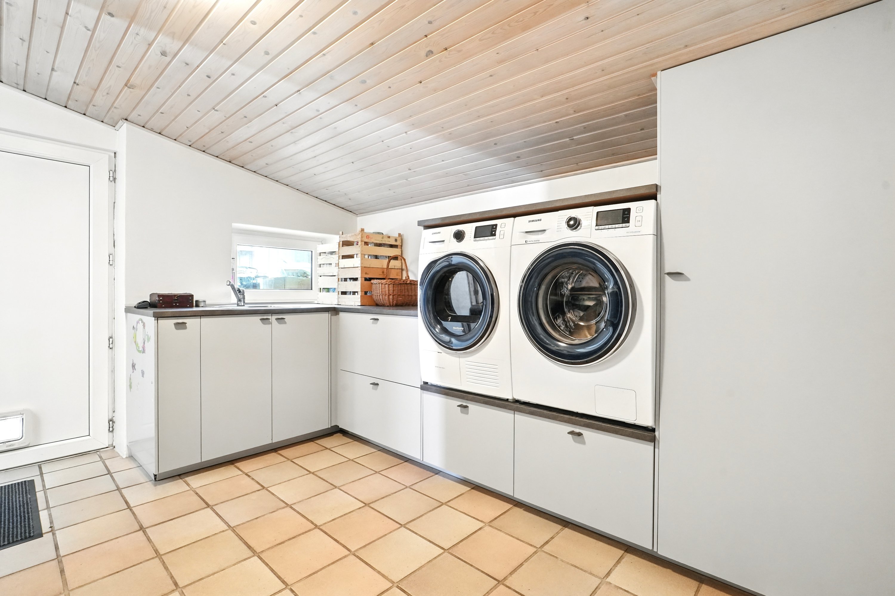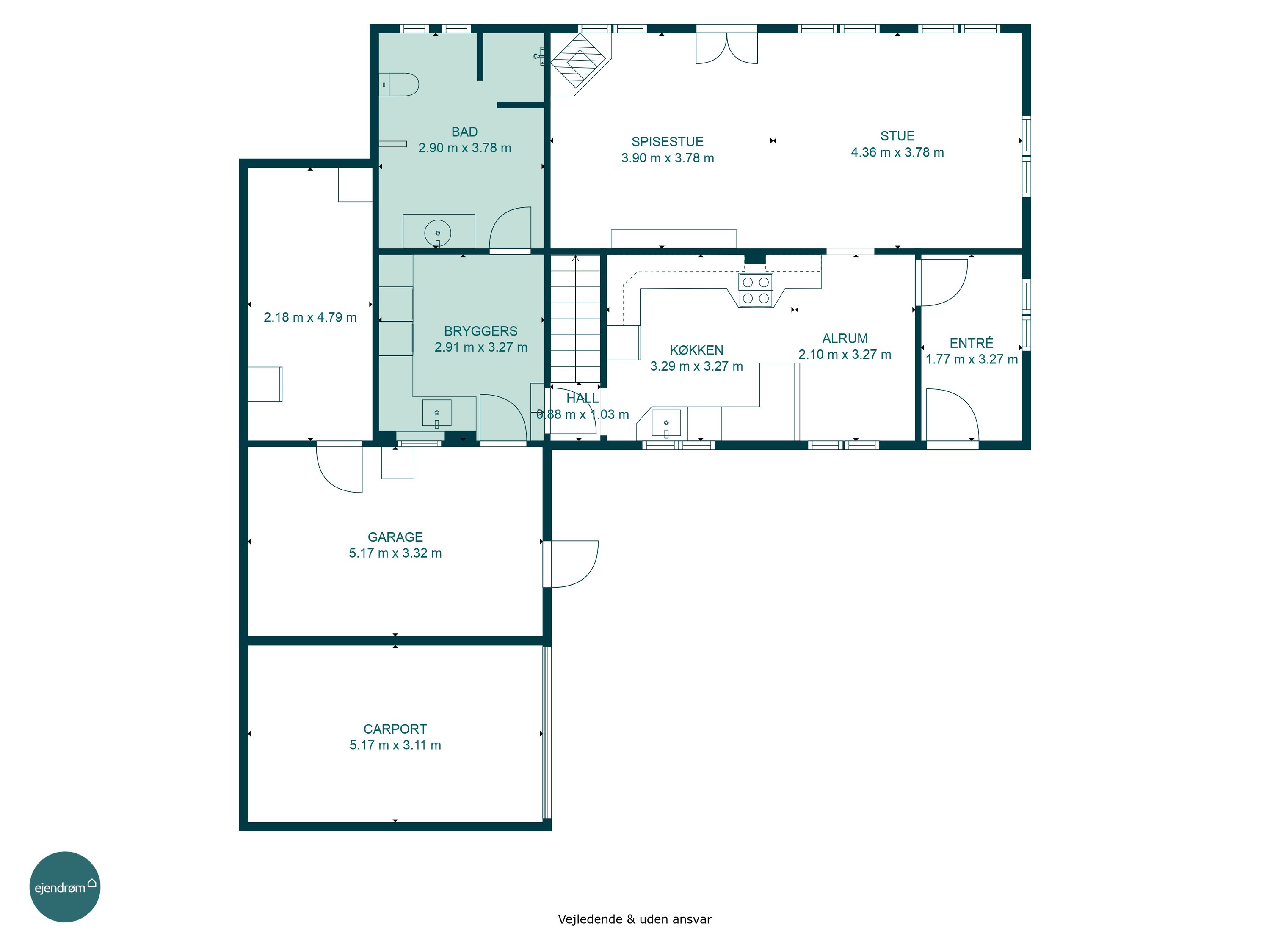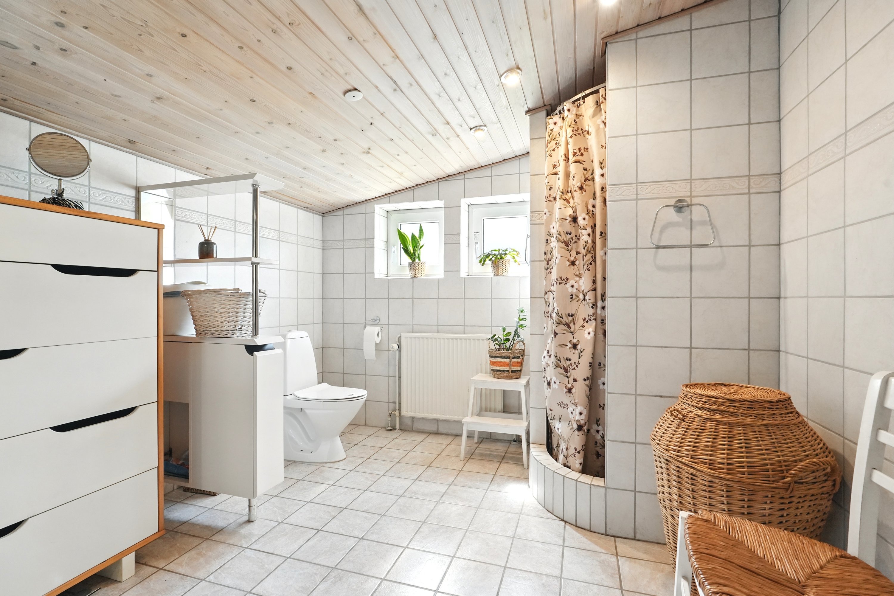 Indenfor fortsætter det gode førstehåndsindtryk. Den lyse entré tager imod med et venligt udtryk og leder jer videre ind i husets hjerte – det dejlige spisekøkken. Her er der masser af plads til at tilberede måltider, mens snakken går og vinen skænkes ved spisebordet. Når huset er fuldt af gæster, er det skønt, at den rummelige stue både kan rumme et stort spisebord og en hyggelig sofakrog – et perfekt rum til både festlige lejligheder og stille aftener. I stueetagen finder I desuden et stort og praktisk bryggers samt et pænt og rummeligt badeværelse.