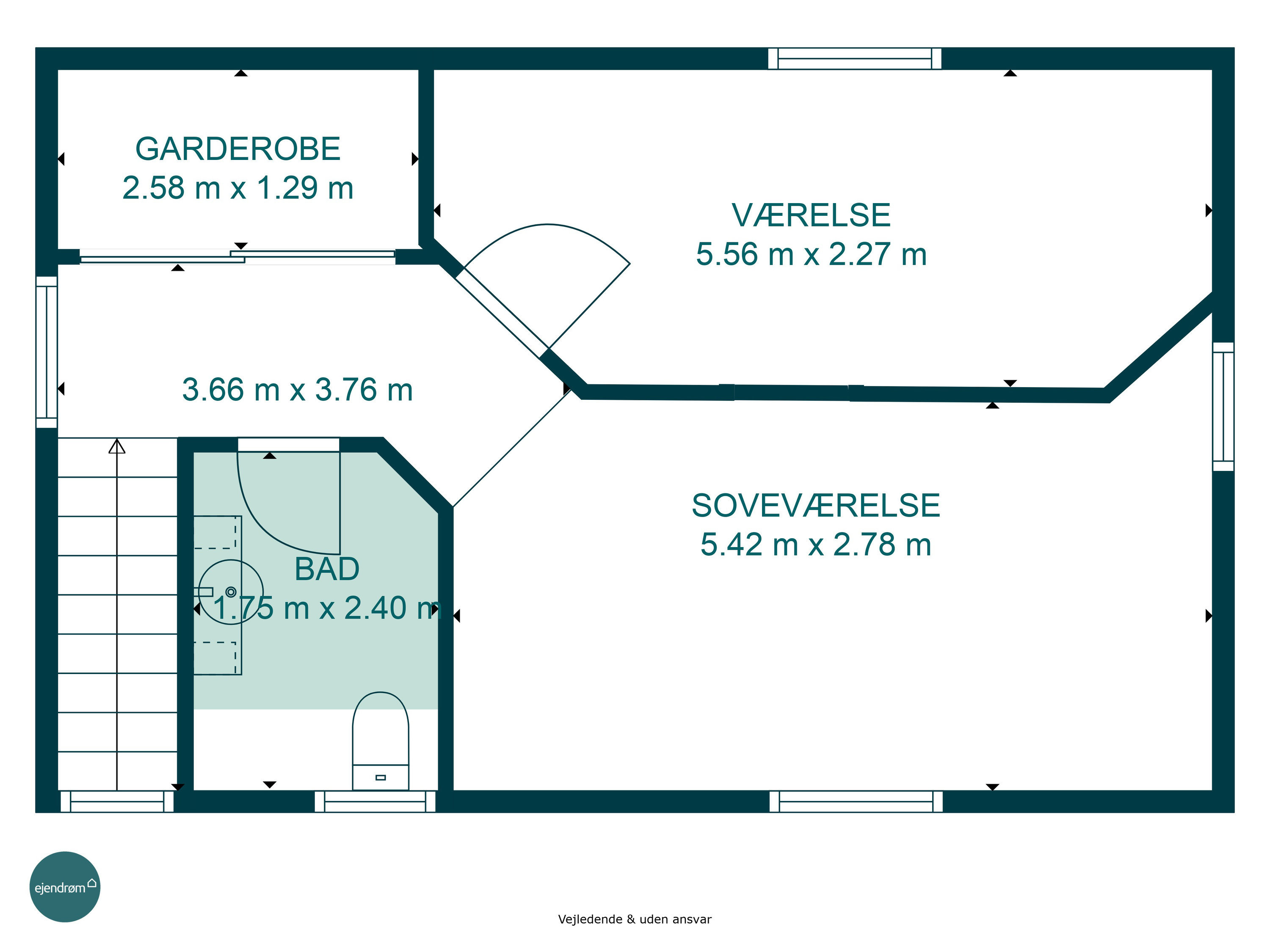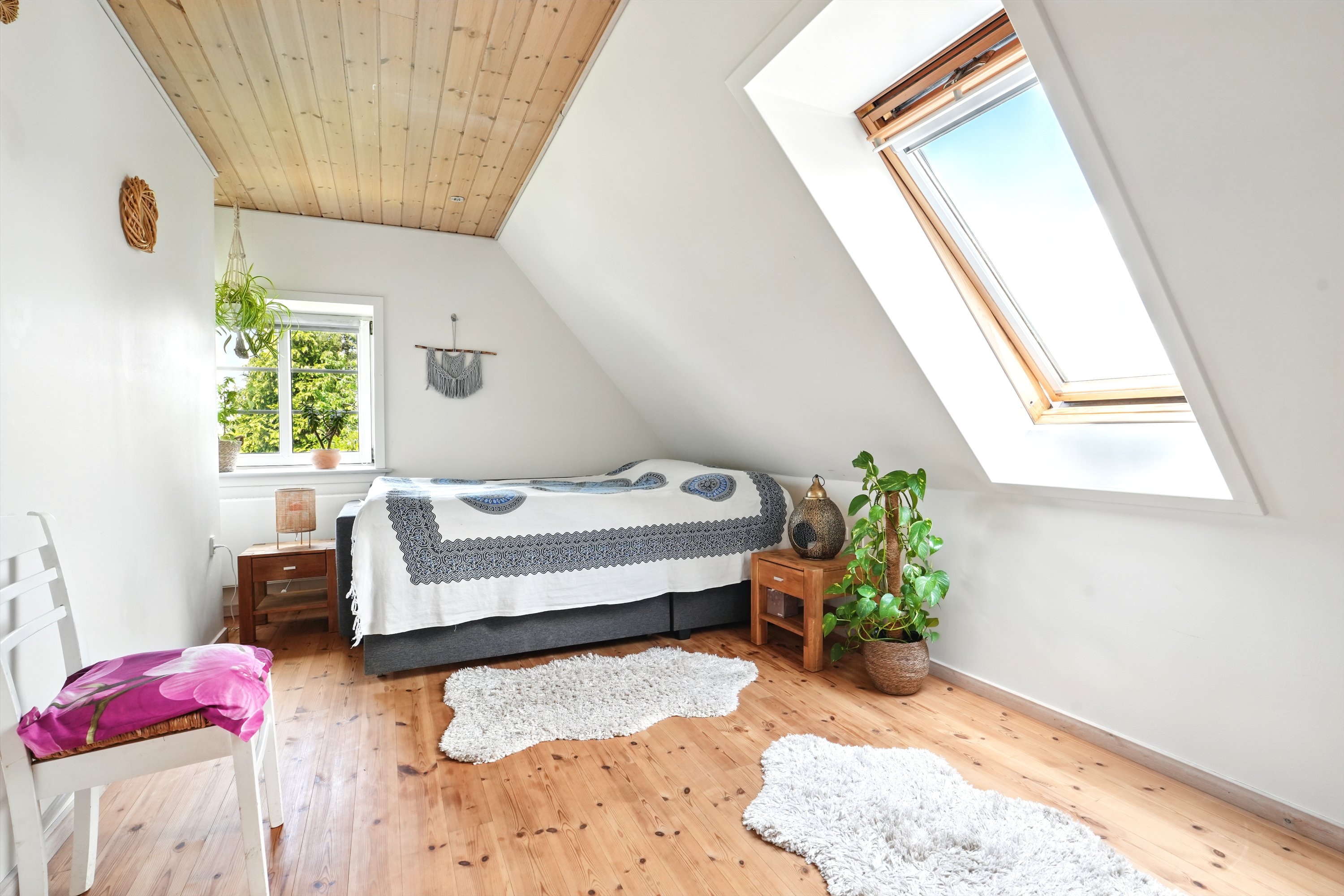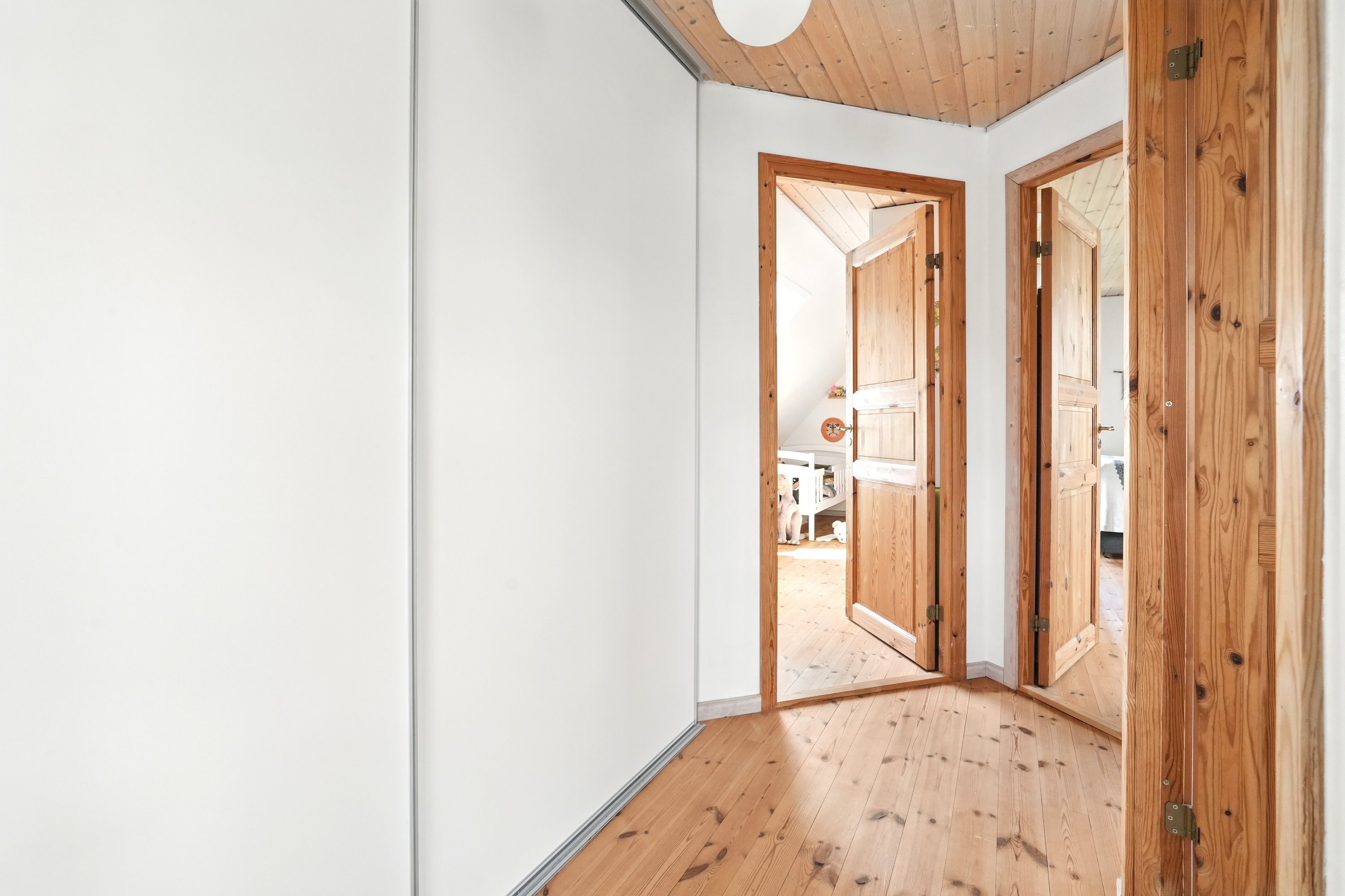 Førstesalen er ligeså indbydende og funktionel. Her er to gode værelser, der kan bruges som soveværelser, børneværelser eller måske kontor, alt efter behov. Hertil kommer endnu et toilet – en praktisk løsning i hverdagen.