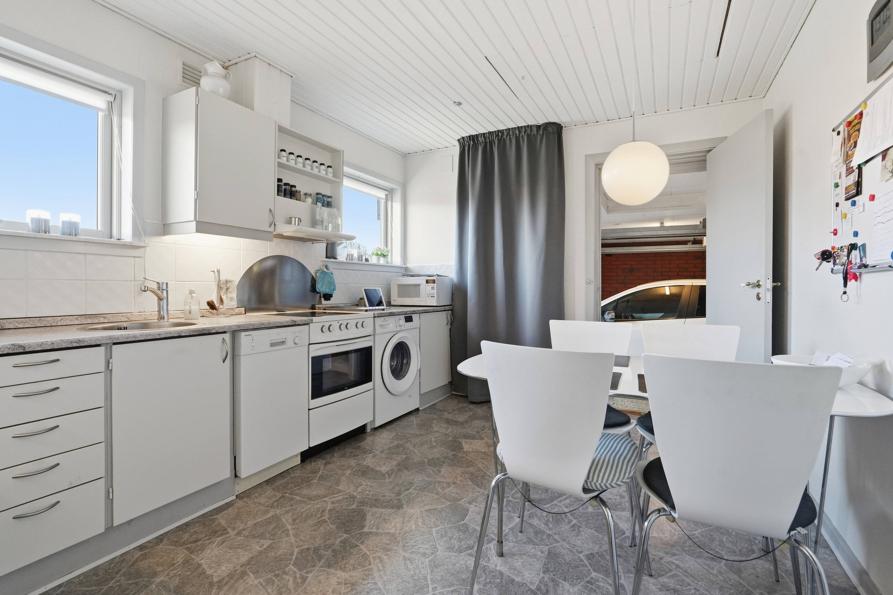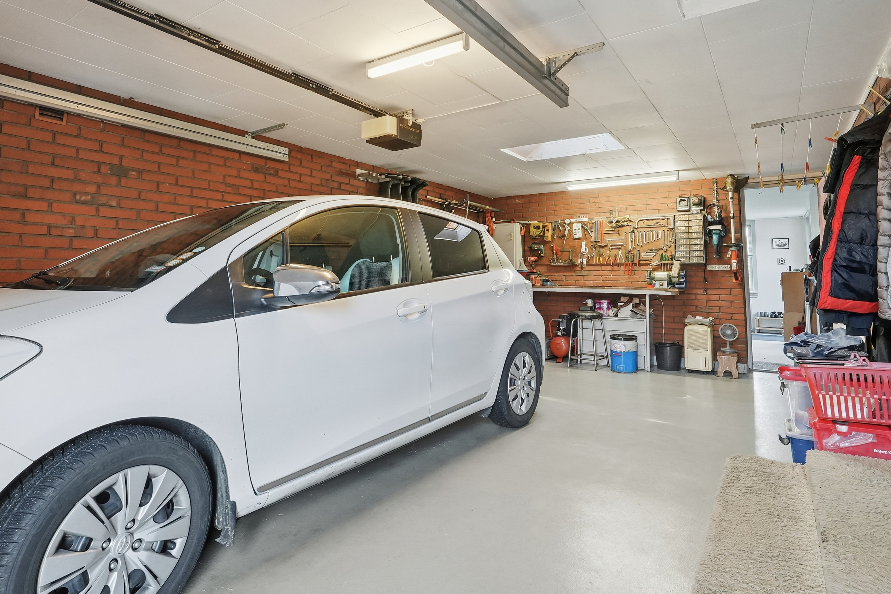 Garagen er opvarmet, hvilket giver en ekstra kvalitet i hverdagen. Det er en funktionel og fleksibel udvidelse af boligen, der kan bruges som værksted, hobbyrum eller blot en behagelig parkeringsmulighed i de kolde måneder.