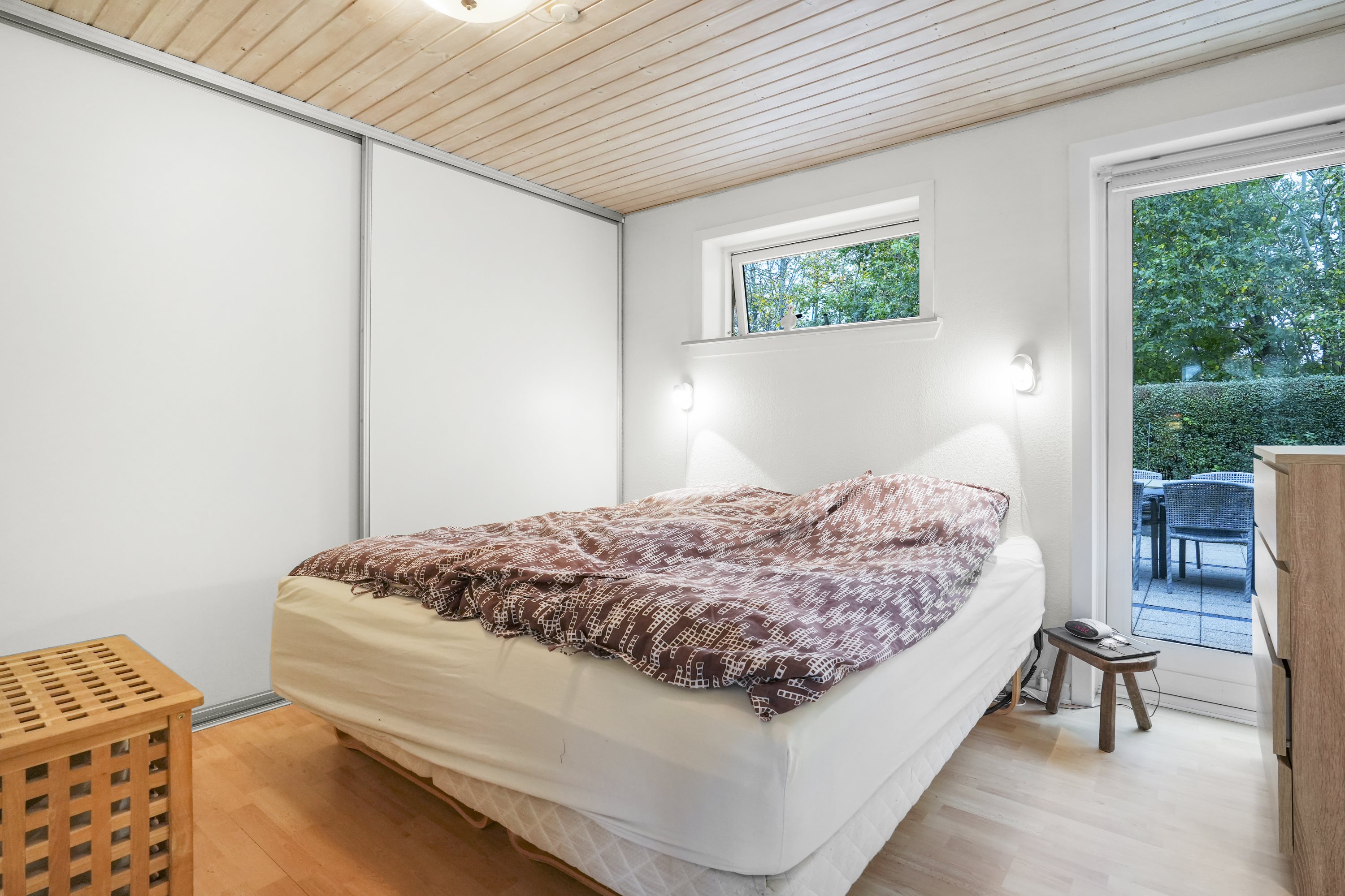 Villaens “hjerte” er det åbne køkken/alrum som er renoveret i 2017/18, hvor henholdsvis gulve, lofter, vægge og køkken er udskiftet, hvilket er med til at give villaen et meget moderne udtryk. Fra køkken/alrummet kan man ligeledes træde ud på både den øst- og vestvendte terrasse, hvilket er med til at forbinde villaen og de gode udearealer helt ideelt sammen. I forbindelse med køkkenet finder man villaens to værelser, som i øjeblikket er lagt sammen, men som let kan opdeles igen efter behov. Villaens soveværelse er placeret separat i forbindelse med stuen og har sit eget badeværelse, også renoveret i 2017/18 i moderne og lyse materialer – en ideel opdeling for familien, der ønsker en separat forældreafdeling. Stuen er rummelig og møbleringsvenlig, med store vinduespartier mod vest, som giver et skønt lysindfald og en hyggelig atmosfære. Vinduerne mod vest er desuden udskiftet til træ/alu, hvilket er med til at sikre minimal vedligeholdelse.