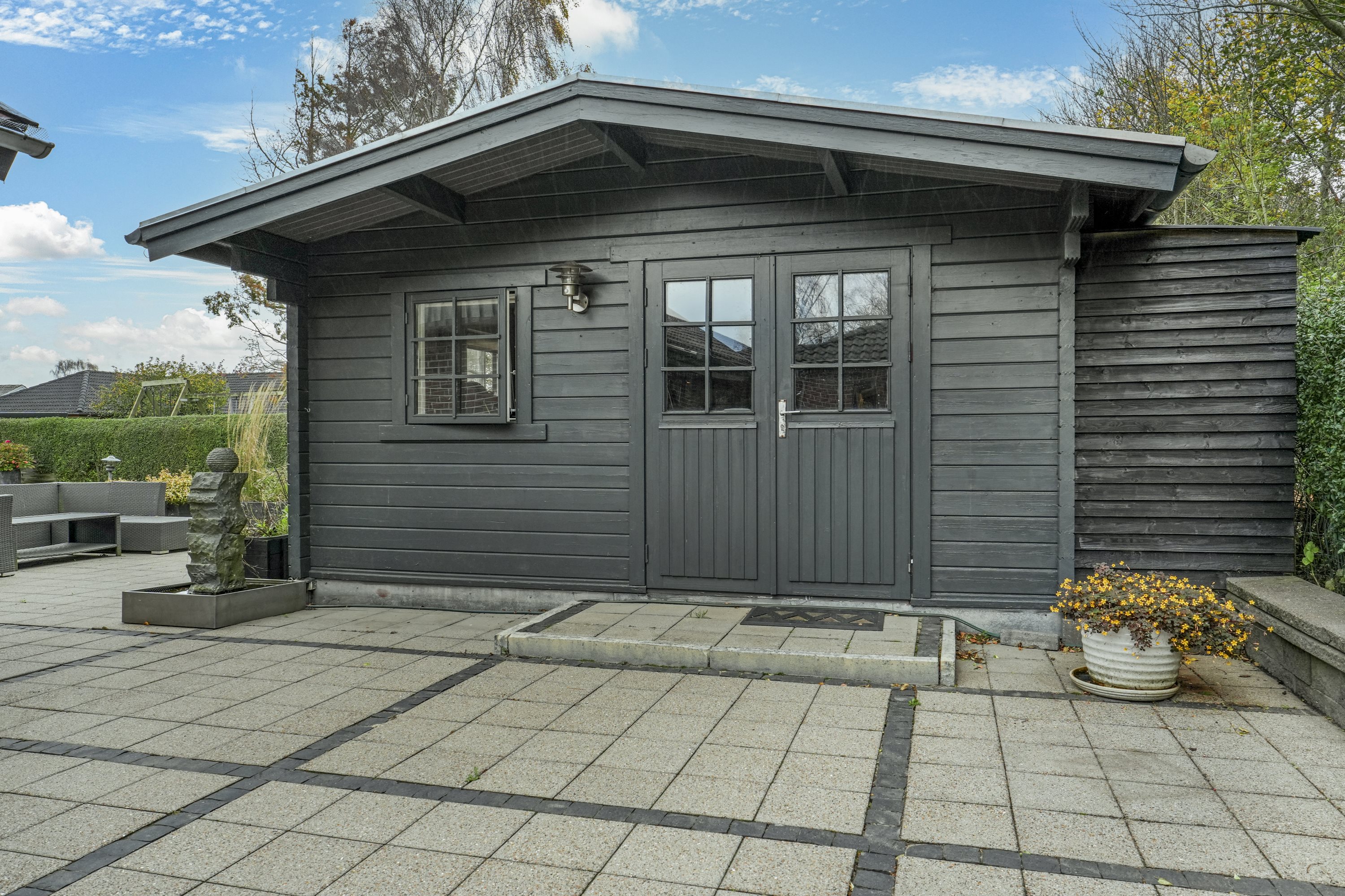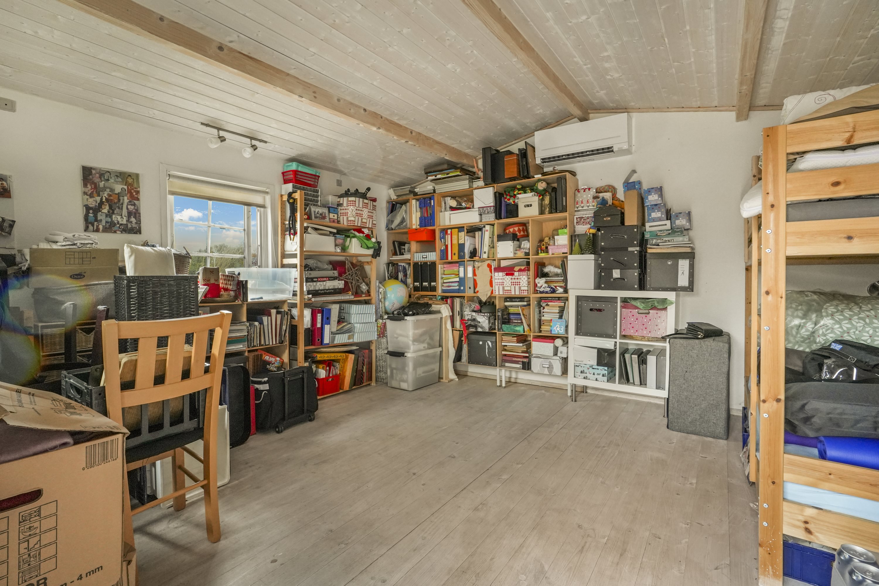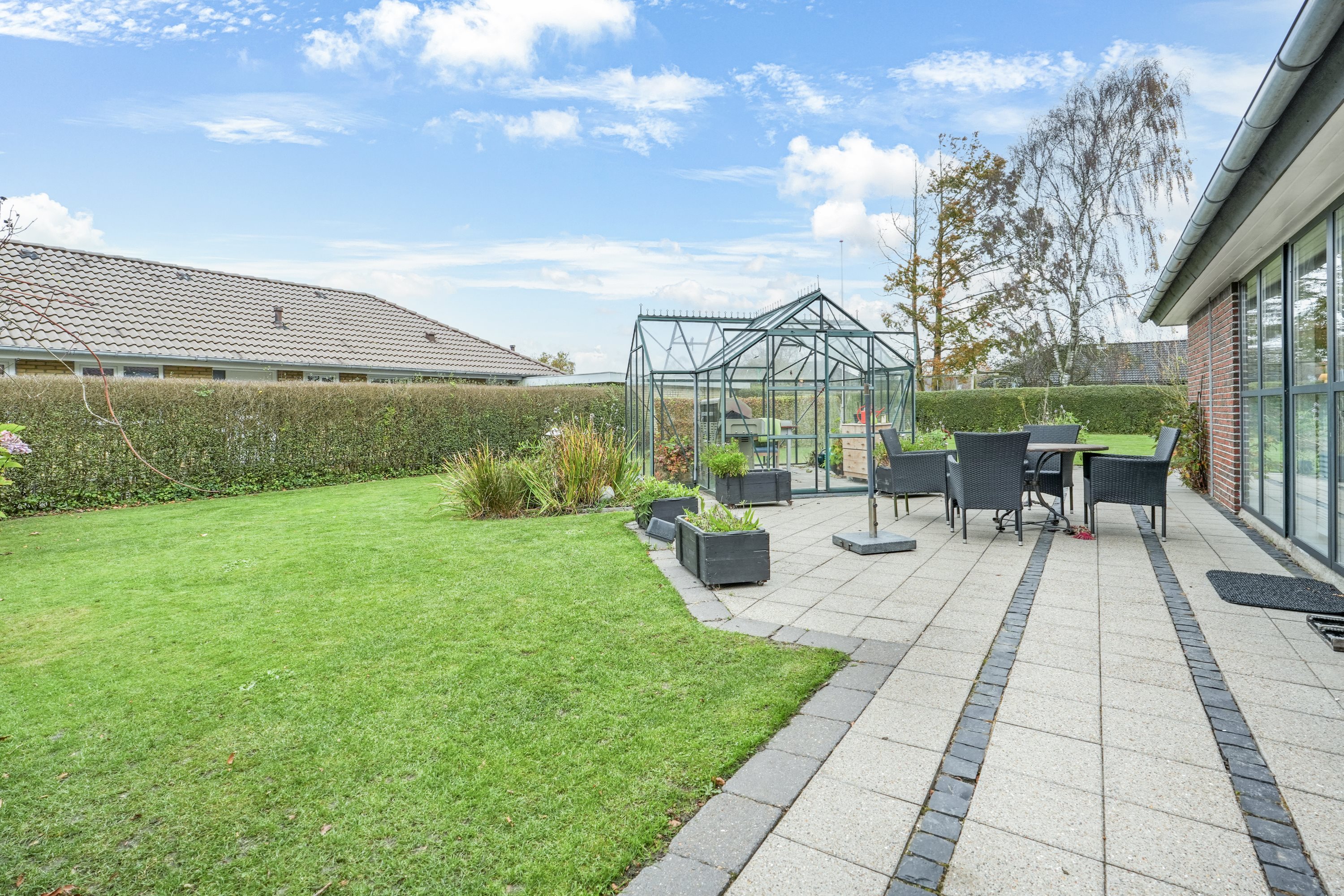 Haven er utrolig hyggelig og anlagt med fliser hele vejen rundt om huset, vil gør det dejligt bekvemt at bevæge sig rundt i de forskellige miljøer. Som et ekstra plus, har sælger fået etableret en norsk bjælkehytte som er isoleret og udstyret med en luft-til-luft varmepumpe. Dette gør det muligt at have sovende gæster, eller når teenagerne har venner på besøg.