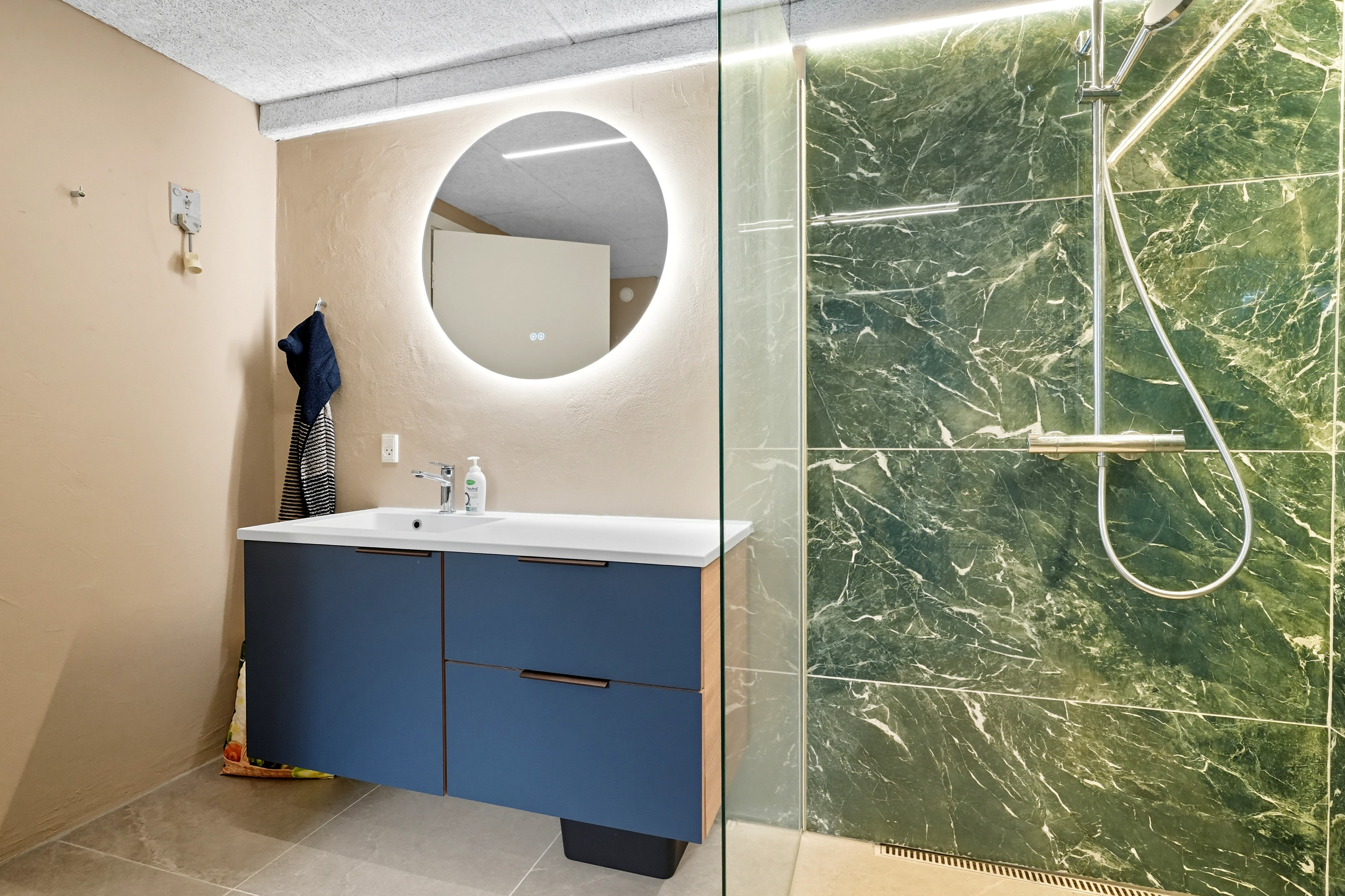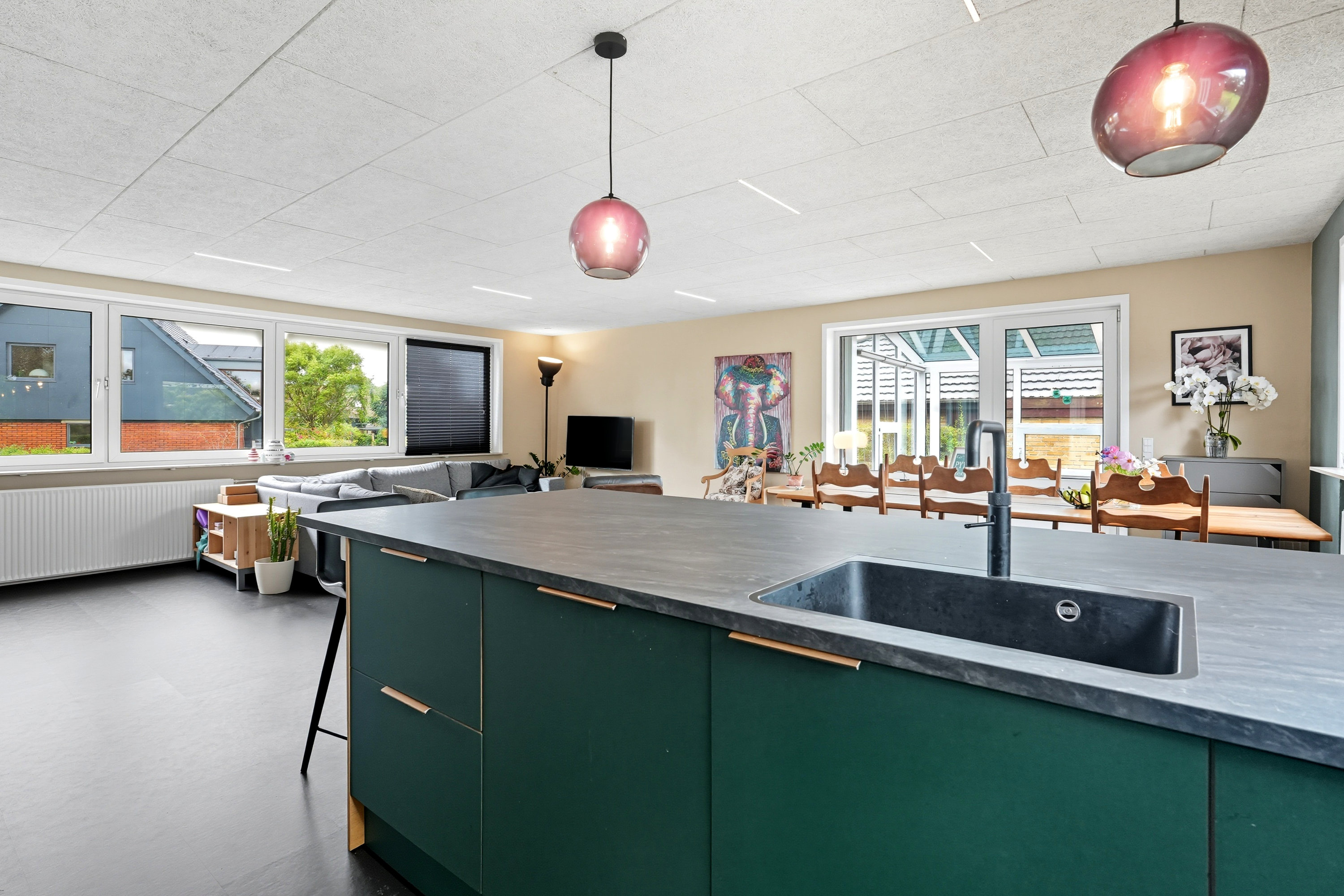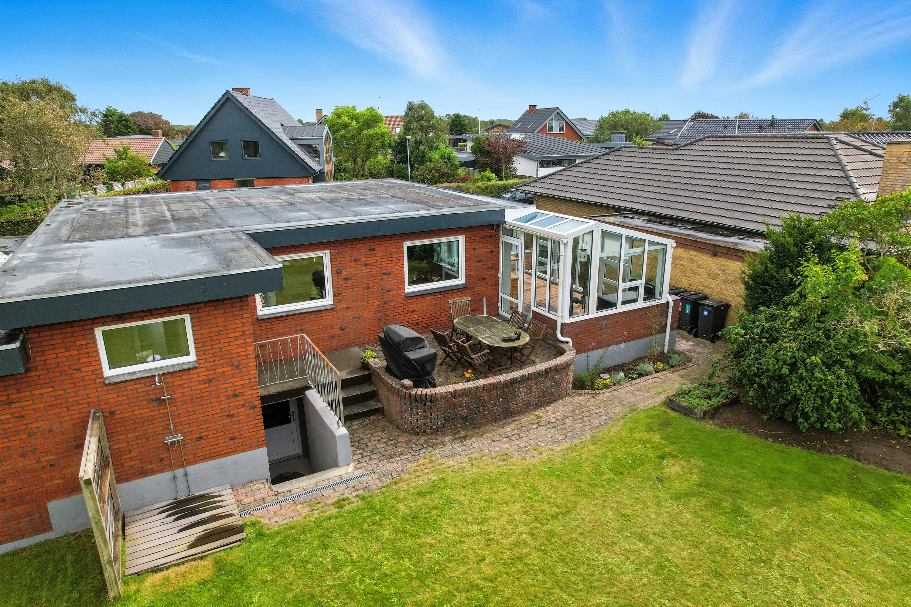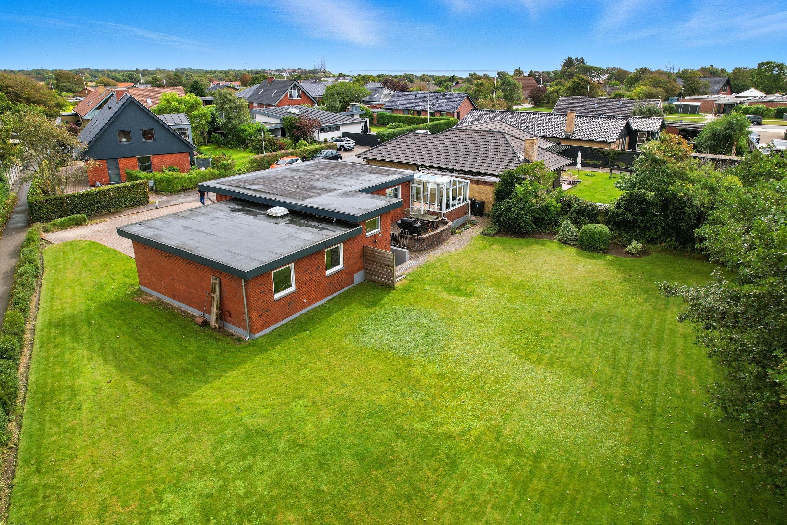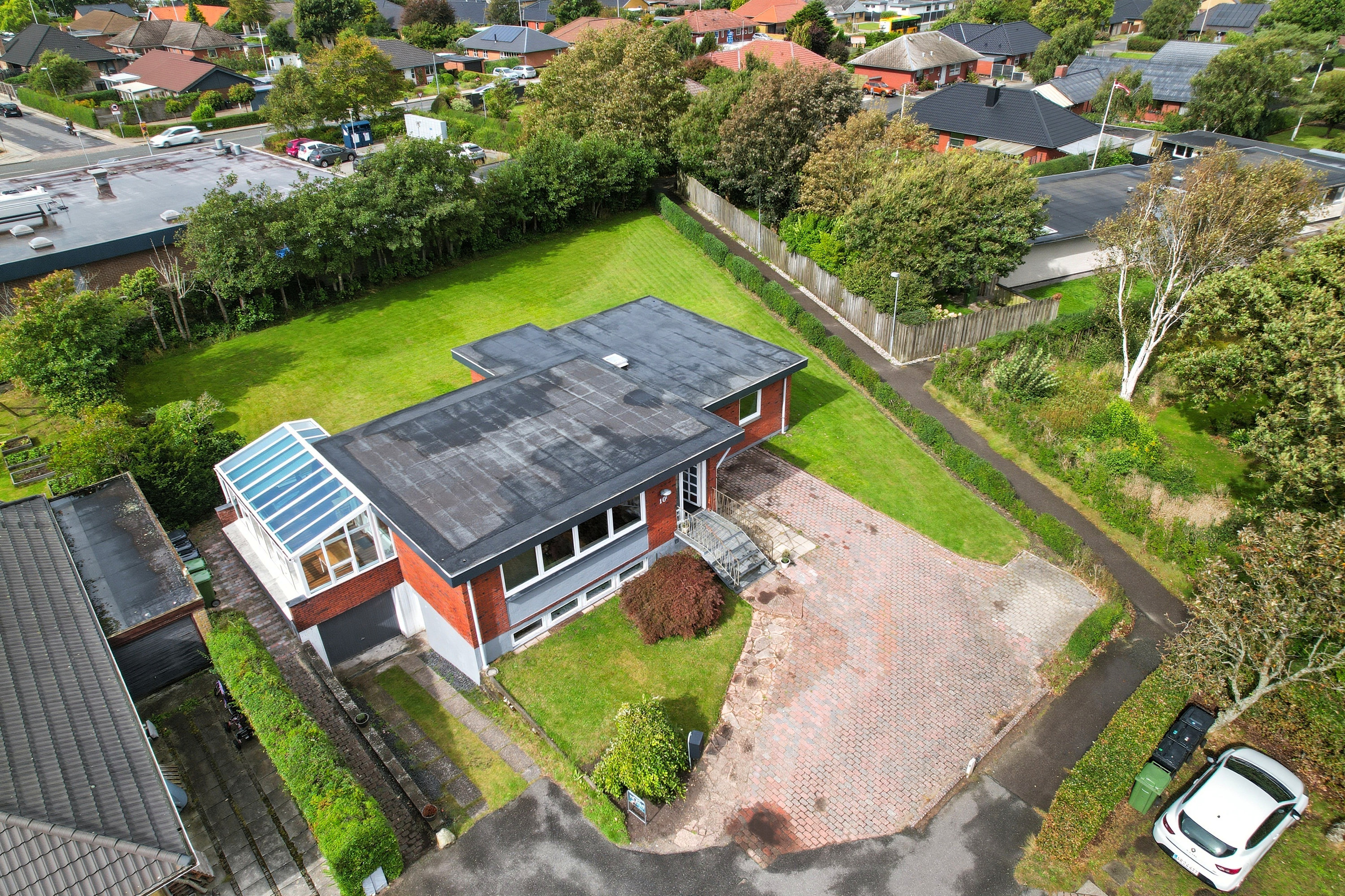 Beliggenheden er noget helt særligt: en rolig, lukket lomme tæt på alt, du har brug for i hverdagen – børnehave, indkøb, apotek og tankstation – samtidig med at naturen og stranden ligger lige om hjørnet. Og med kun 12 minutters kørsel til centrum får du både fredelige omgivelser og nærhed til bylivet.
