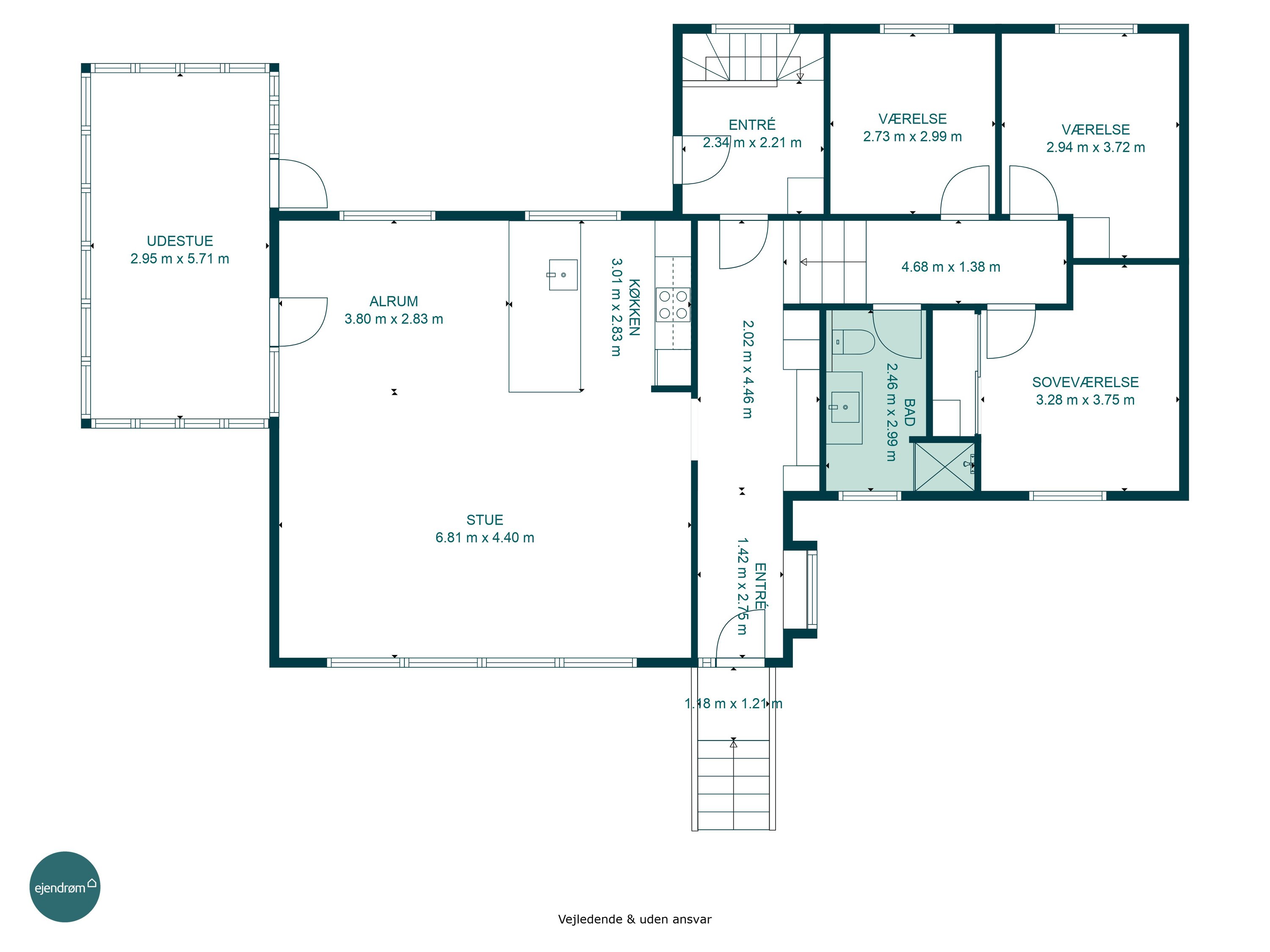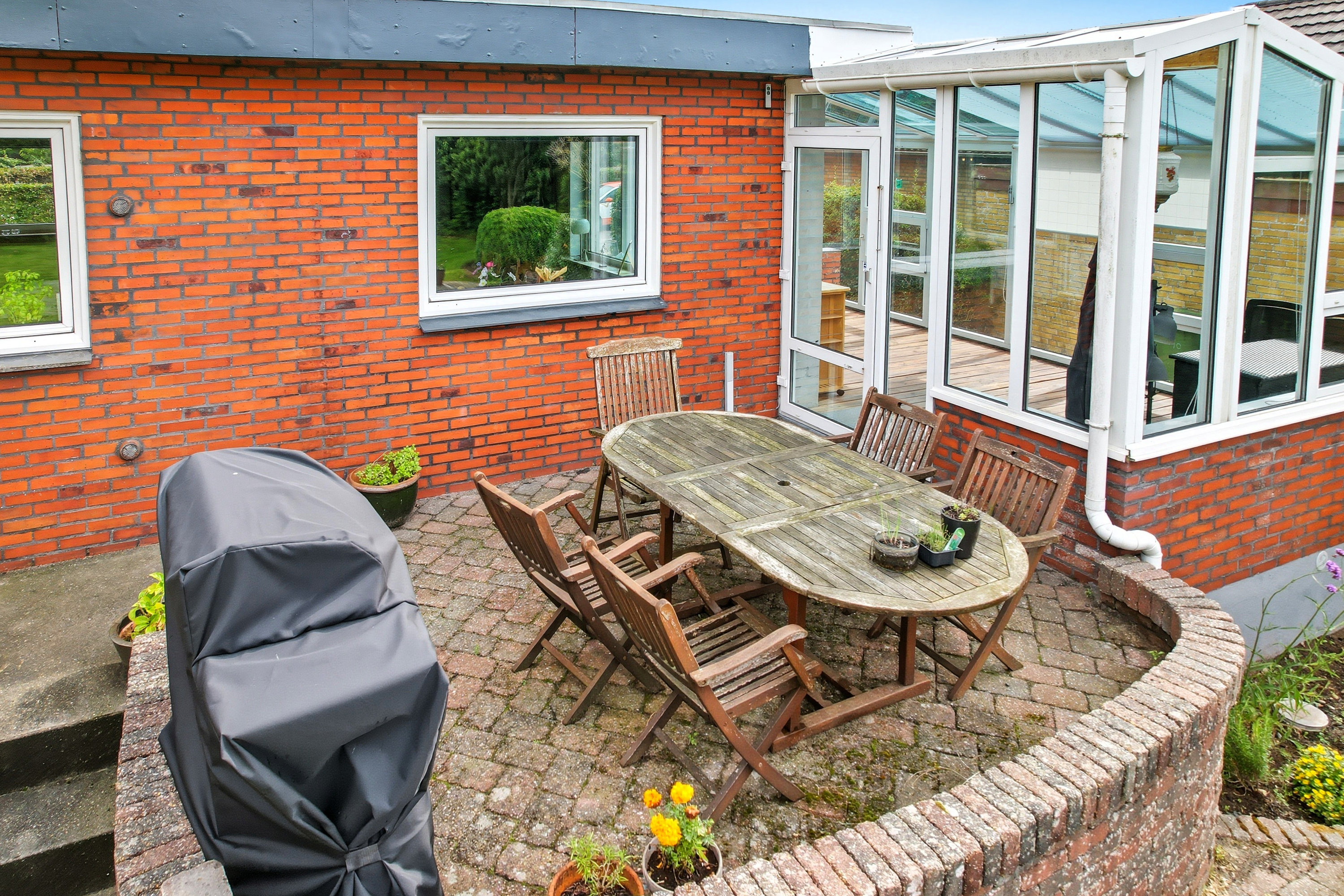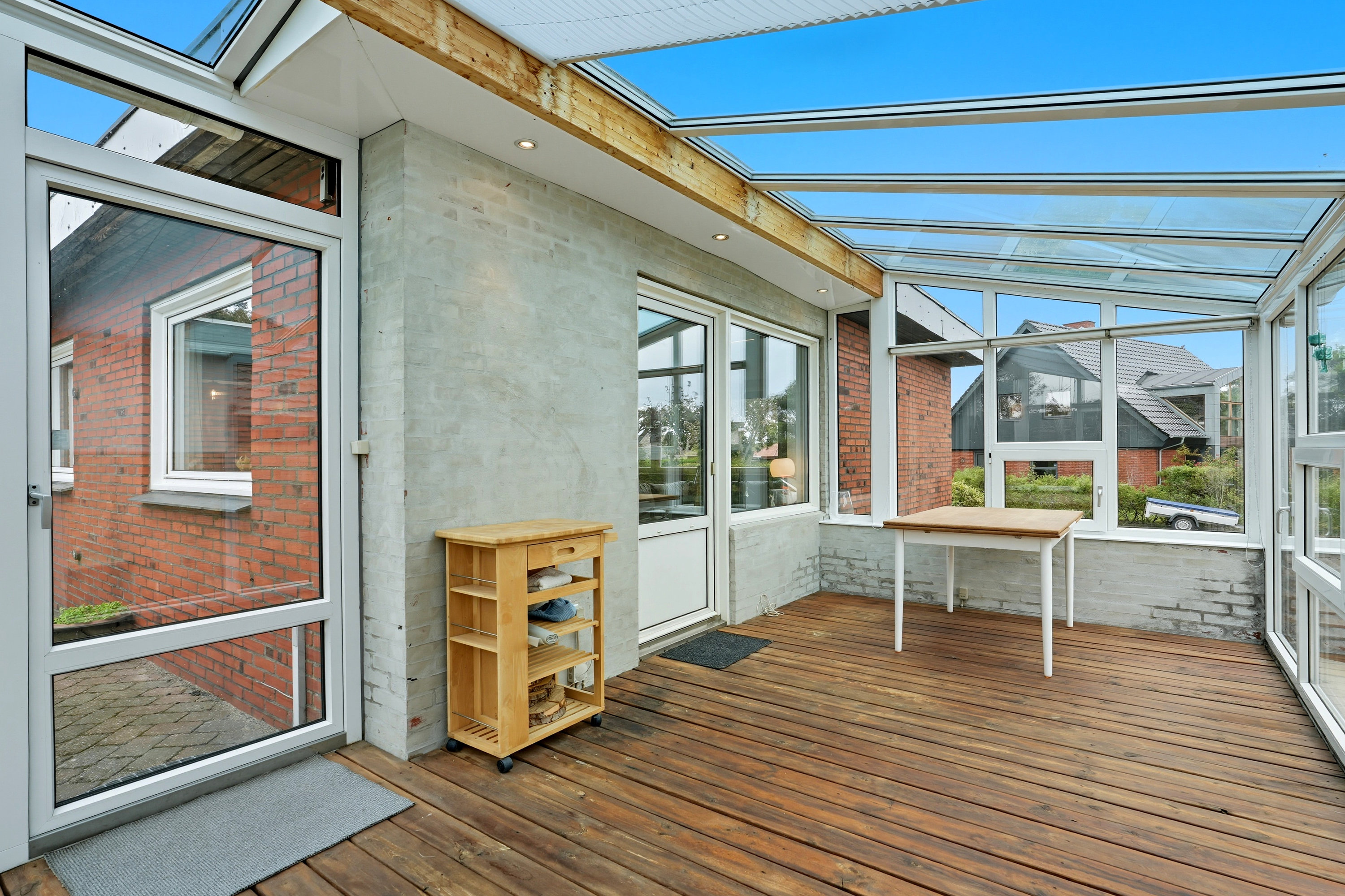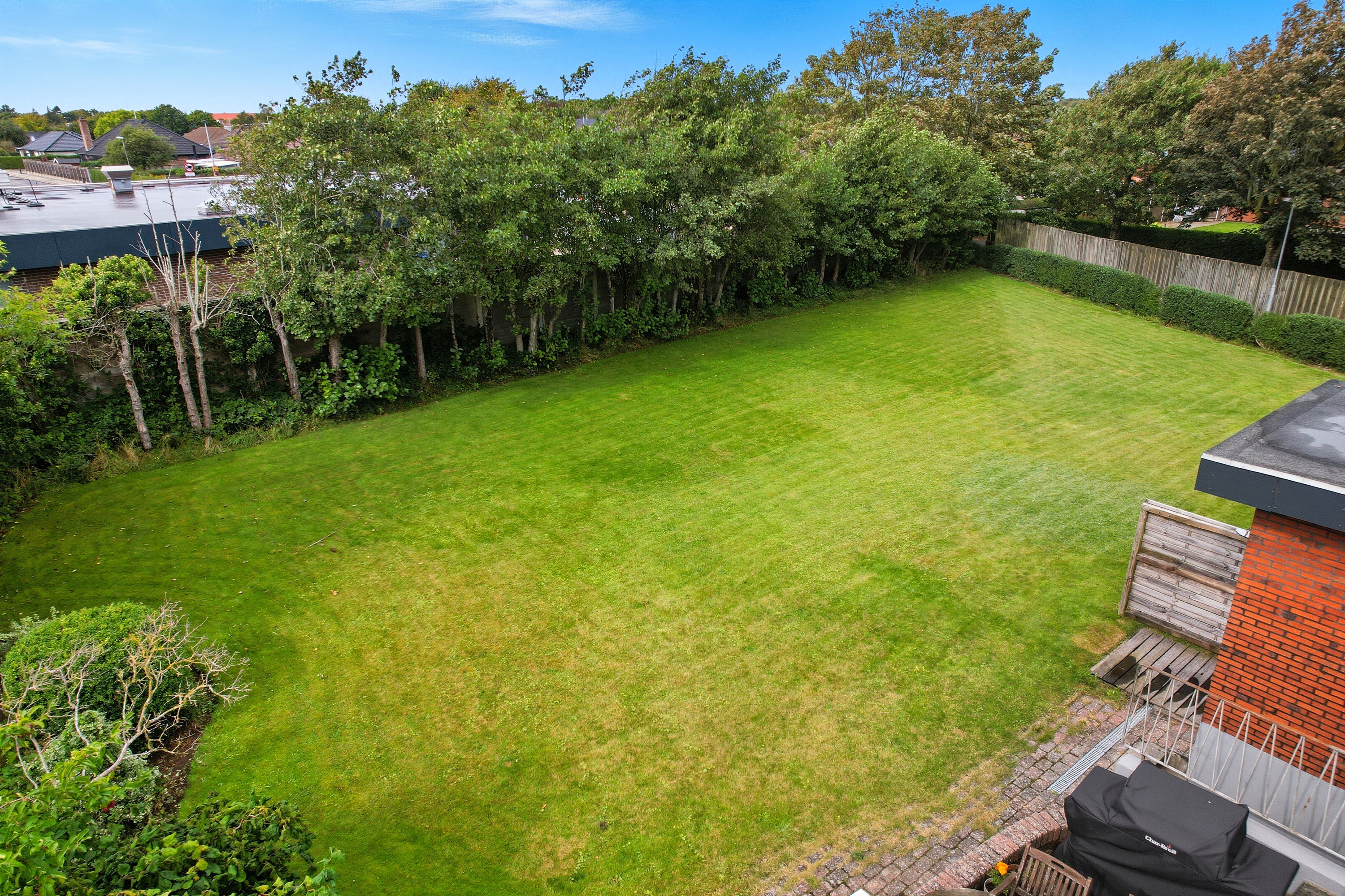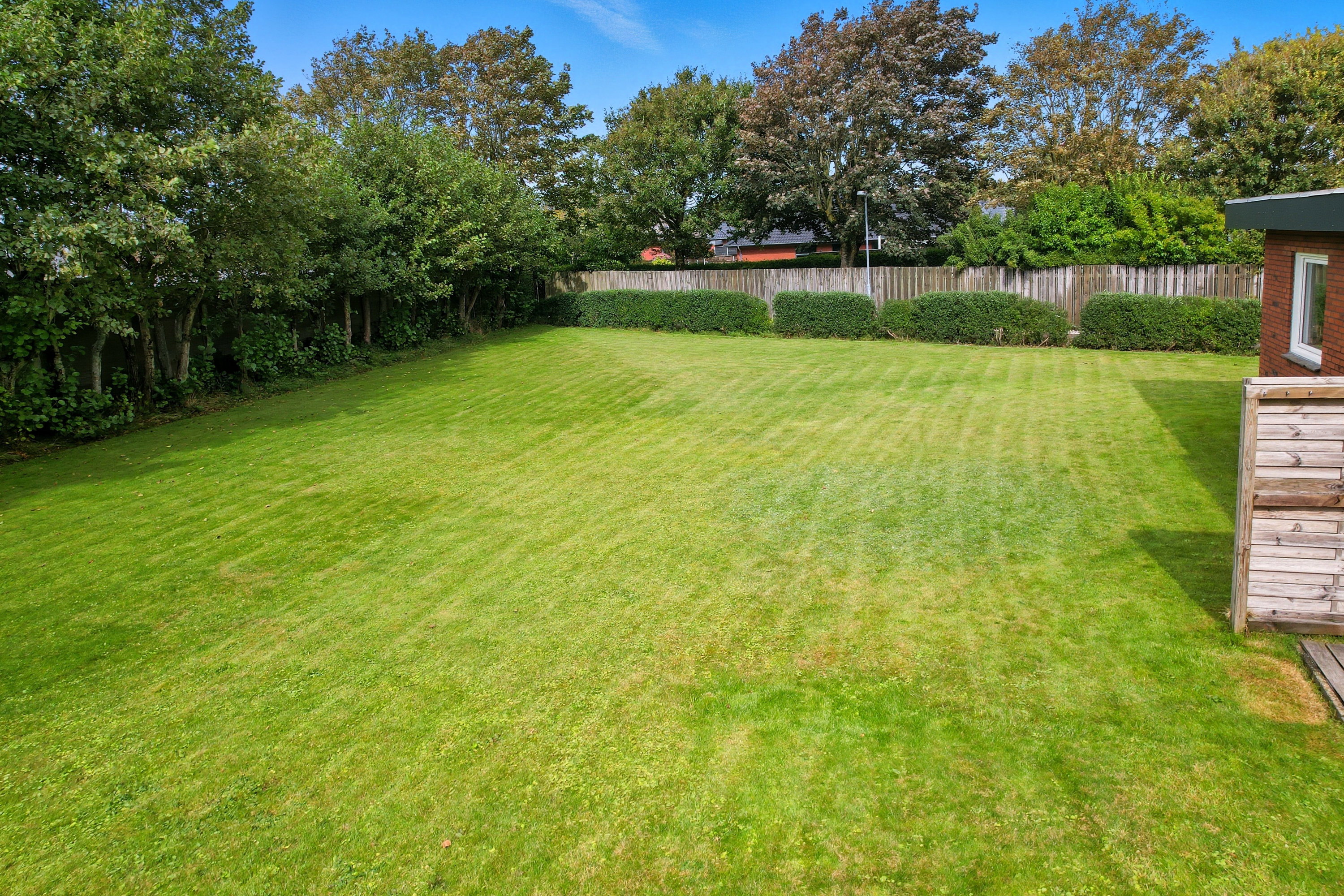 Her er masser af plads til både familie og gæster, og den store have indbyder til leg, afslapning og udeliv – endda med udebruser, så sommerdagene ved vandet nemt forlænges hjemme i haven.
