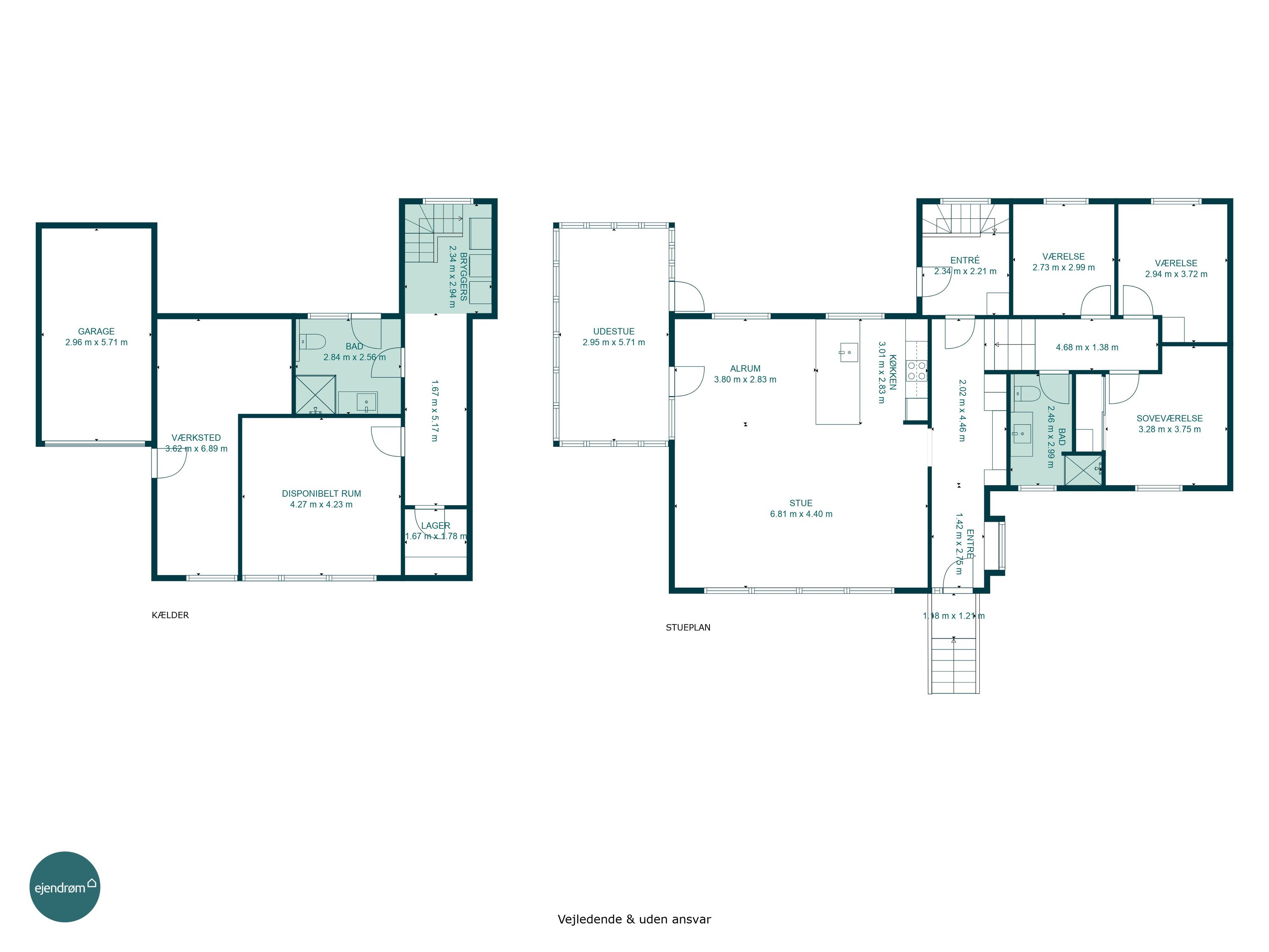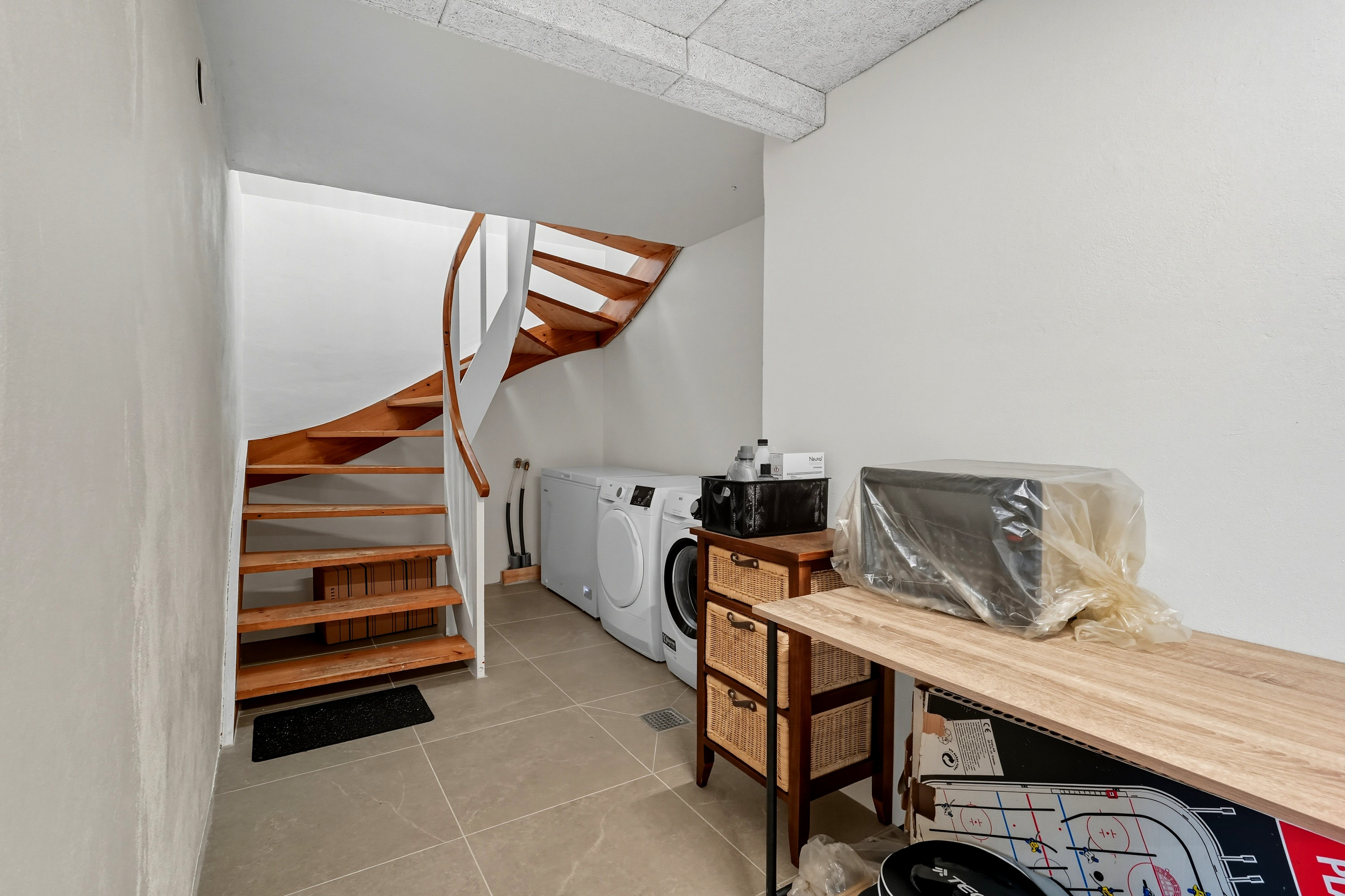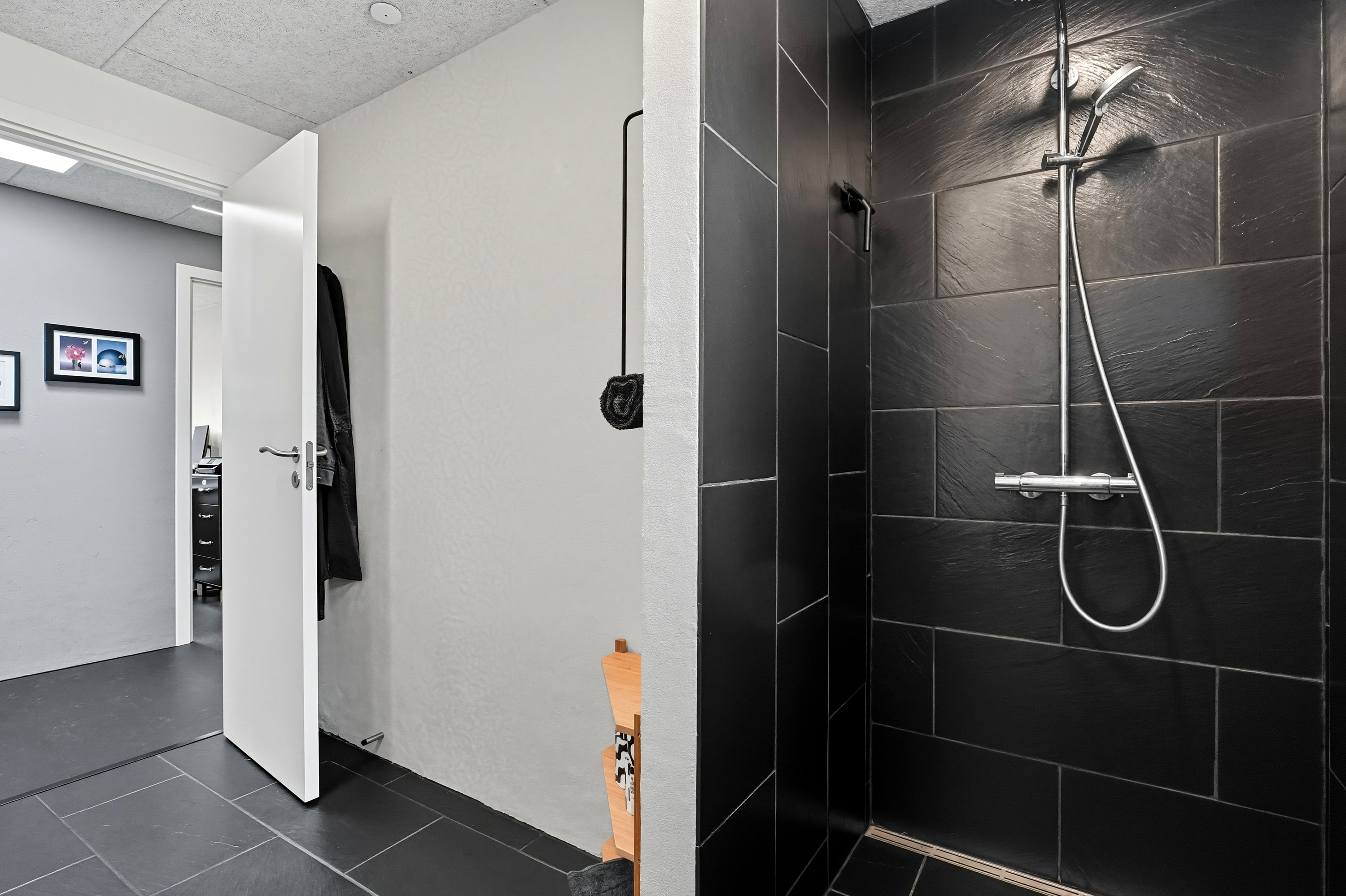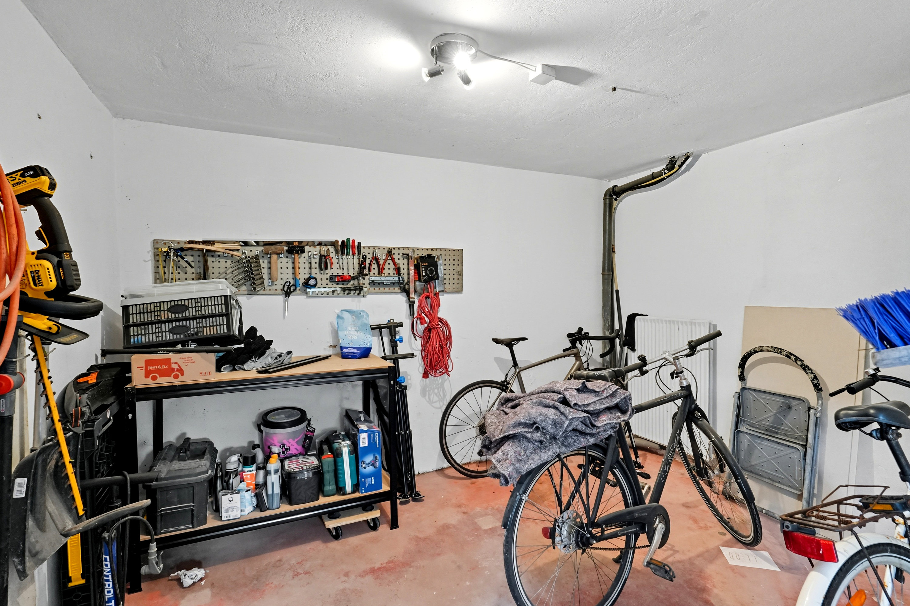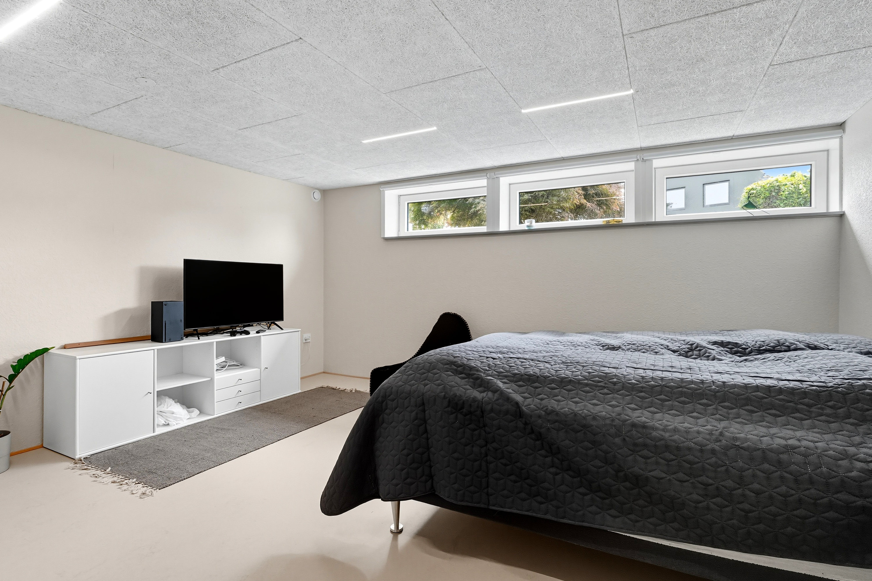 Kælderen fremstår pæn, lys og tør. Dette skyldes blandt andet at der i gang + badeværelse er blevet etableret gulvvarme samt at der er etableret flere ventilationskanaler i kælderen. Begge tiltag som øger kvalitet og komfort. Sælger har aldrig oplevet vand i kælderen og det er ikke helt tilfældigt. For det første ligger huset højt. Herudover er der etableret udendørs dræn på udvalgte steder samt faskine på grunden til afledning af regnvand.