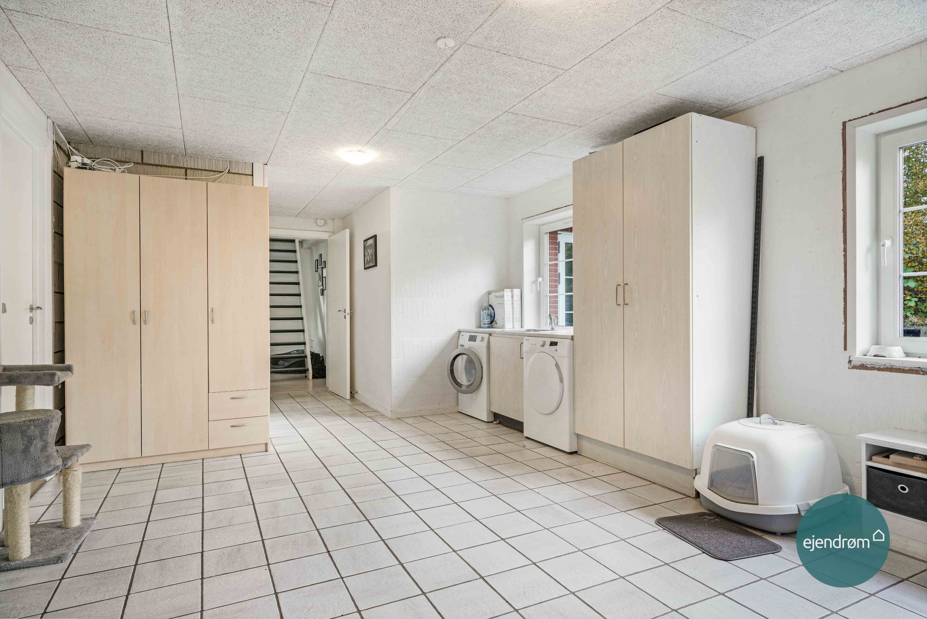 Bryggereset byder dig på en god rummelighed med plads til de praktiske gøremål. Ydermere er der 2 store børneværelser og et badeværelse, som vil være ideelt til børneafdelingen. Fra bryggerest er der direkte udgang til garagen med tilhørende fyrrum – Det er her pillefyret står, og som i dag bruges til at varme huset op.