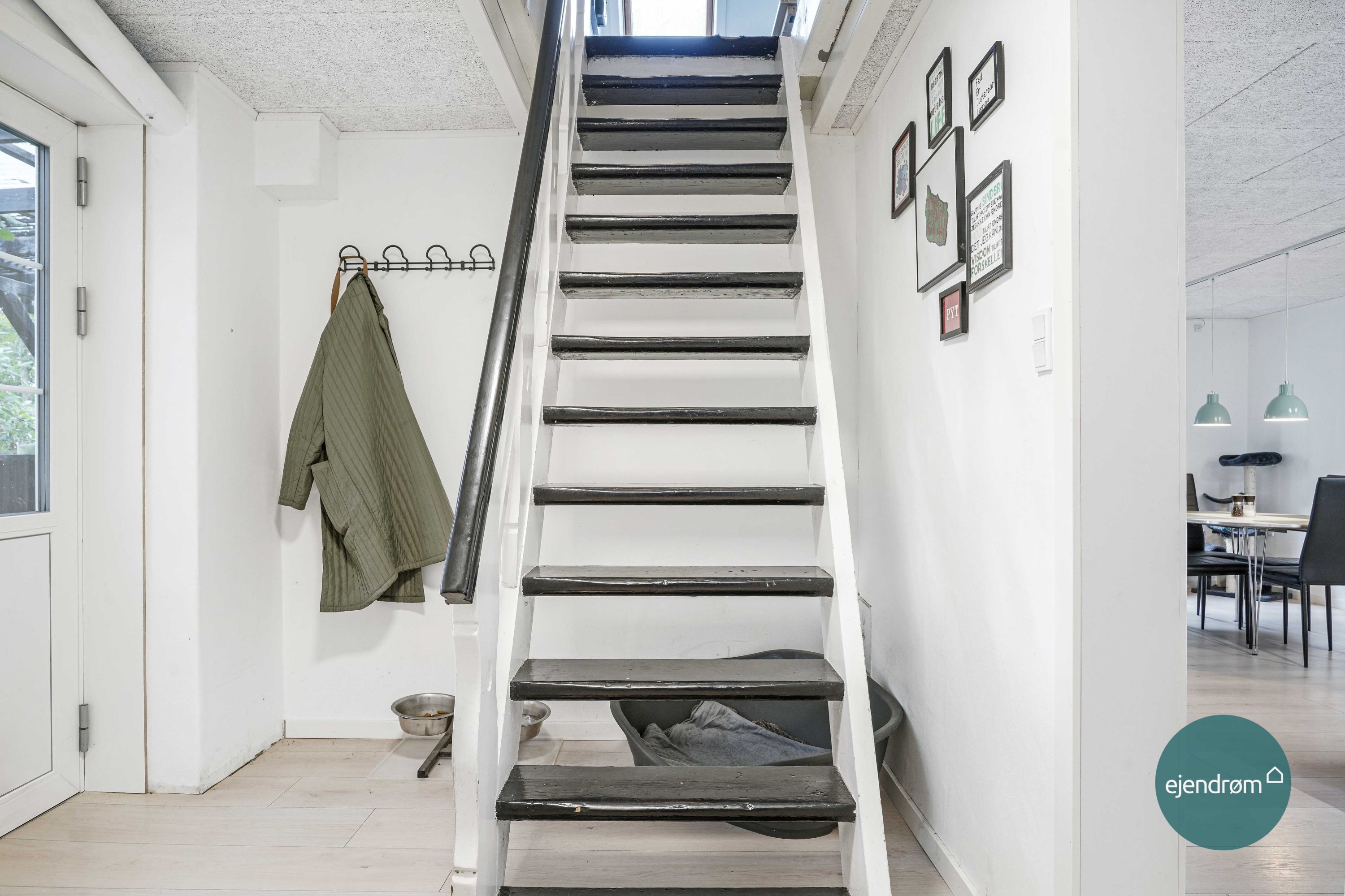 Entréen fungerer som bindeled i mellem køkken/alrum, 1 sal og bryggers.