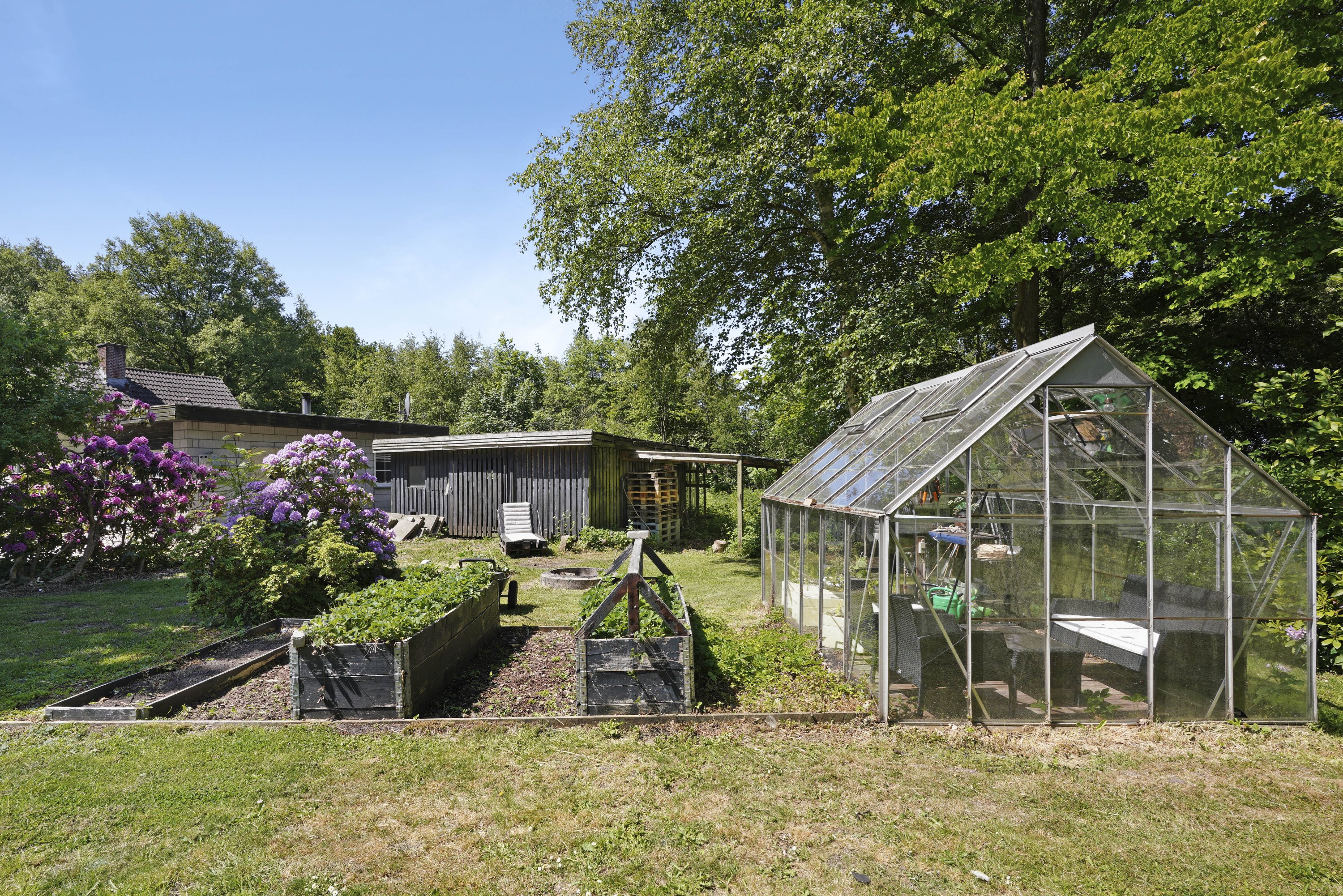 Med den store grund giver det dig en god mængde plads og et stort naturområde hvor du er omgivet af en masse træer – Her er der utallige muligheder for både børn og voksne, hvor kun fantasien sætter grænser! Du får ligeledes udhusbygninger med plads til opbevaring, samt 2 terrasser hvoraf den ene er overdækket.