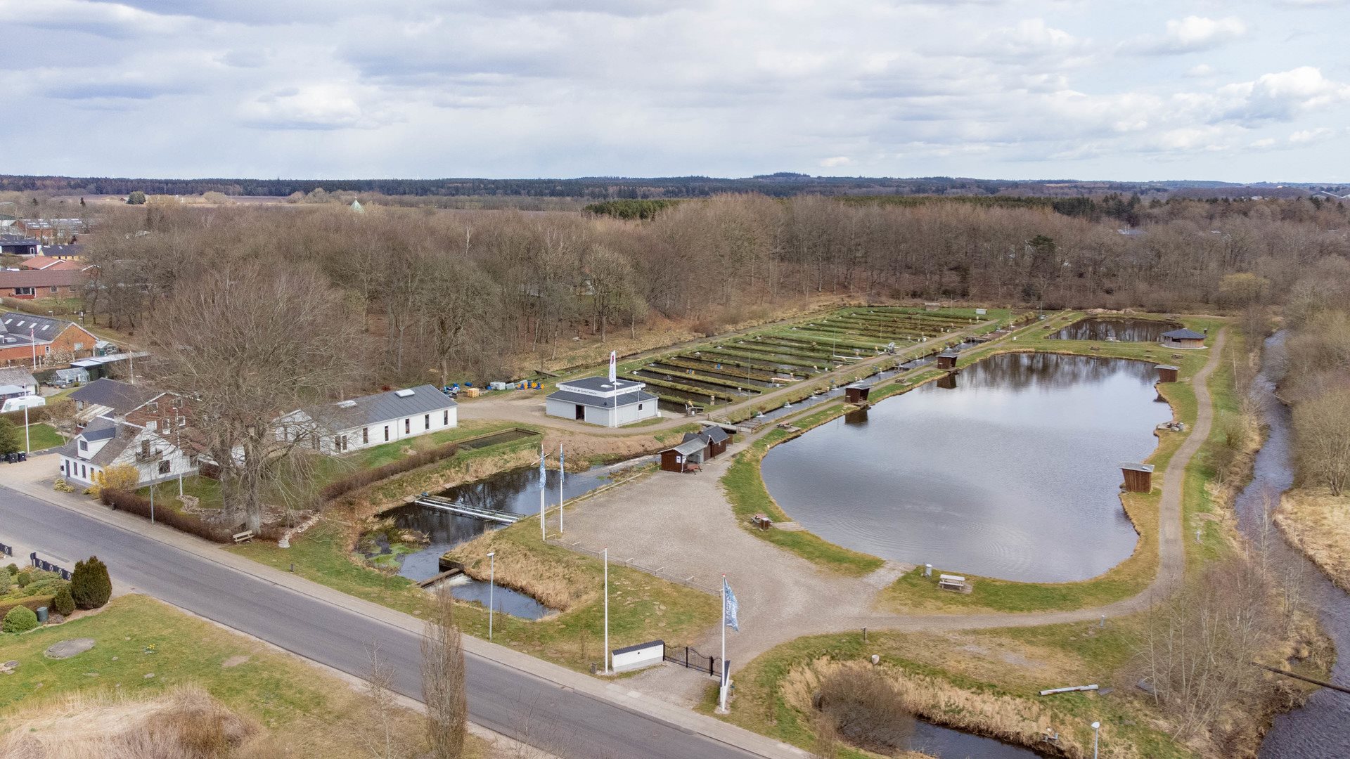 Ejendommen fordeler sig over en skøn naturgrund med et stort areal på i alt 29.602 m². På grunden findes et velholdt område med 2 fiskesøer, hvor der i forbindelse hermed er etableret gode overdækninger og shelters samt madpakkehuse for både børn og voksne. Over for fiskesøerne findes et større område med 15 bassiner til dambrug