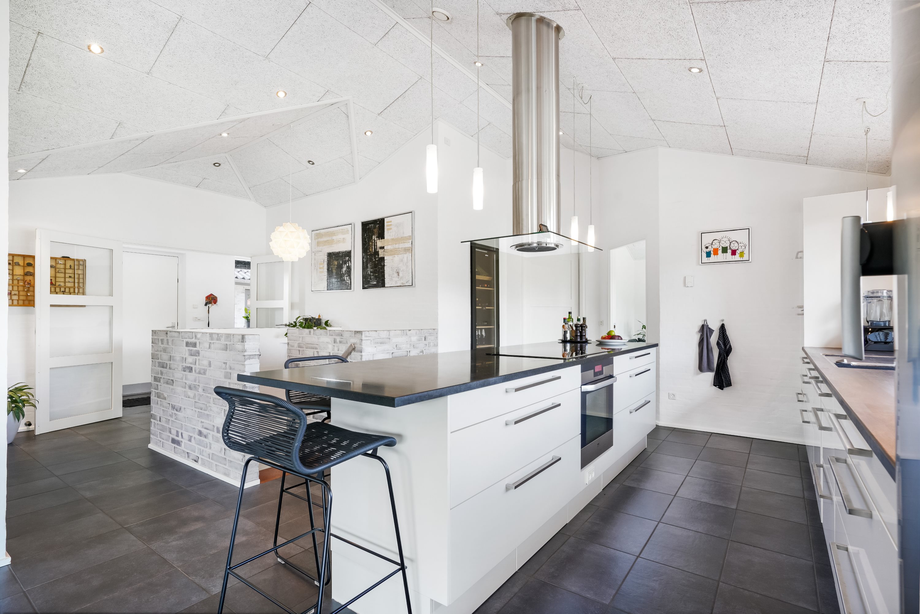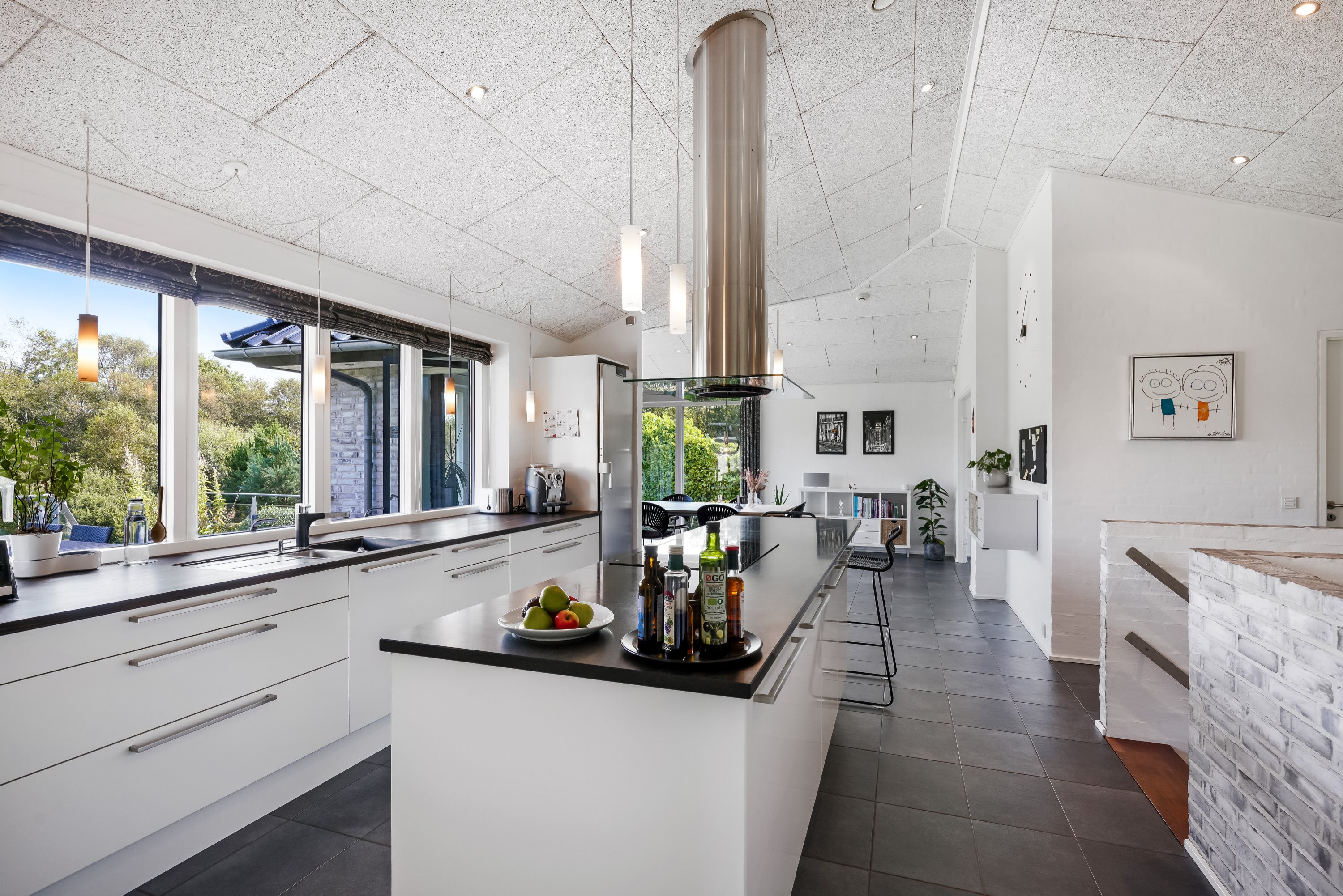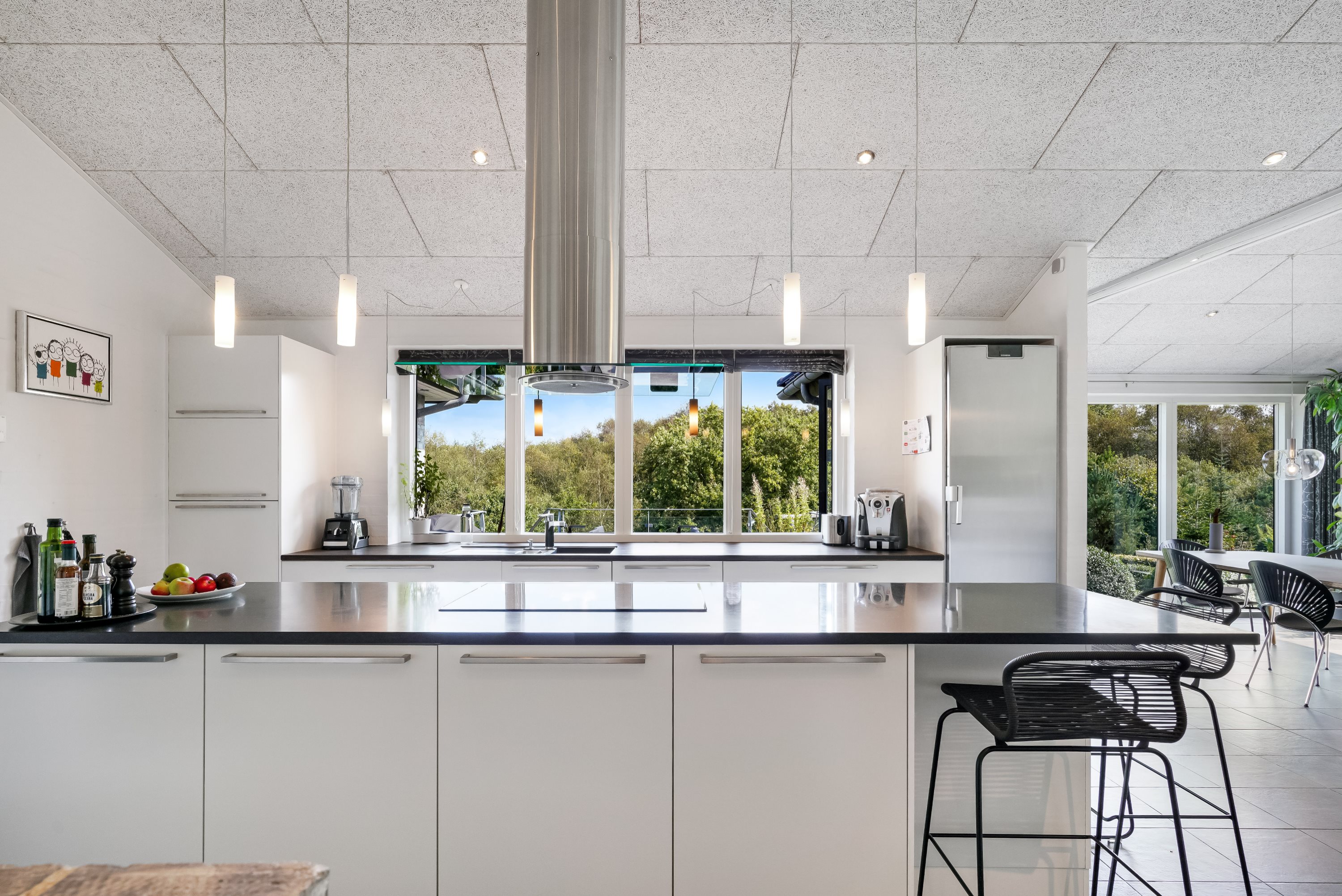 Indenfor byder ejendommen på rummelige og lyse opholdsarealer, hvor moderne design møder traditionel charme. Det moderne køkken, med udsigt til skovareal og masser af opbevaringsplads har plads til at familien kan samles til hyggelige stunder rundt om aftensmaden.