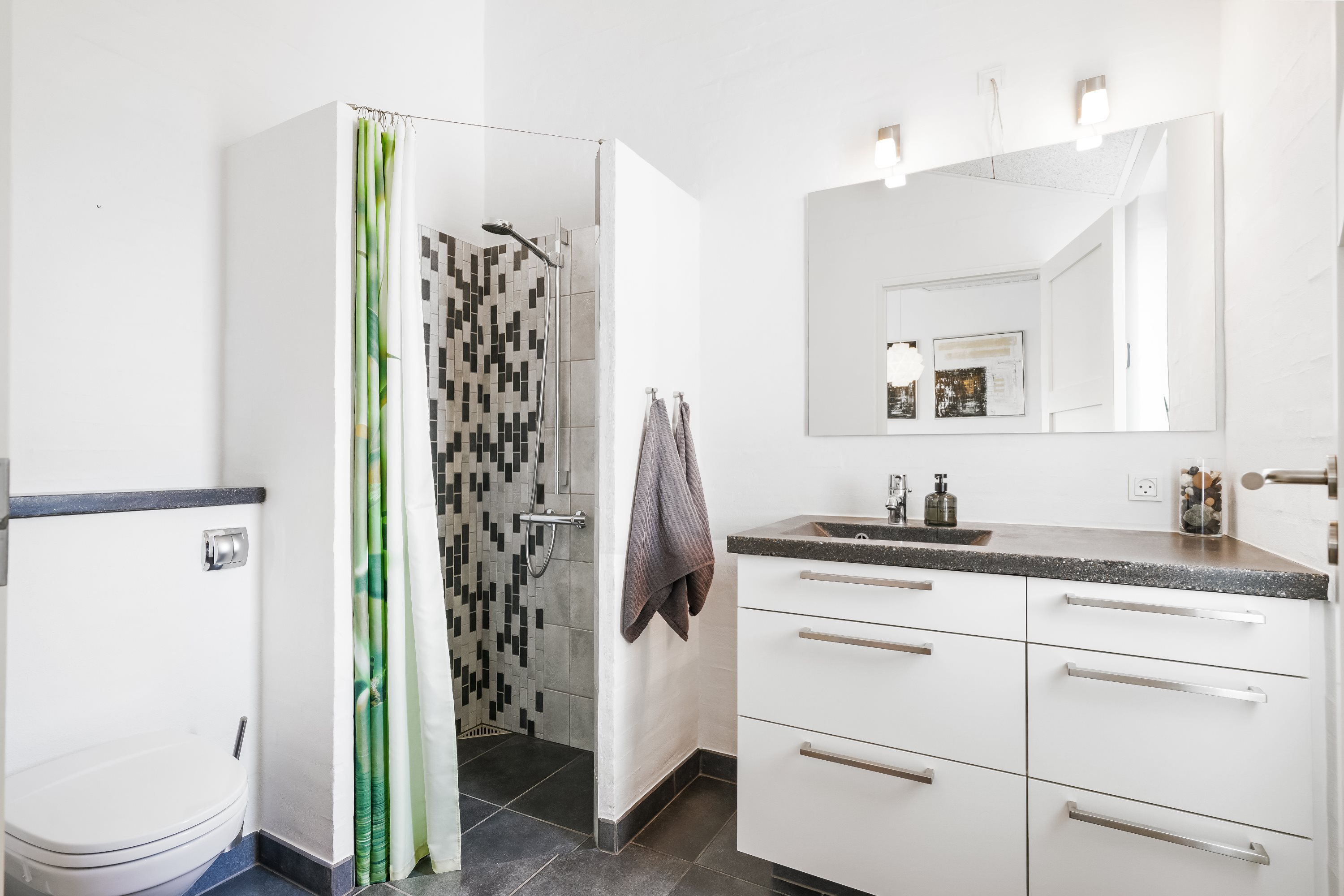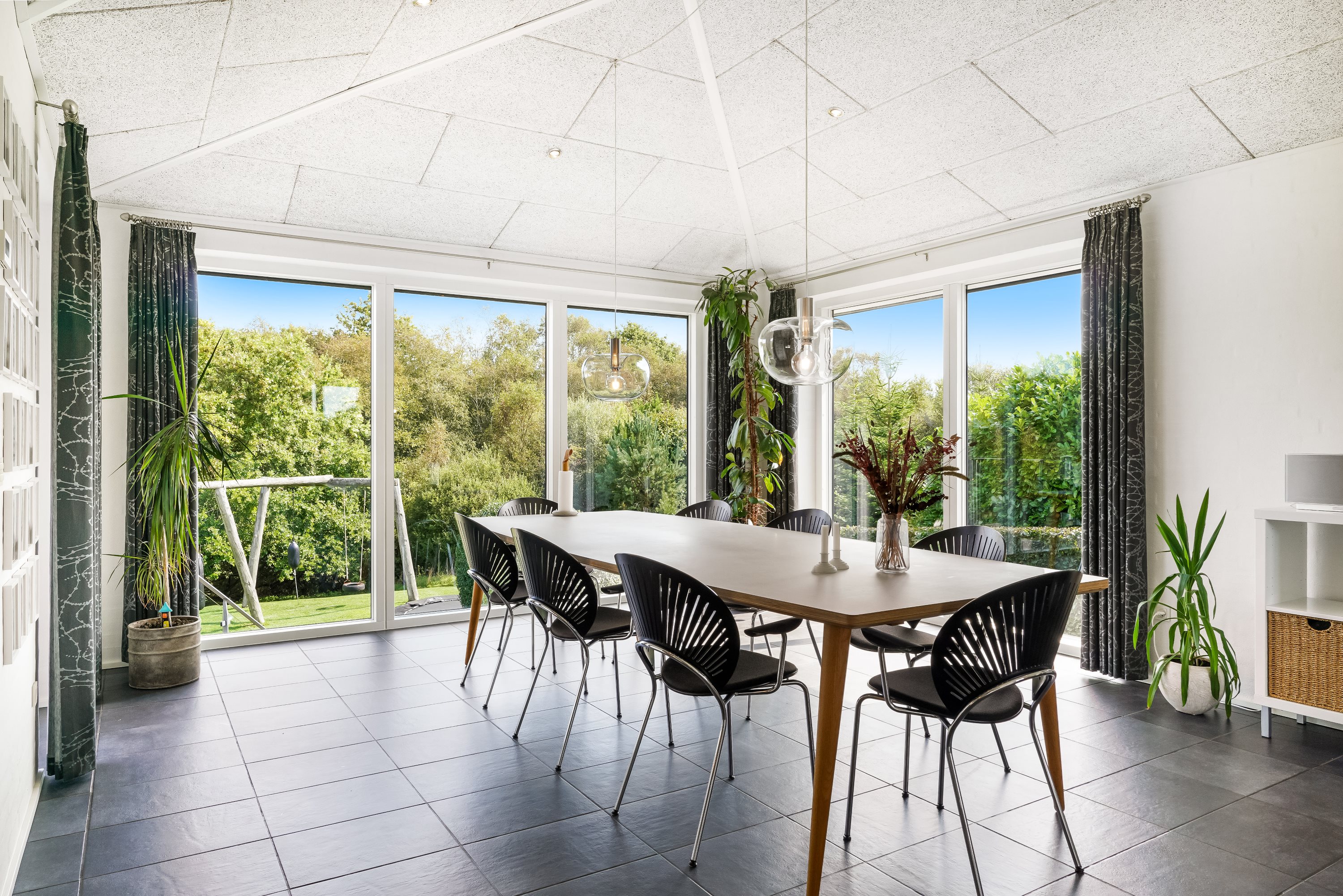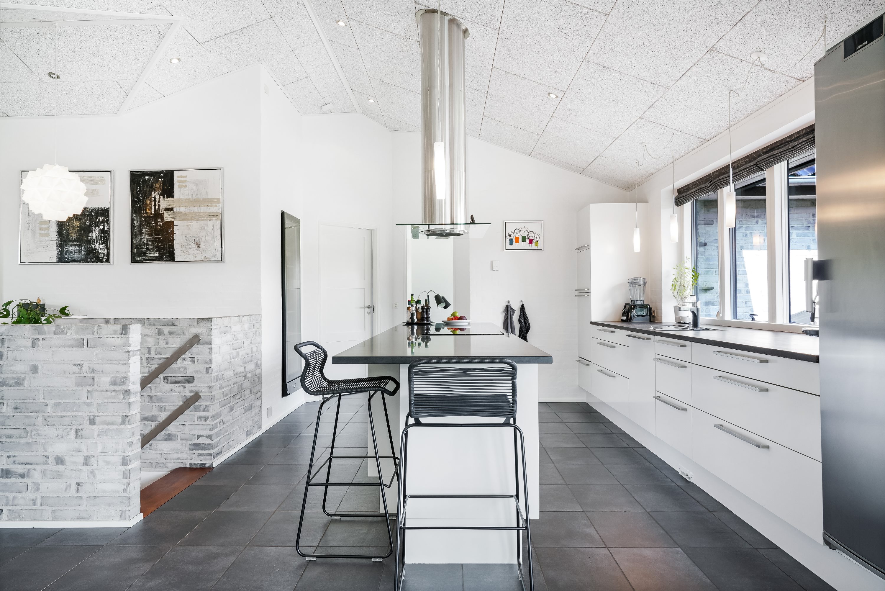Indenfor byder ejendommen på rummelige og lyse opholdsarealer, hvor moderne design møder traditionel charme. Det moderne køkken, med udsigt til skovareal og masser af opbevaringsplads har plads til at familien kan samles til hyggelige stunder rundt om aftensmaden.